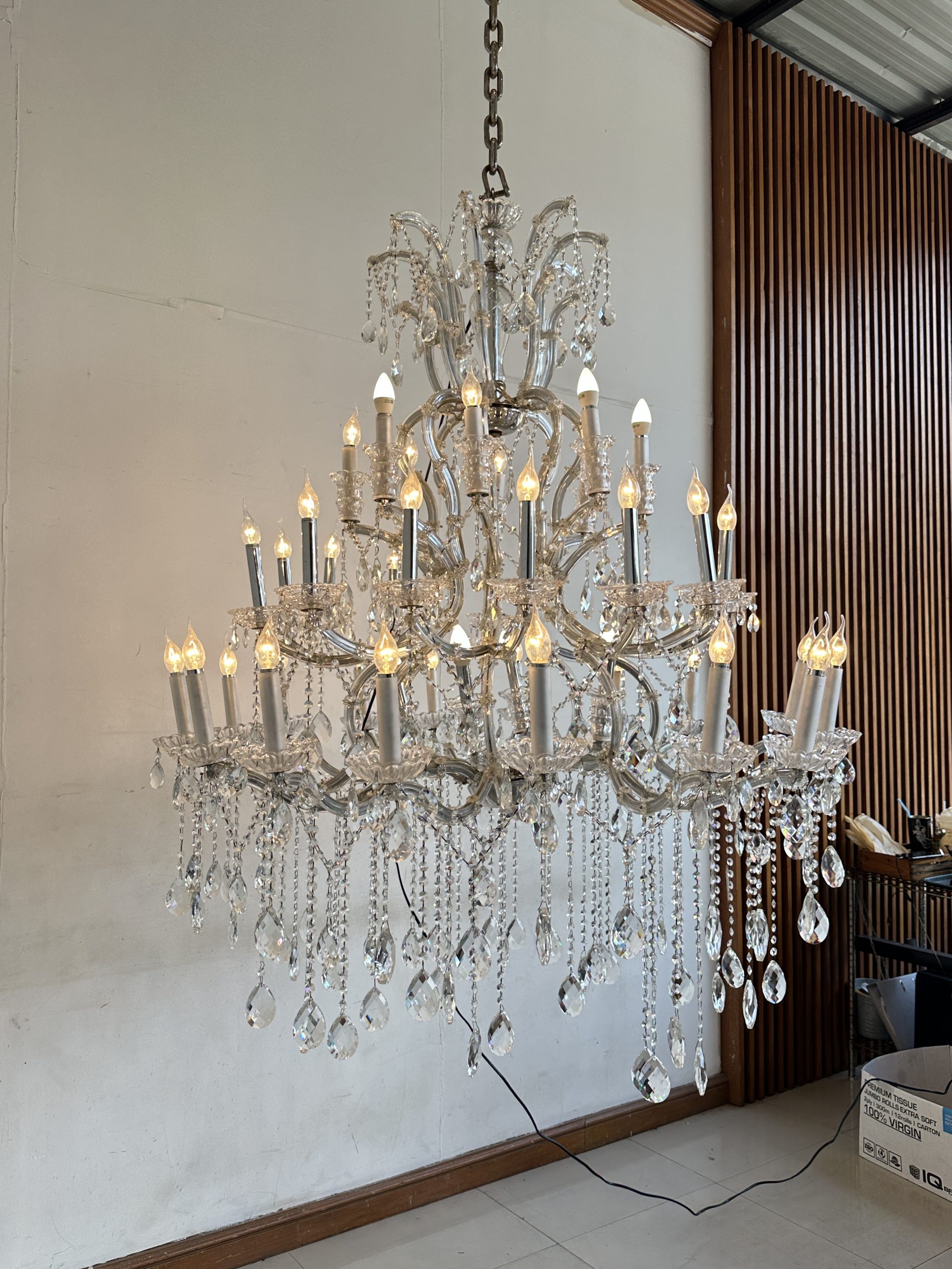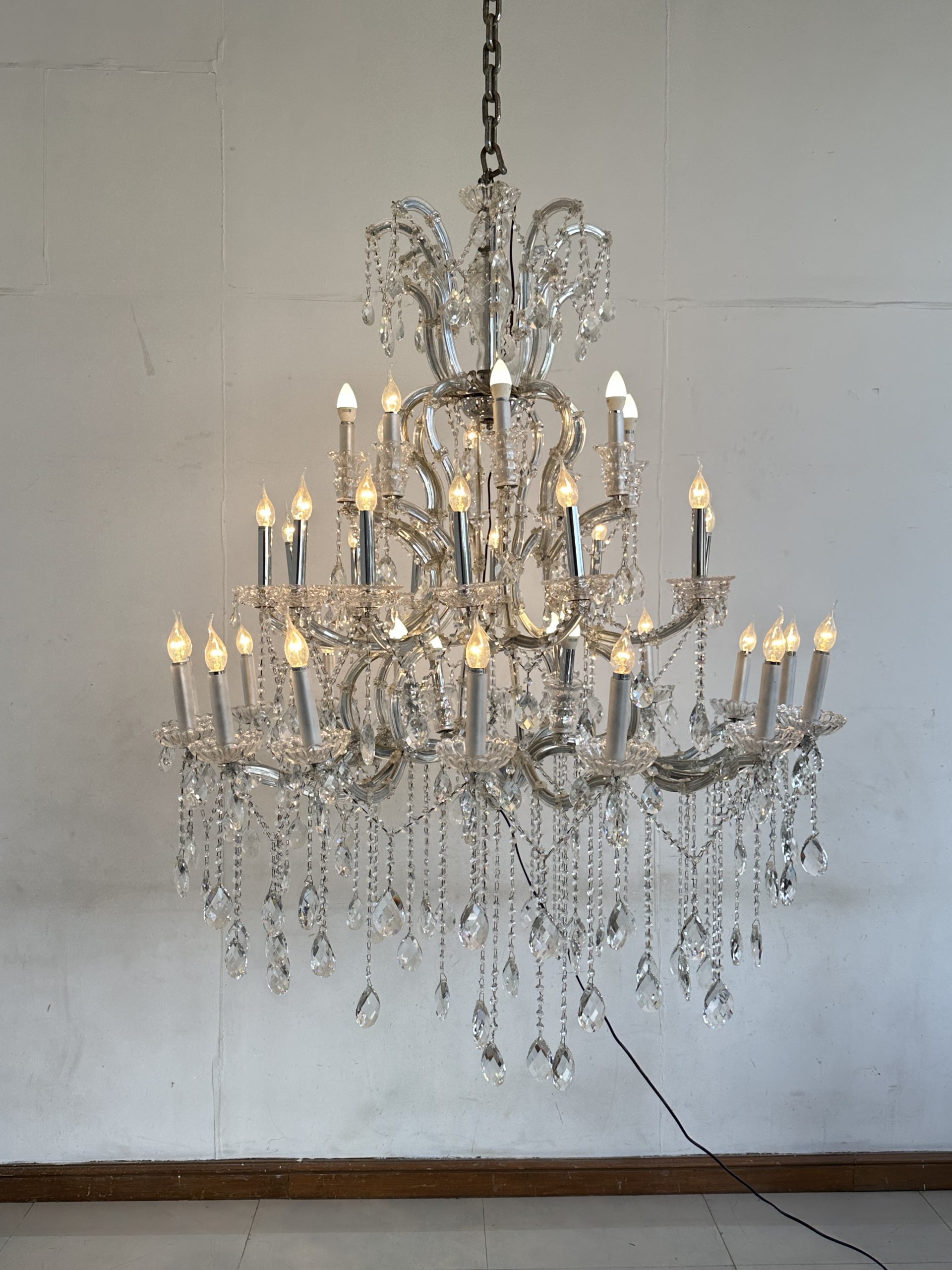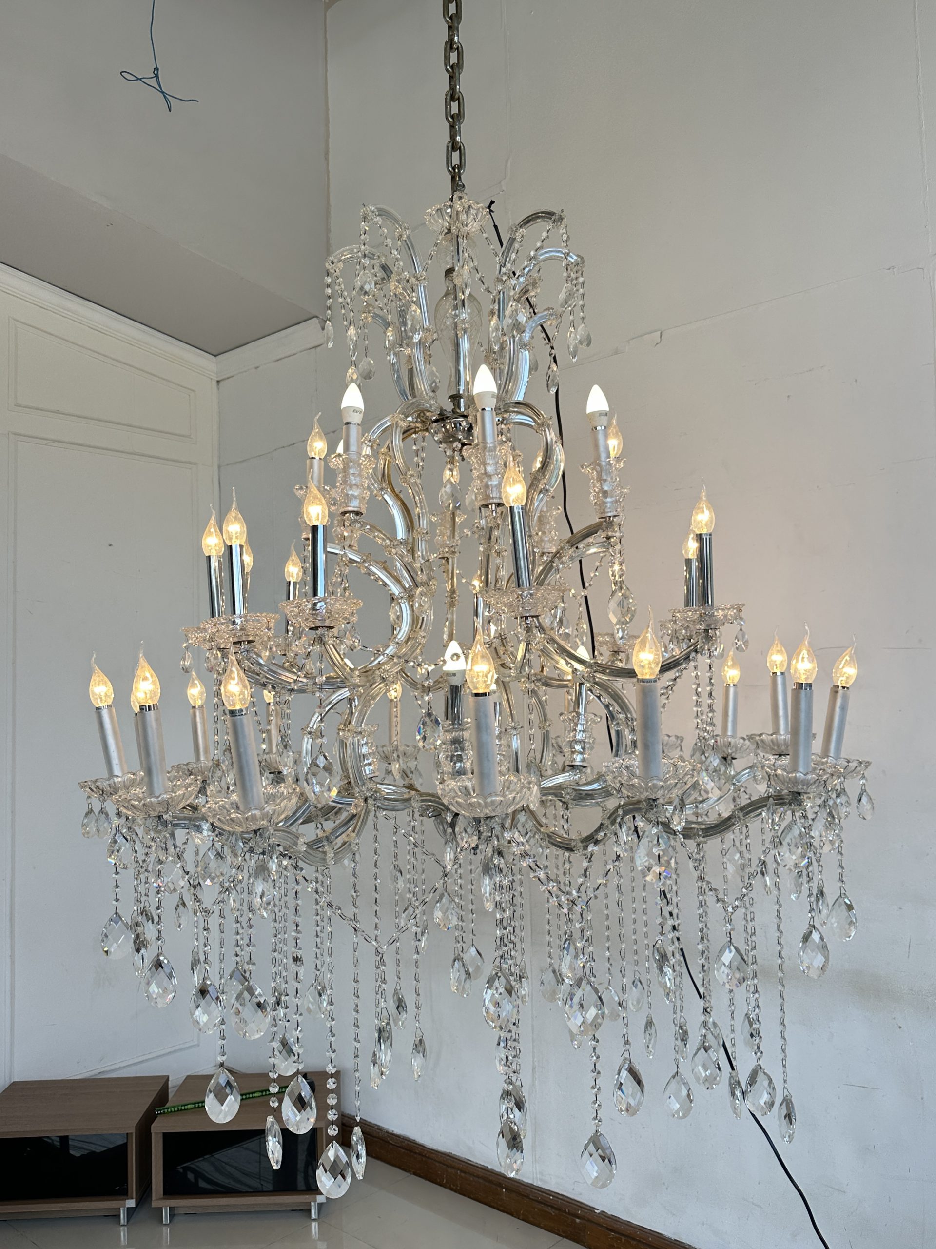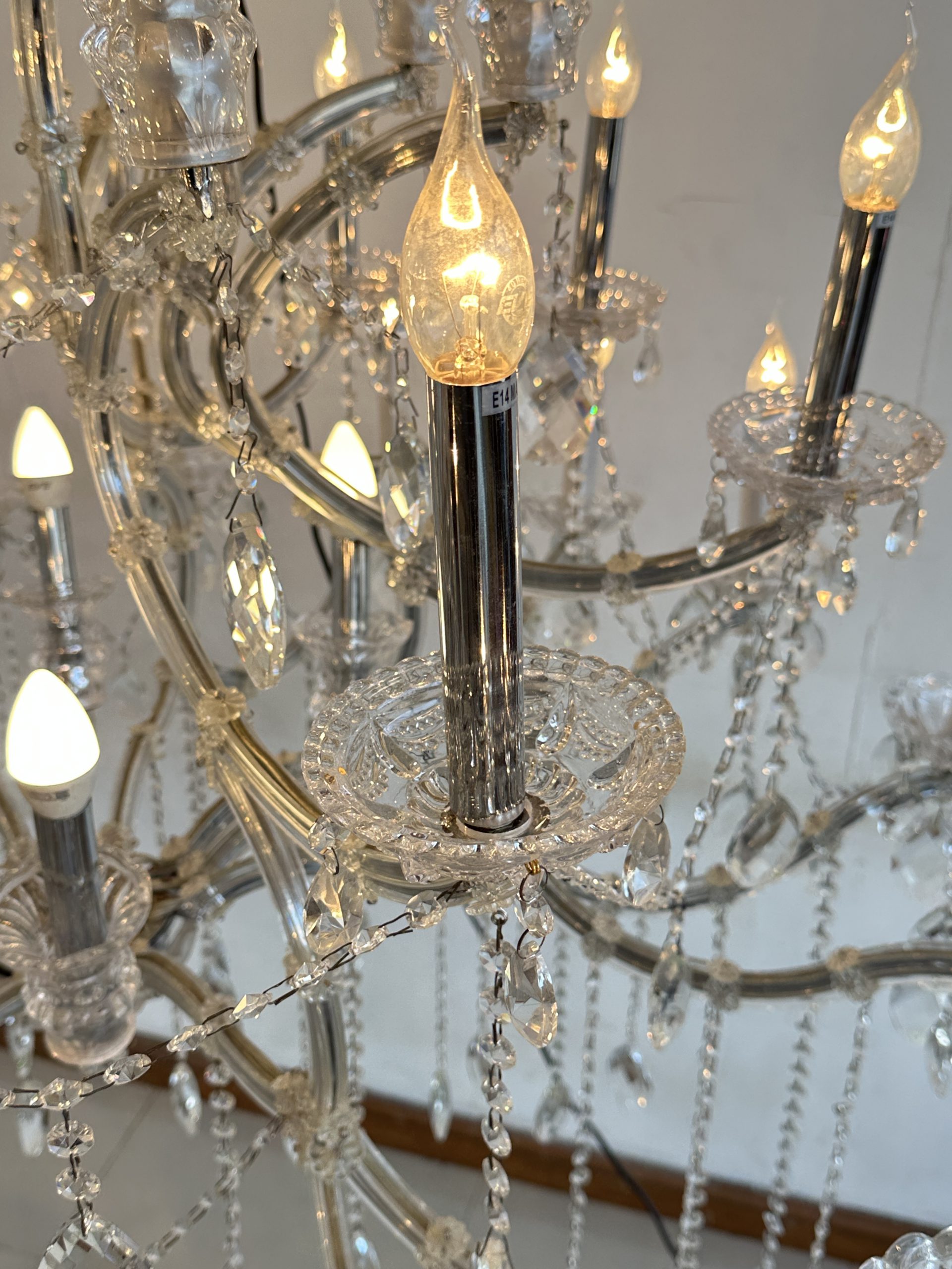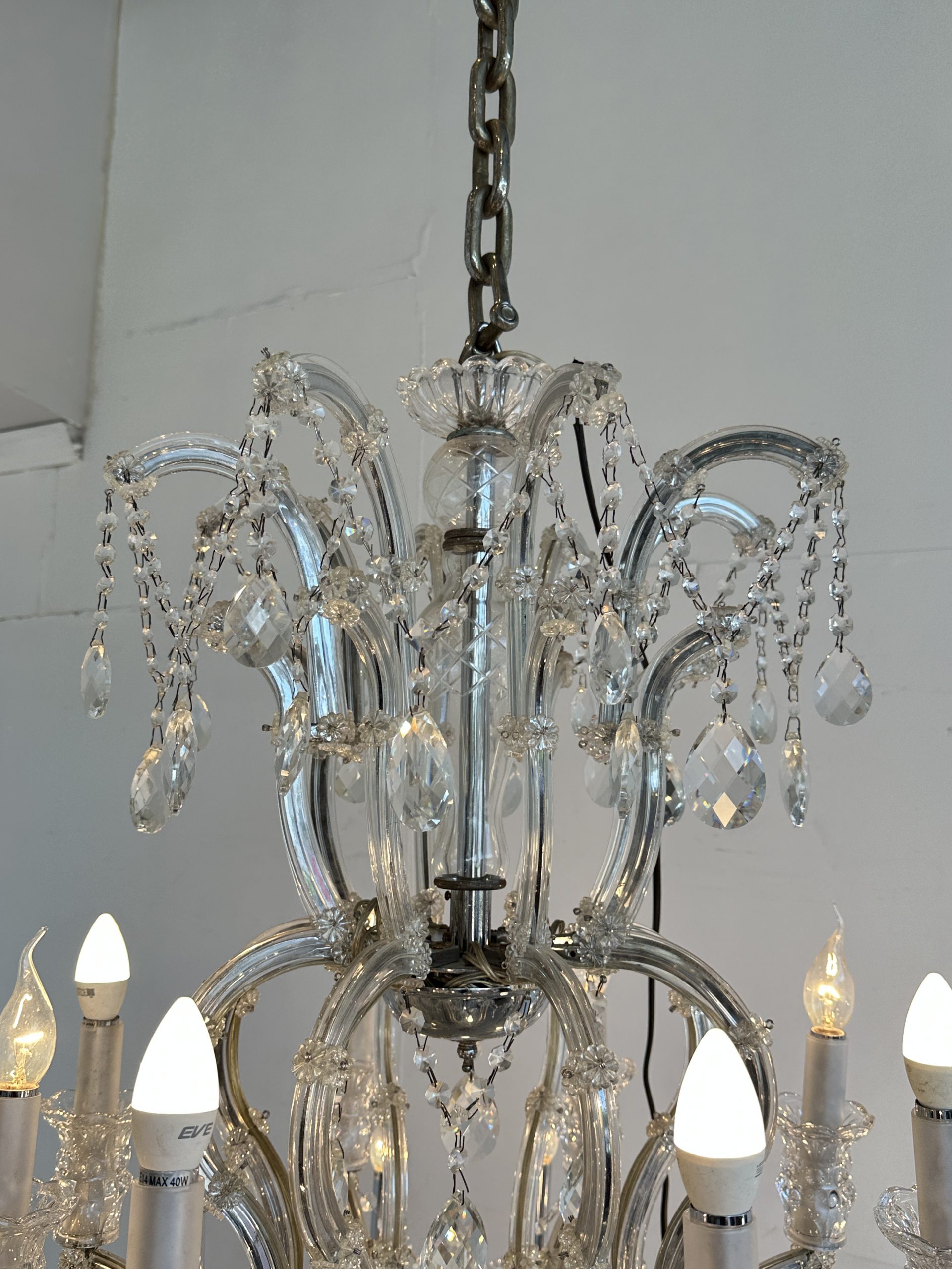 โคมไฟแชนเดอเลีย โครงเหล็ก โคมถ้วยแก้ว ประดับคริสตัล