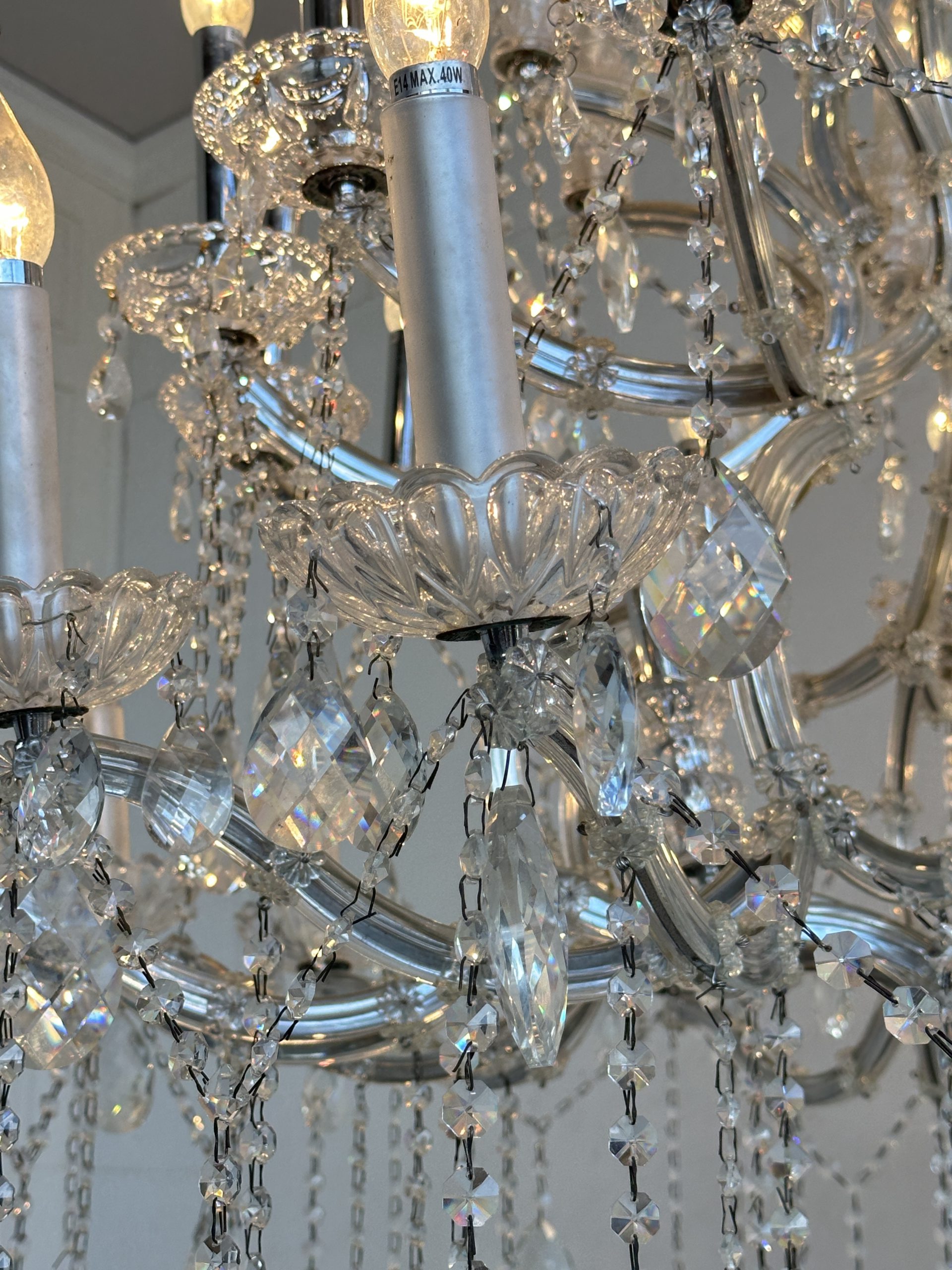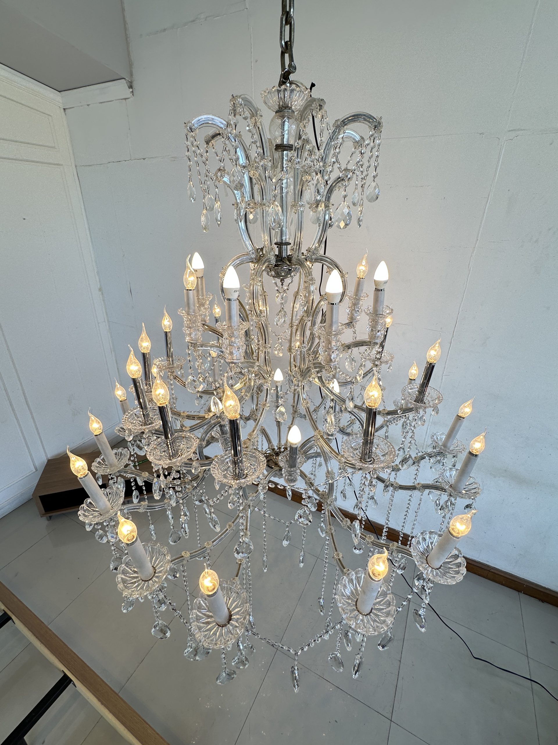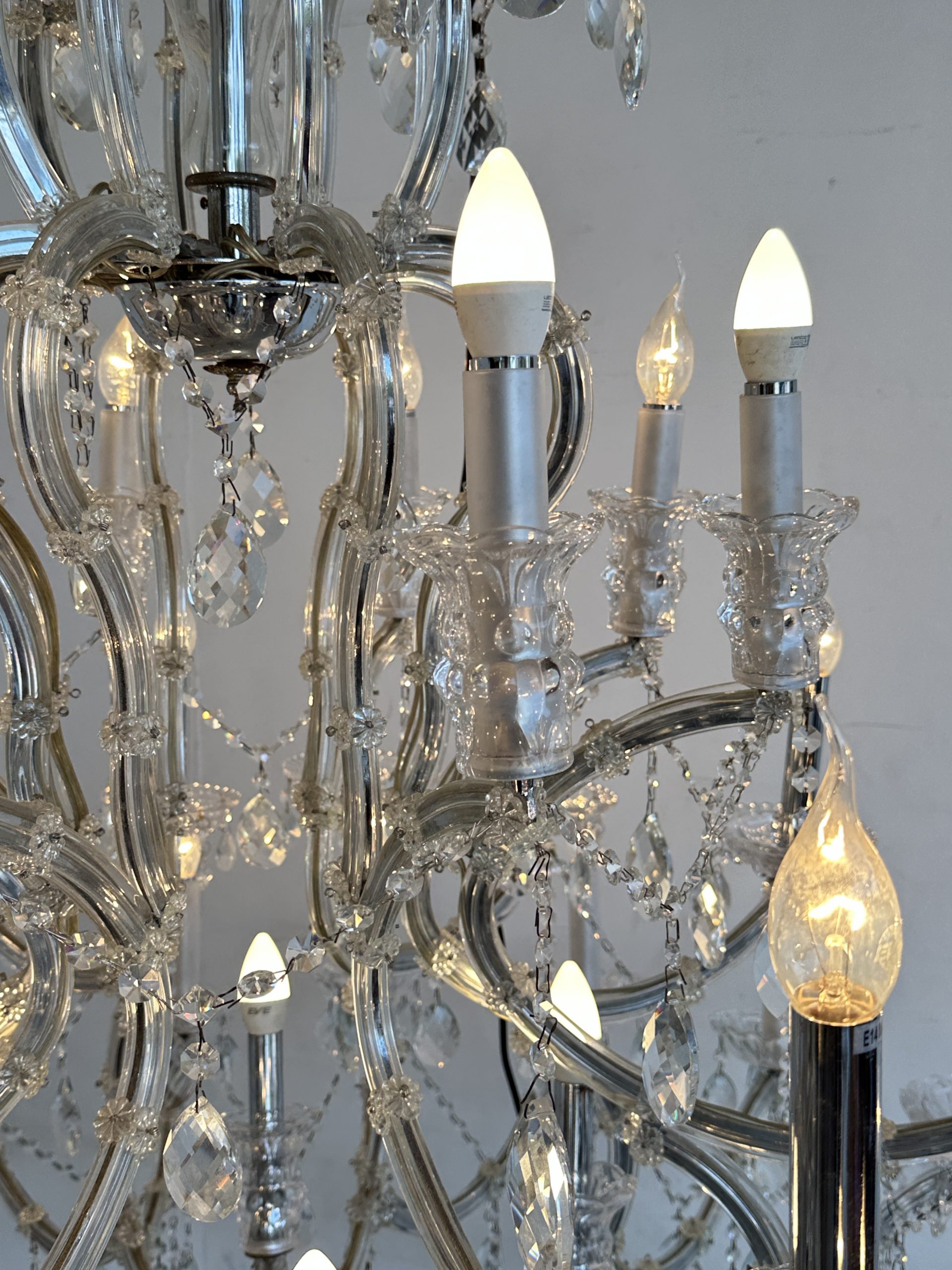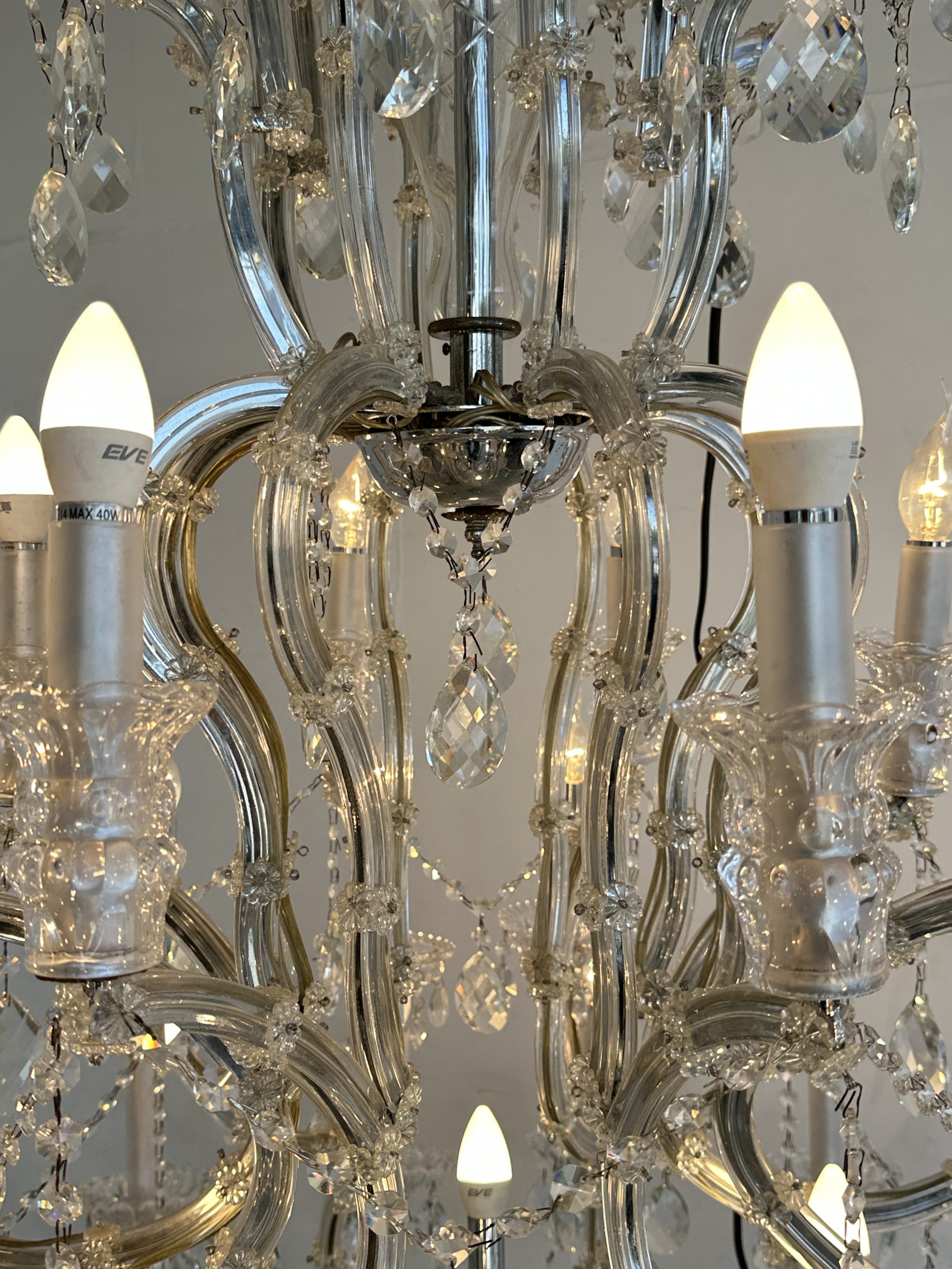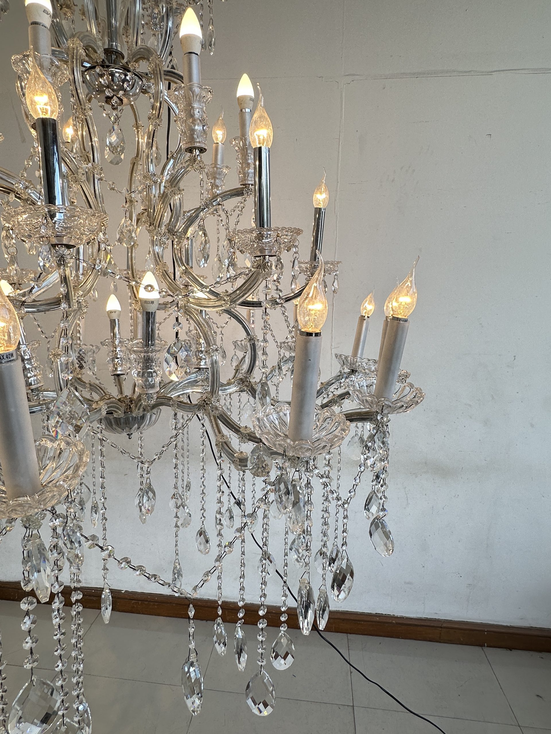 โคมไฟแชนเดอเลีย โครงเหล็ก โคมถ้วยแก้ว ประดับคริสตัล