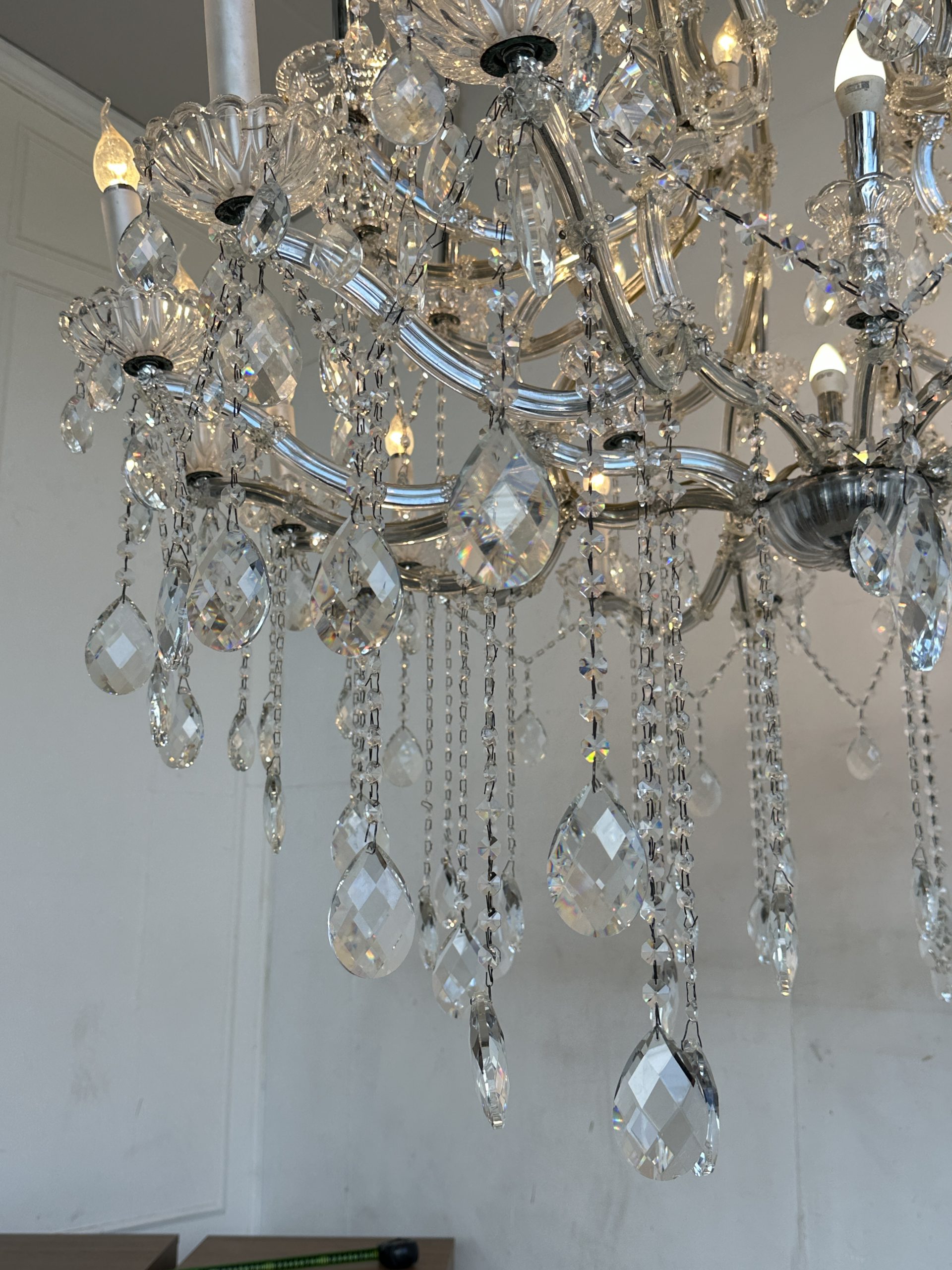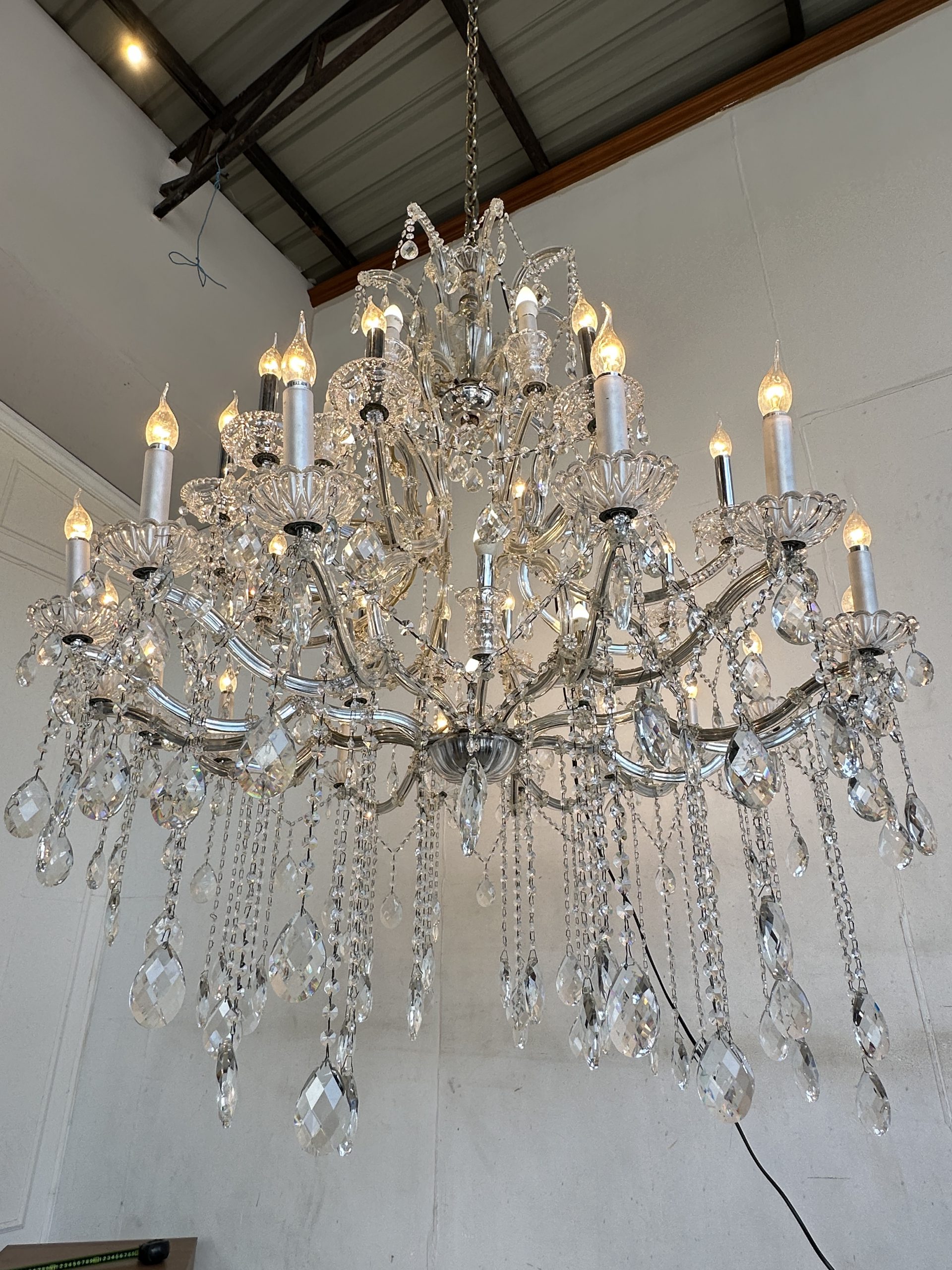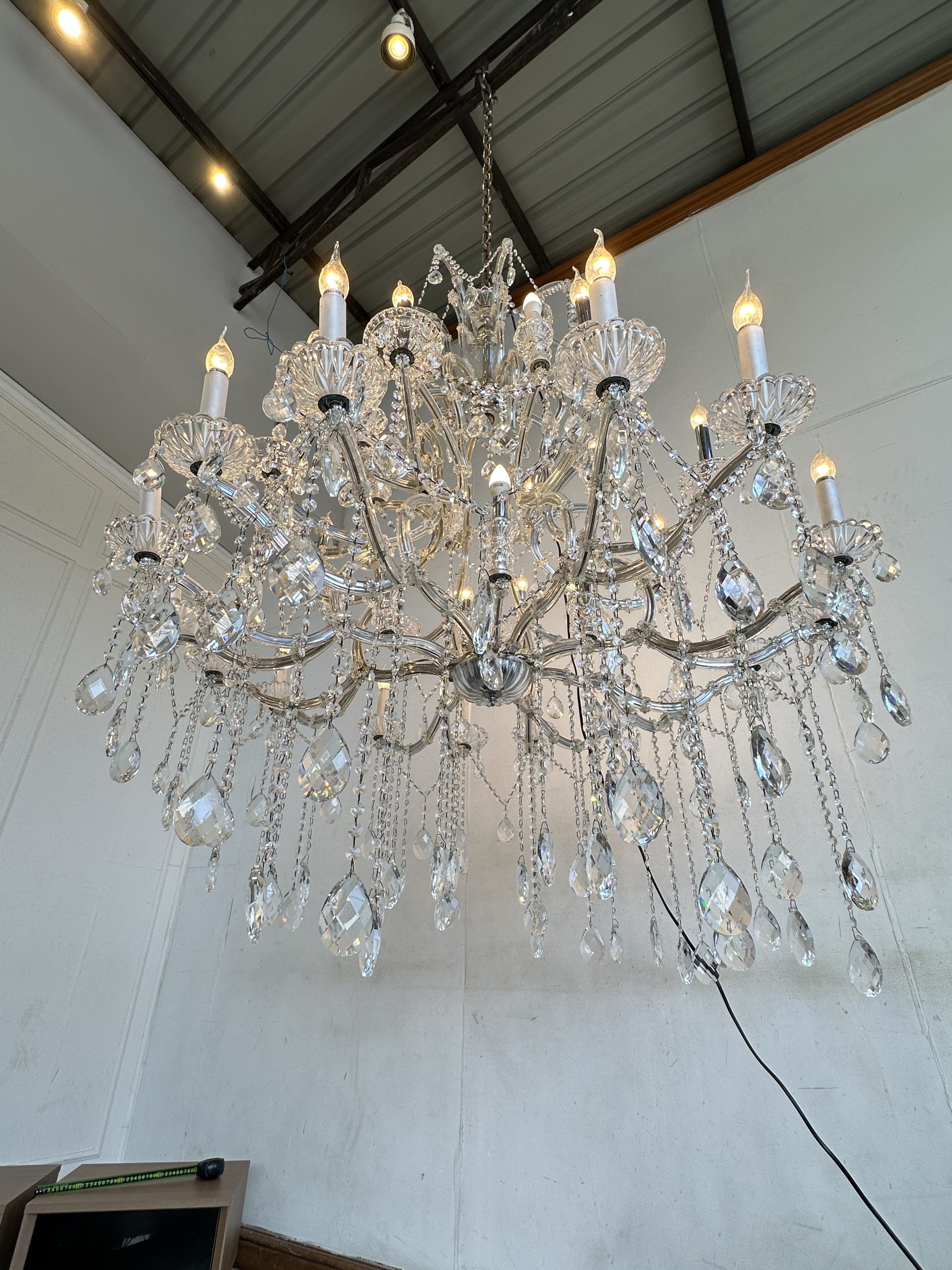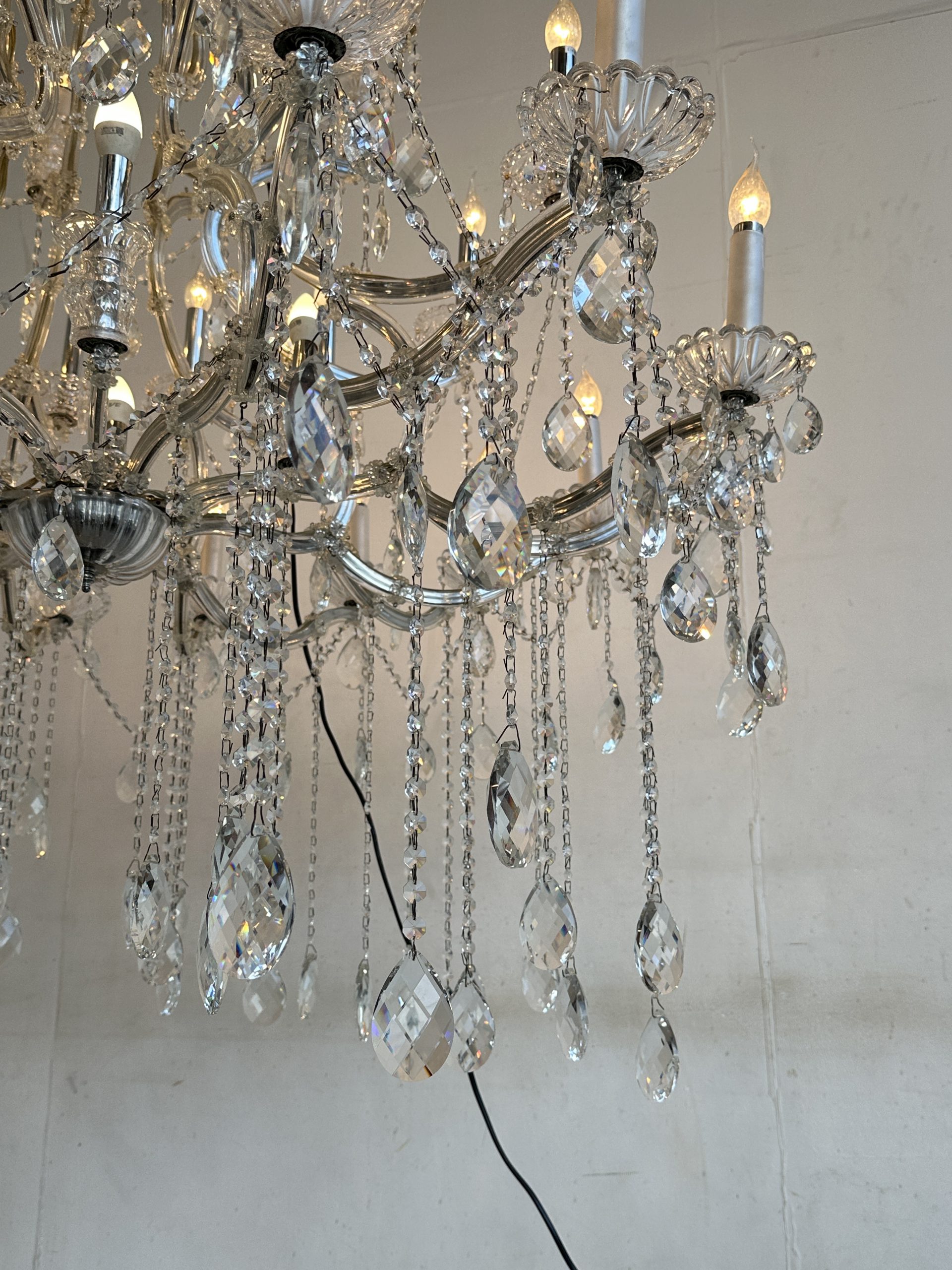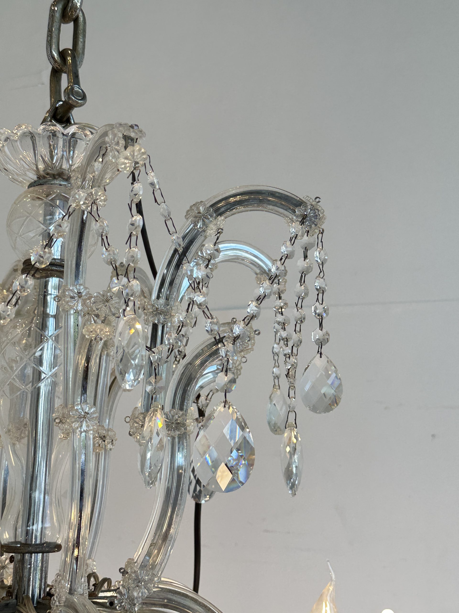 โคมไฟแชนเดอเลีย โครงเหล็ก โคมถ้วยแก้ว ประดับคริสตัล