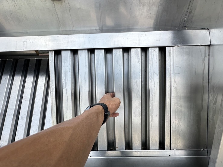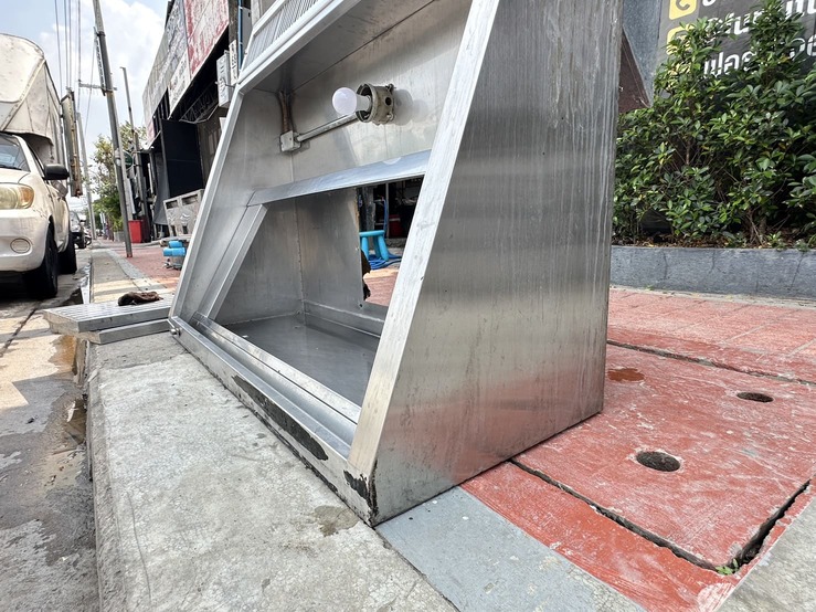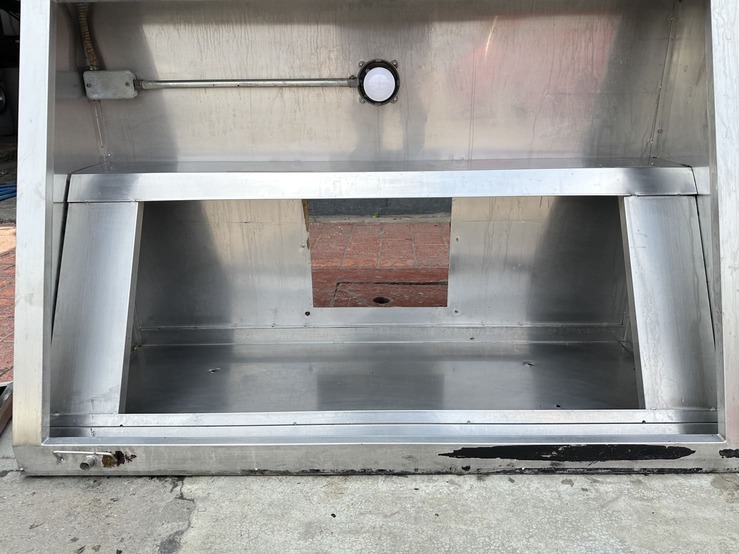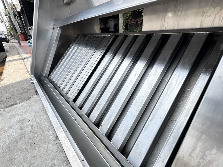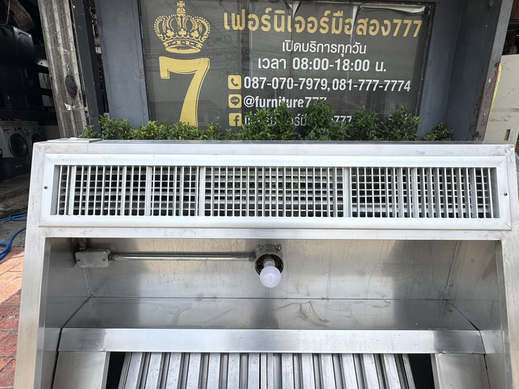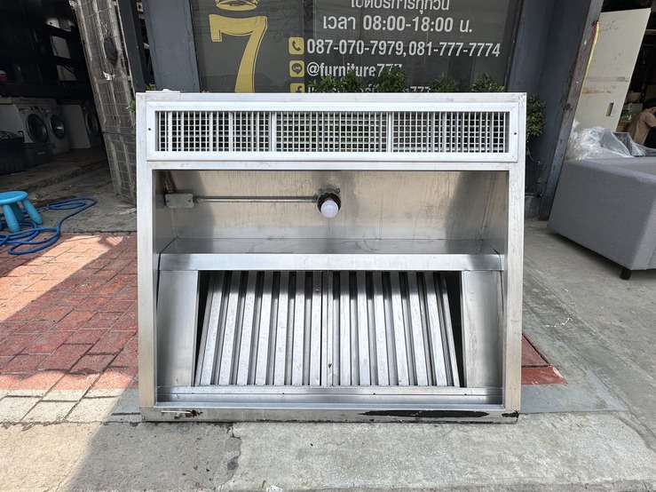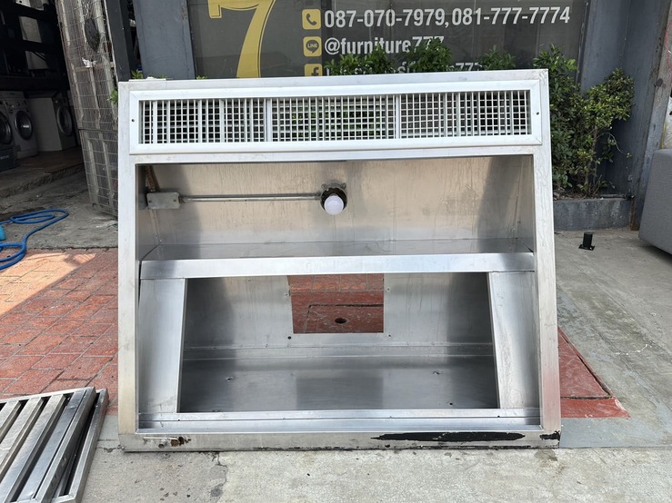 โครงฮูดดูดควันสแตนเลส เกรด 304 ตะแกรงปิด 2 แผ่น ด้านบนติดไฟส่องสว่าง (ขนาดกว้าง 130 CM.)