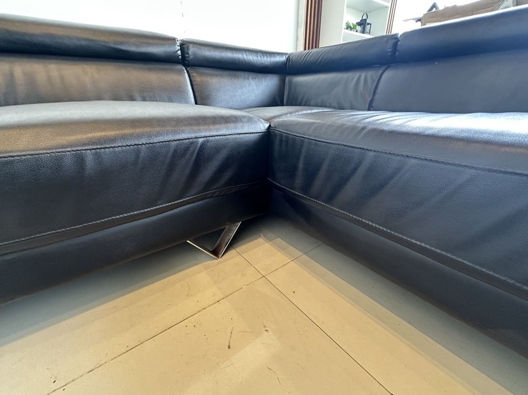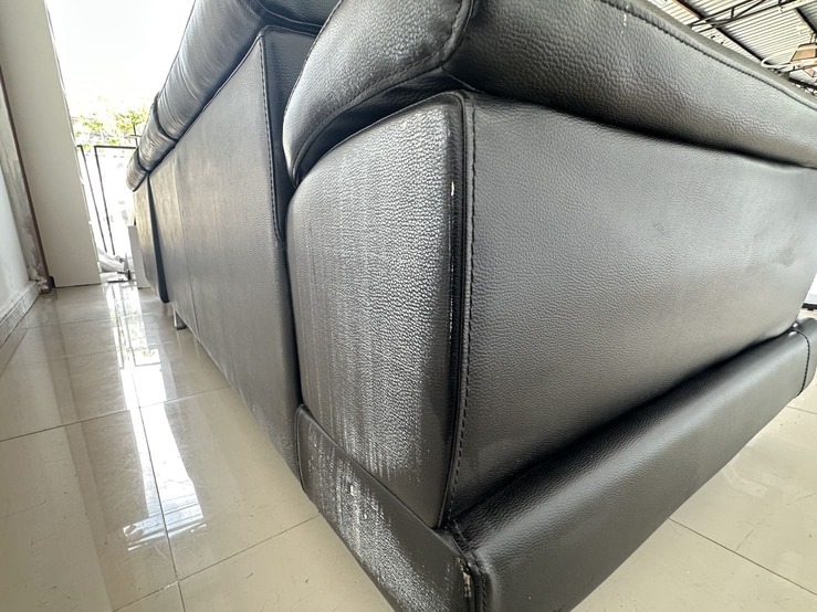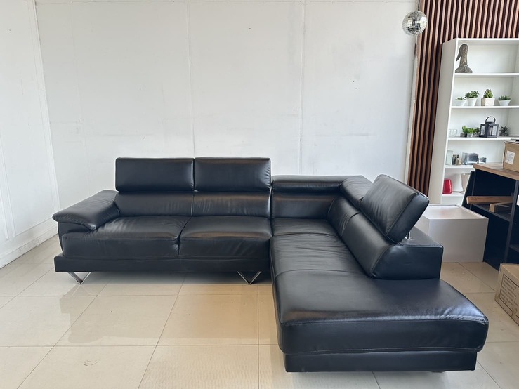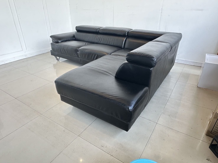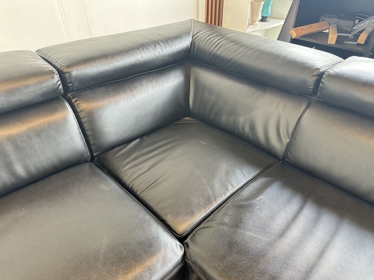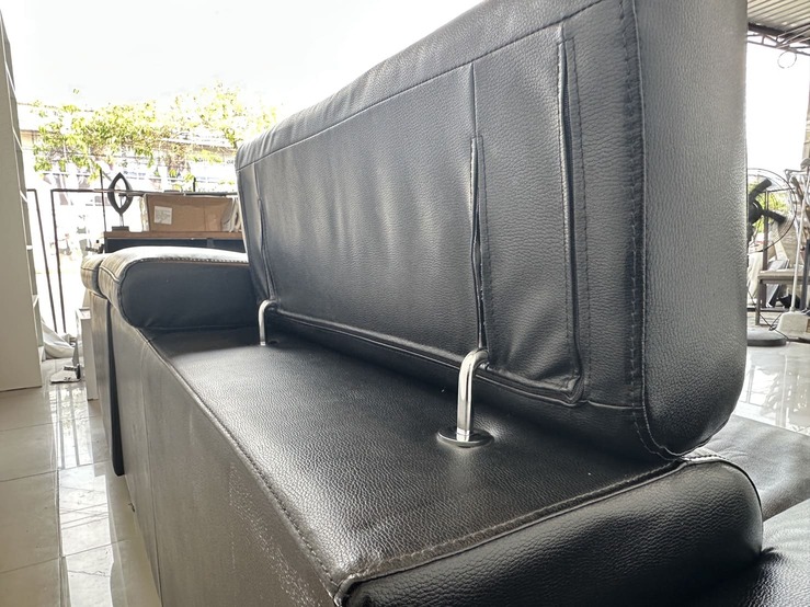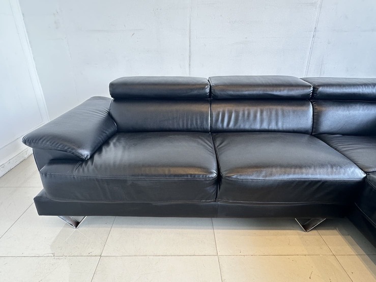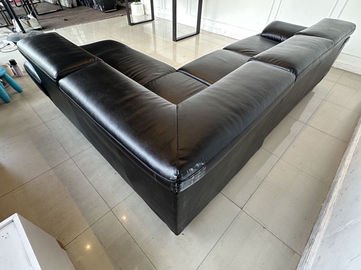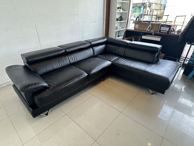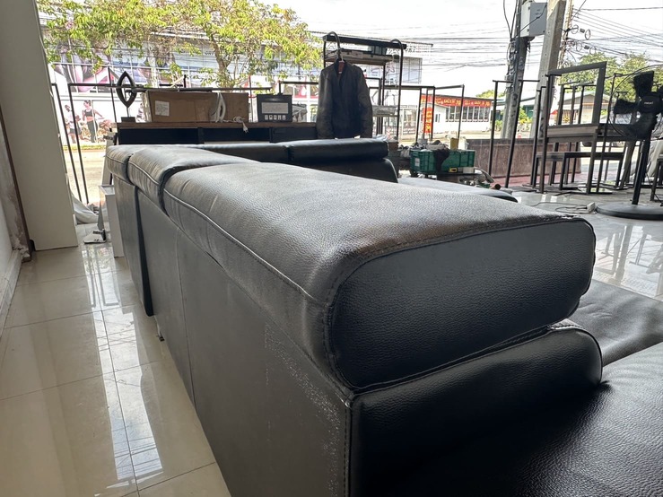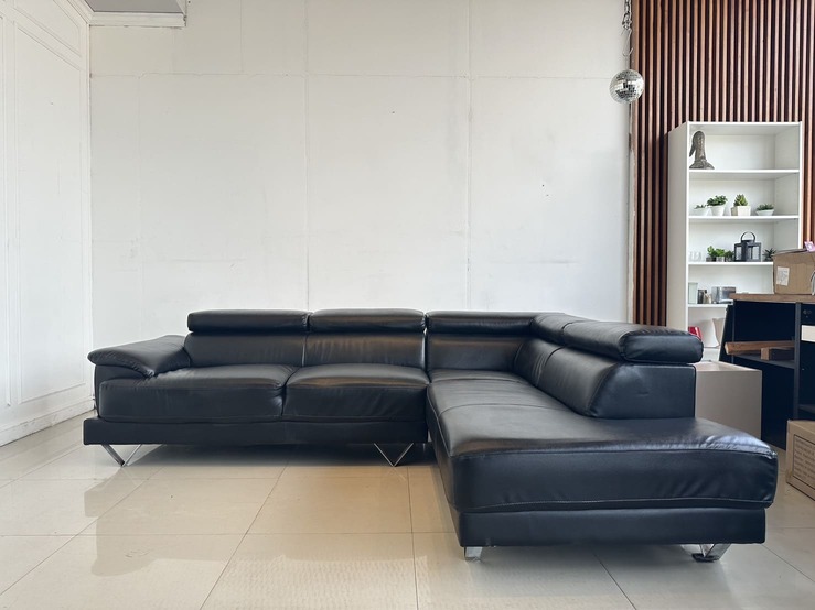 โซฟาแอลเข้ามุม เบาะหนัง PU สีดำ พักคอปรับขึ้นลงได้