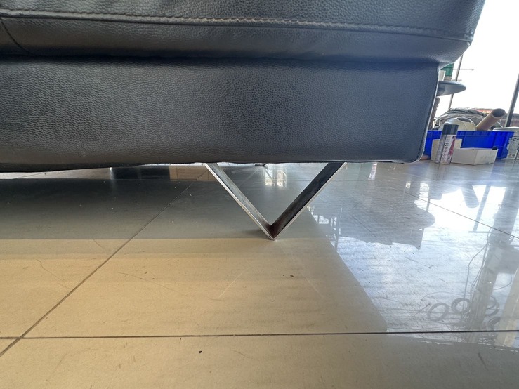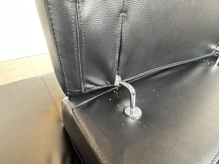 โซฟาแอลเข้ามุม เบาะหนัง PU สีดำ พักคอปรับขึ้นลงได้ โครงไม้จริง ขาเหล็ก