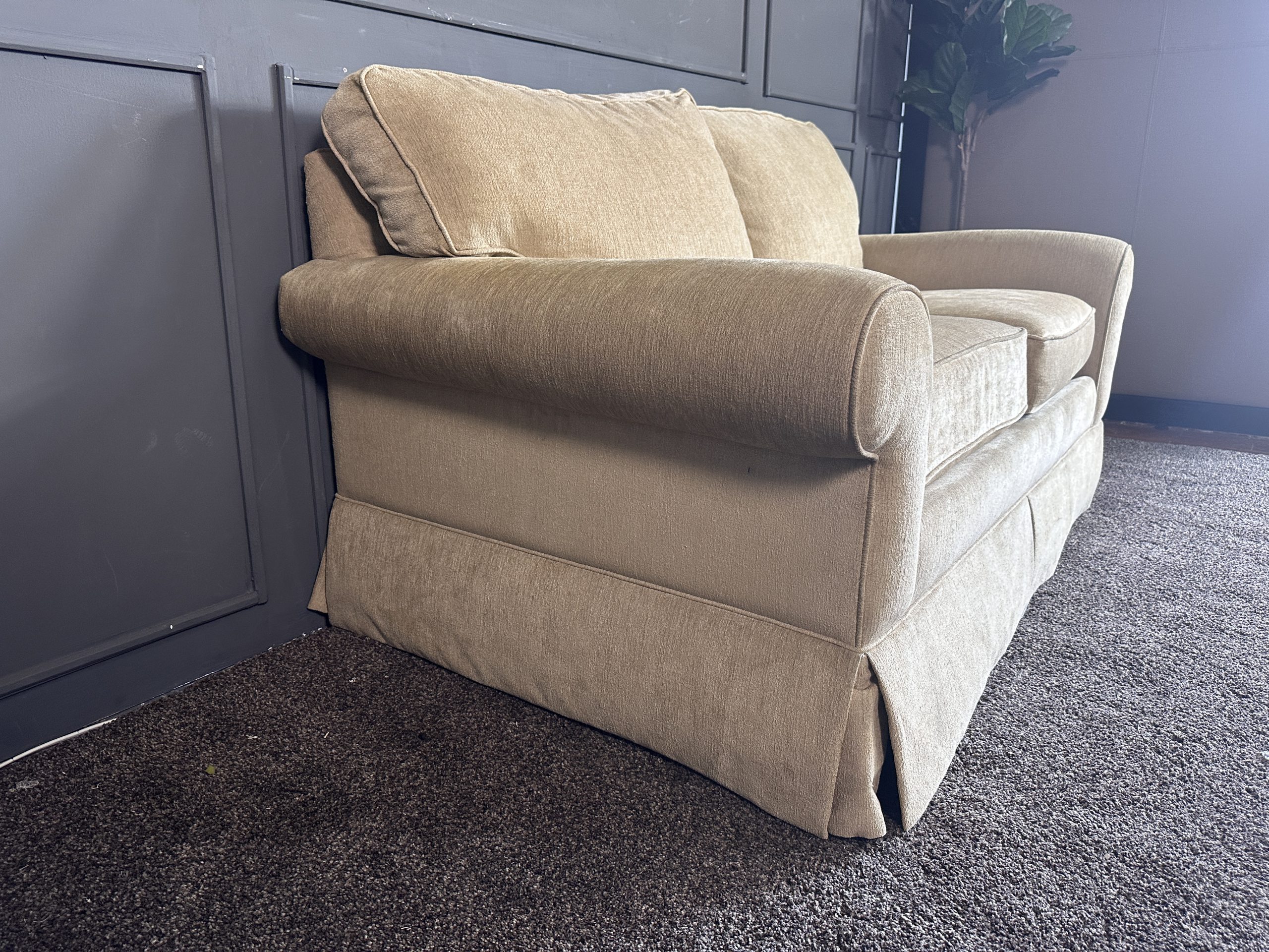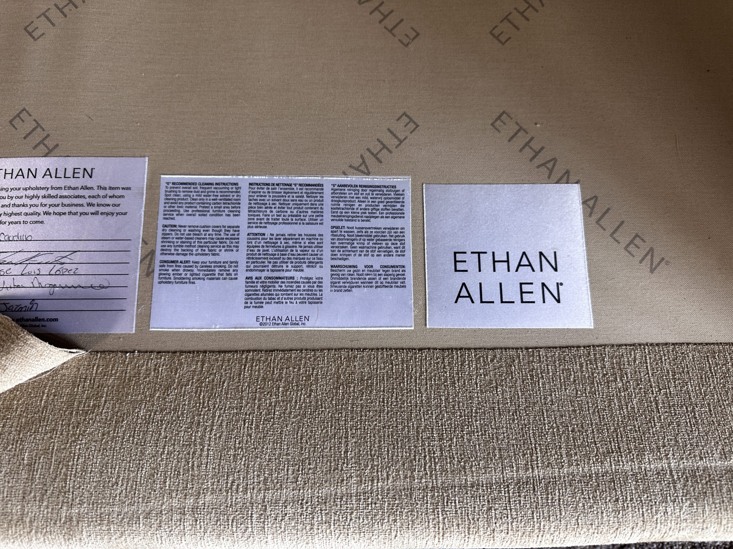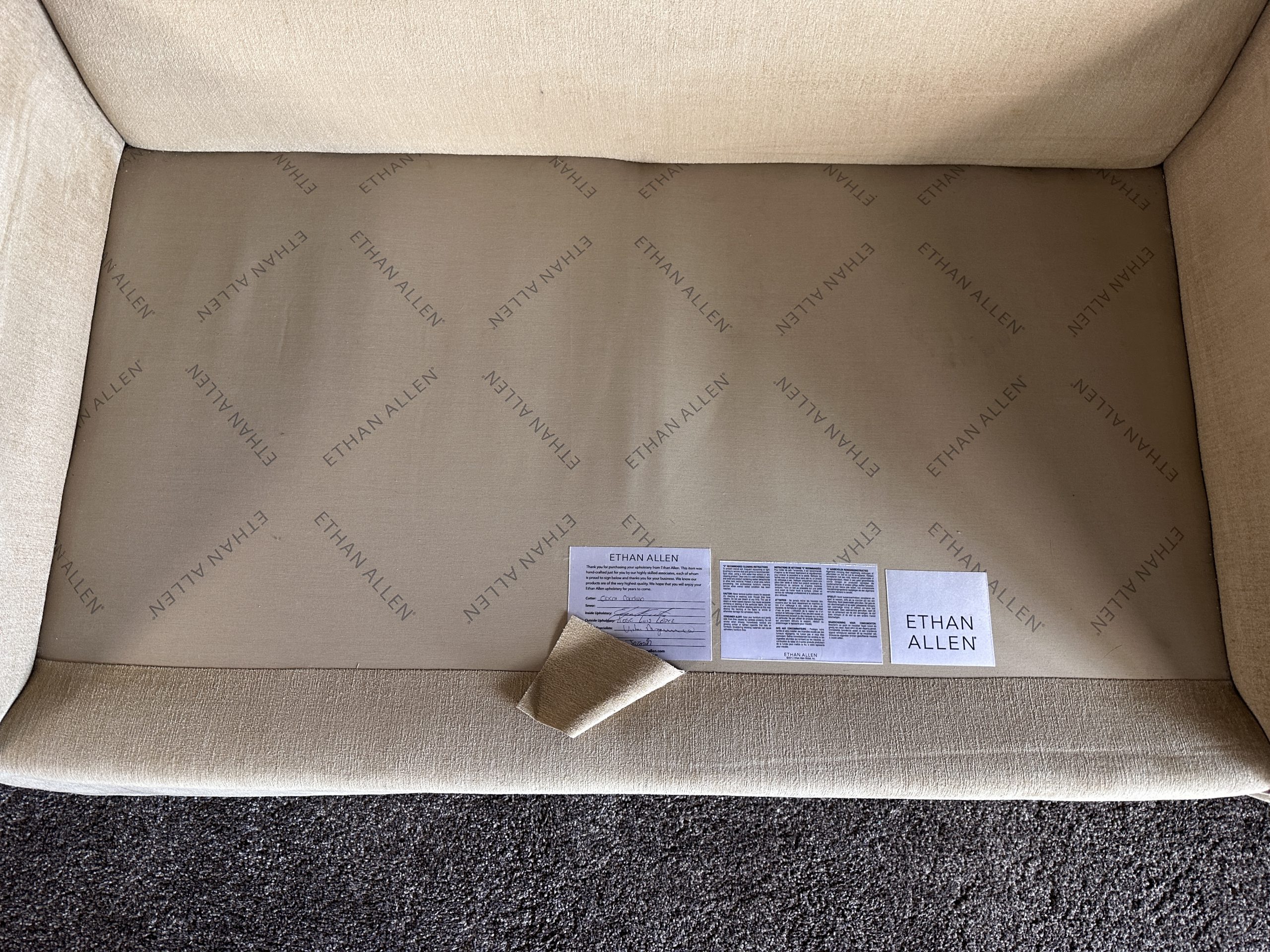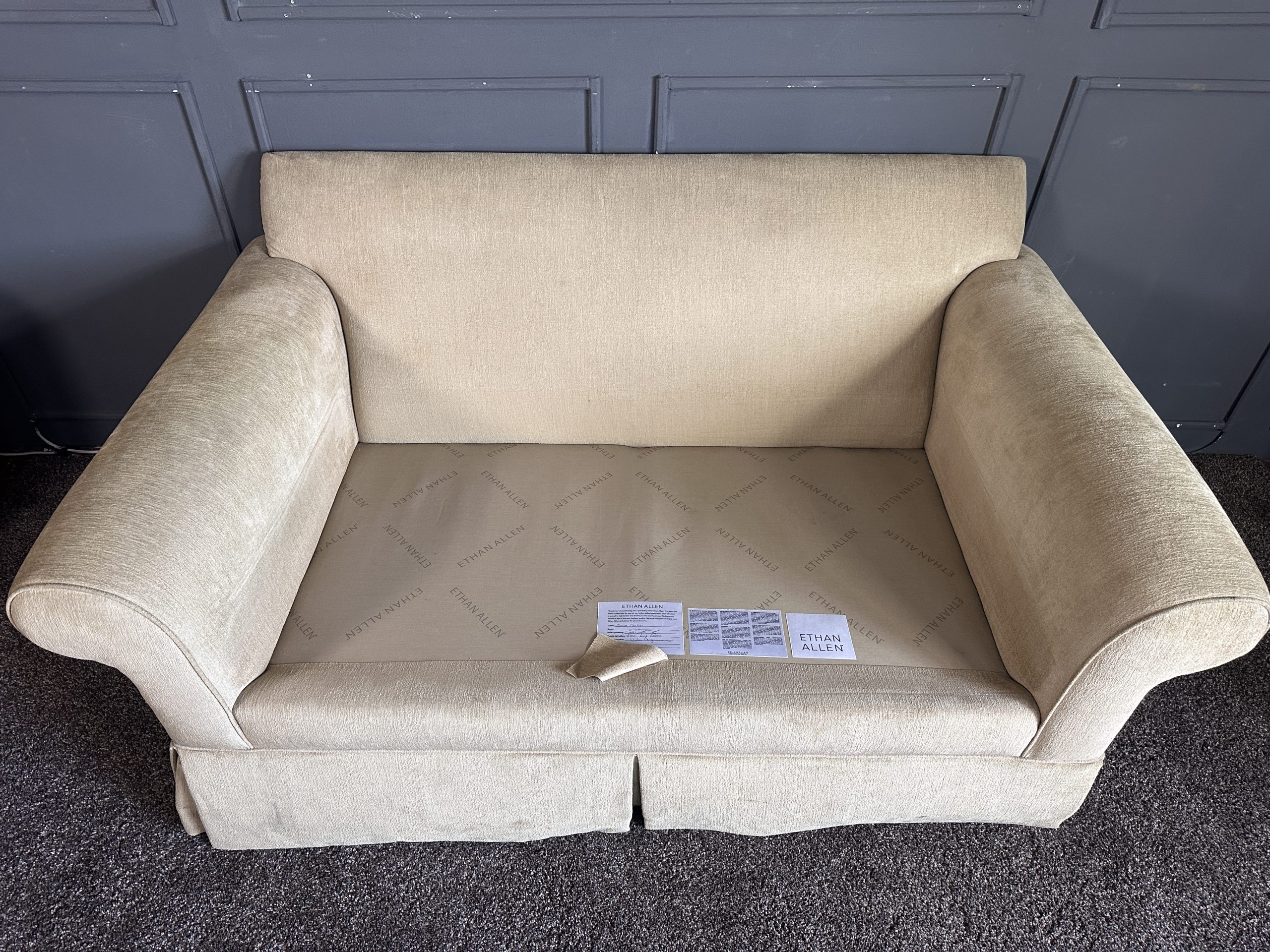 โซฟา 2 ที่นั่ง เบาะผ้าลูกฟูกสีครีม แบรนด์ ETHAN ALLEN
