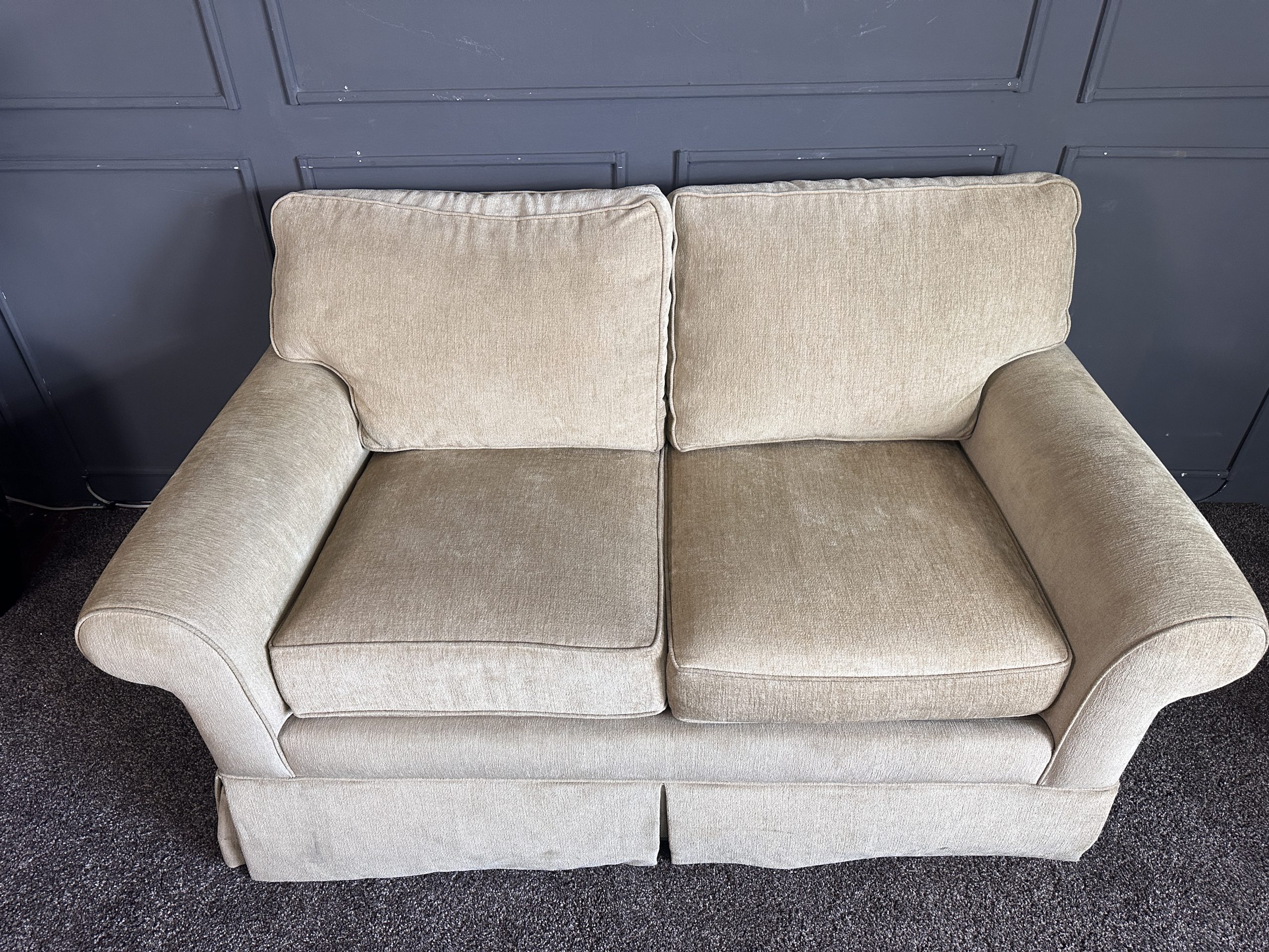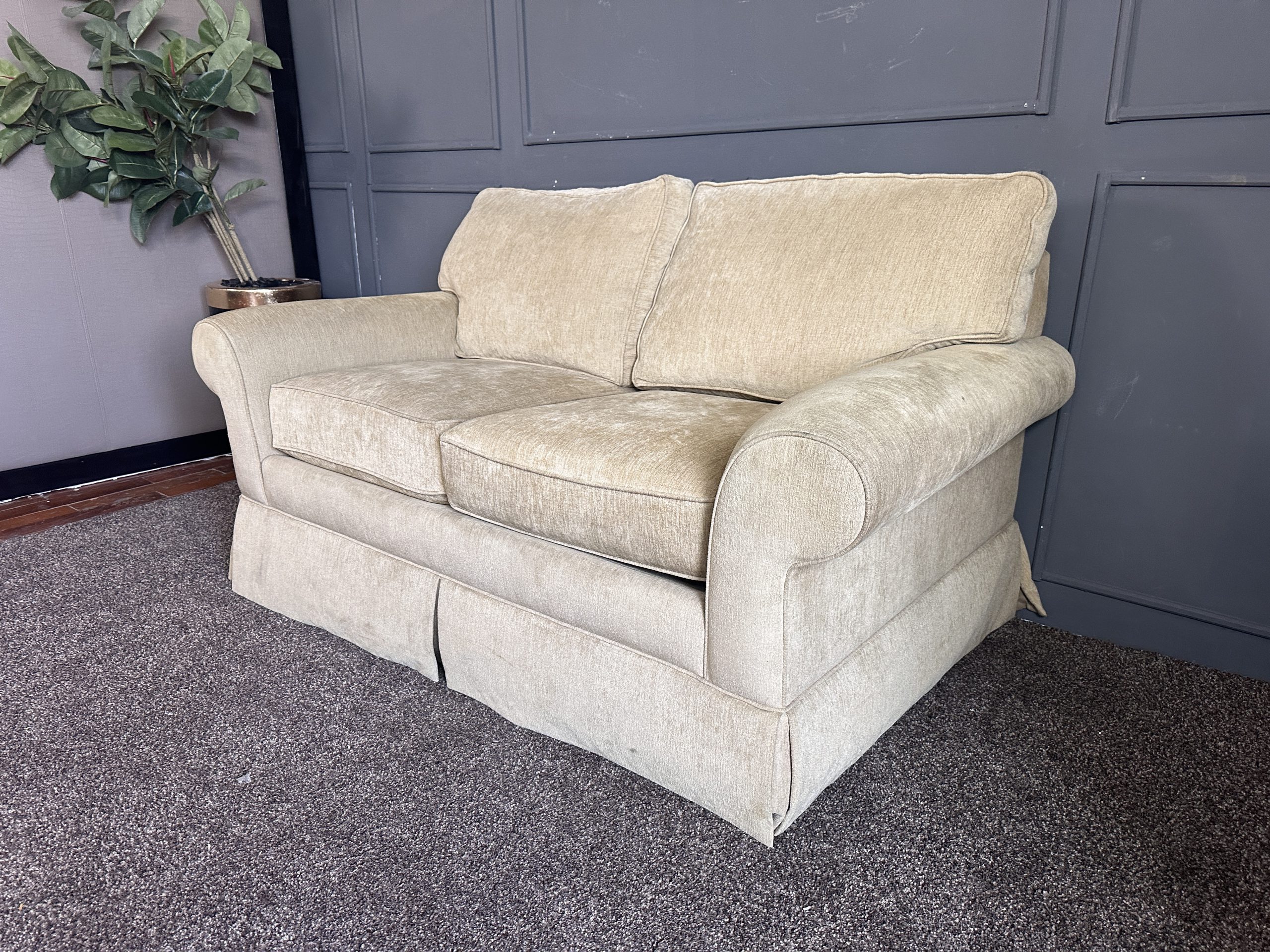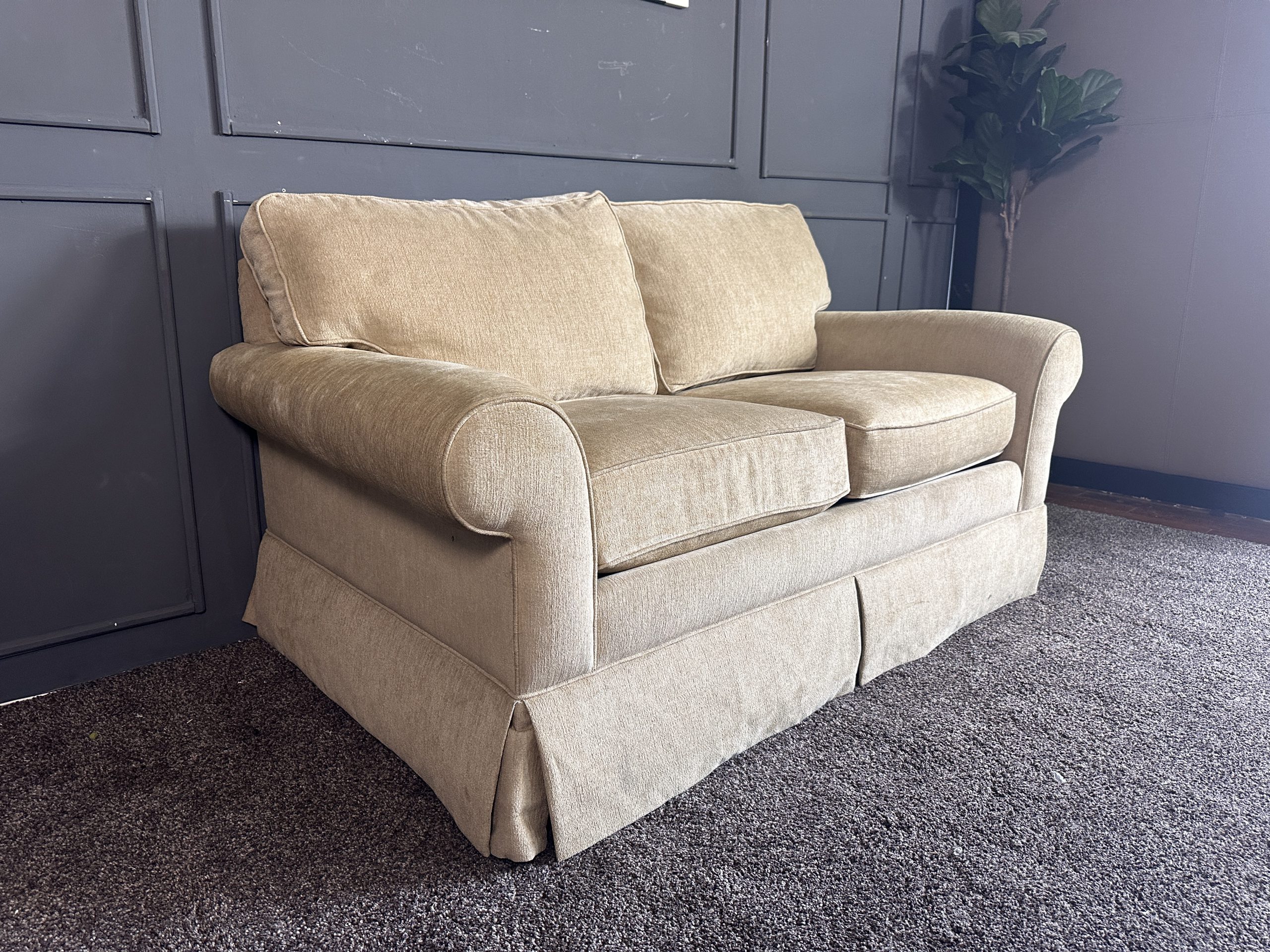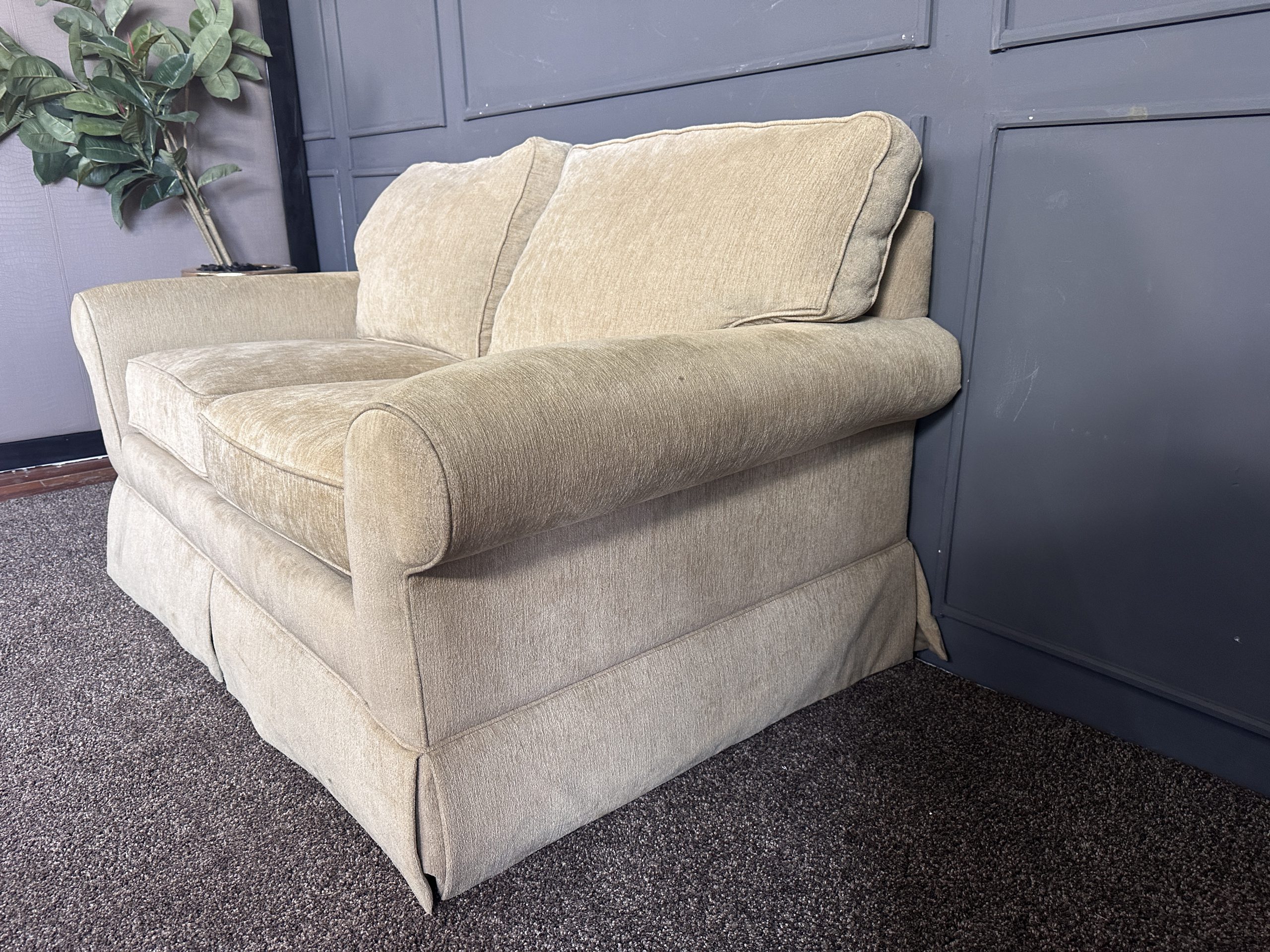 โซฟา 2 ที่นั่ง เบาะผ้าลูกฟูกสีครีม แบรนด์ ETHAN ALLEN