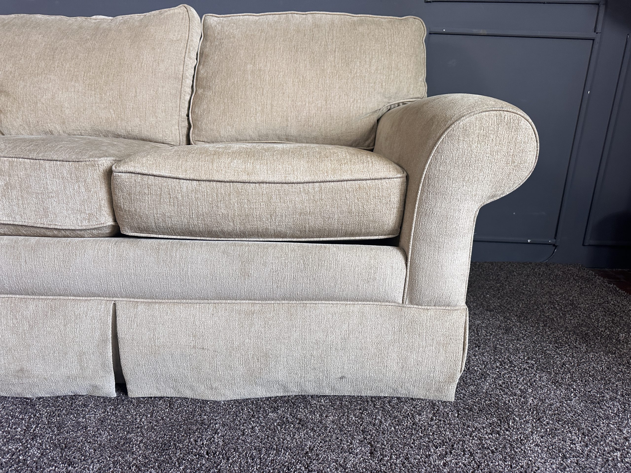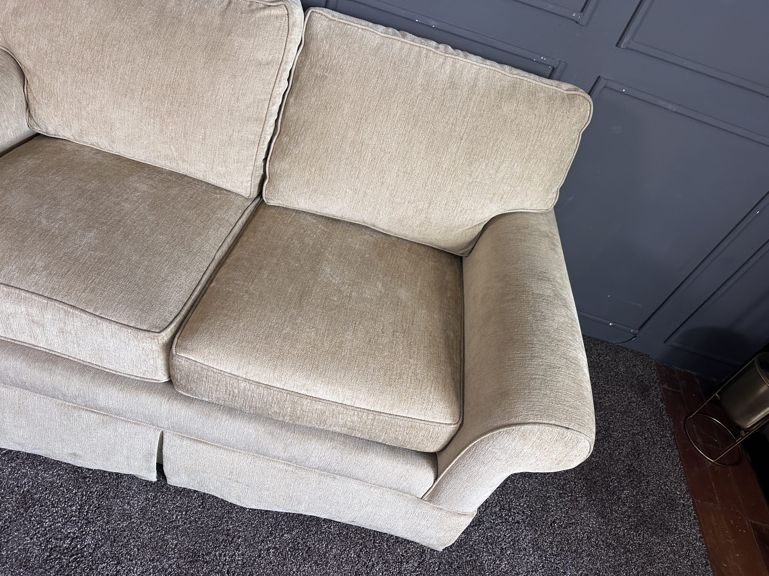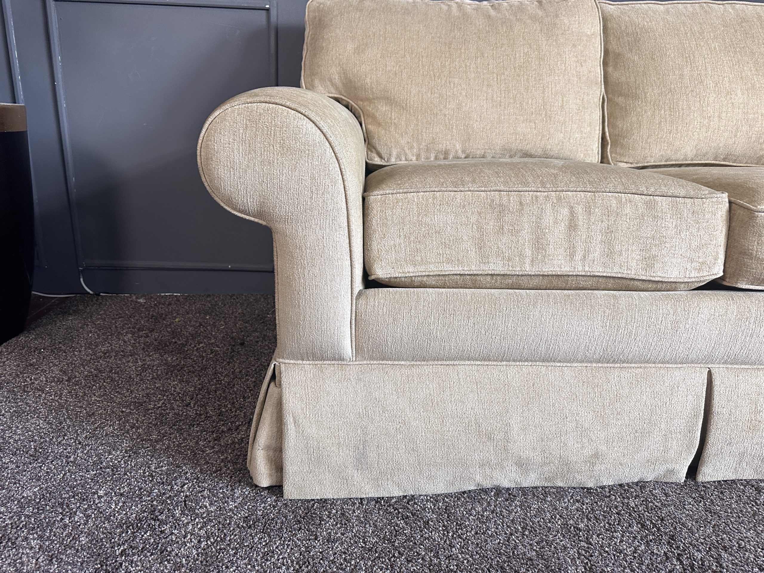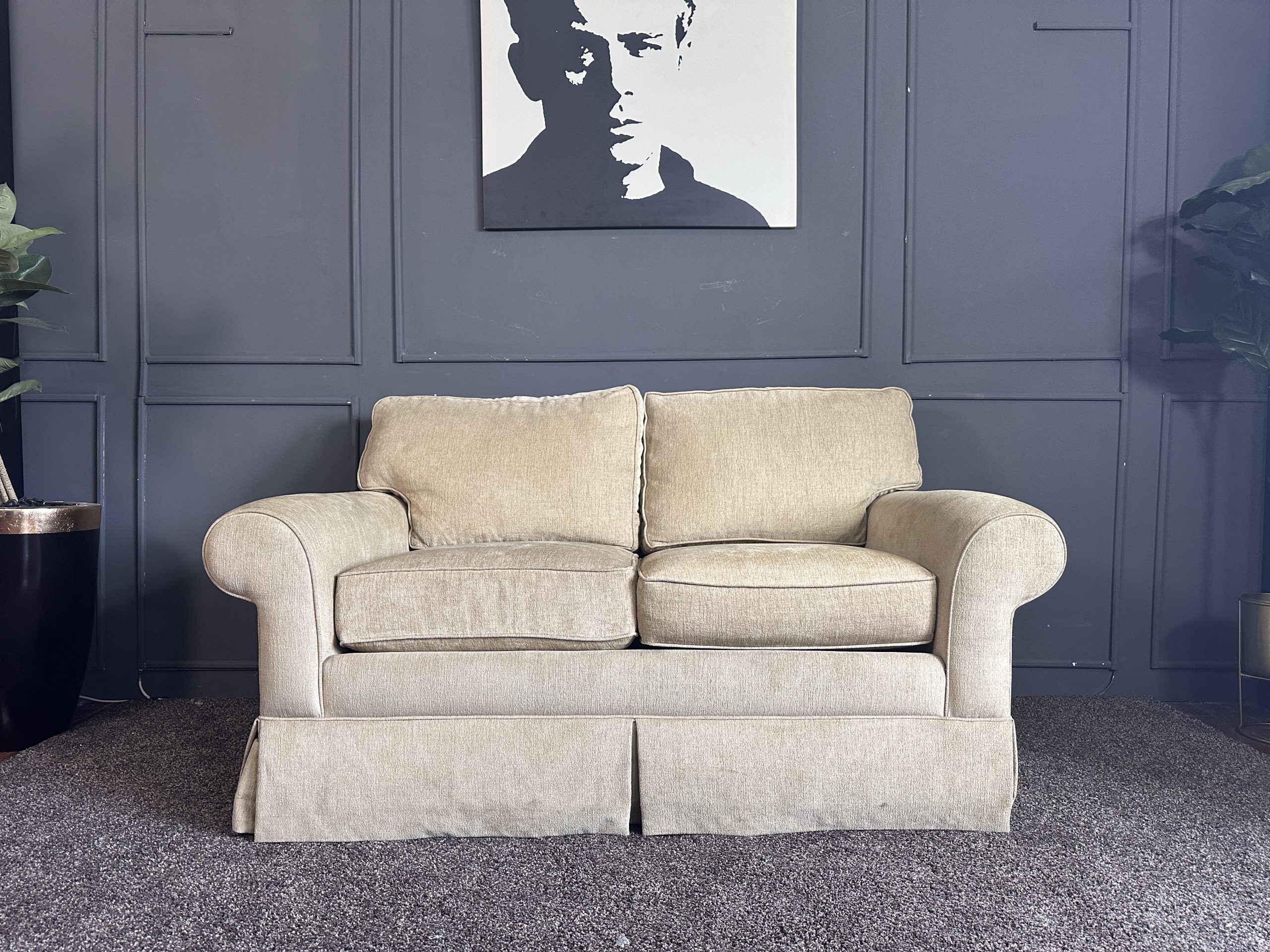 โซฟา 2 ที่นั่ง เบาะผ้าลูกฟูกสีครีม แบรนด์ ETHAN ALLEN