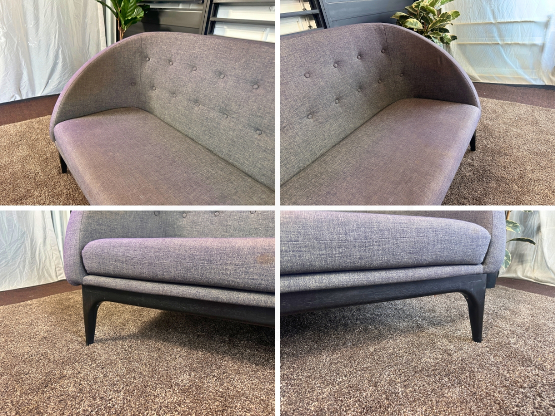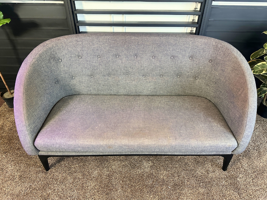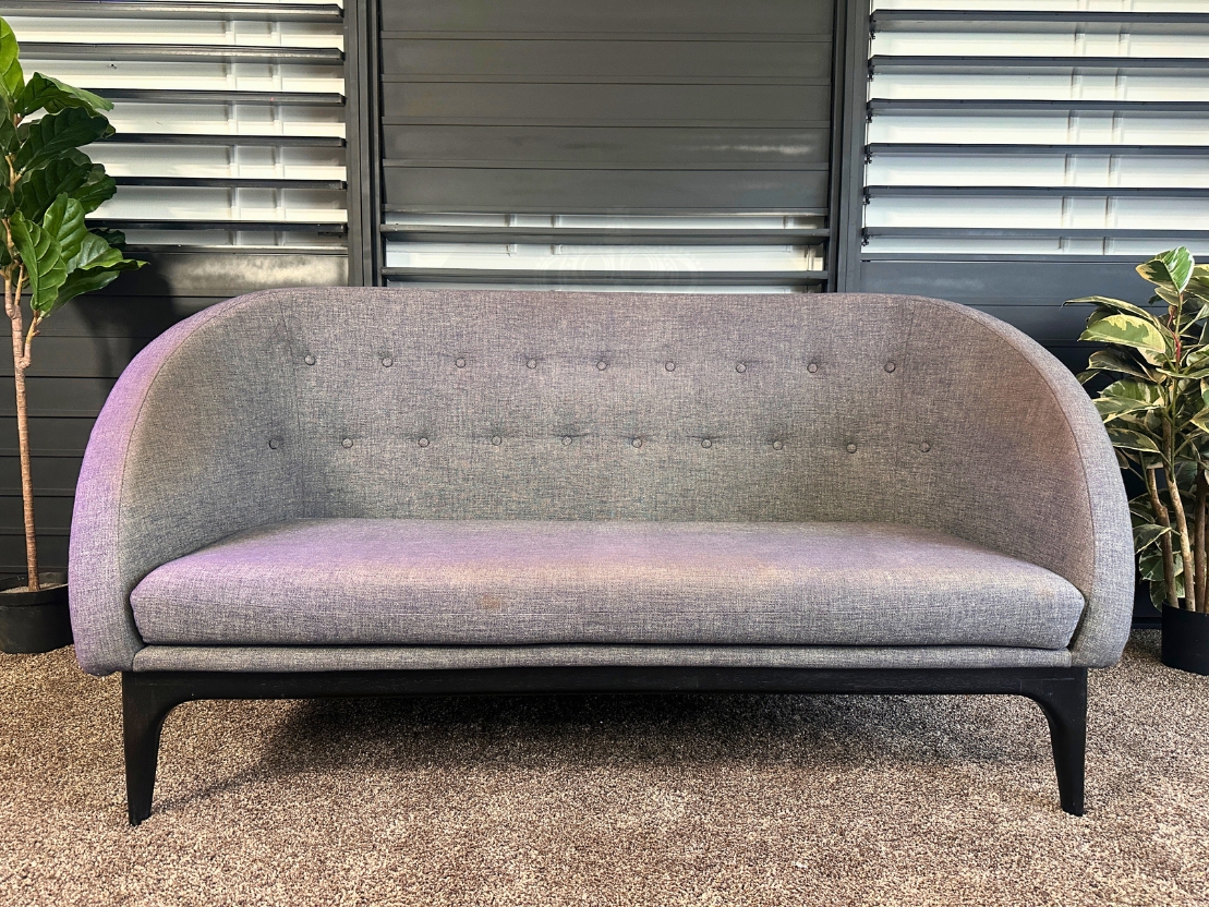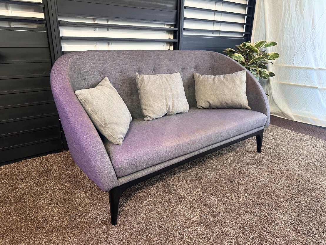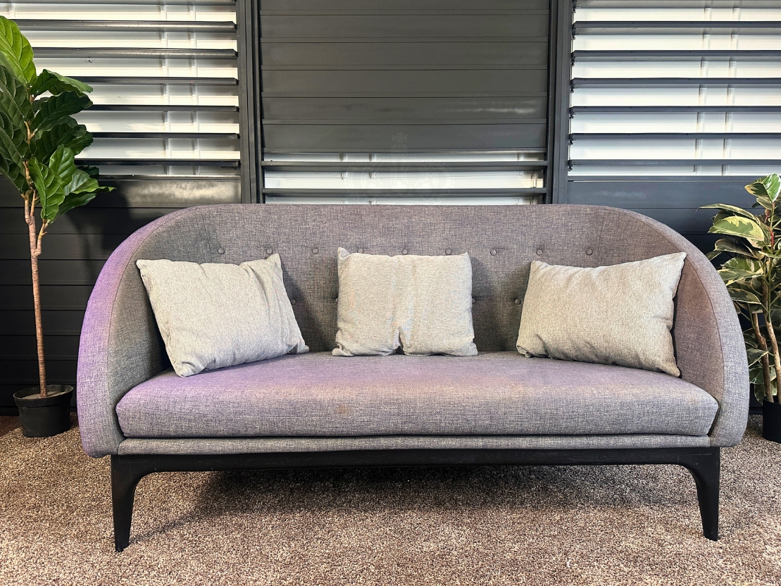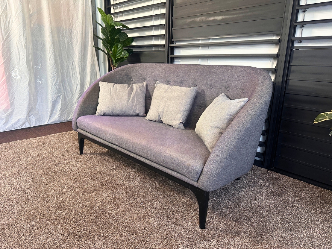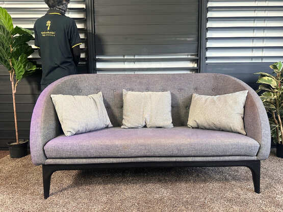 โซฟา 2-3 ที่นั่ง เบาะผ้าลินินสีเทา พนักพิงดึงดุม โครงขาไม้ พร้อมหมอนอิง 3 ใบ แบรนด์ PHILOS