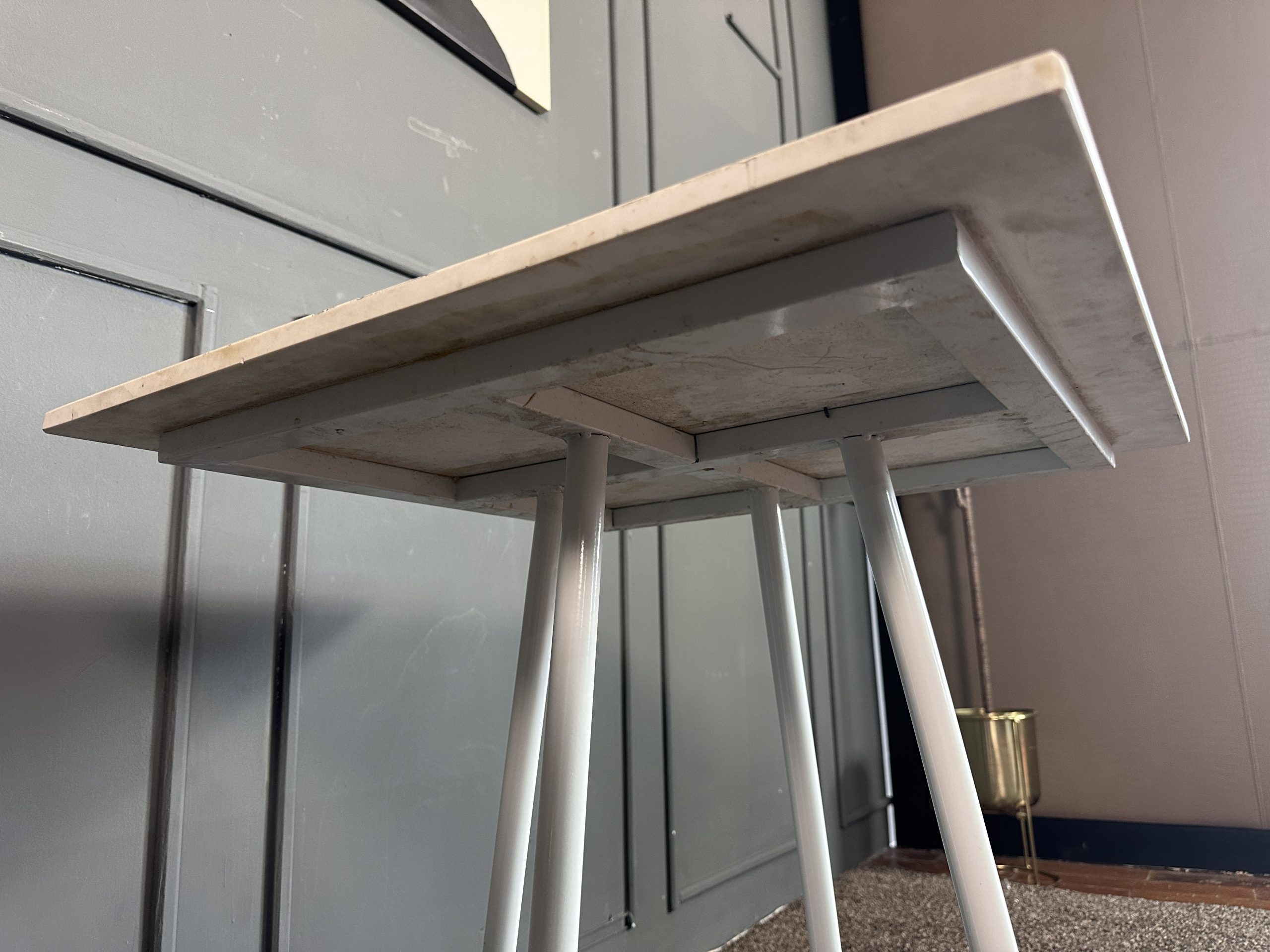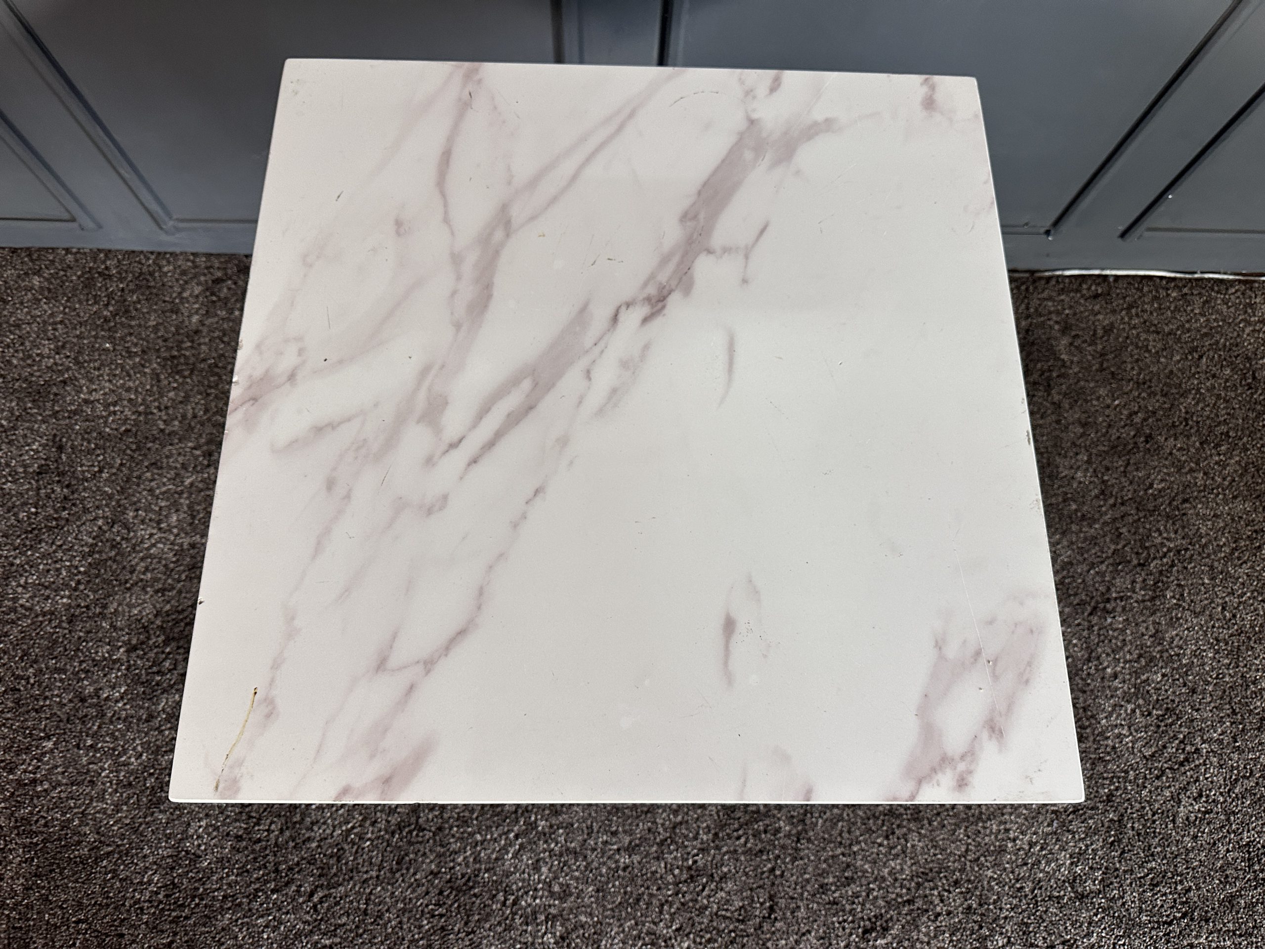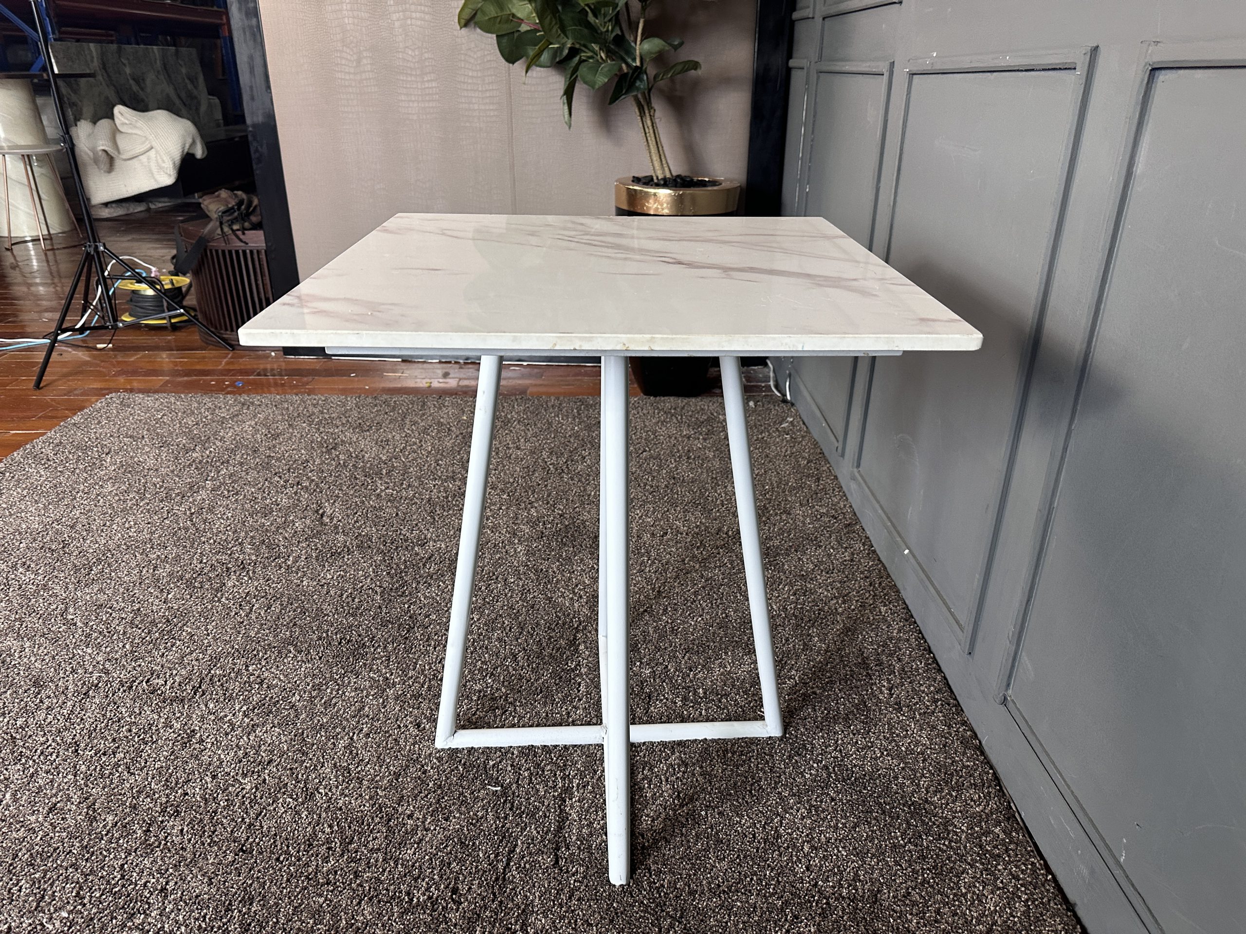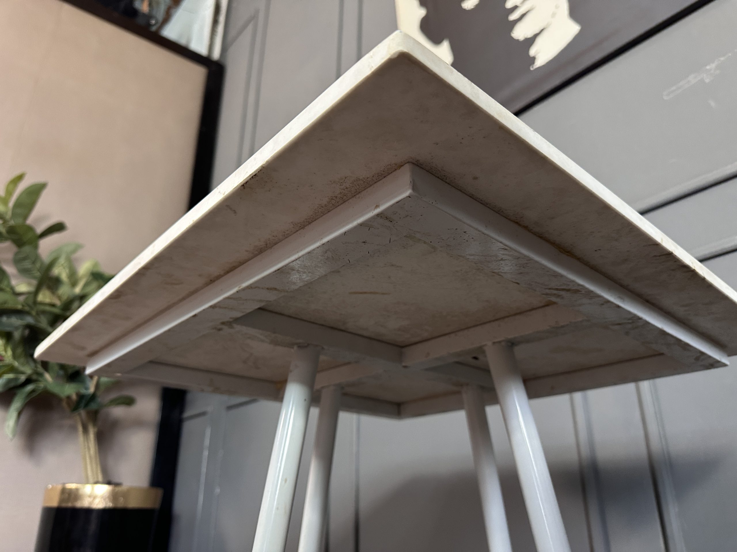 โต๊ะกลางอเนกประสงค์ ท็อปหินกระเบื้องสีขาว โครงขาเหล็กสีขาว ***สินค้าตำหนิมีรอยบินที่ท็อปตามภาพ***