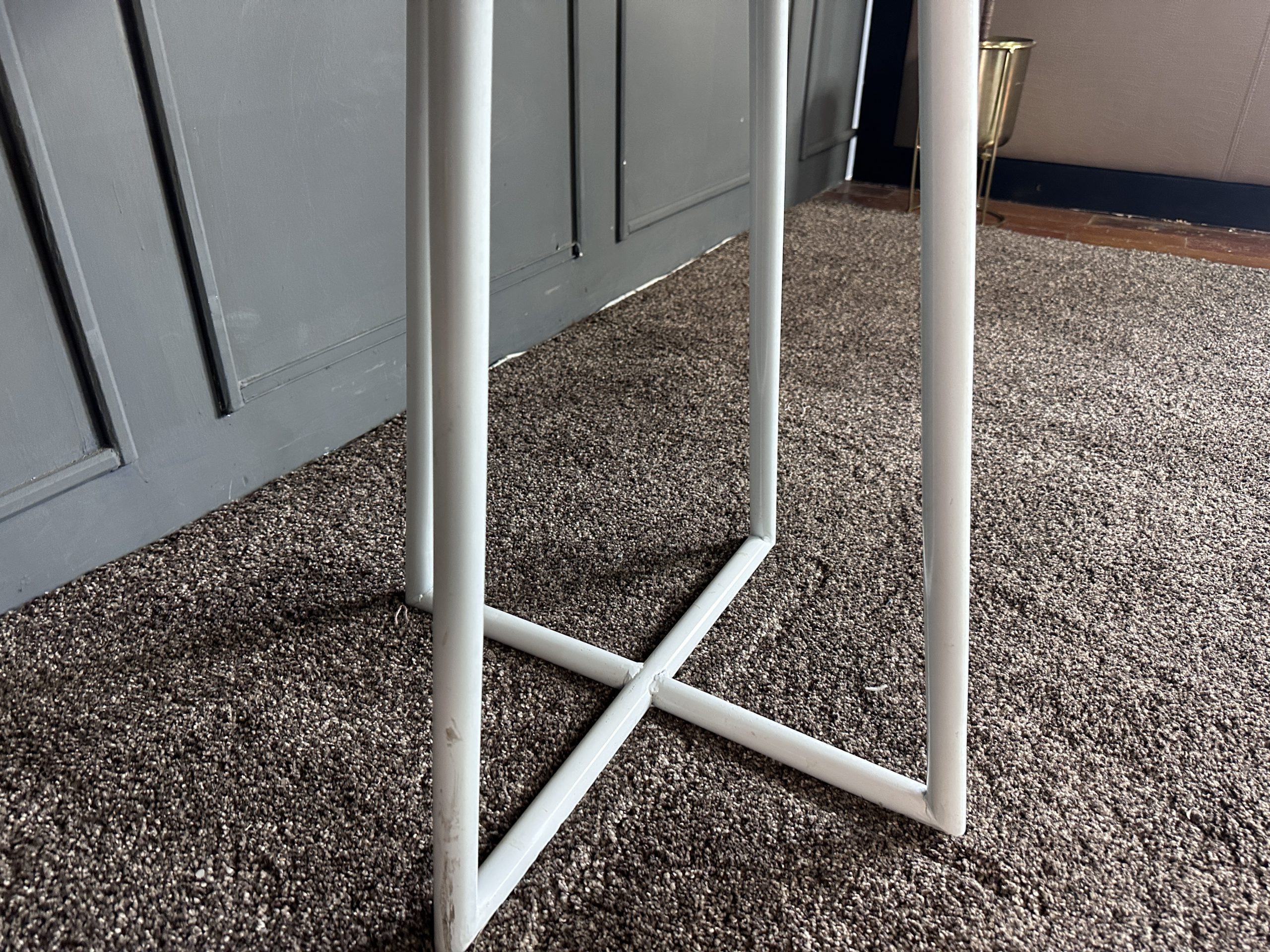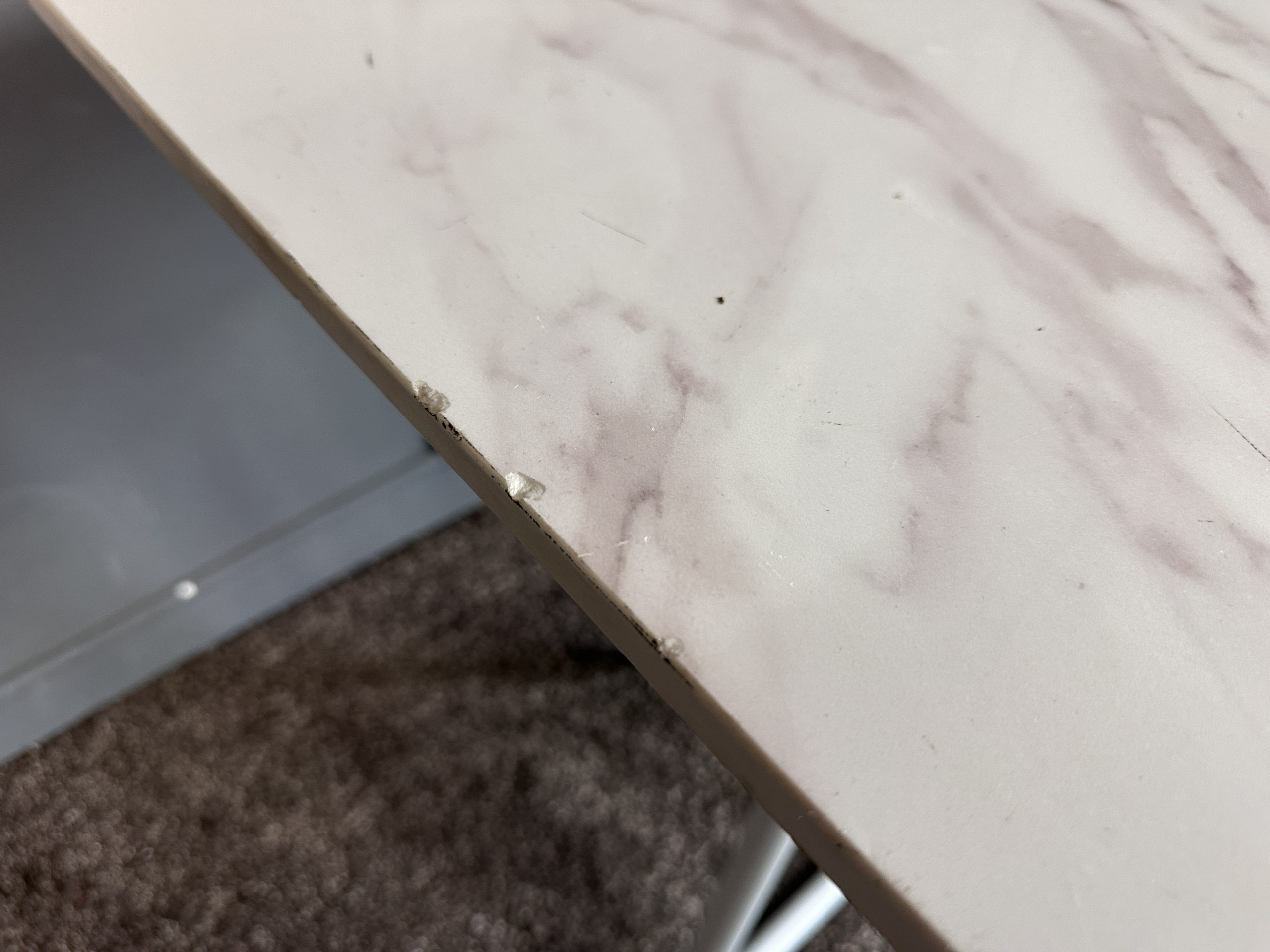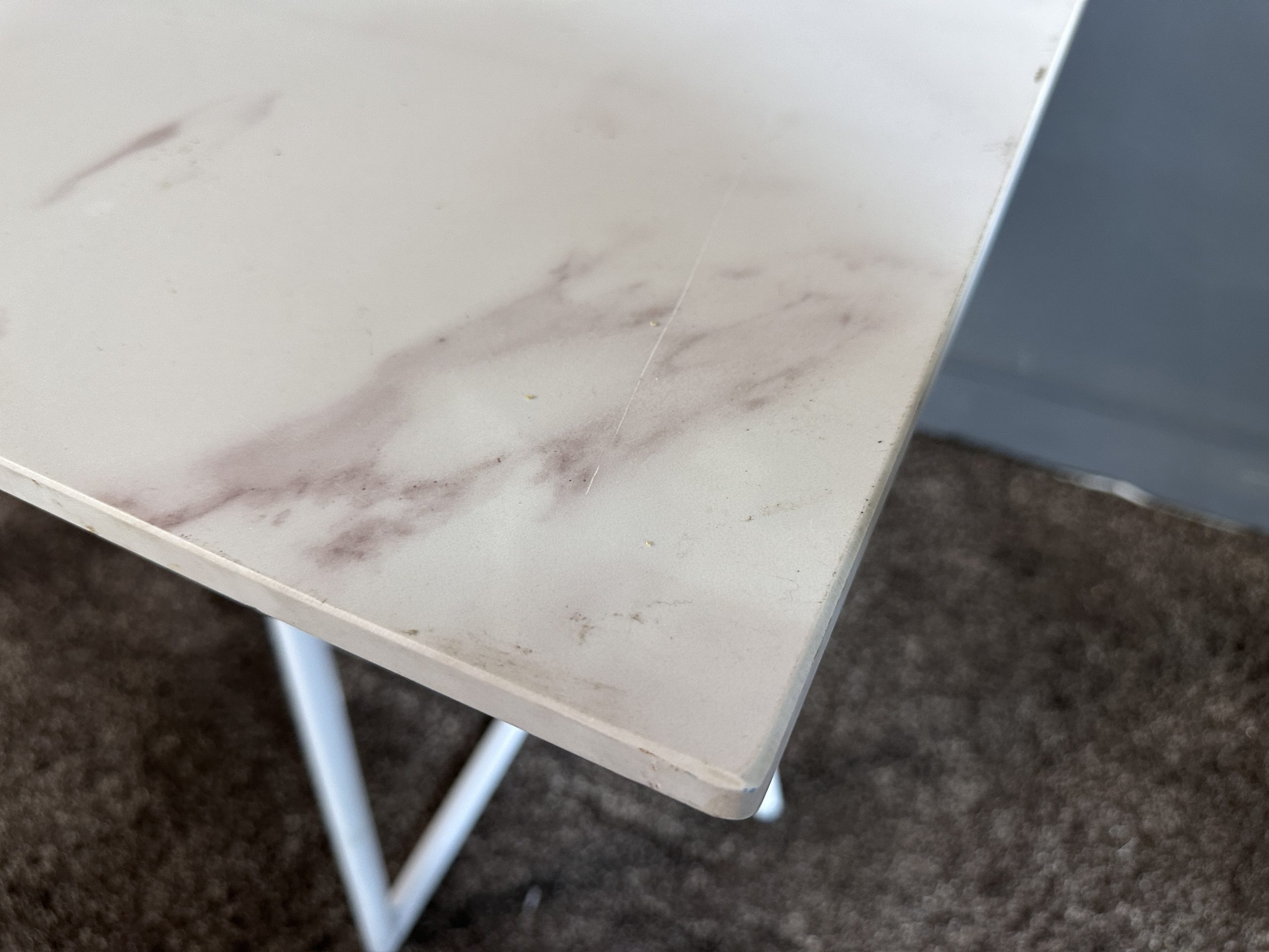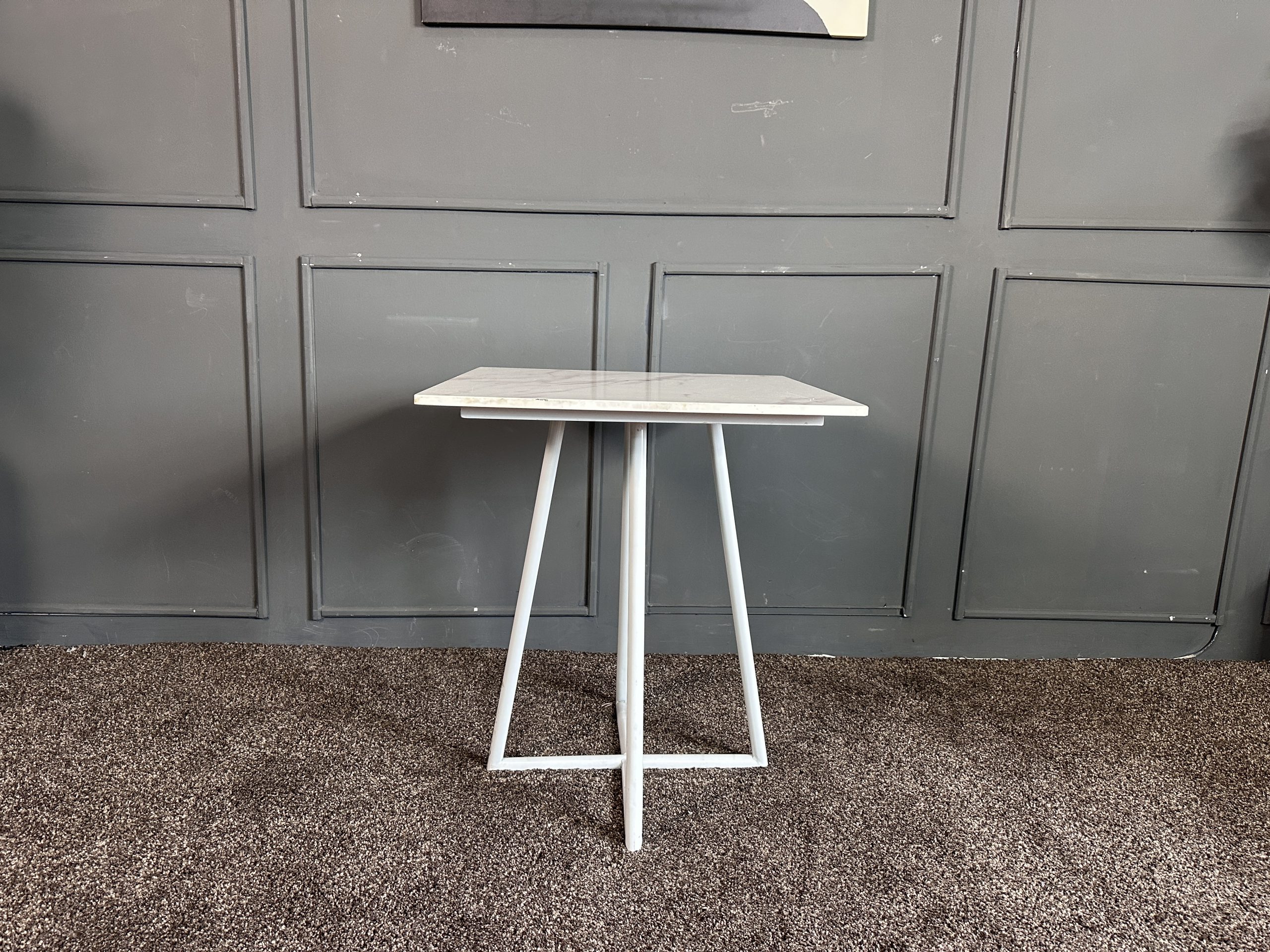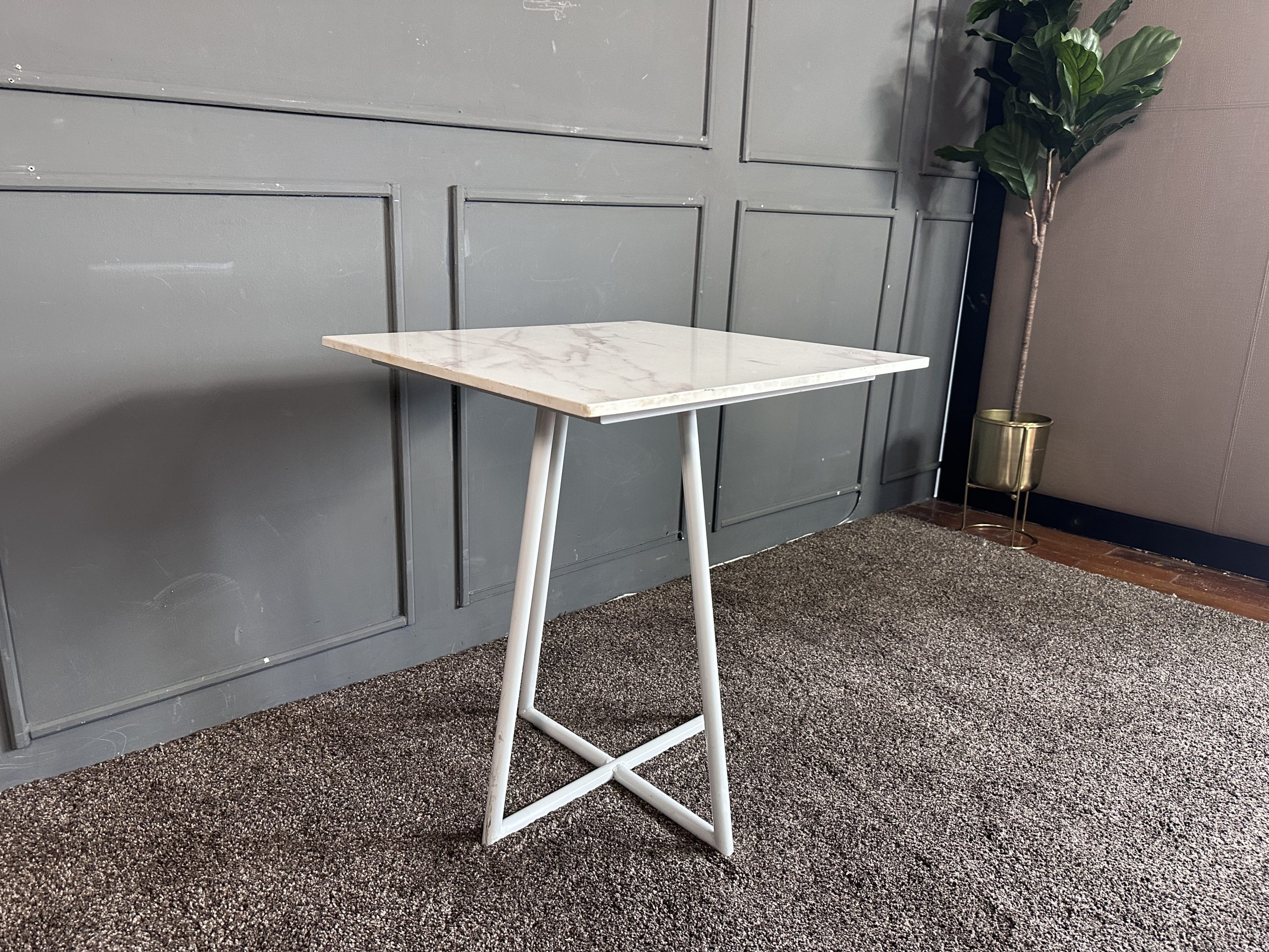 โต๊ะกลางอเนกประสงค์ ท็อปหินกระเบื้องสีขาว โครงขาเหล็กสีขาว ***สินค้าตำหนิมีรอยบินที่ท็อปตามภาพ***