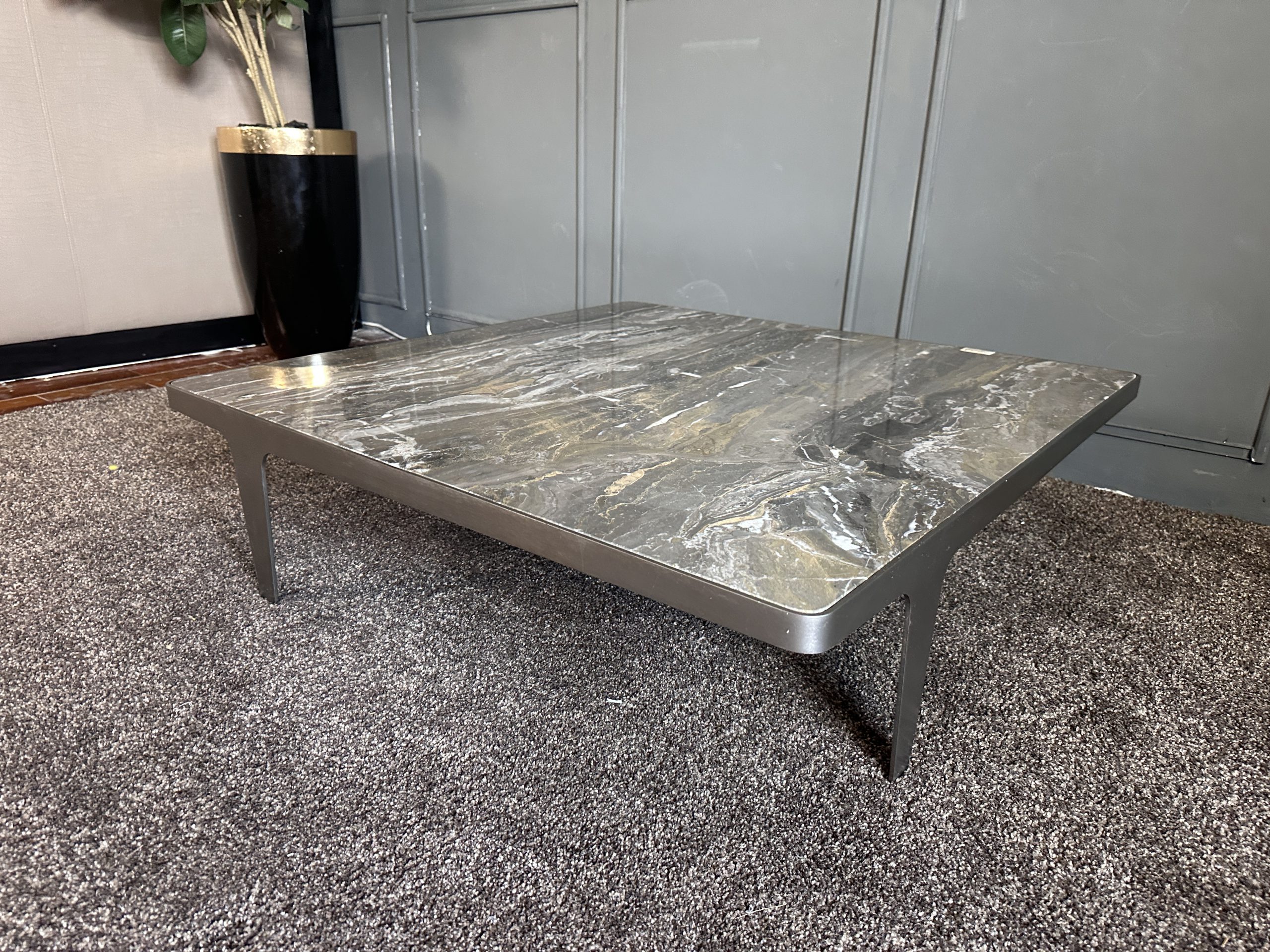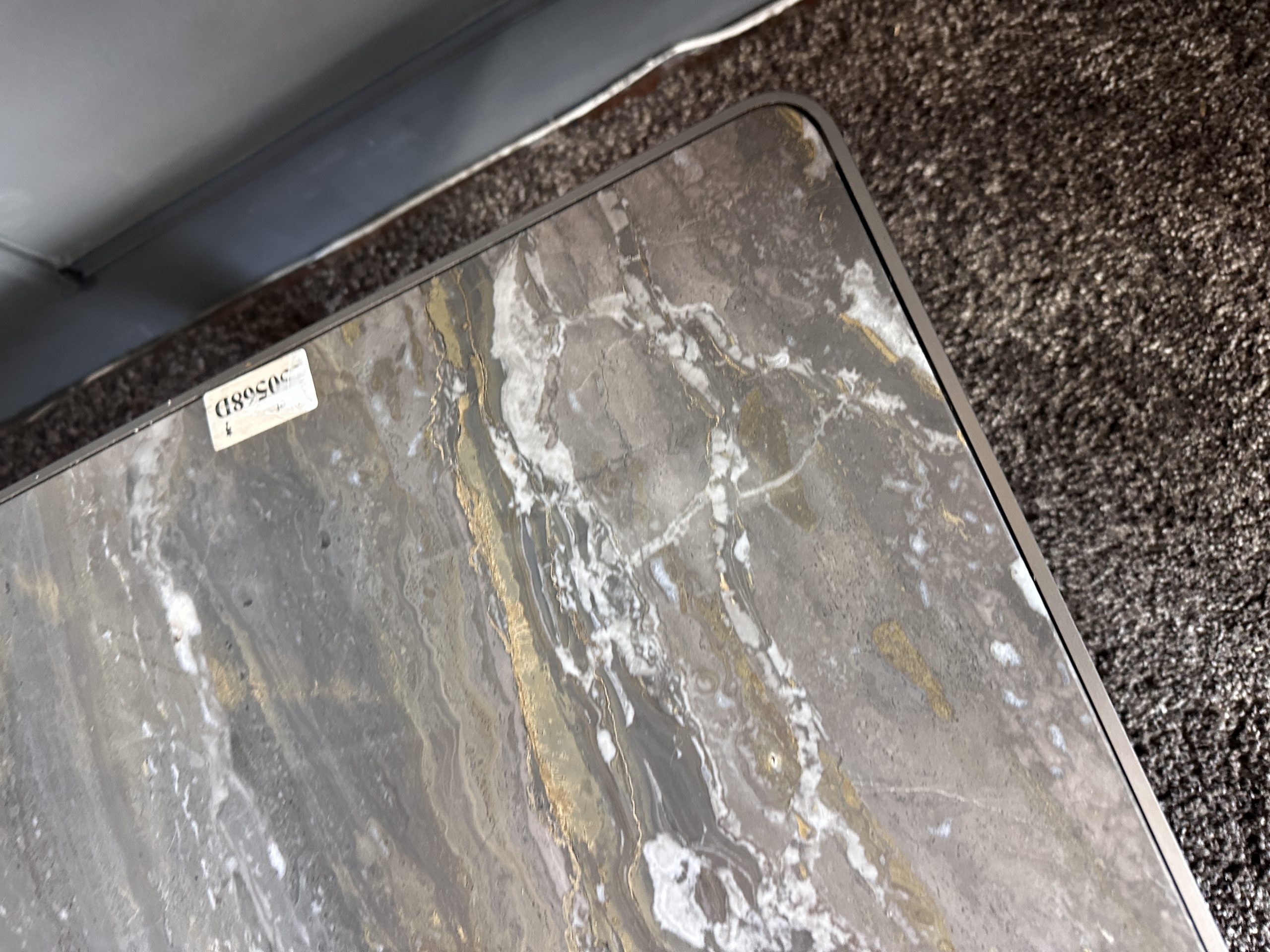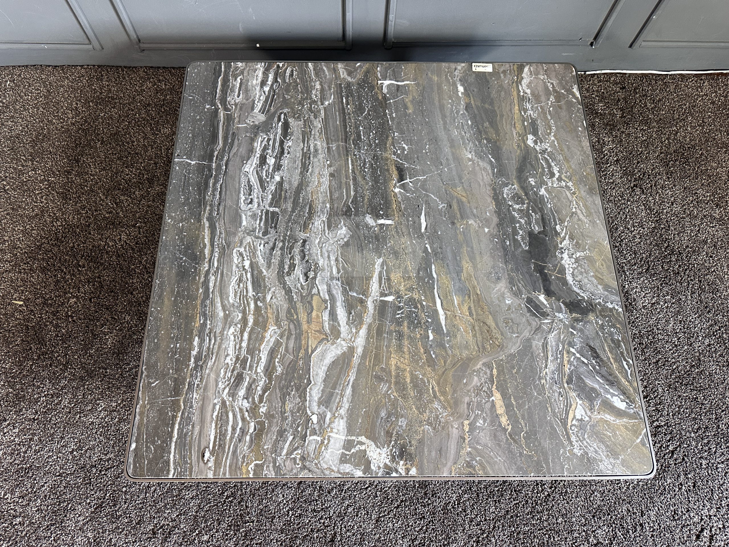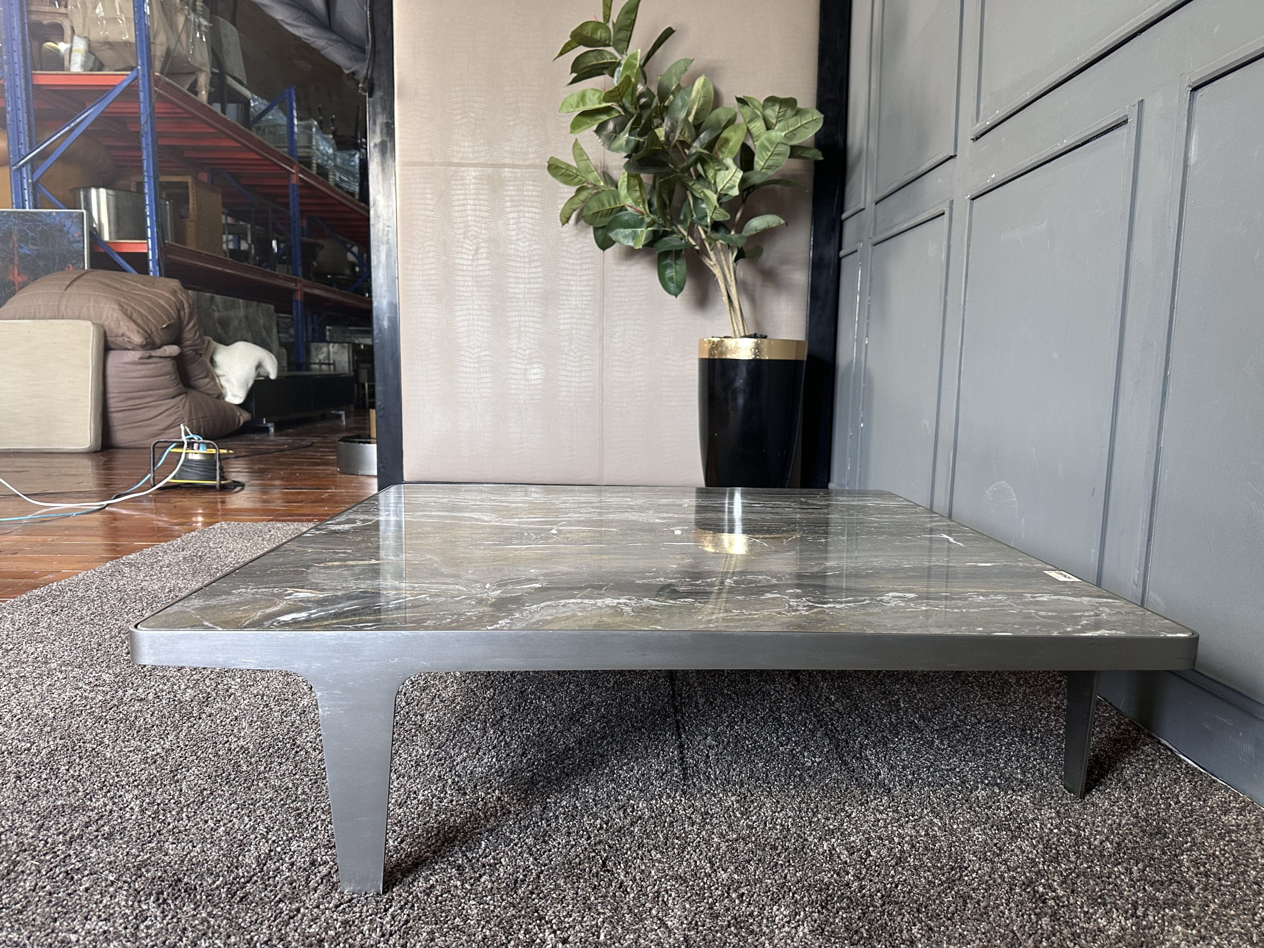 โต๊ะกลาง ท็อปหินอ่อนสีเทา โครงขาเหล็ก (1141074) . ขนาดกว้าง 100 ลึก 100 สูง 27 เซนติเมตร