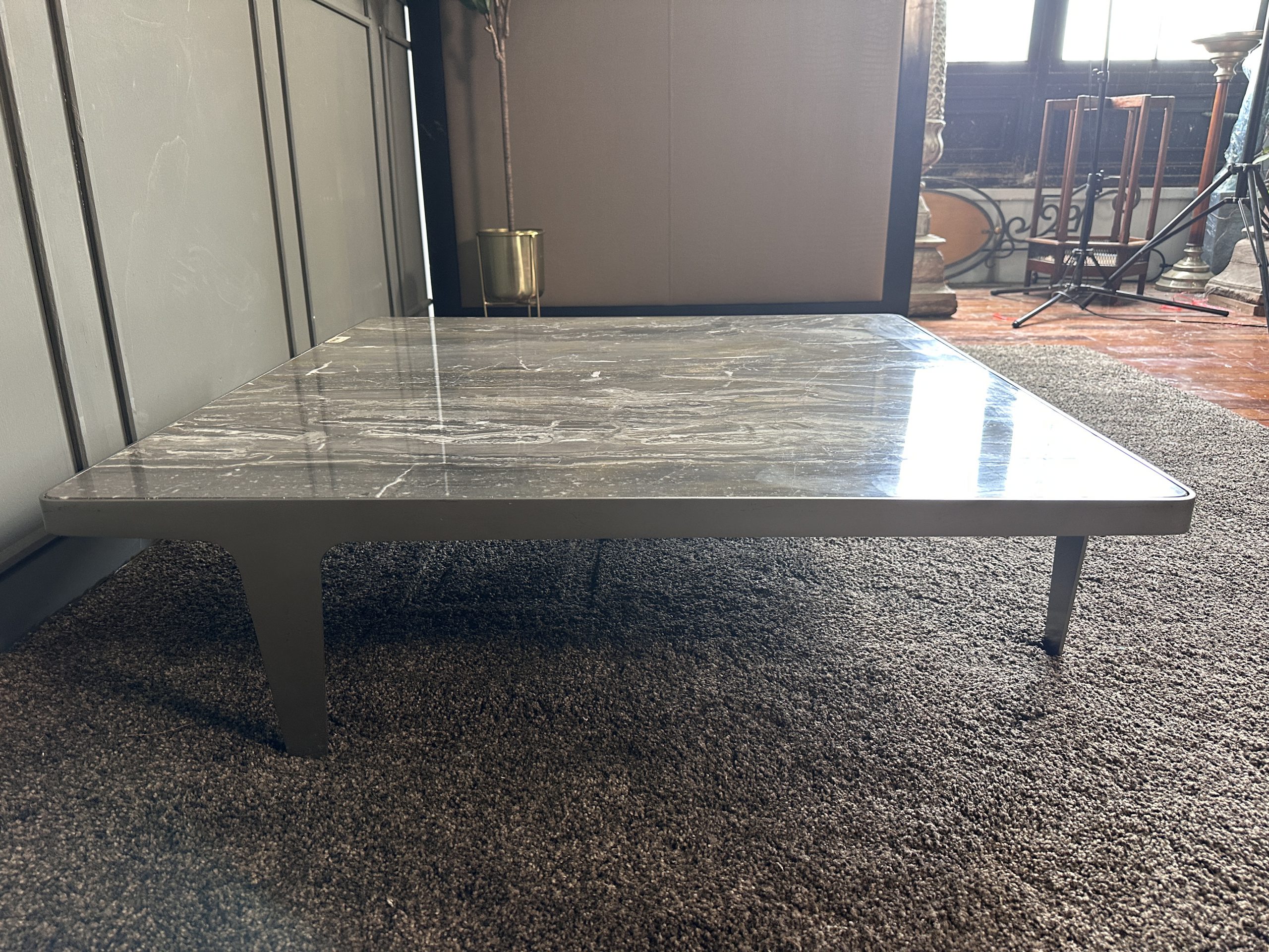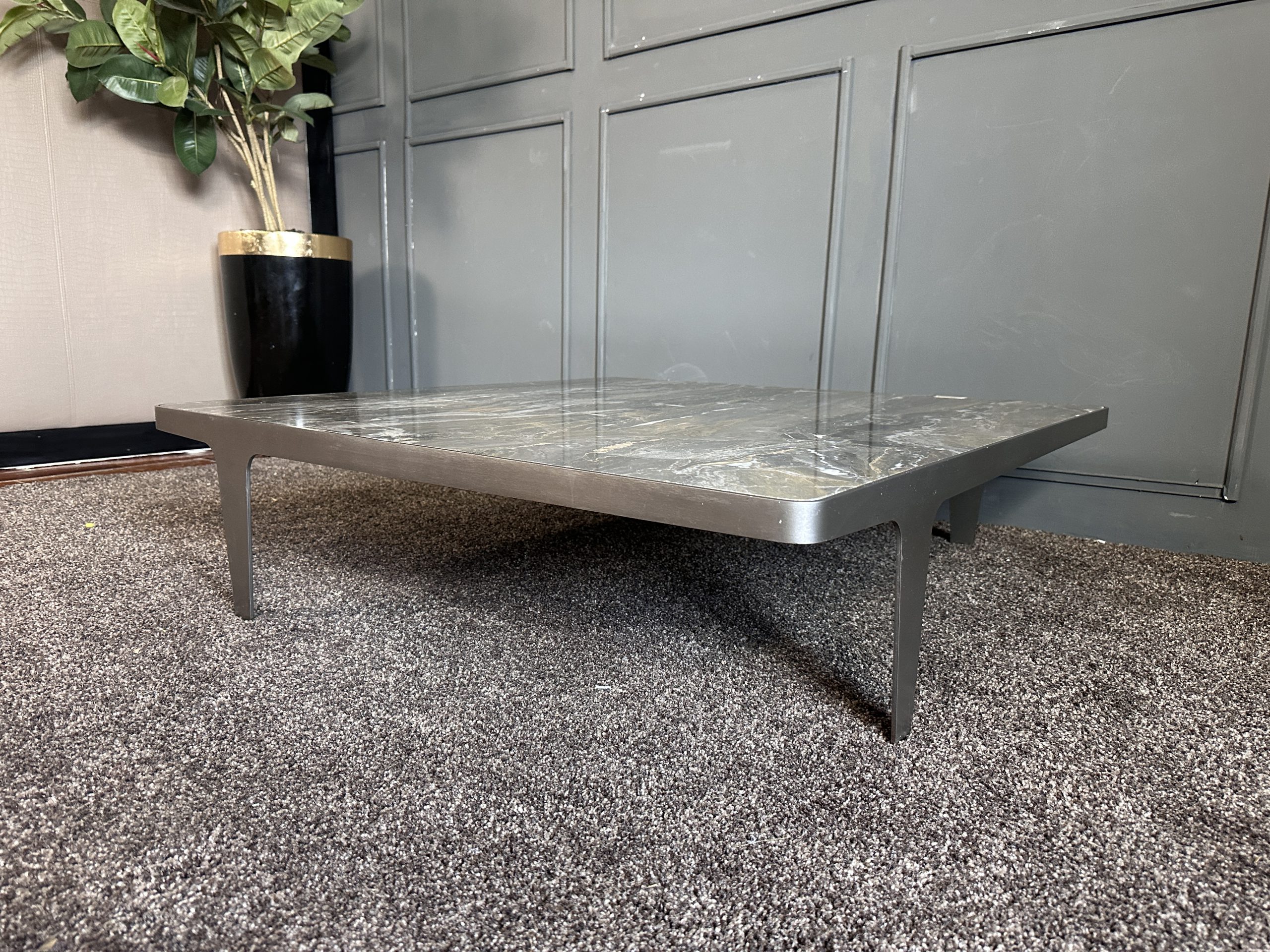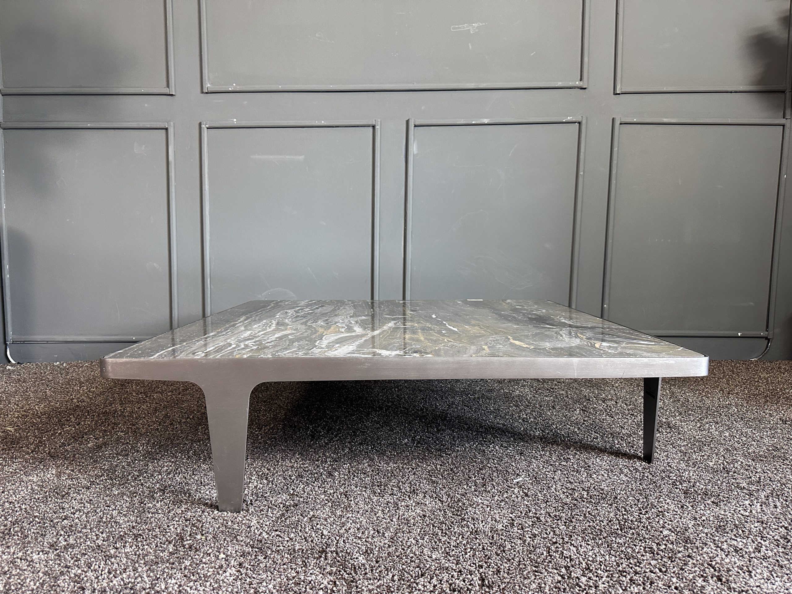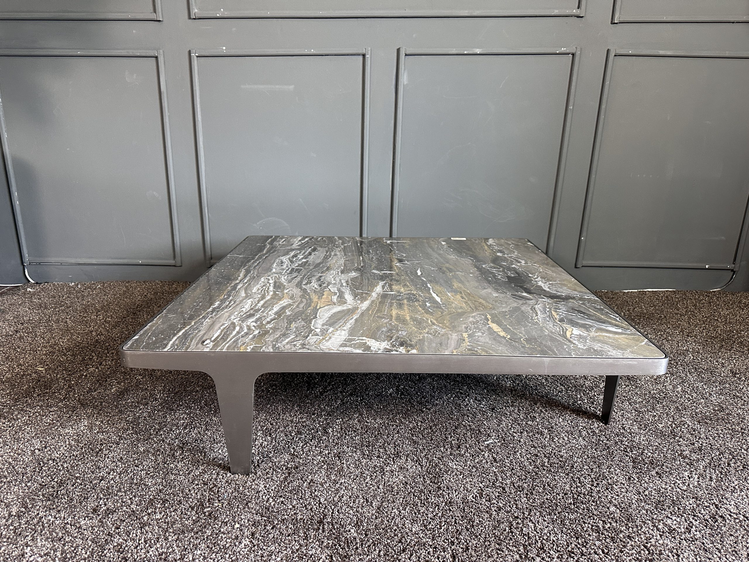โต๊ะกลาง ท็อปหินอ่อนสีเทา โครงขาเหล็ก (1141074) . ขนาดกว้าง 100 ลึก 100 สูง 27 เซนติเมตร