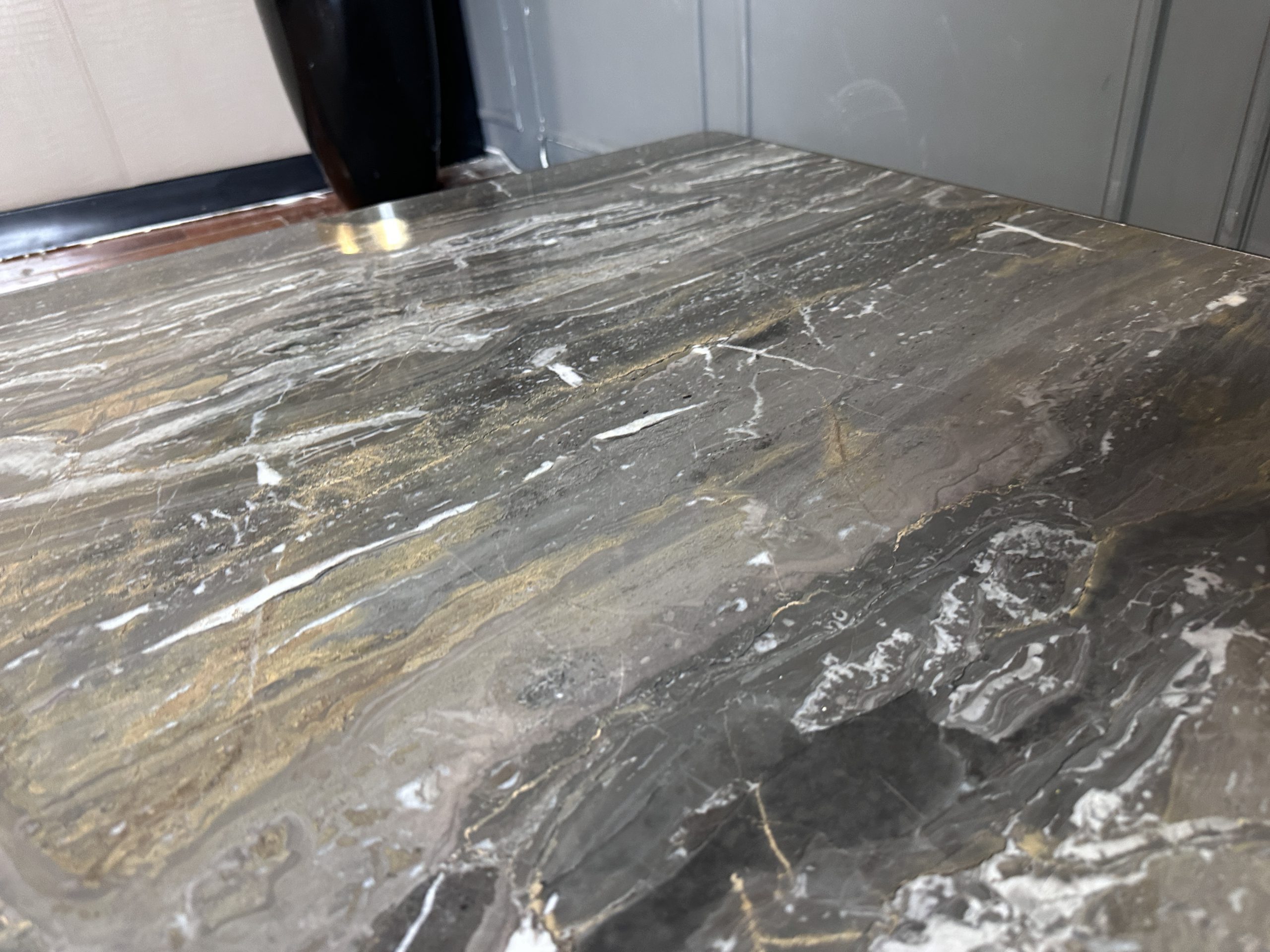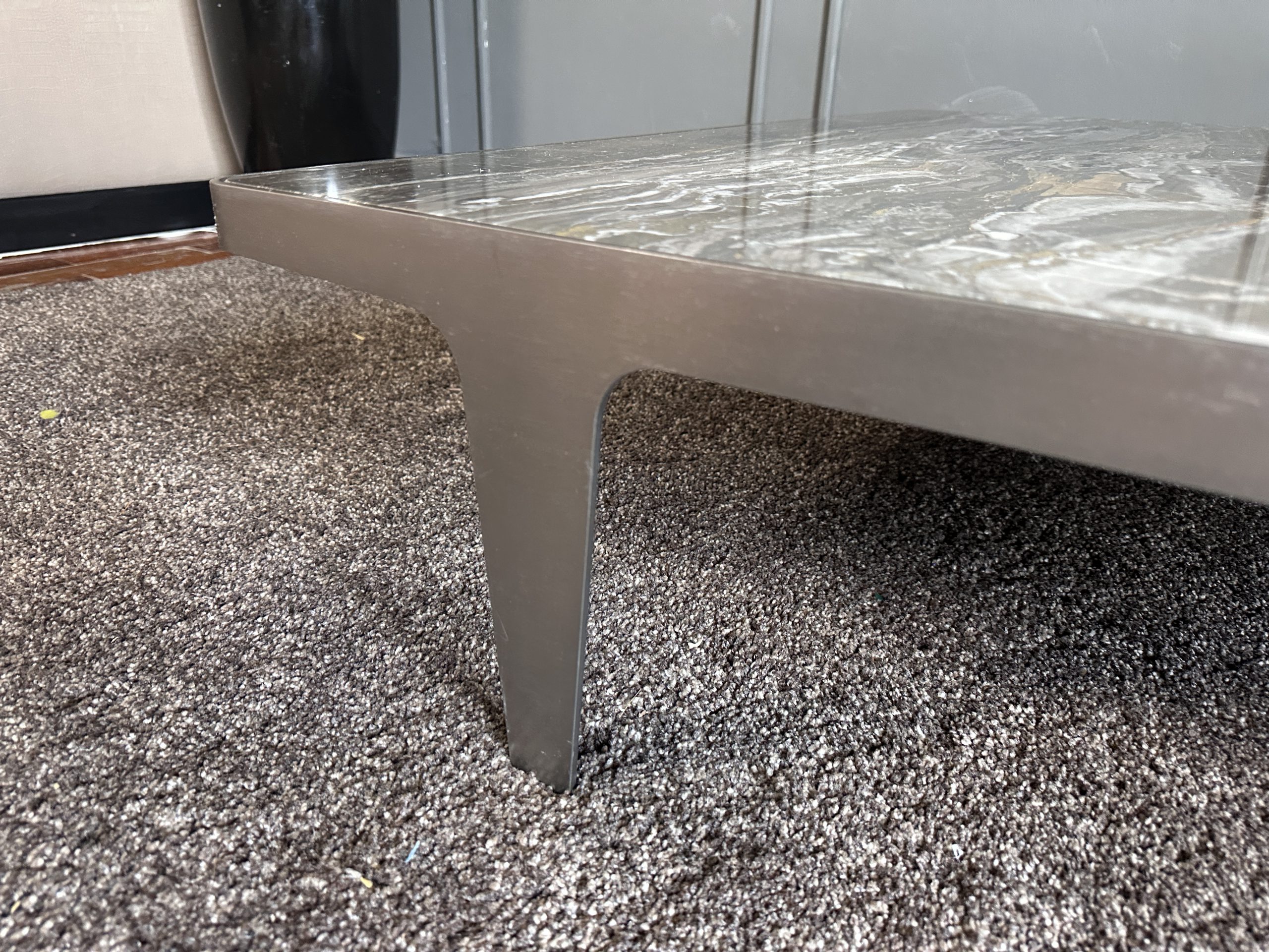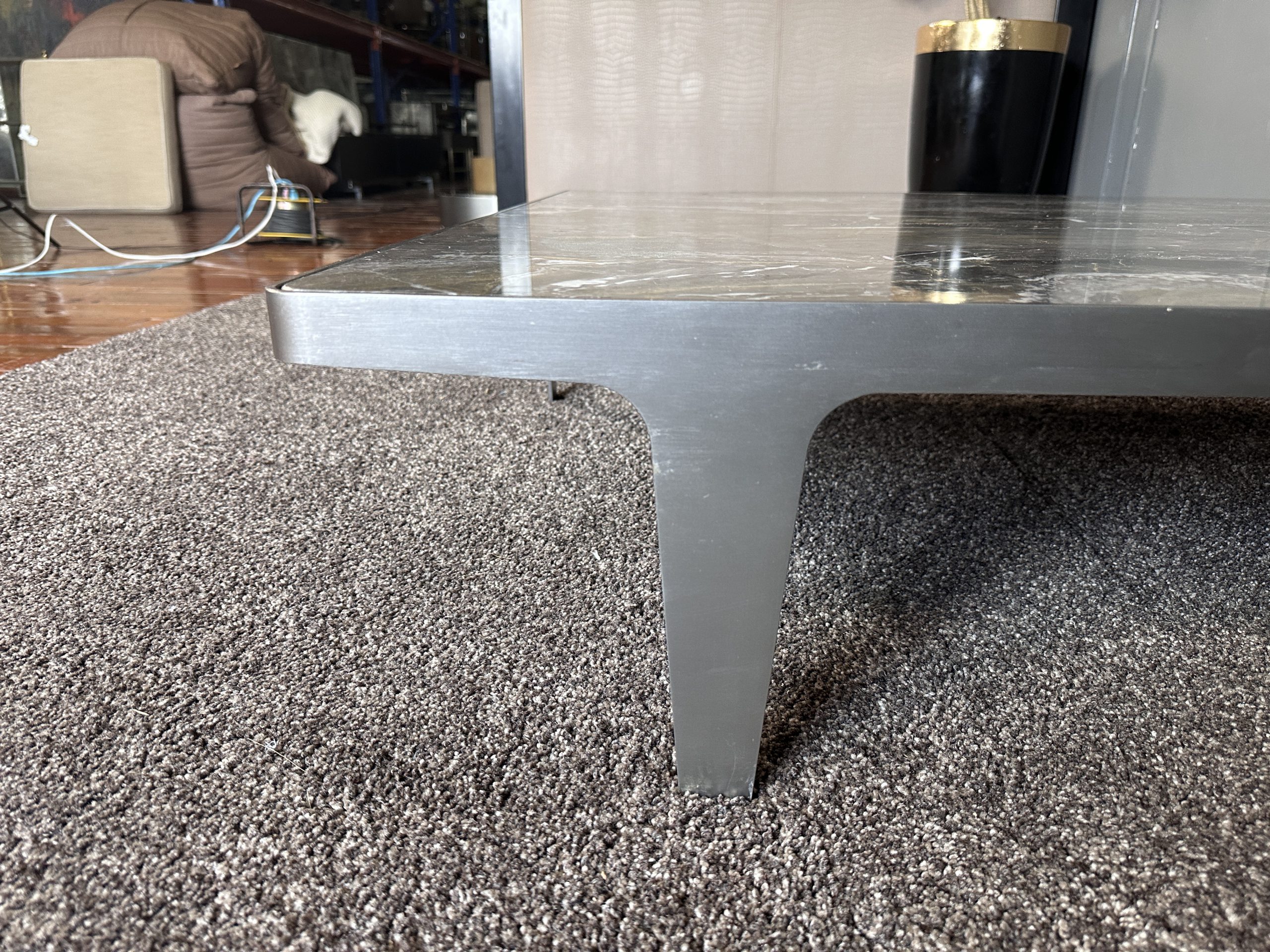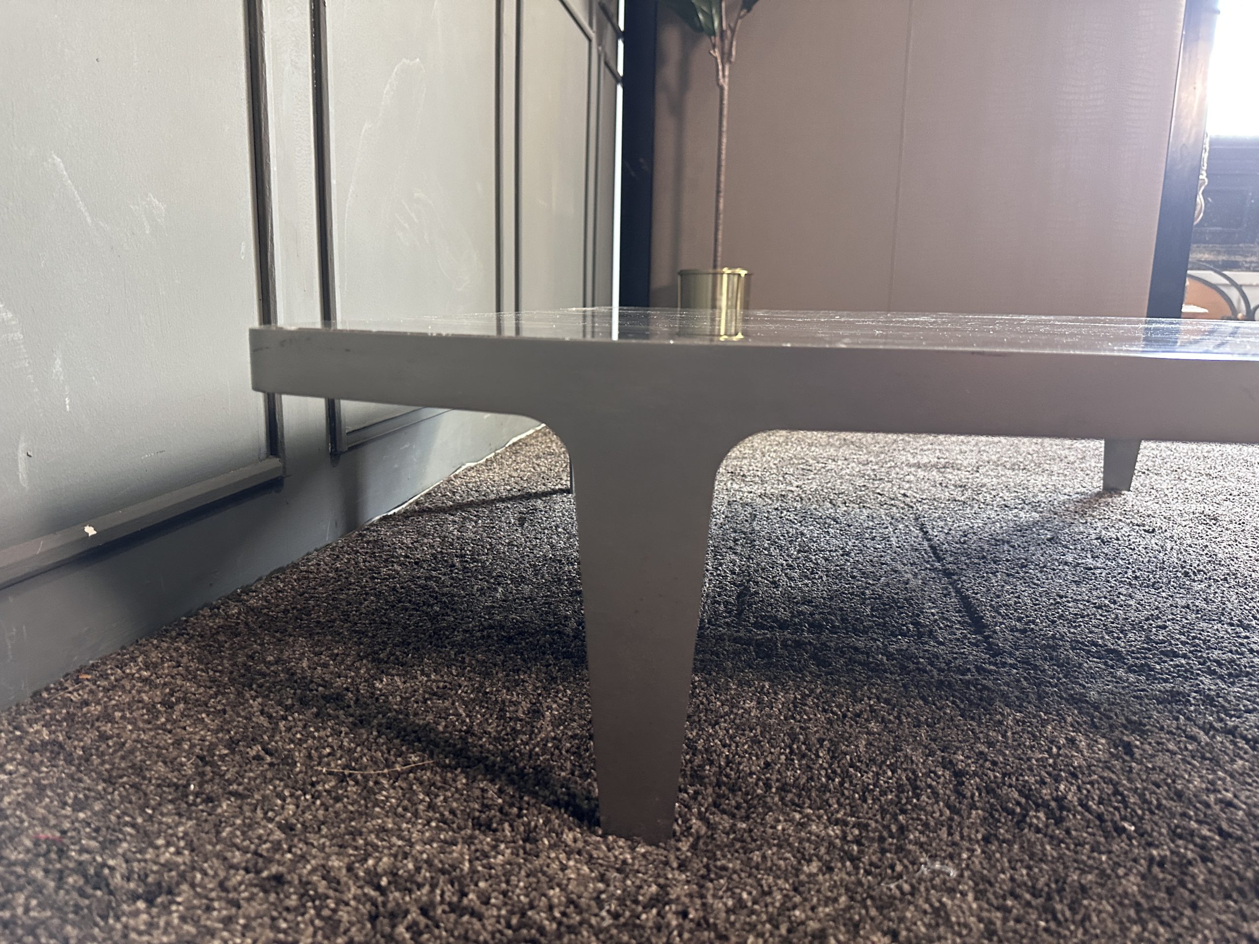 โต๊ะกลาง ท็อปหินอ่อนสีเทา โครงขาเหล็ก (1141074) . ขนาดกว้าง 100 ลึก 100 สูง 27 เซนติเมตร