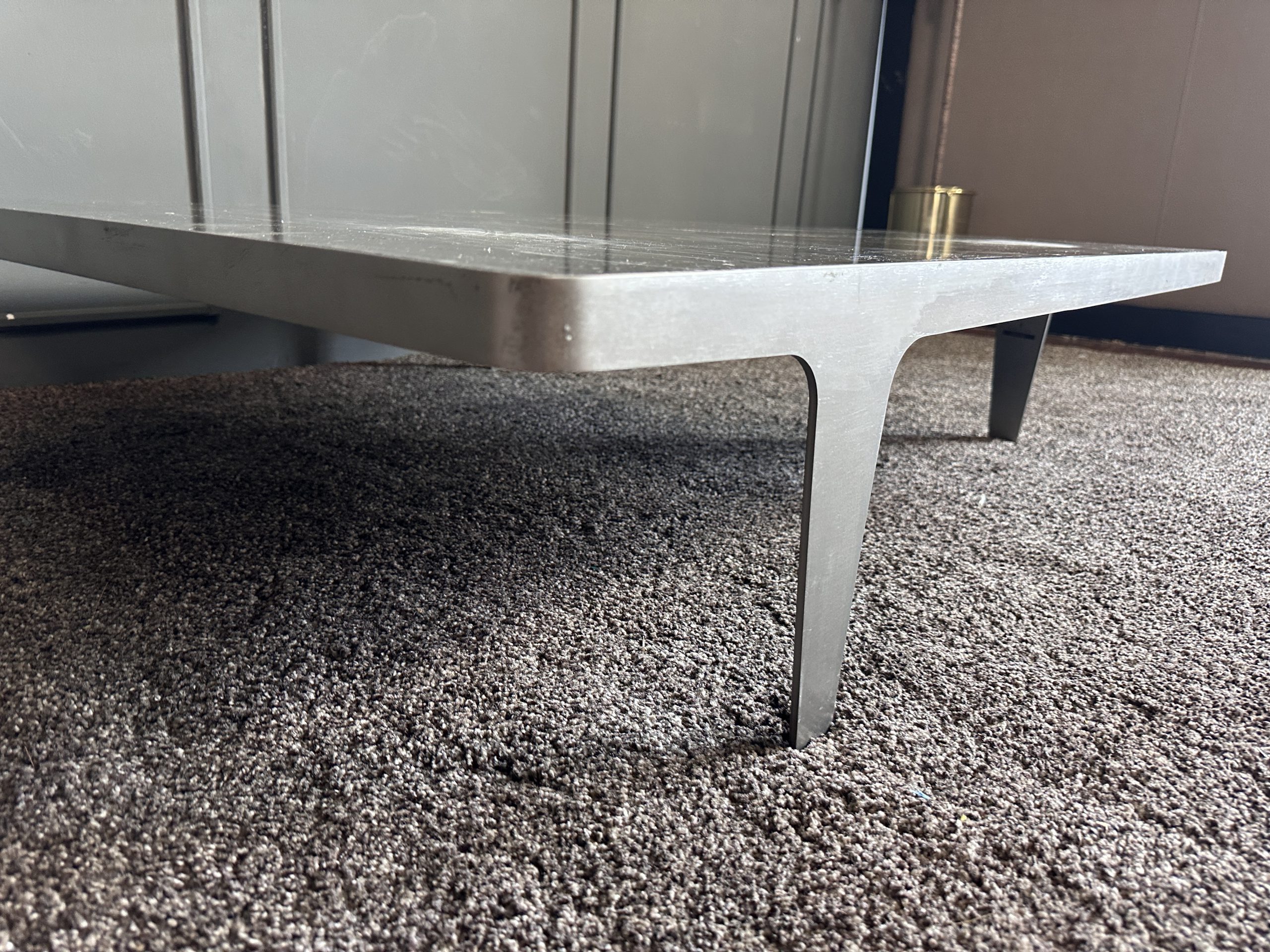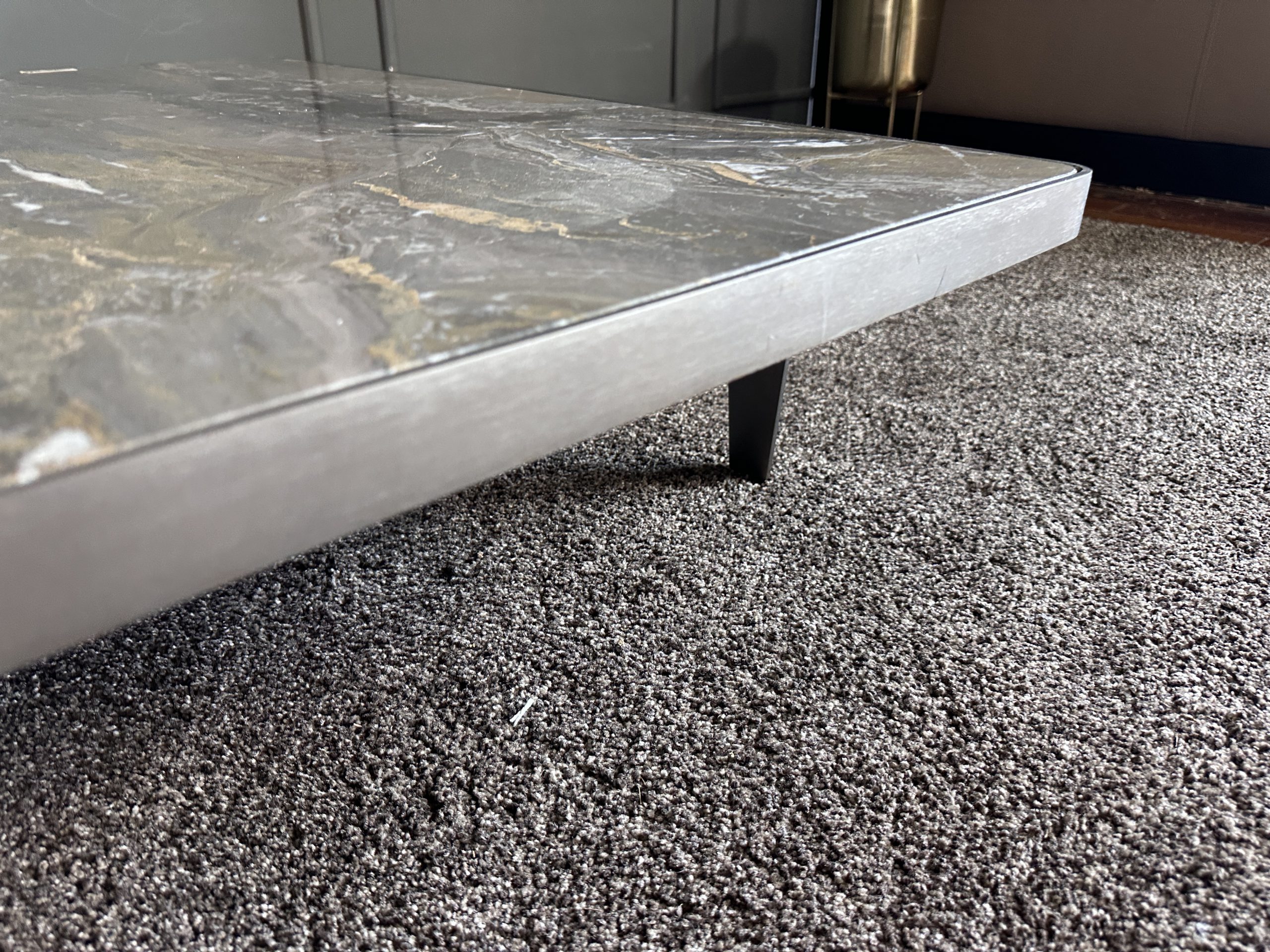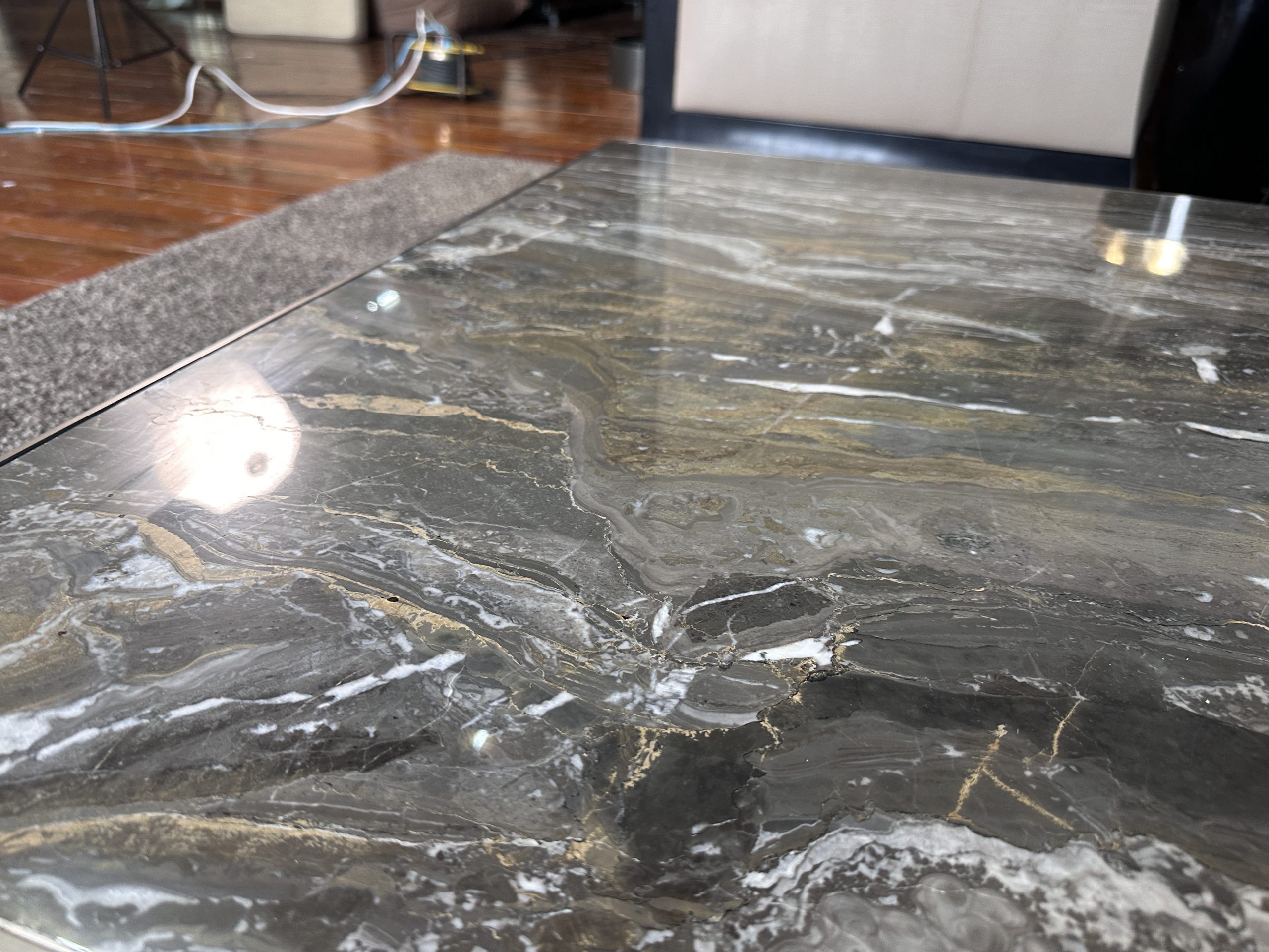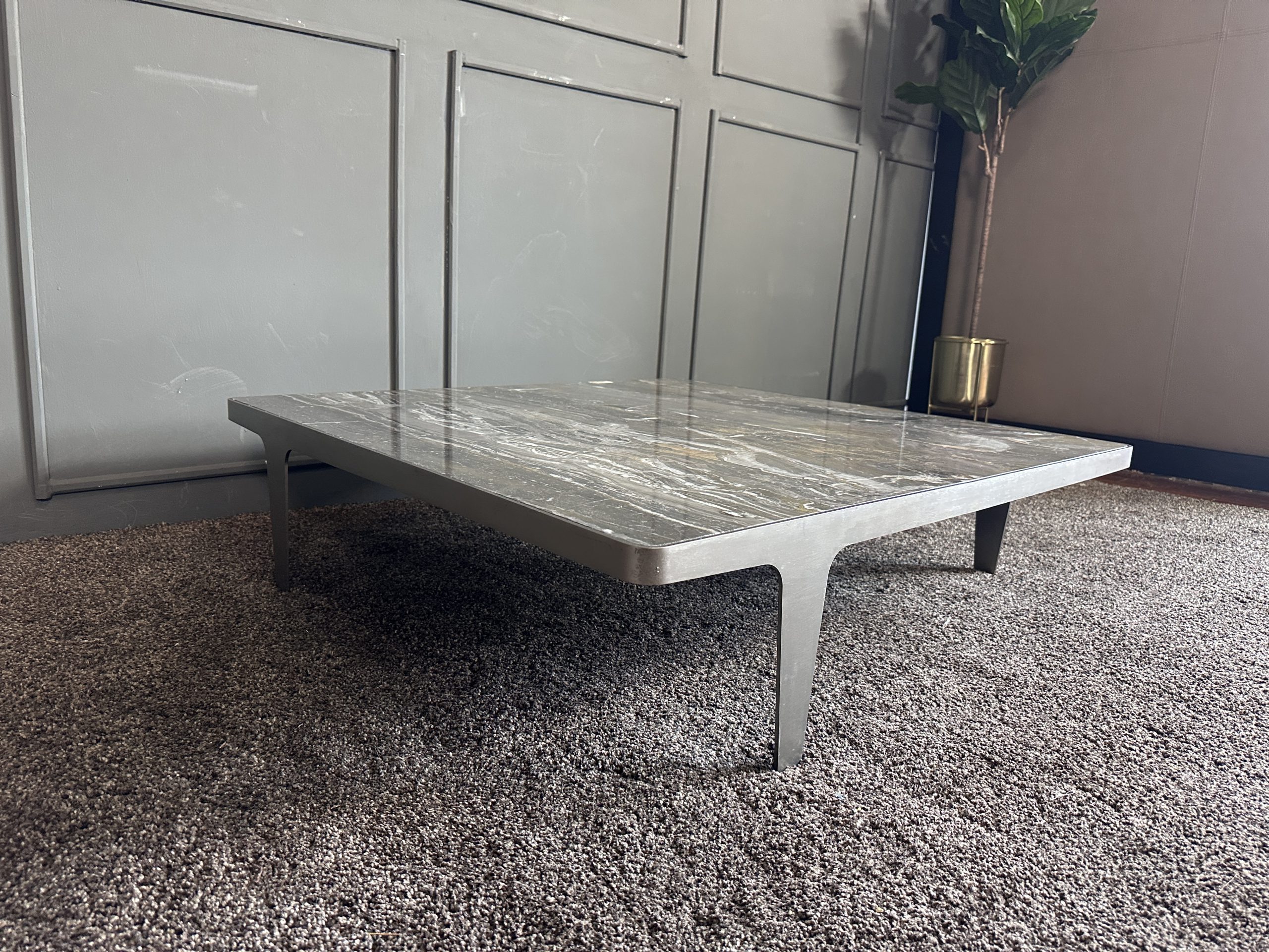 โต๊ะกลาง ท็อปหินอ่อนสีเทา โครงขาเหล็ก (1141074) . ขนาดกว้าง 100 ลึก 100 สูง 27 เซนติเมตร