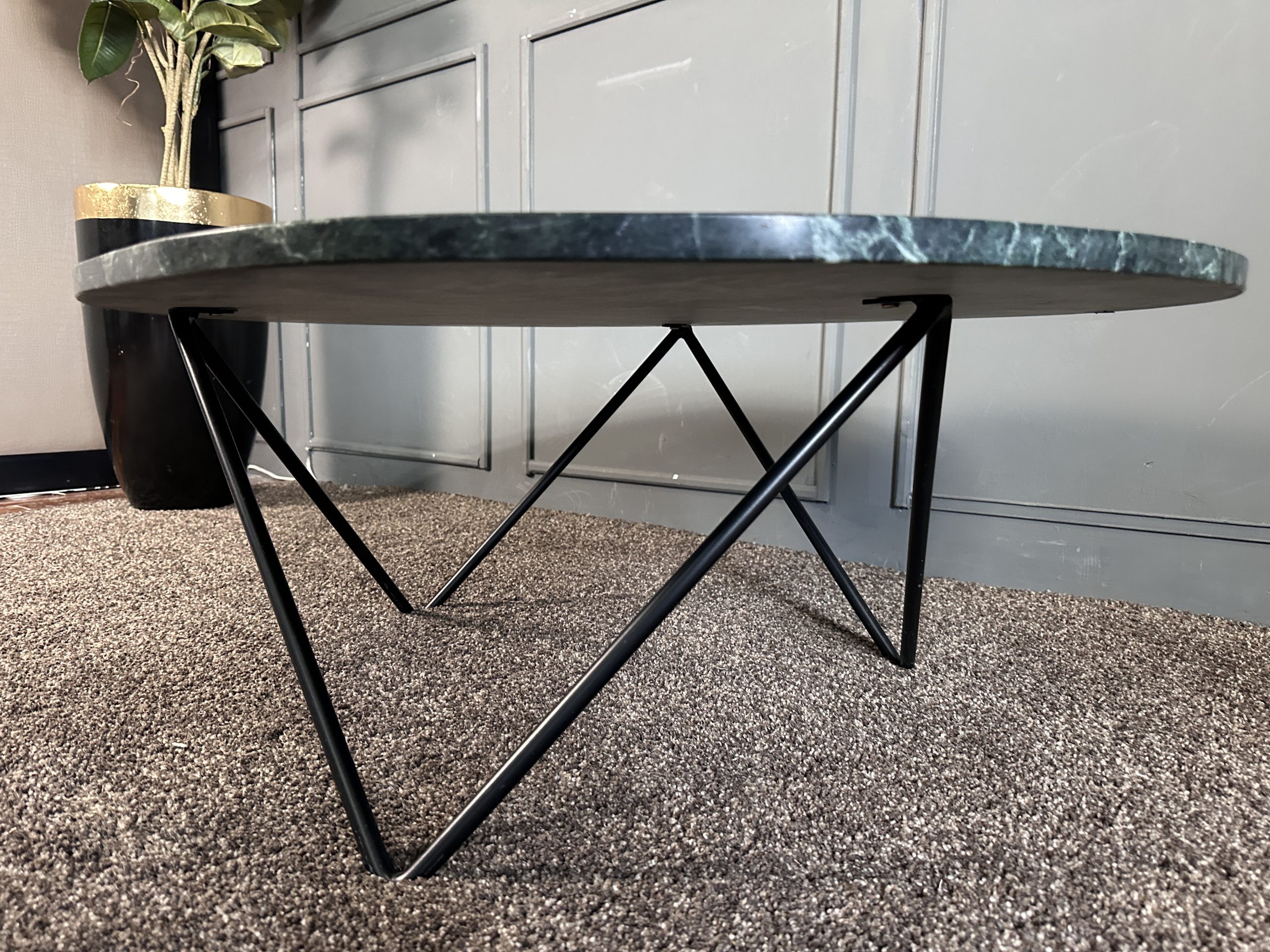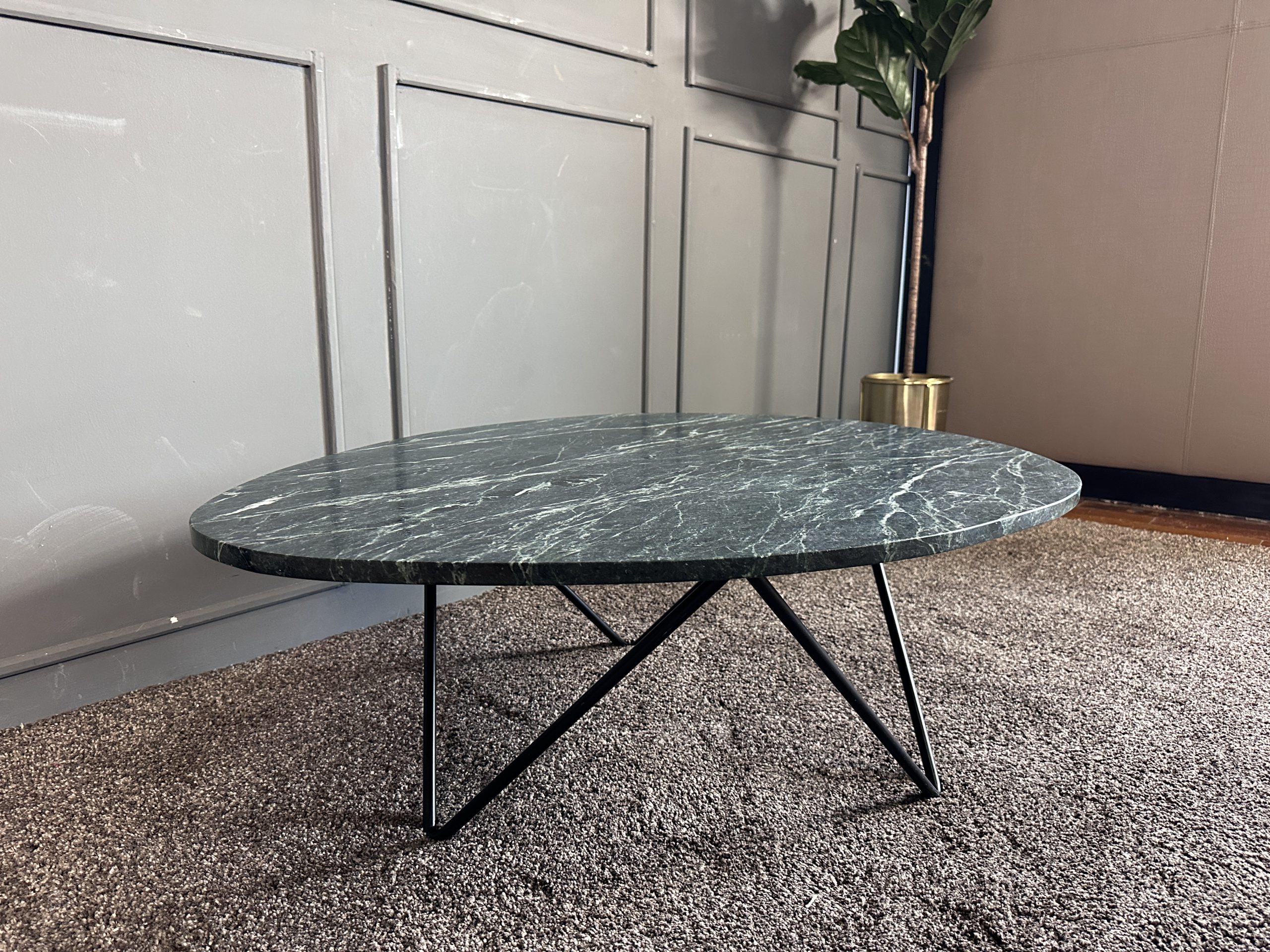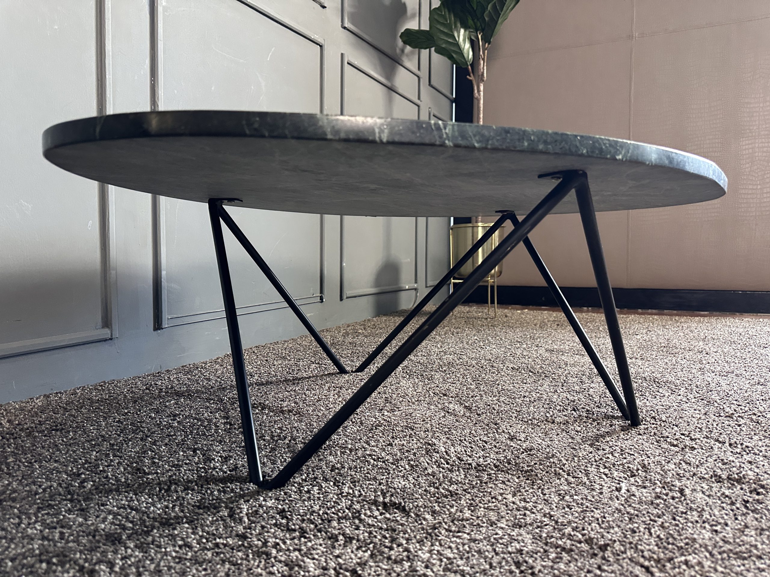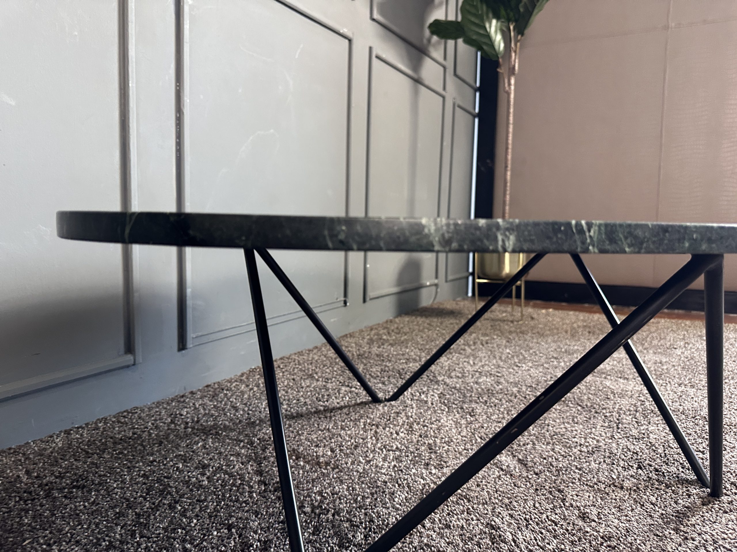 โต๊ะกลาง ท็อปหินแกรนิตสีเขียวทางหยดน้ำ โครงขาเหล็ก แบรนด์ Furnish Classy