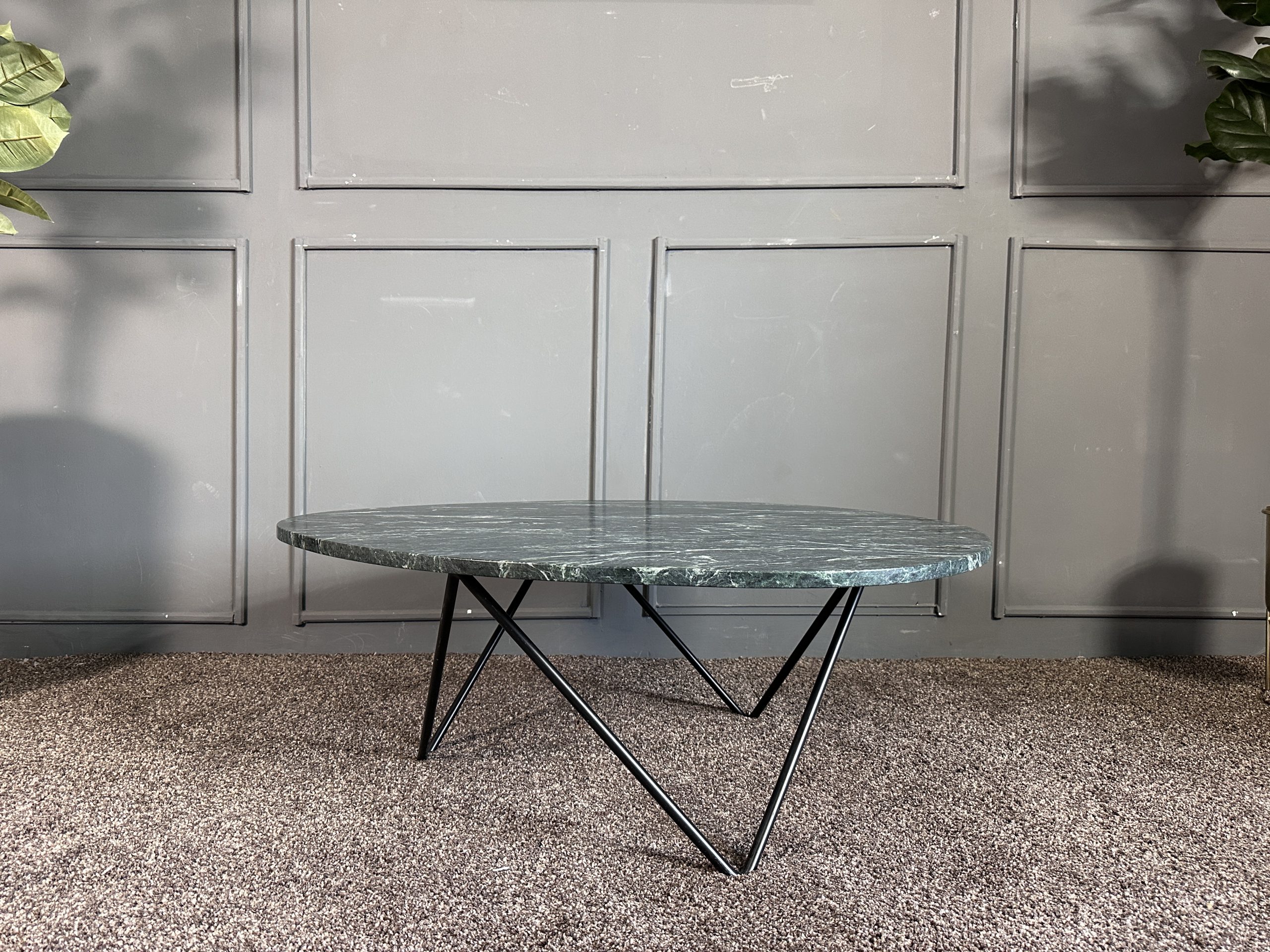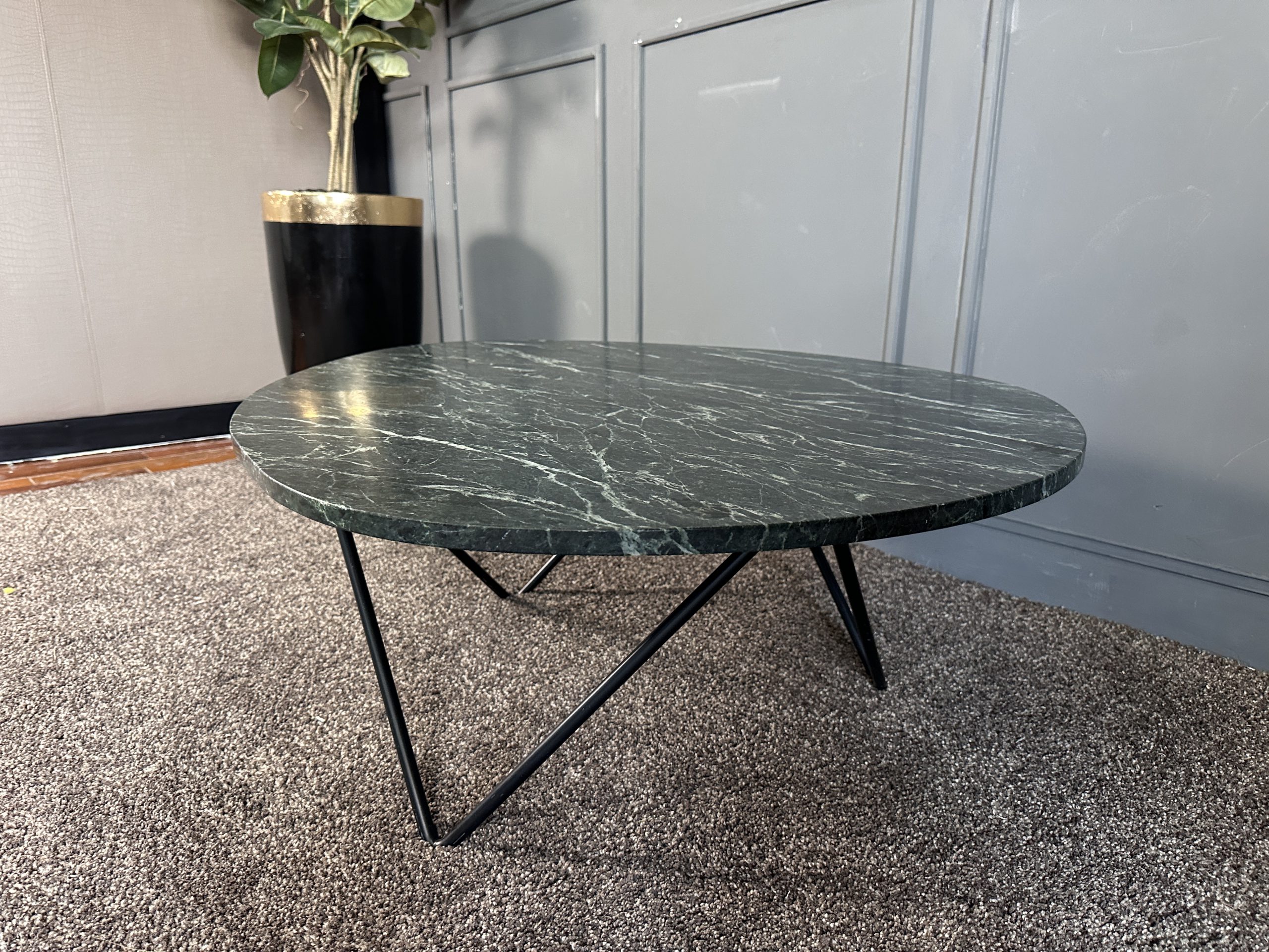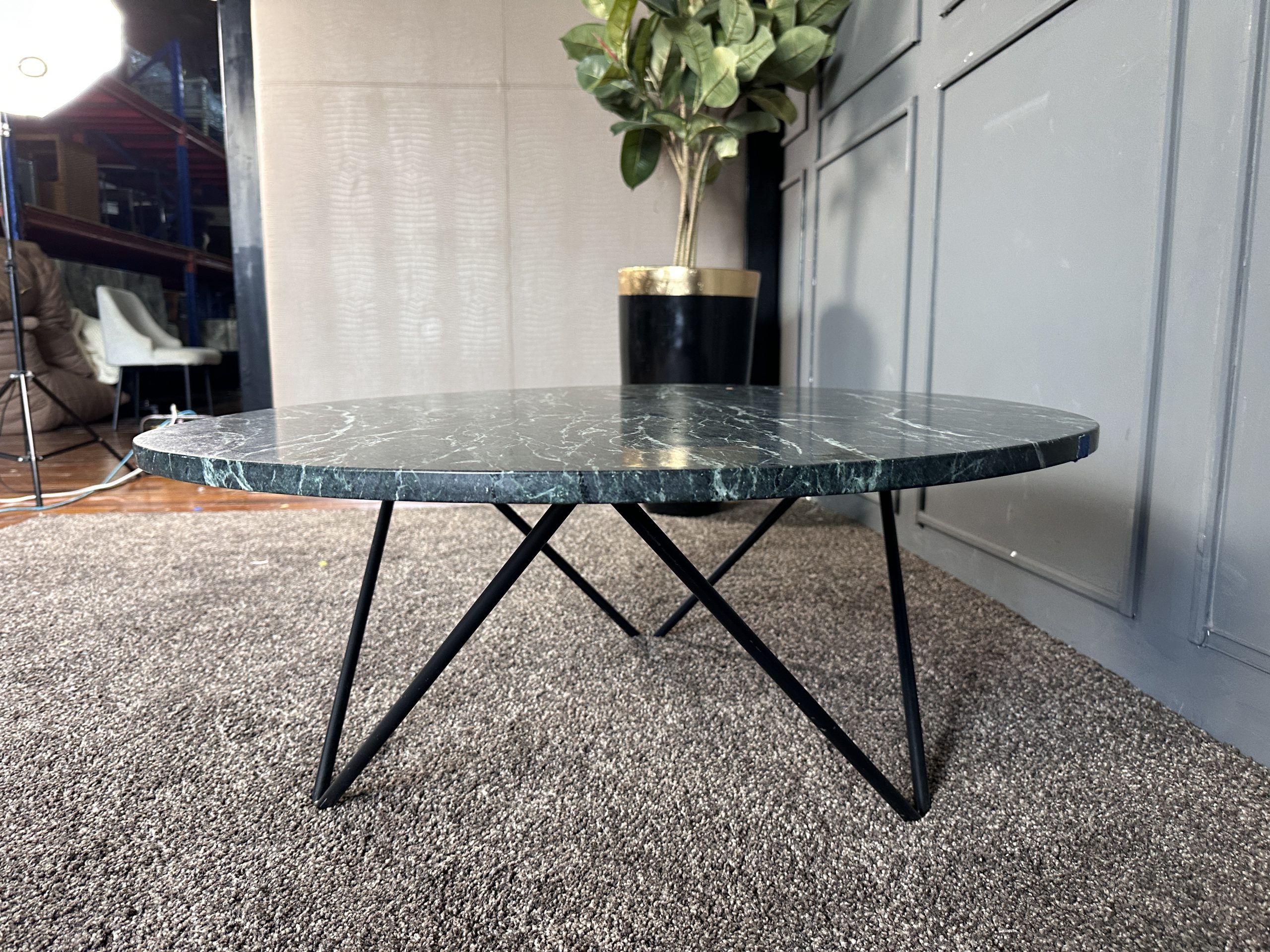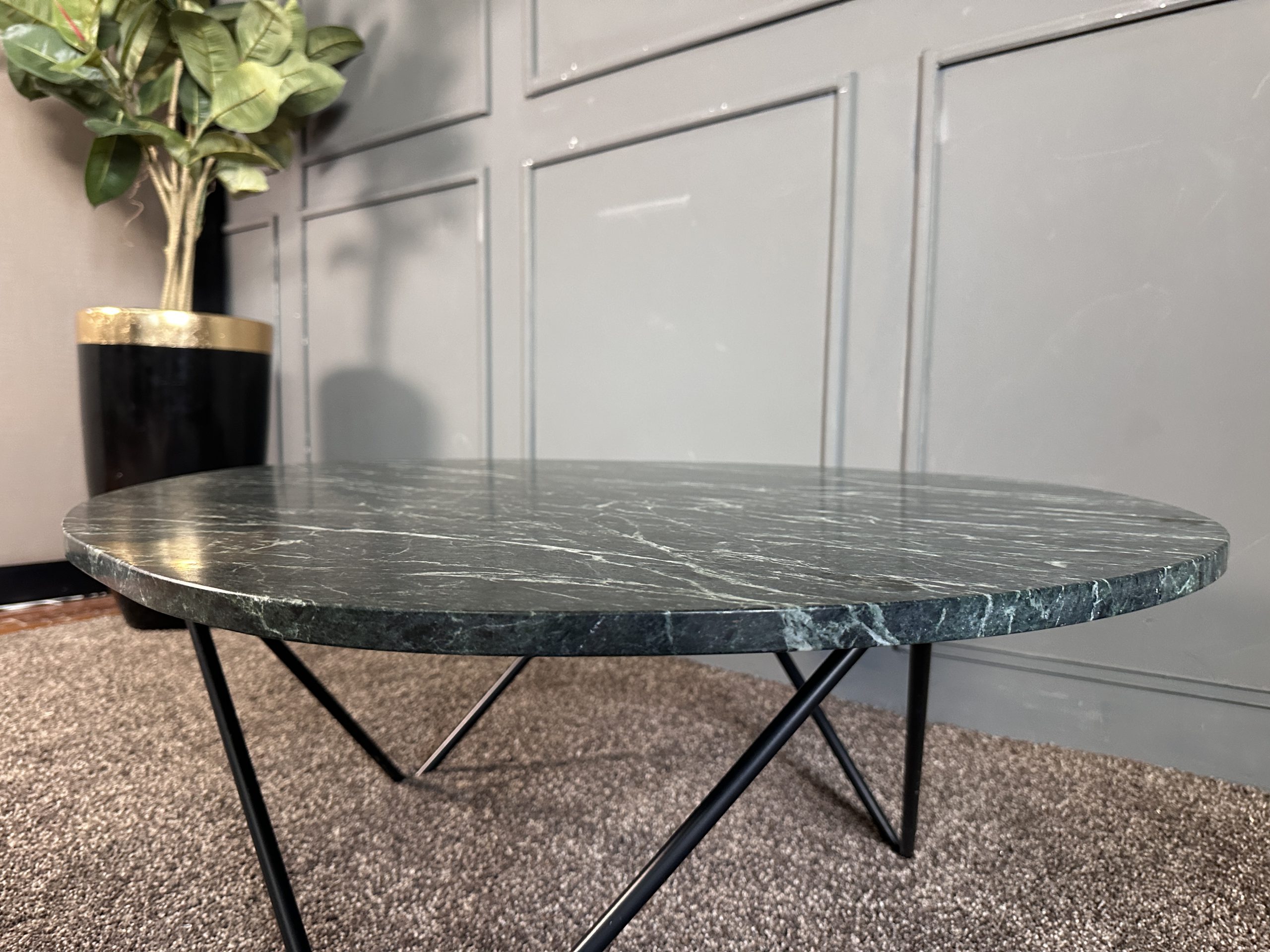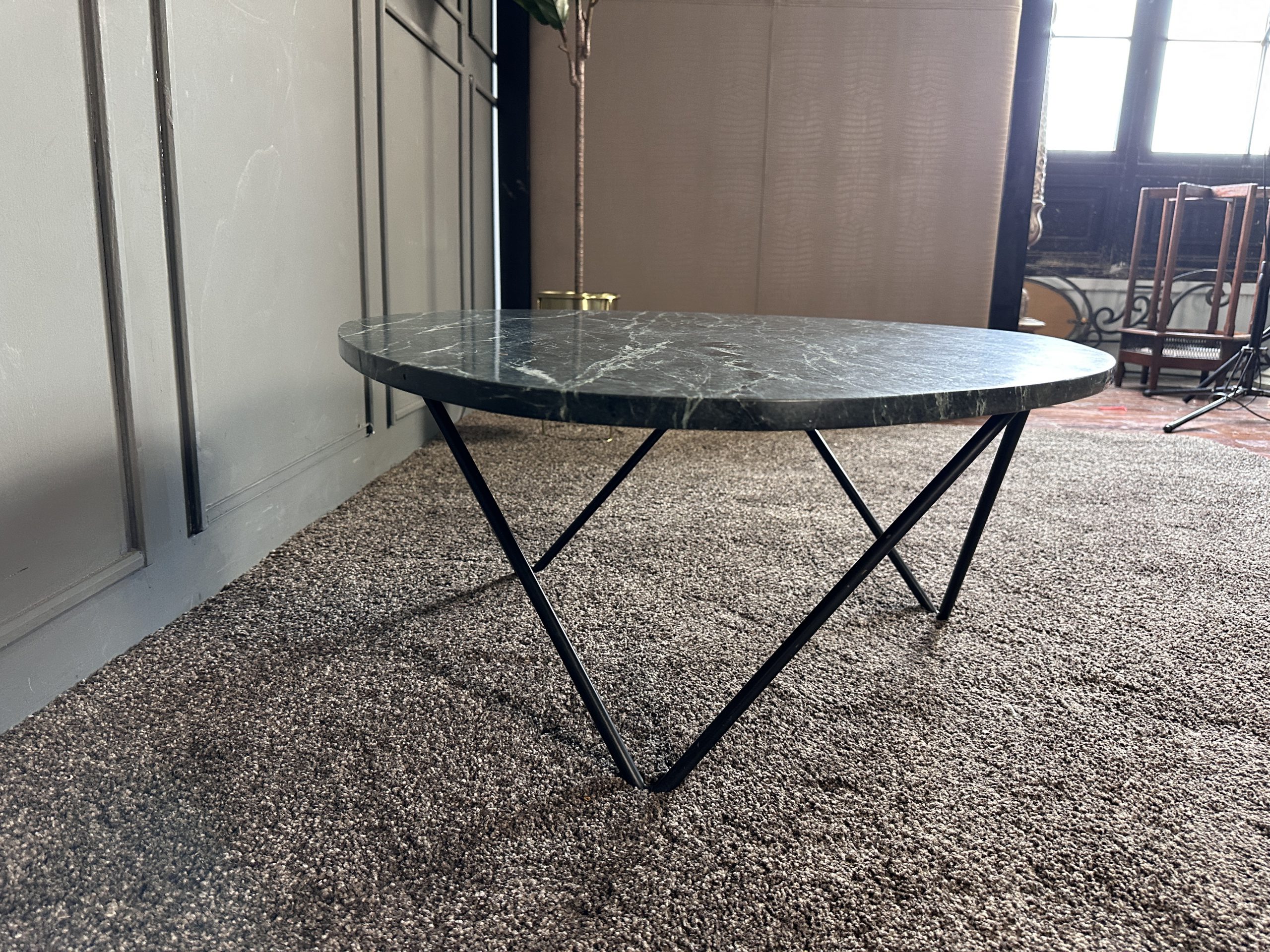 โต๊ะกลาง ท็อปหินแกรนิตสีเขียวทางหยดน้ำ โครงขาเหล็ก แบรนด์ Furnish Classy