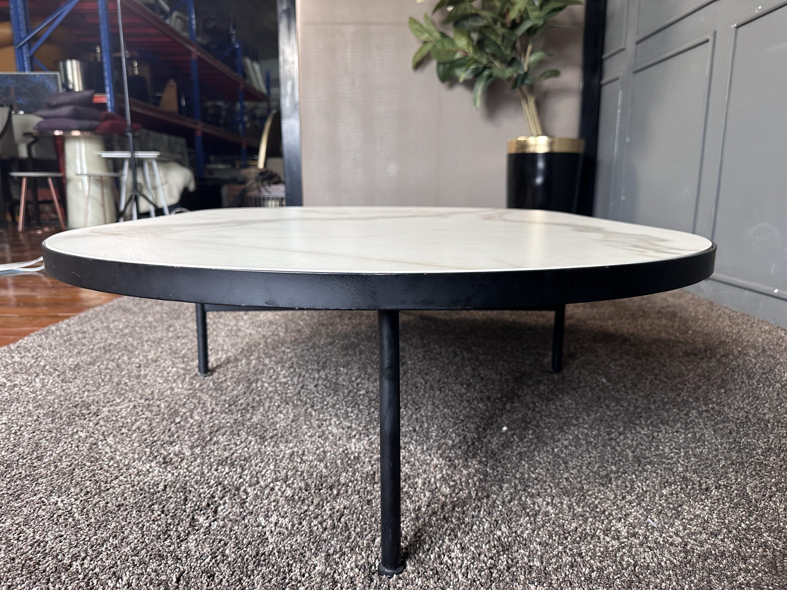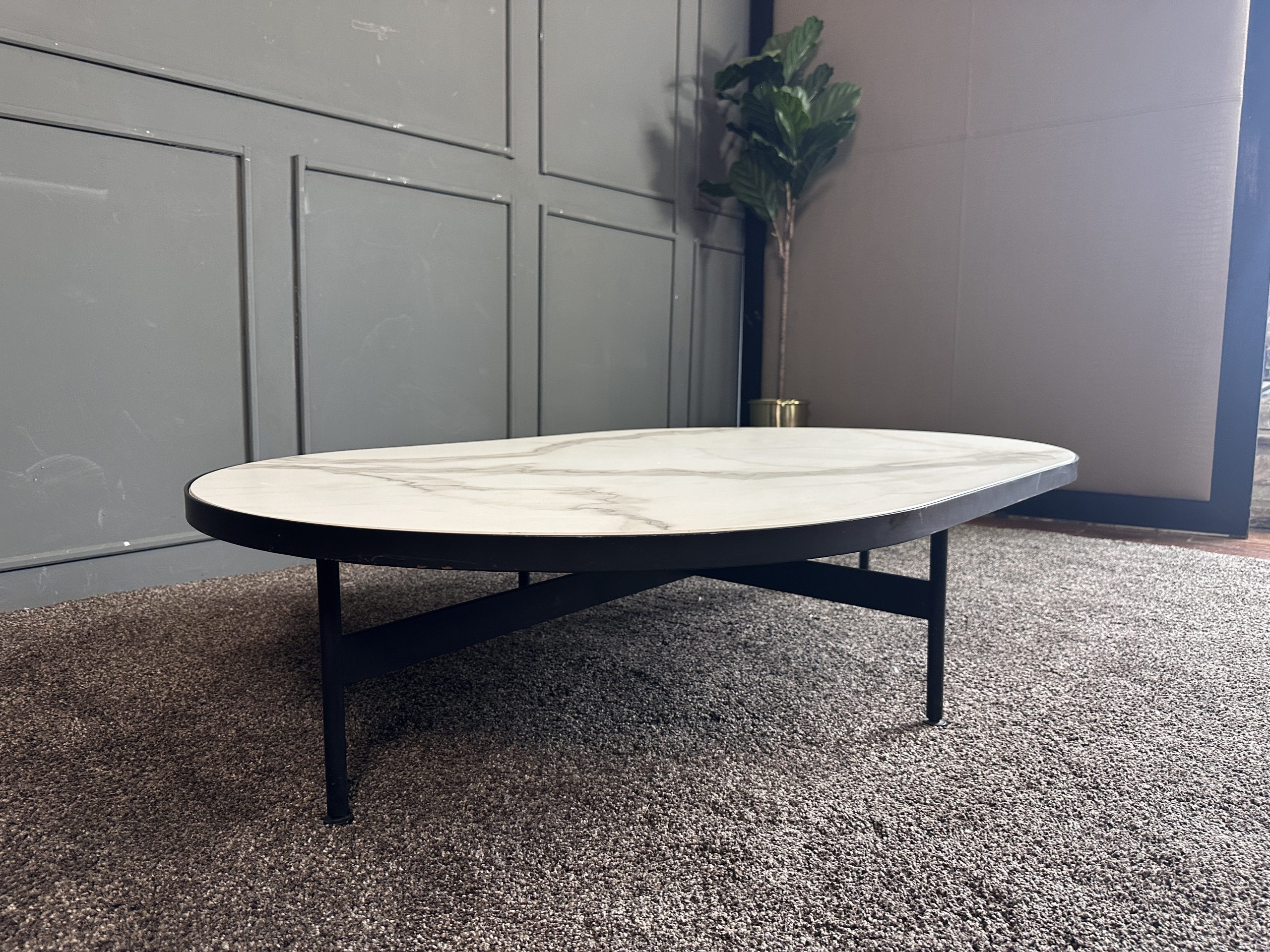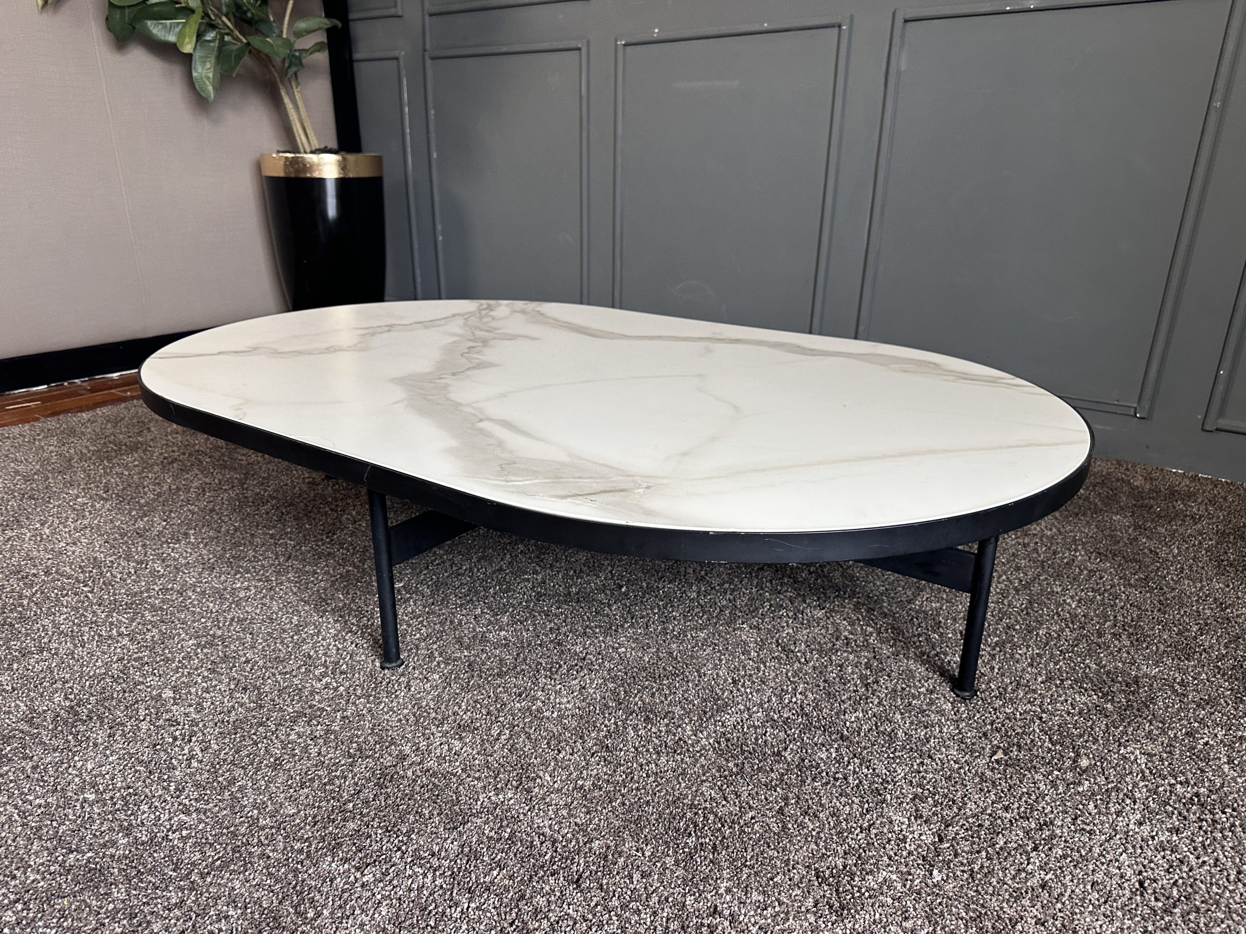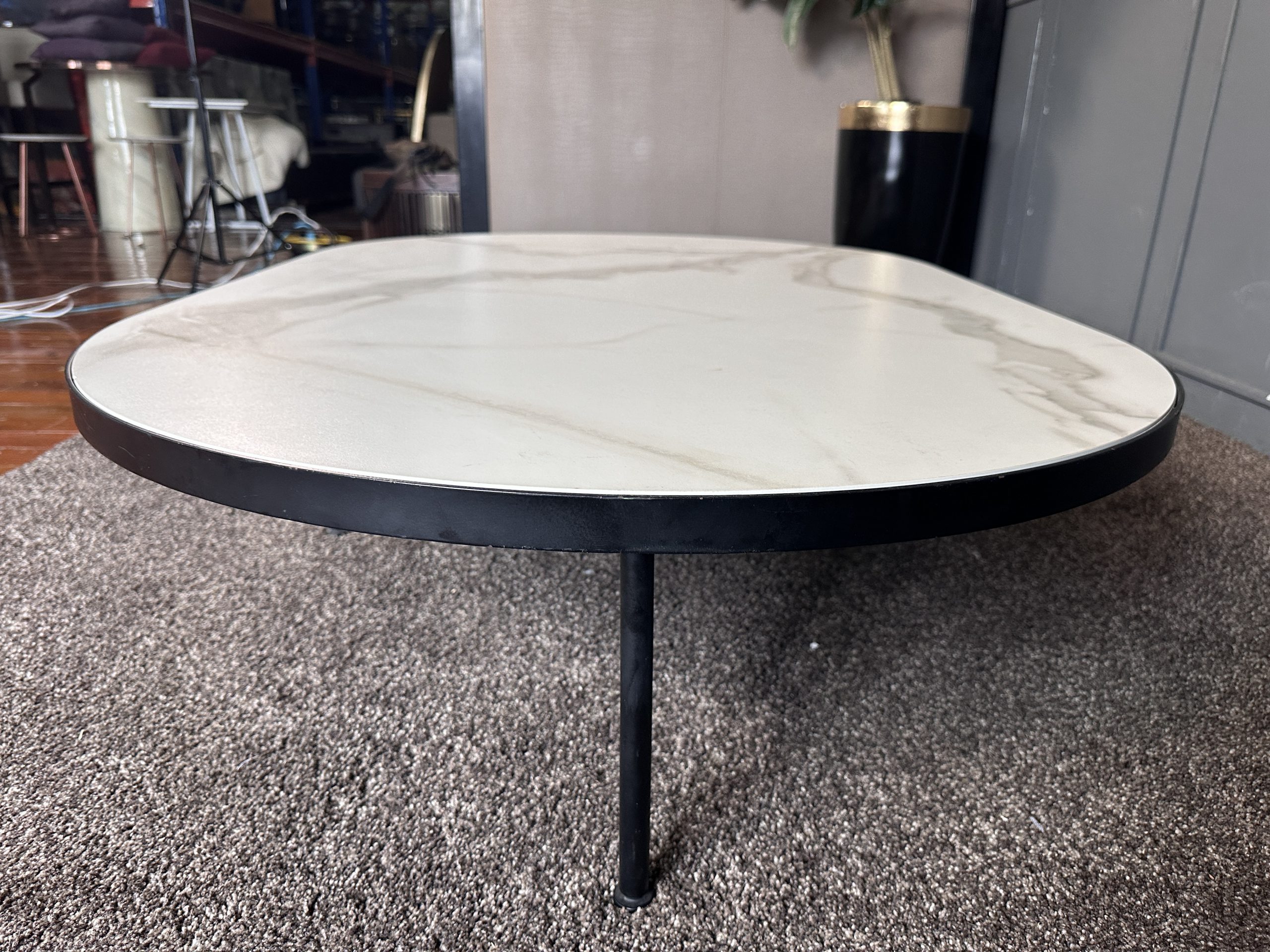 โต๊ะกลาง ท็อปหินแกรนิตสีขาว โครงขาเหล็กสีดำ