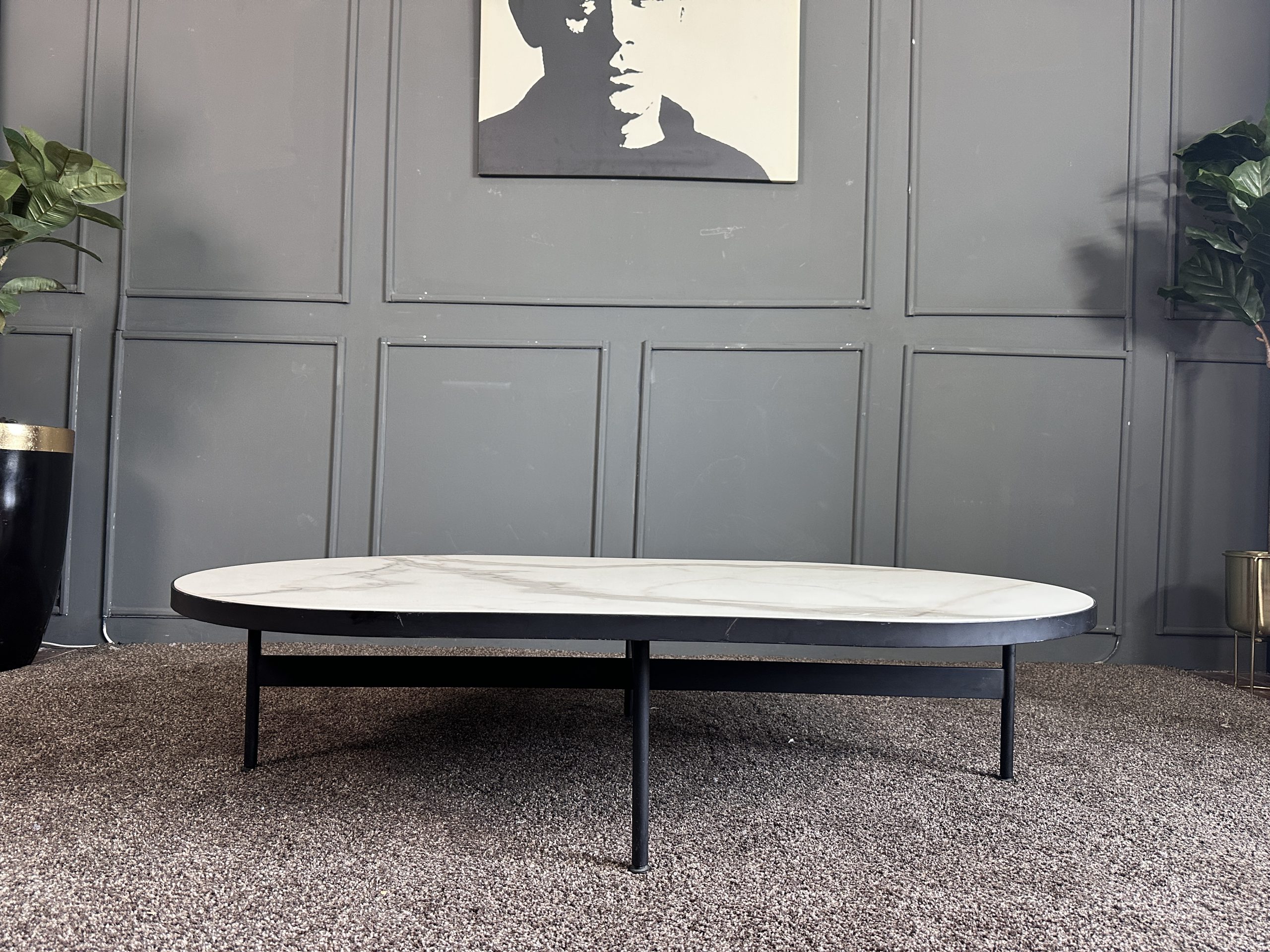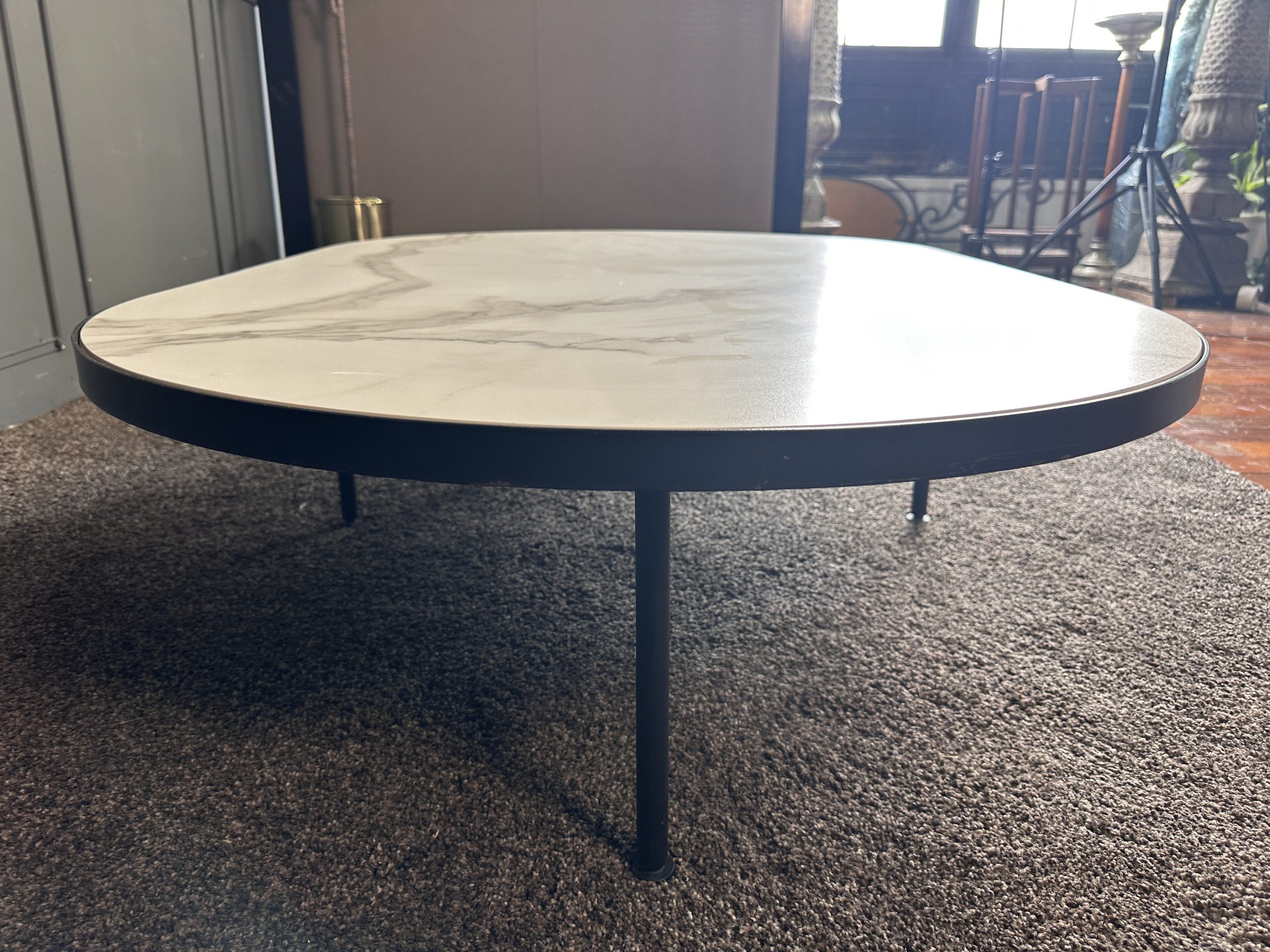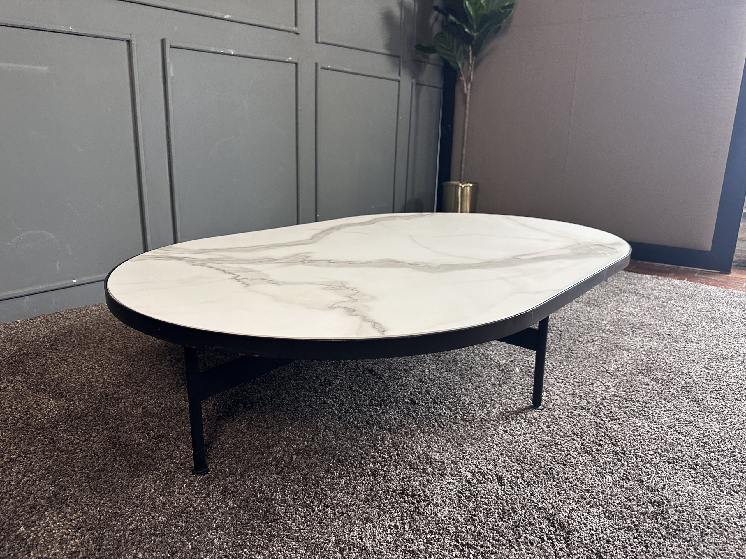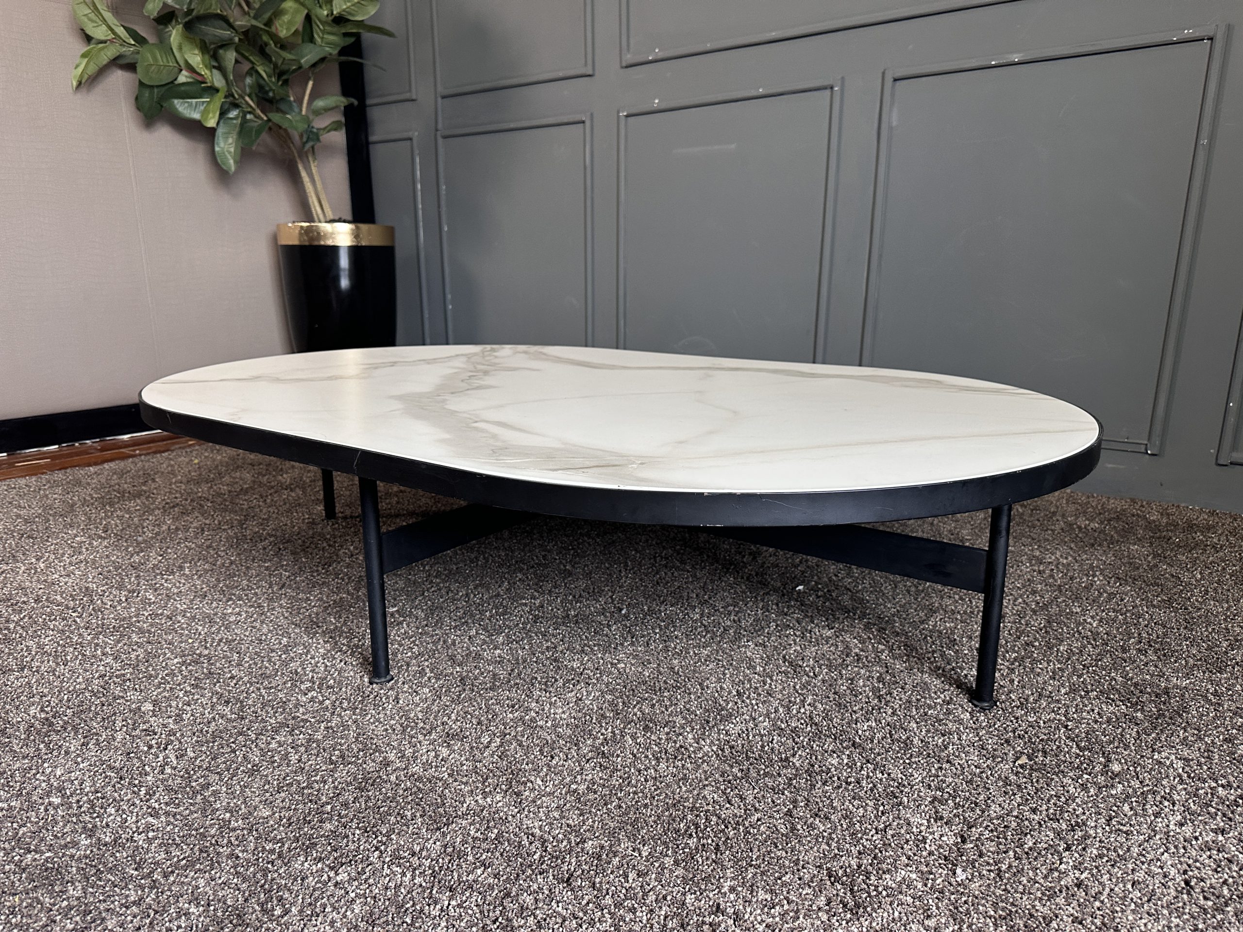 โต๊ะกลาง ท็อปหินแกรนิตสีขาว โครงขาเหล็กสีดำ