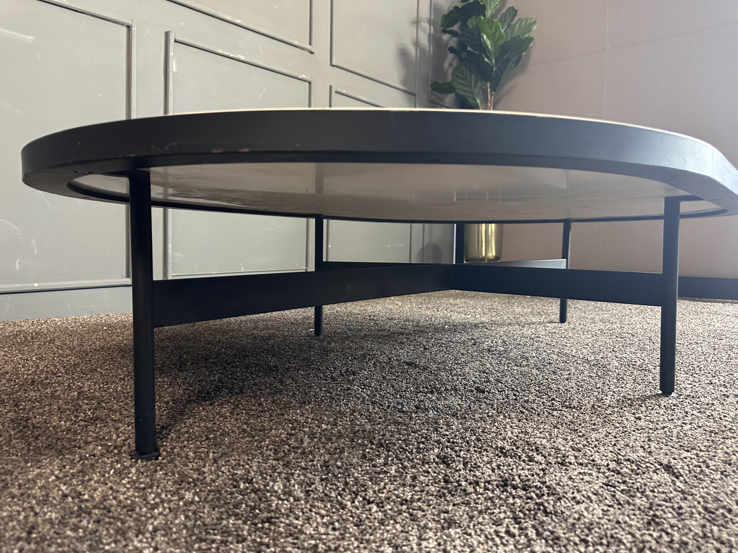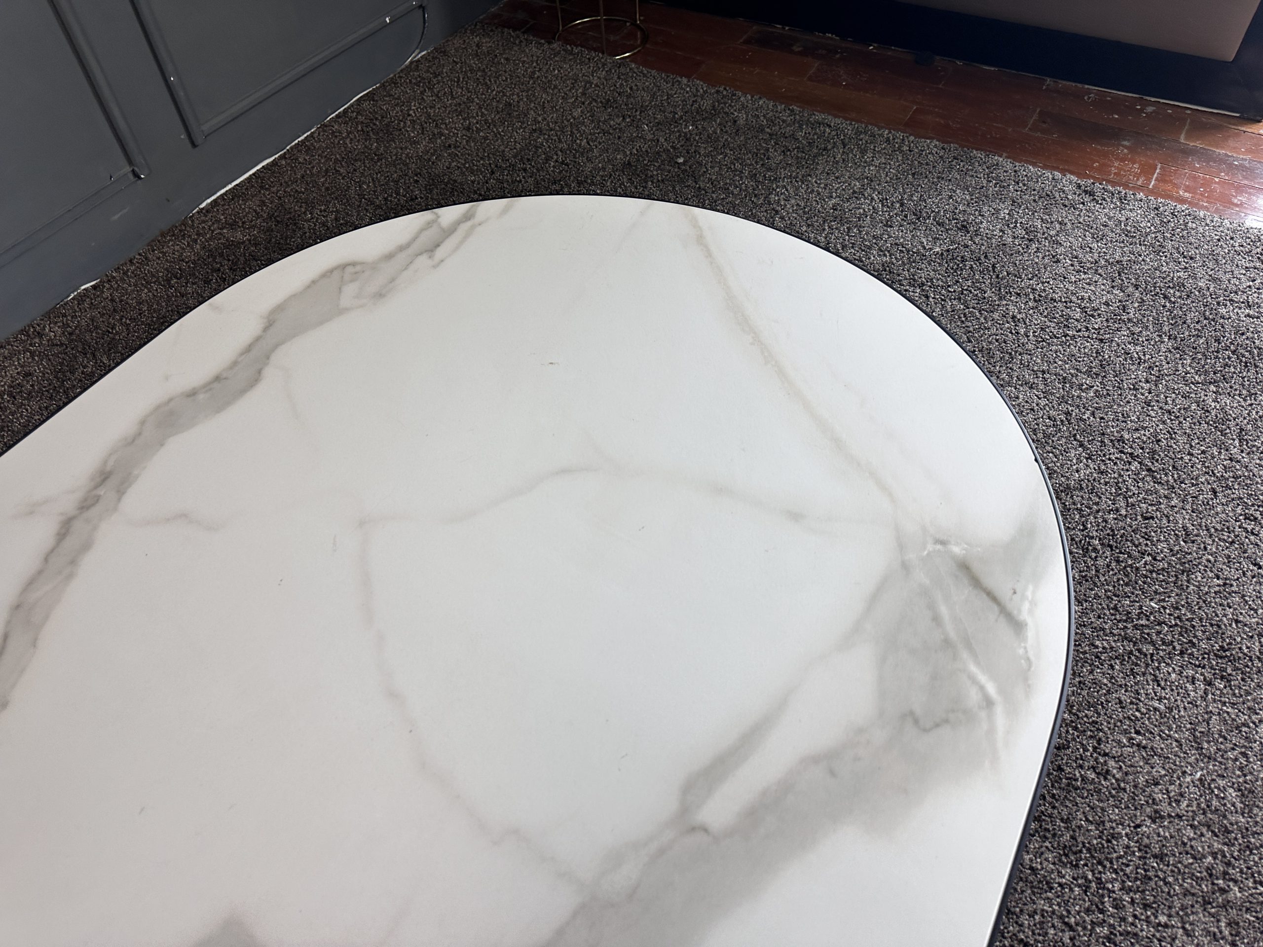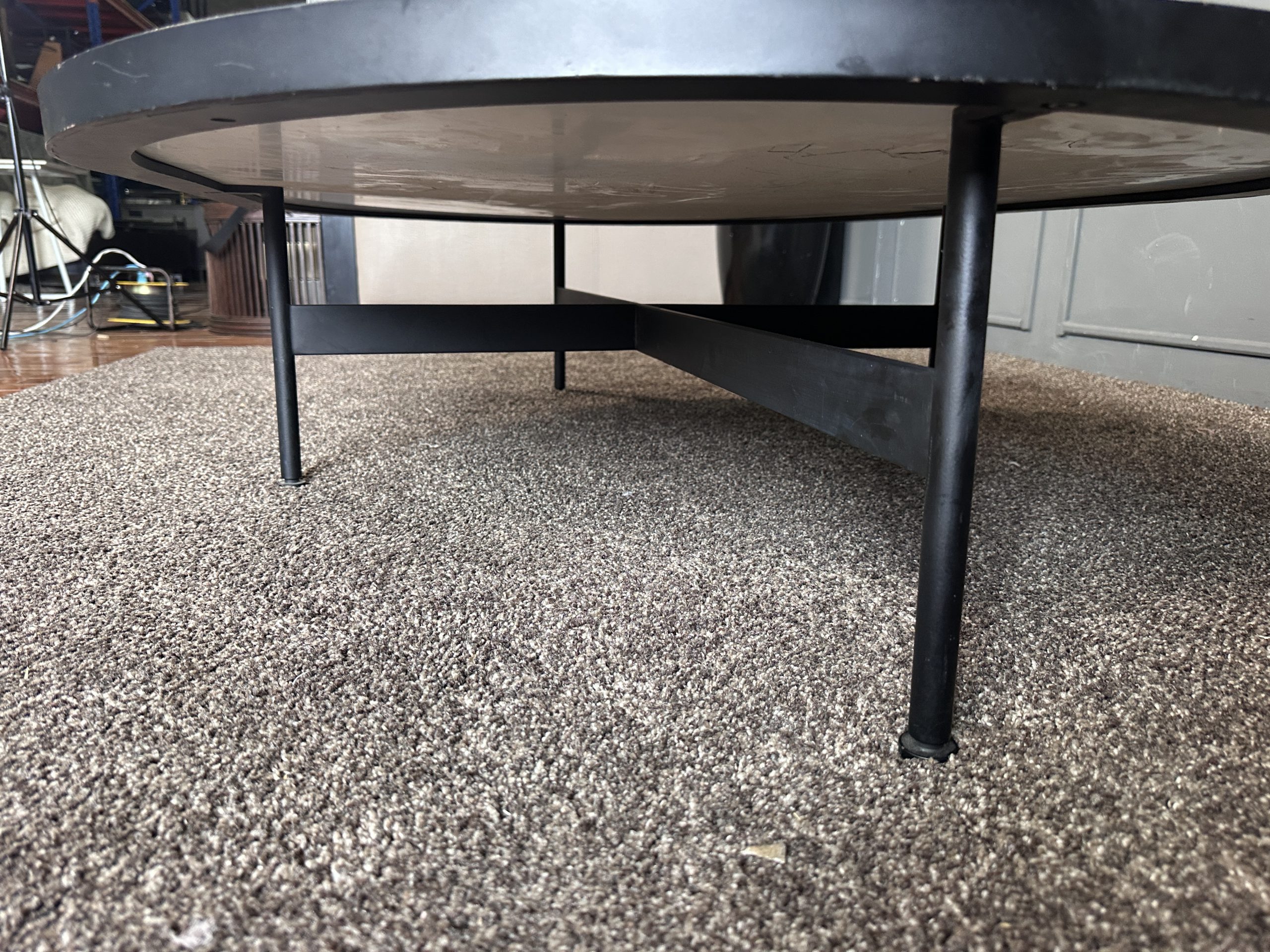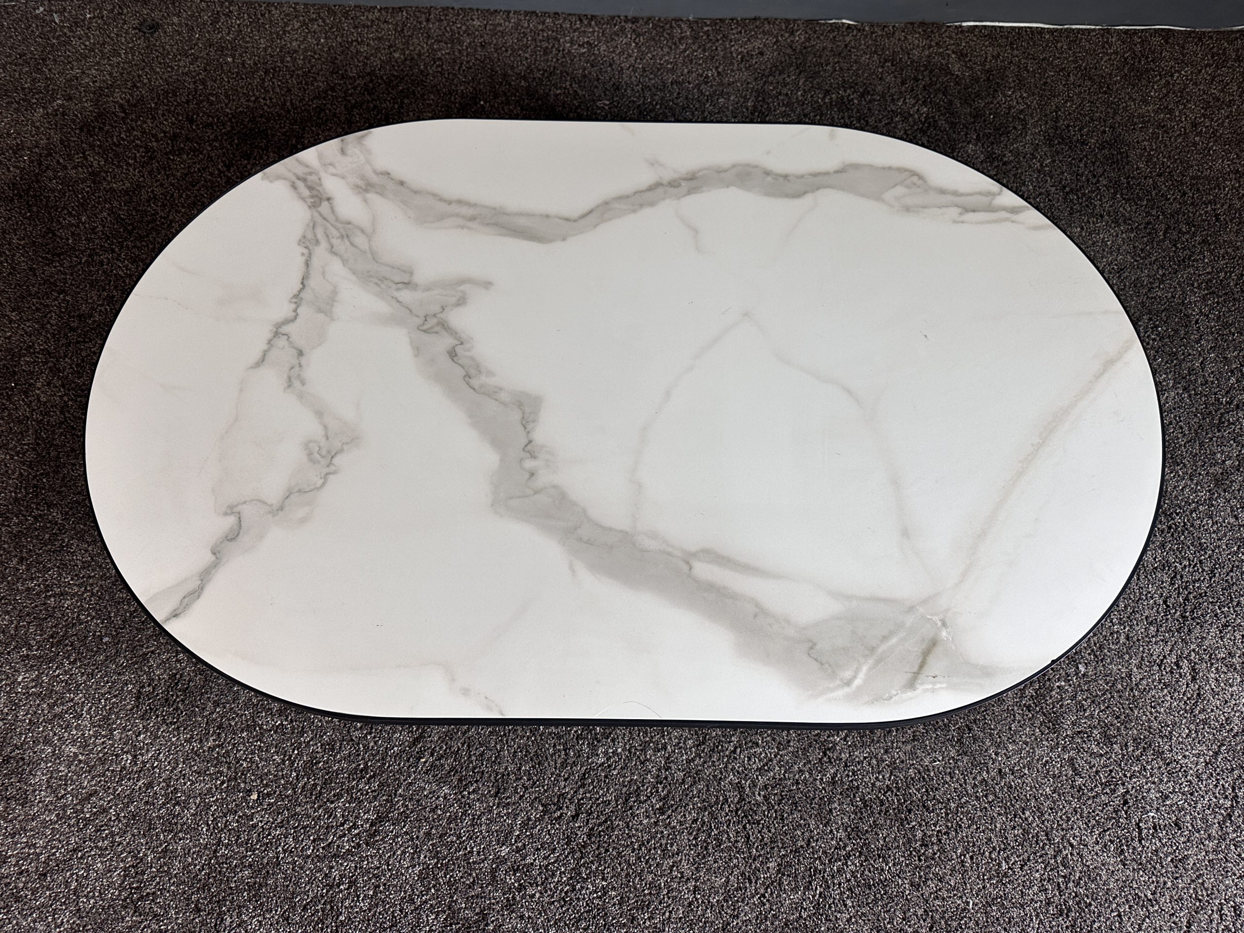 โต๊ะกลาง ท็อปหินแกรนิตสีขาว โครงขาเหล็กสีดำ