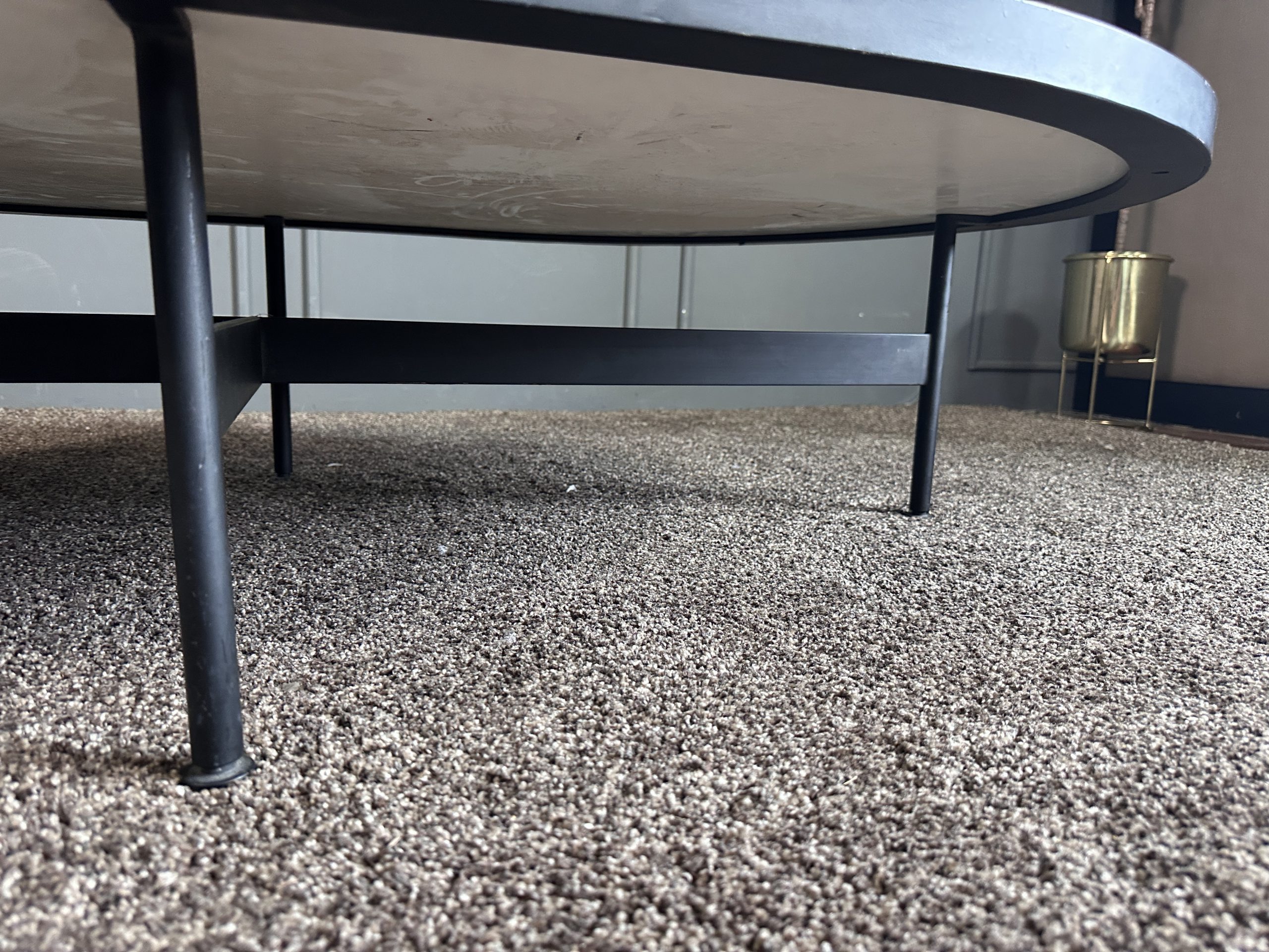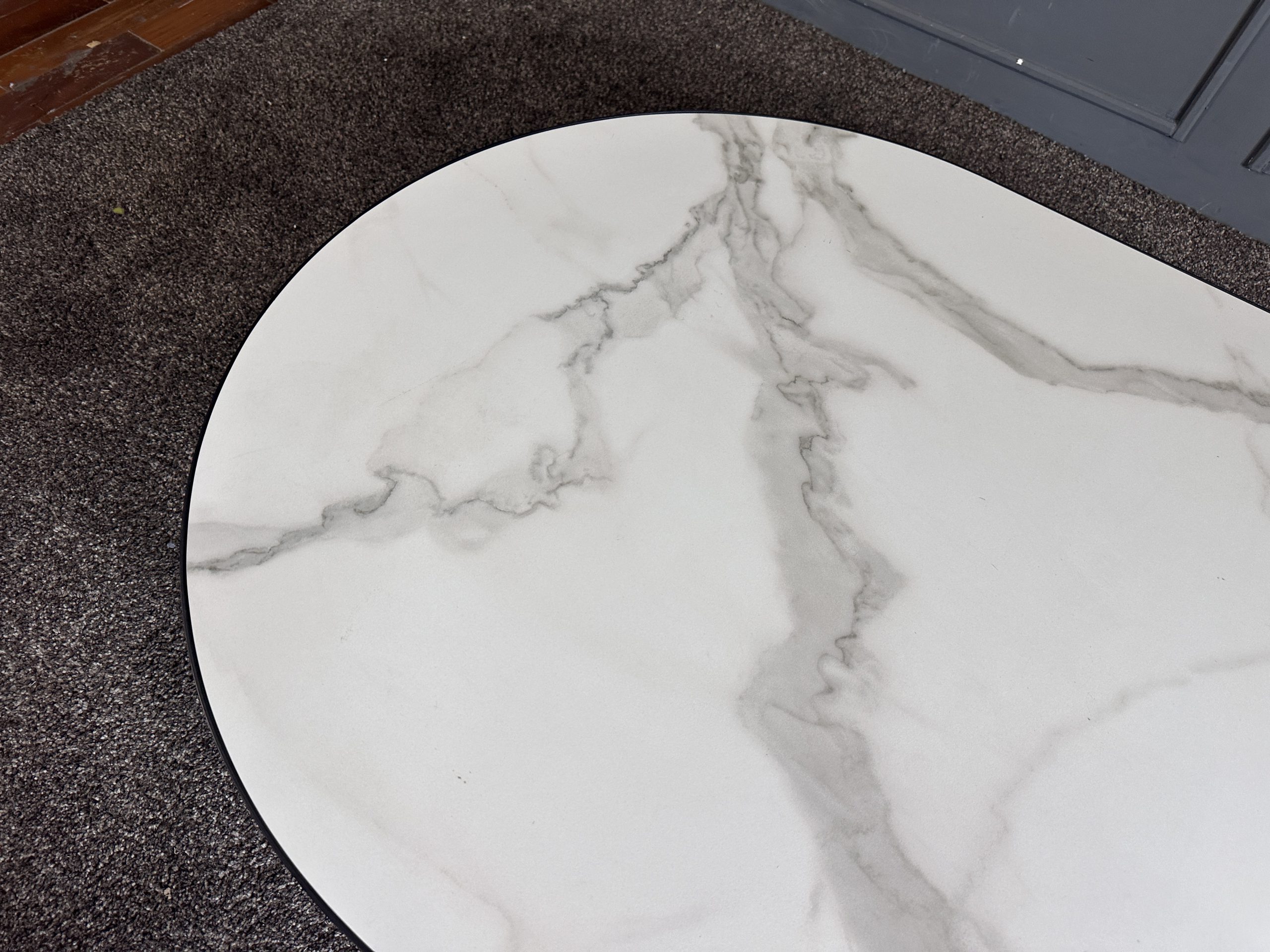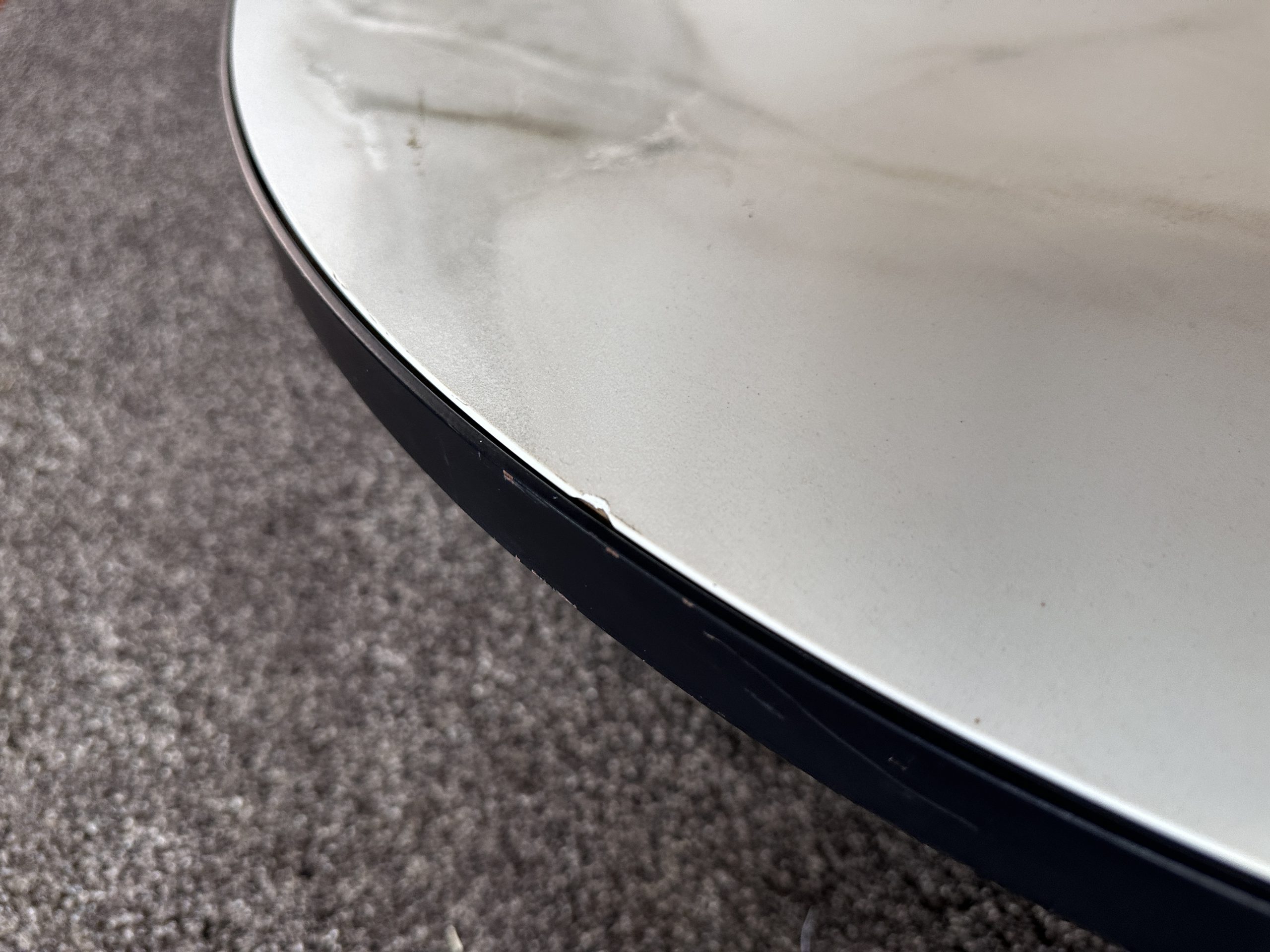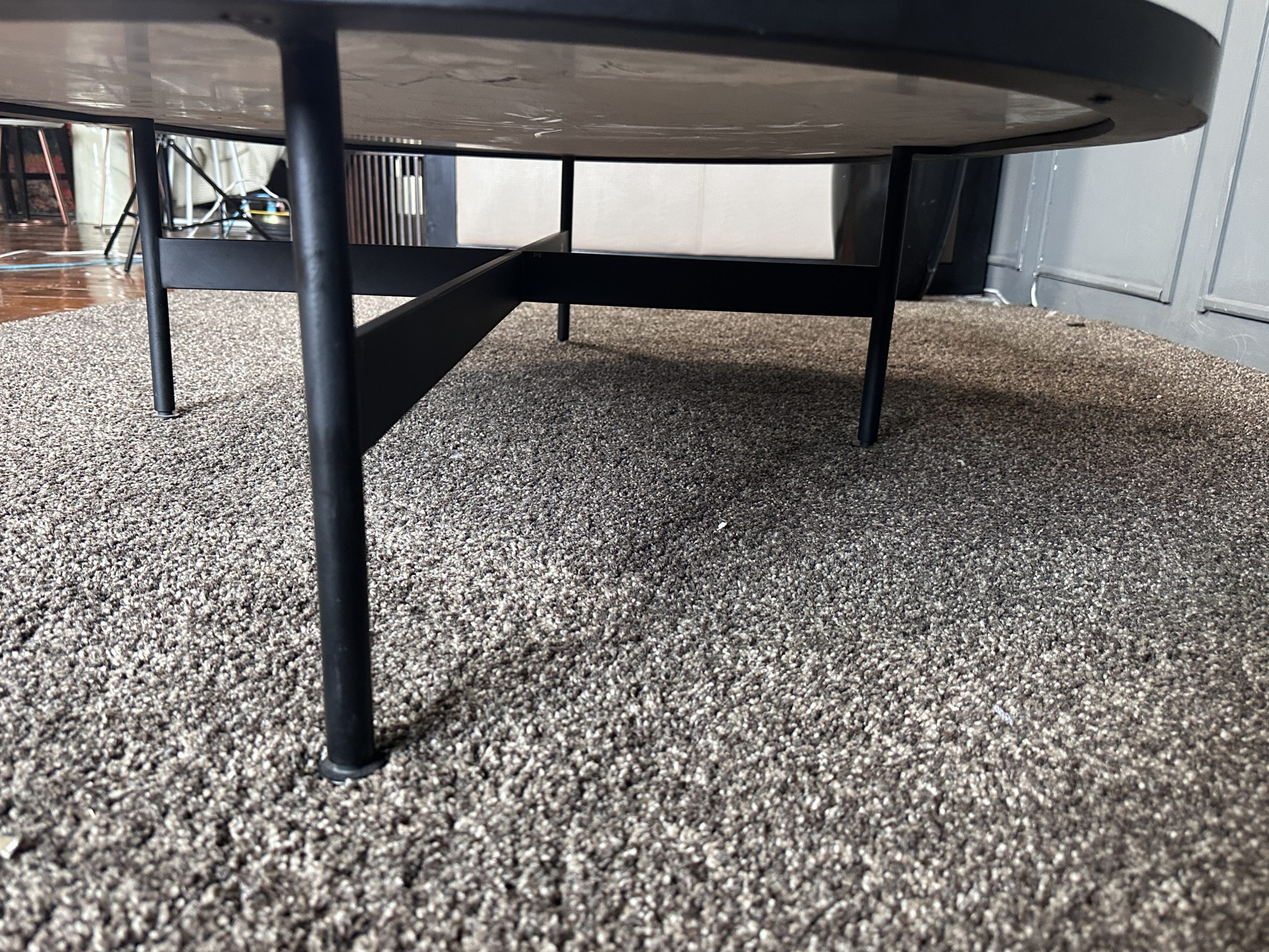 โต๊ะกลาง ท็อปหินแกรนิตสีขาว โครงขาเหล็กสีดำ