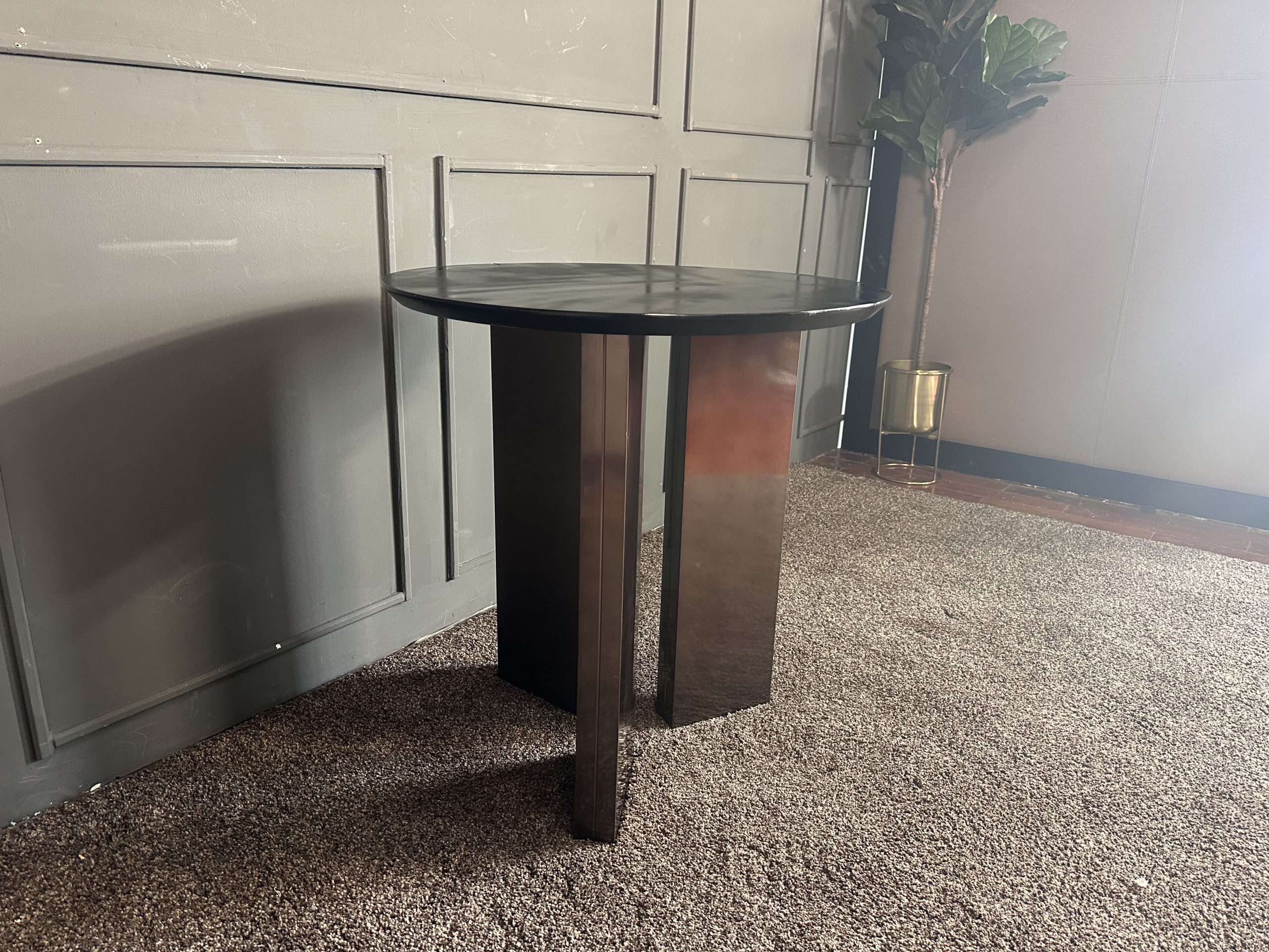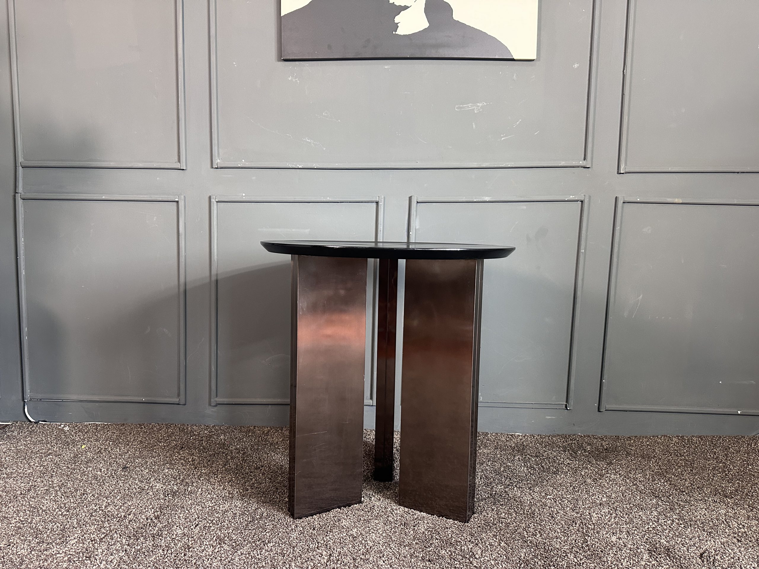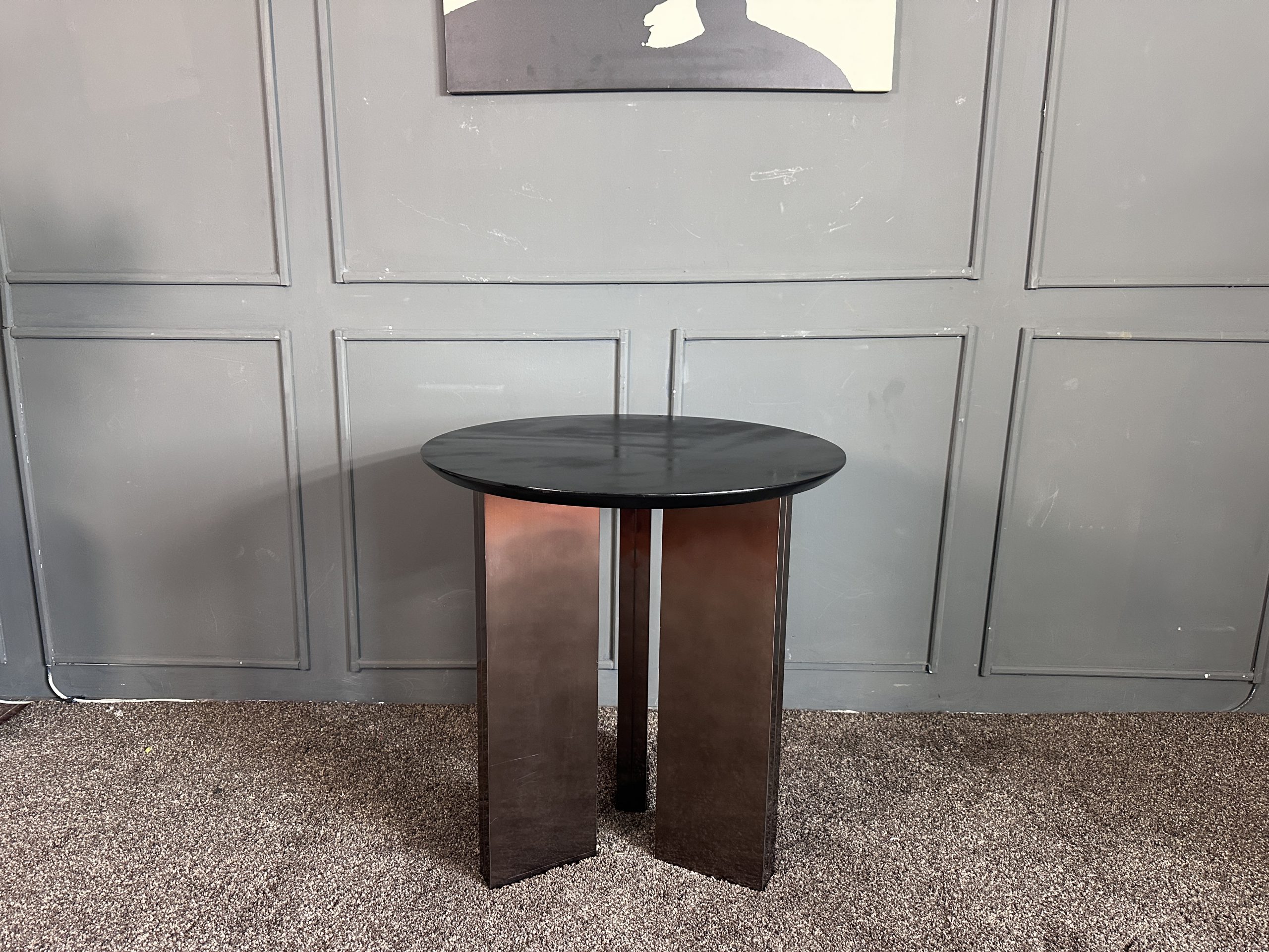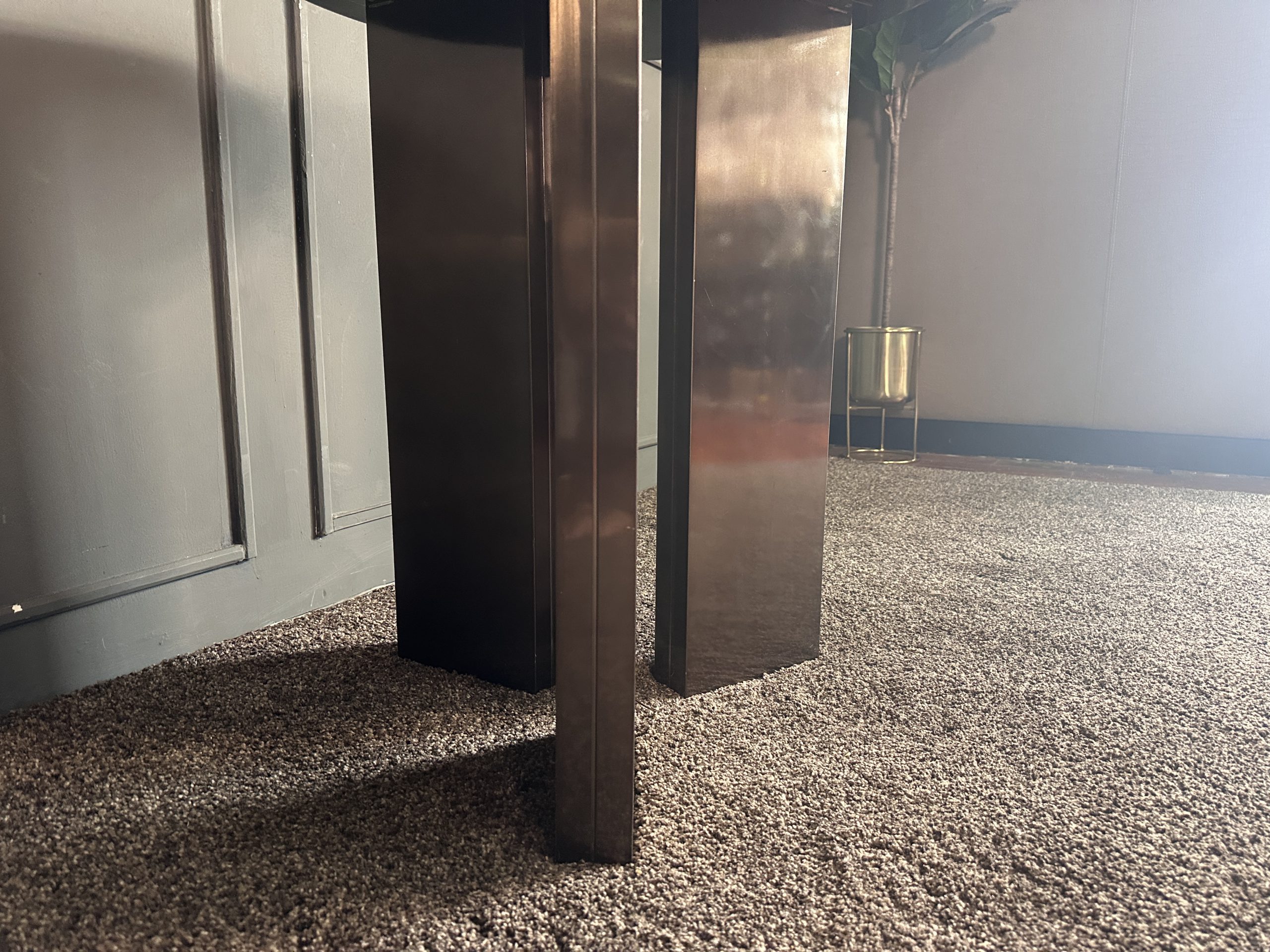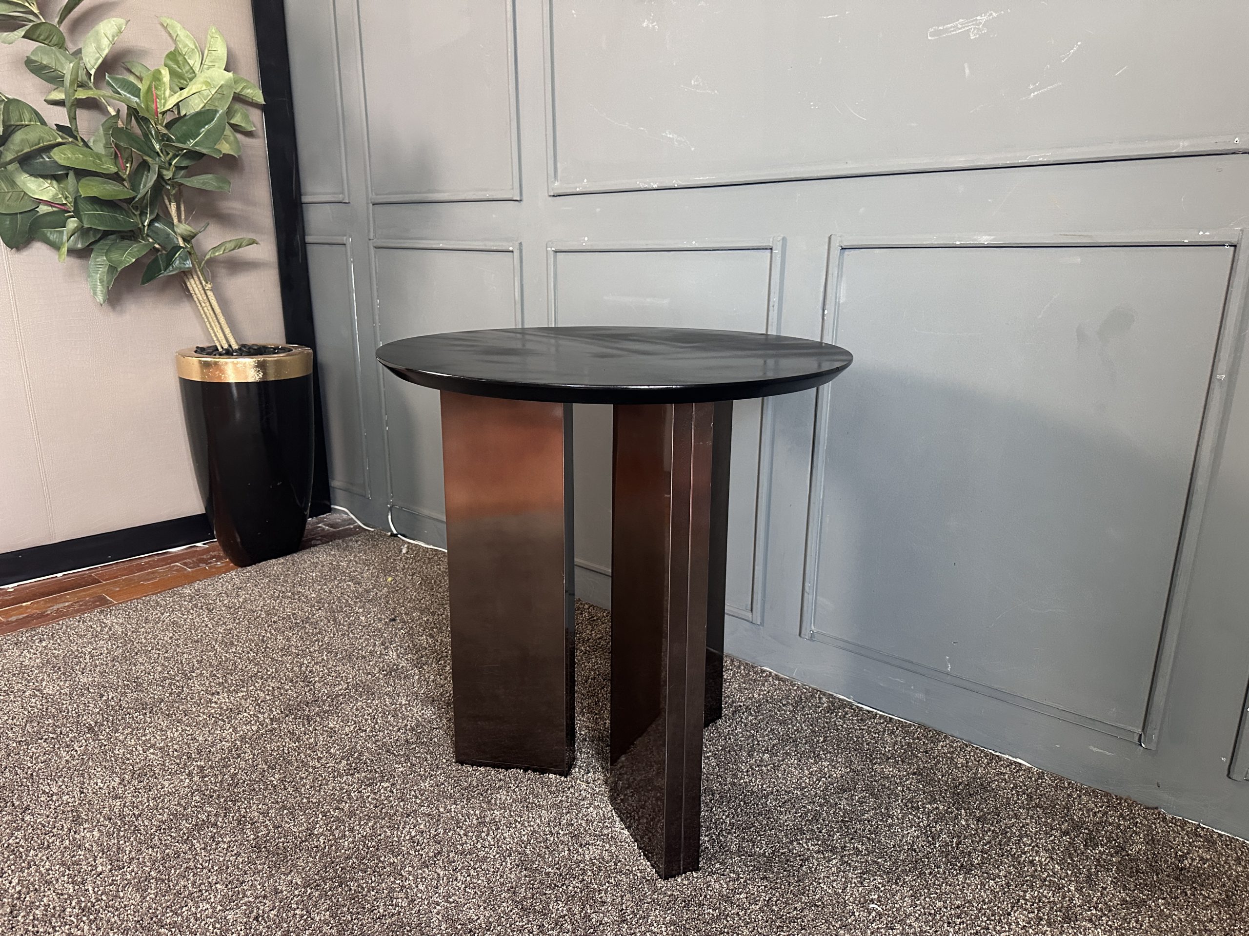 โต๊ะกลาง ท็อปไม้ MDF ไฮกรอสสีดำ โครงขาไม้ แปะแผ่นสแตนเลสสีทองแดง