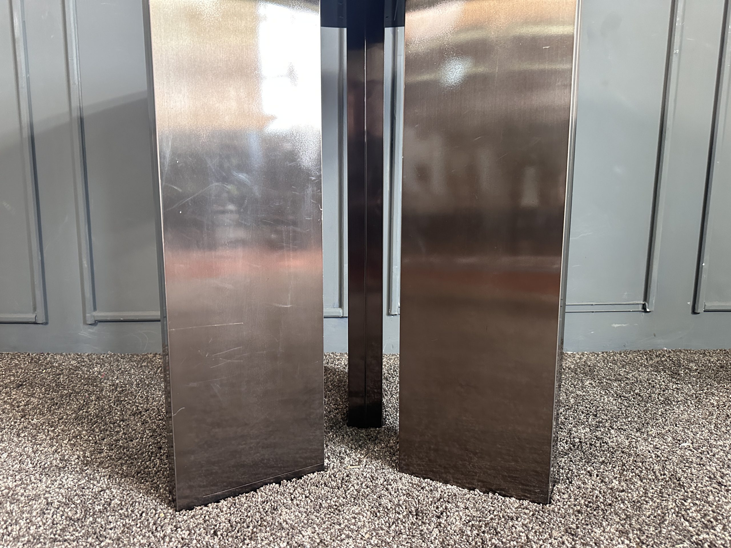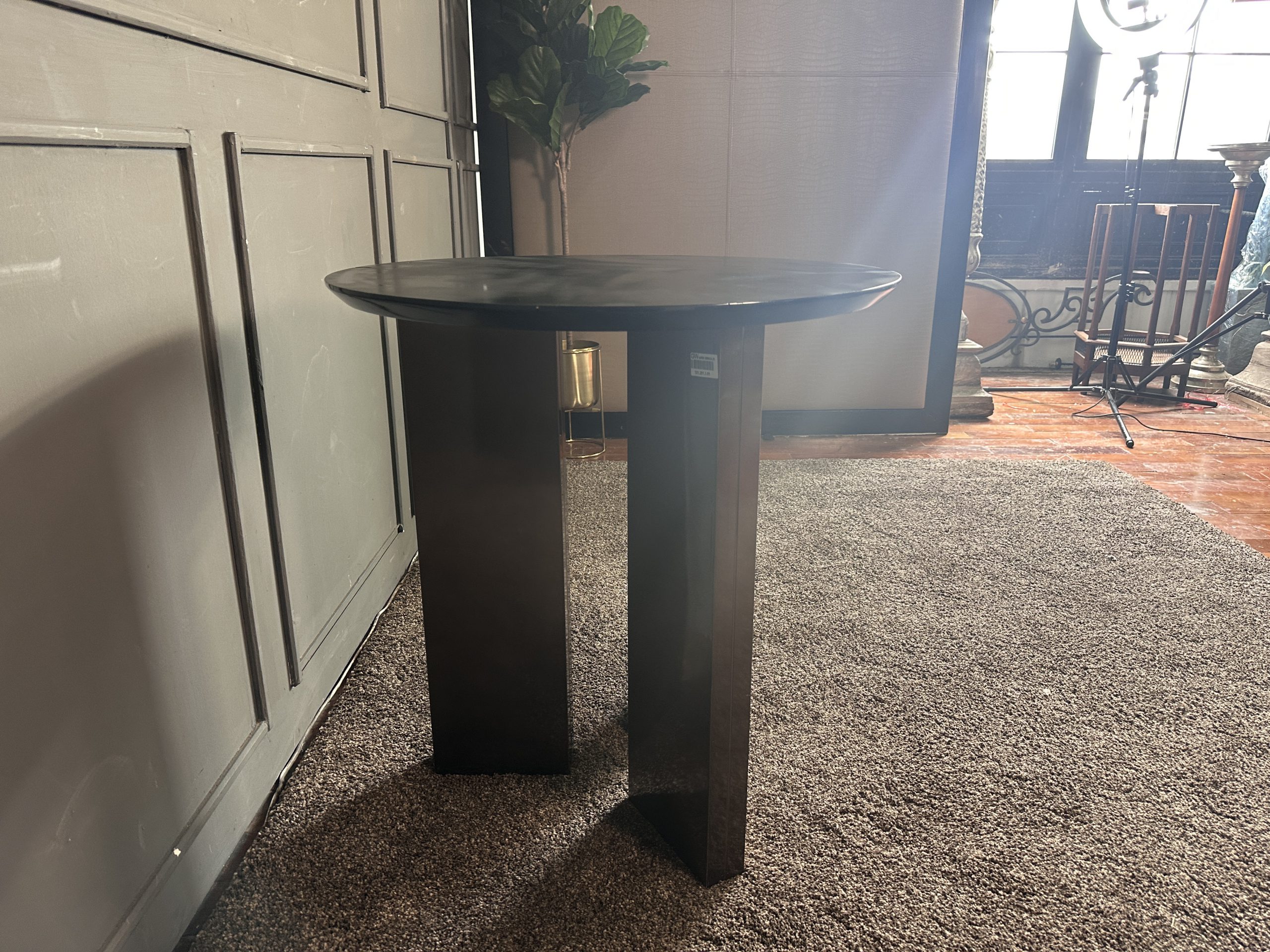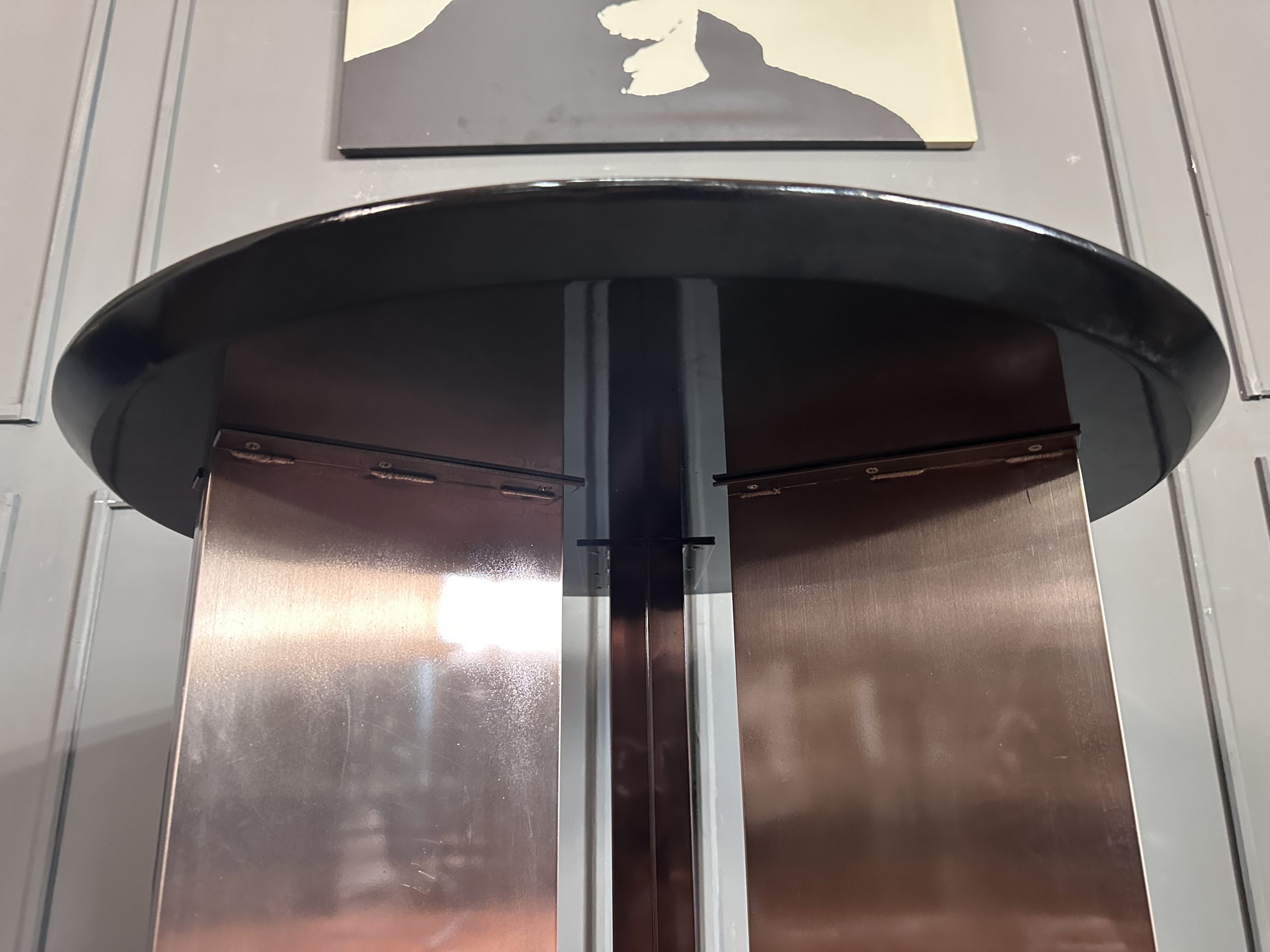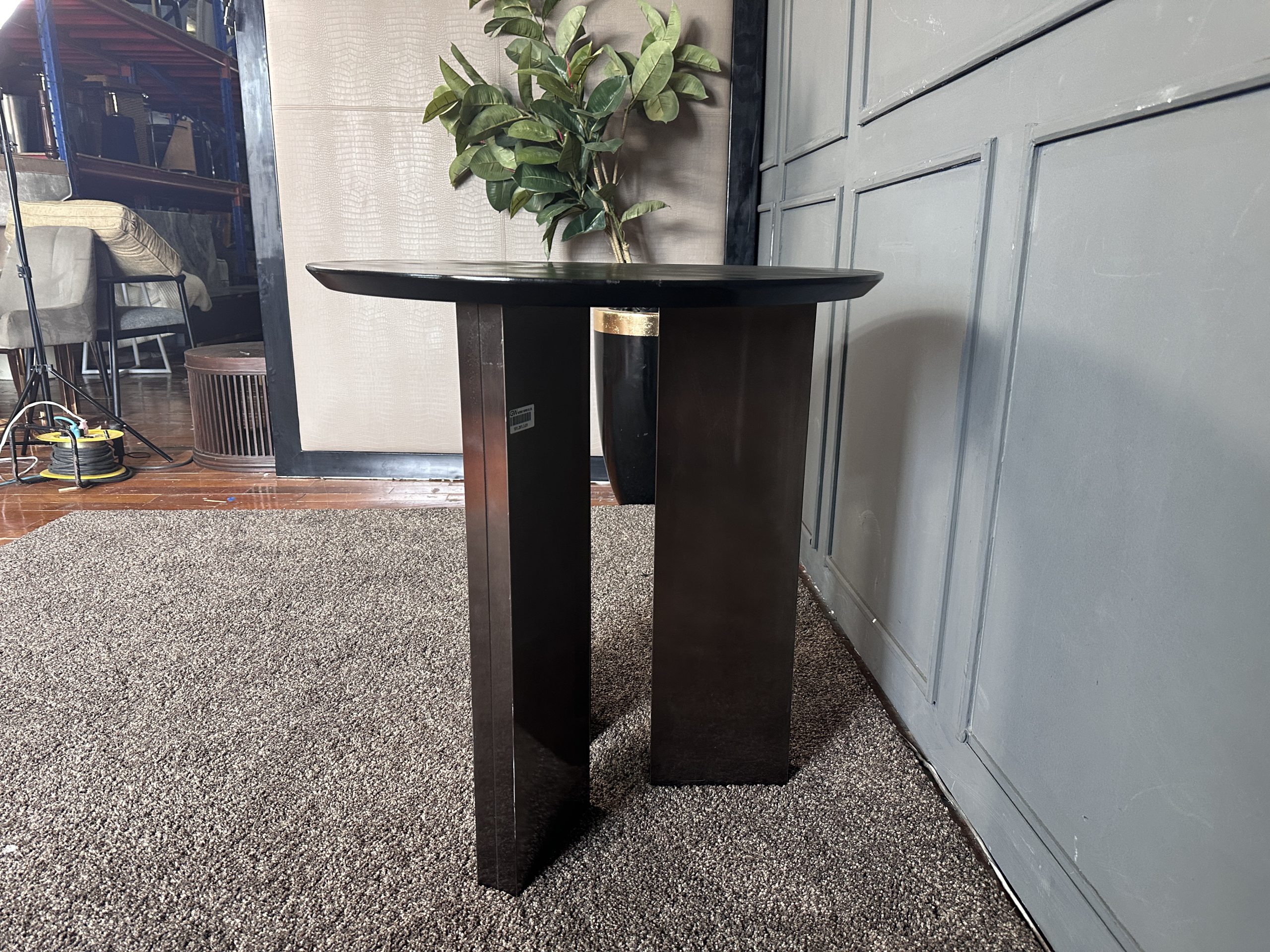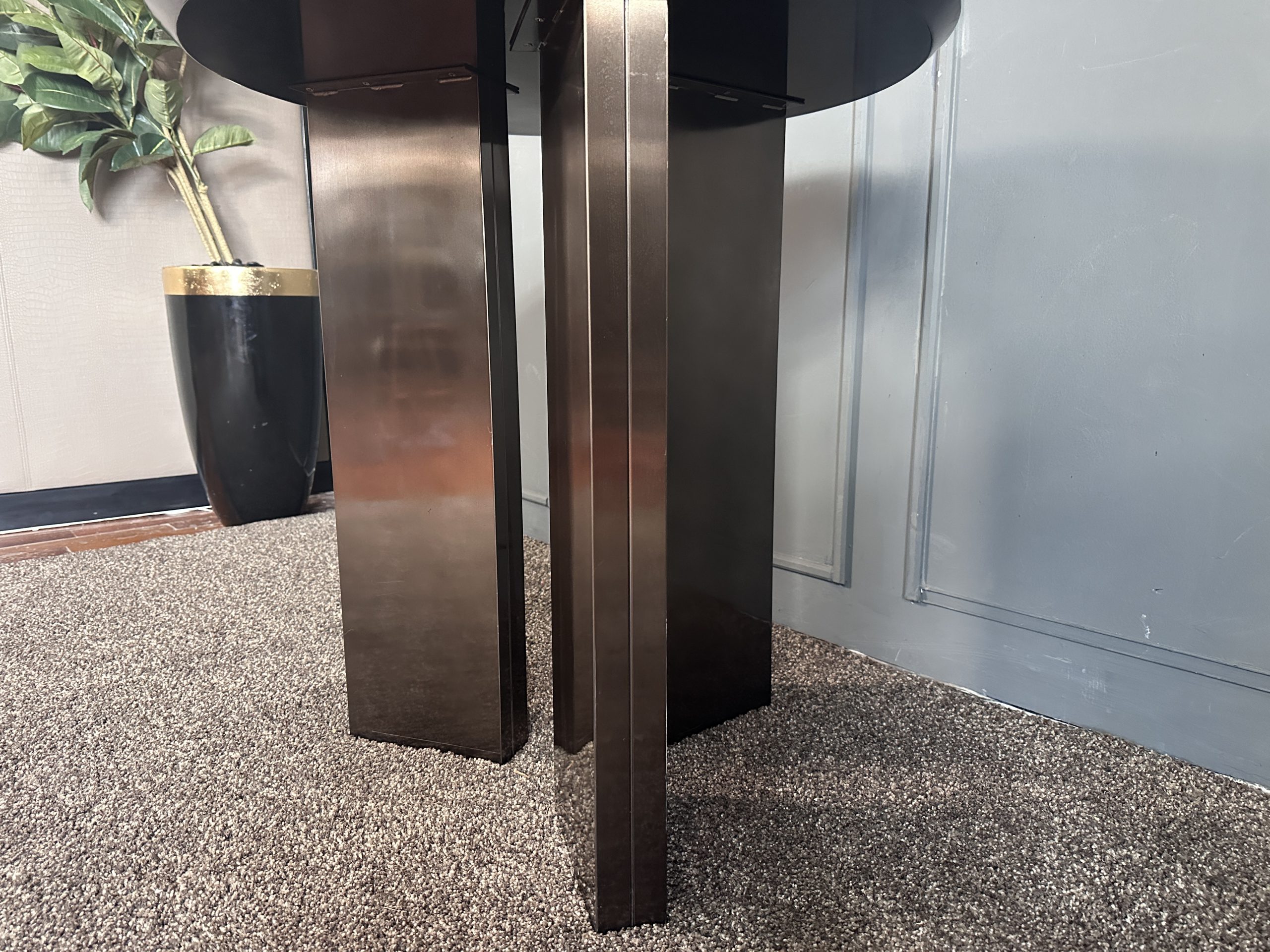 โต๊ะกลาง ท็อปไม้ MDF ไฮกรอสสีดำ โครงขาไม้ แปะแผ่นสแตนเลสสีทองแดง