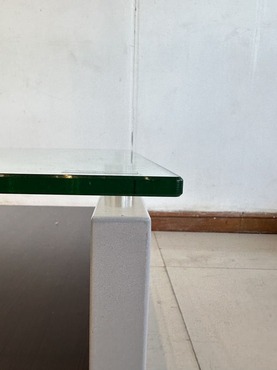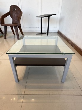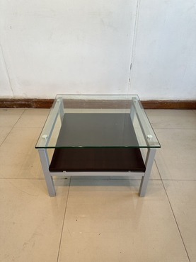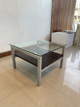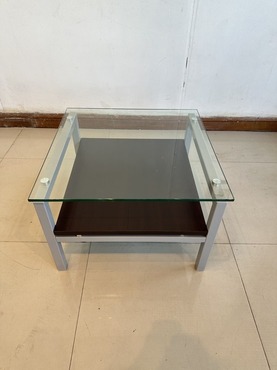 โต๊ะกลาง แบรนด์ LOGICA ท็อปกระจก โครงขาเหล็กสีเทา