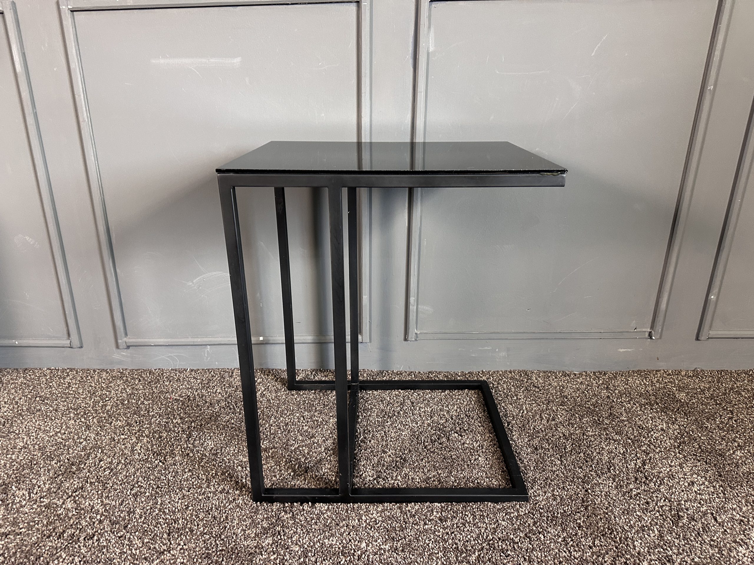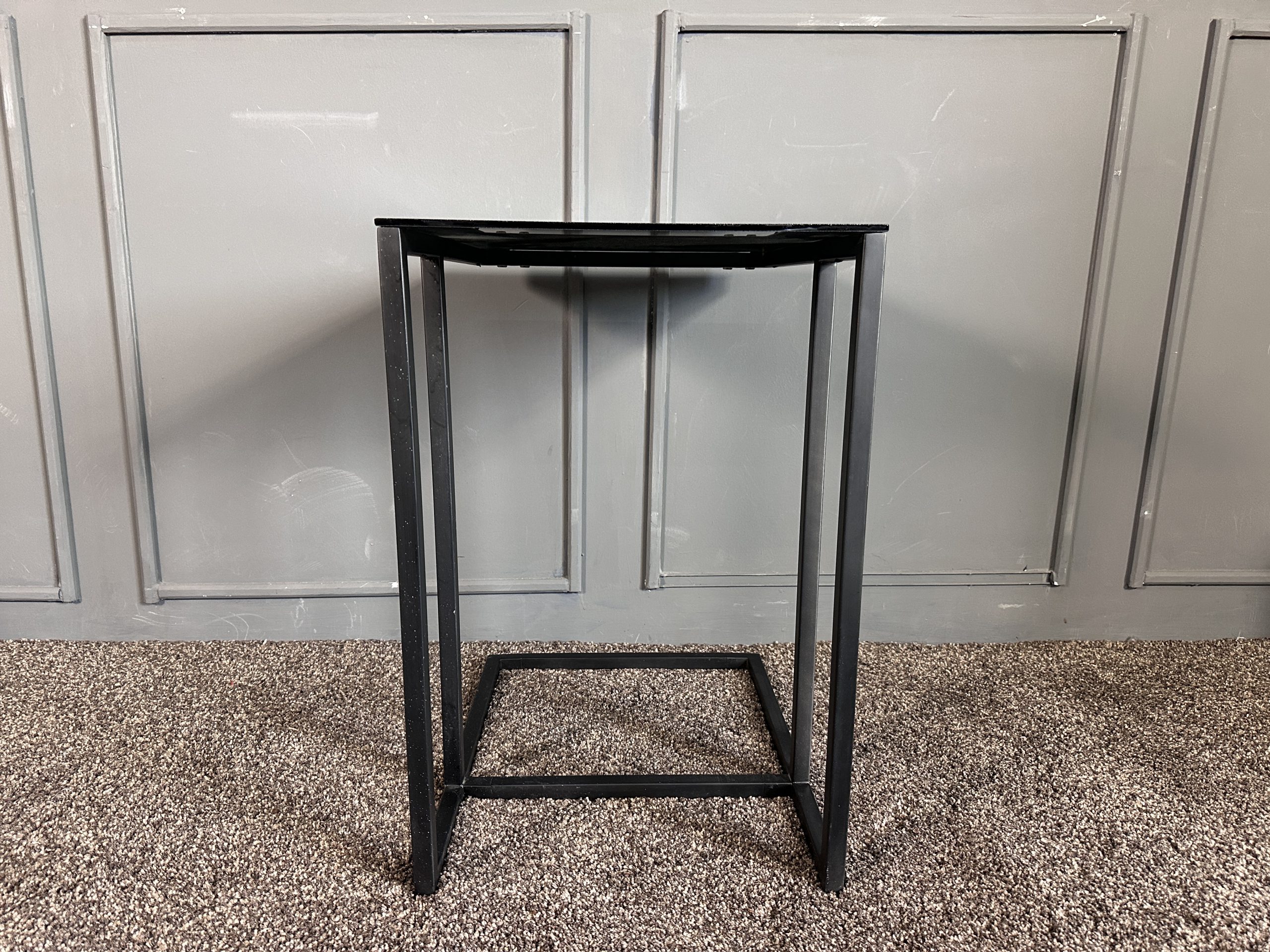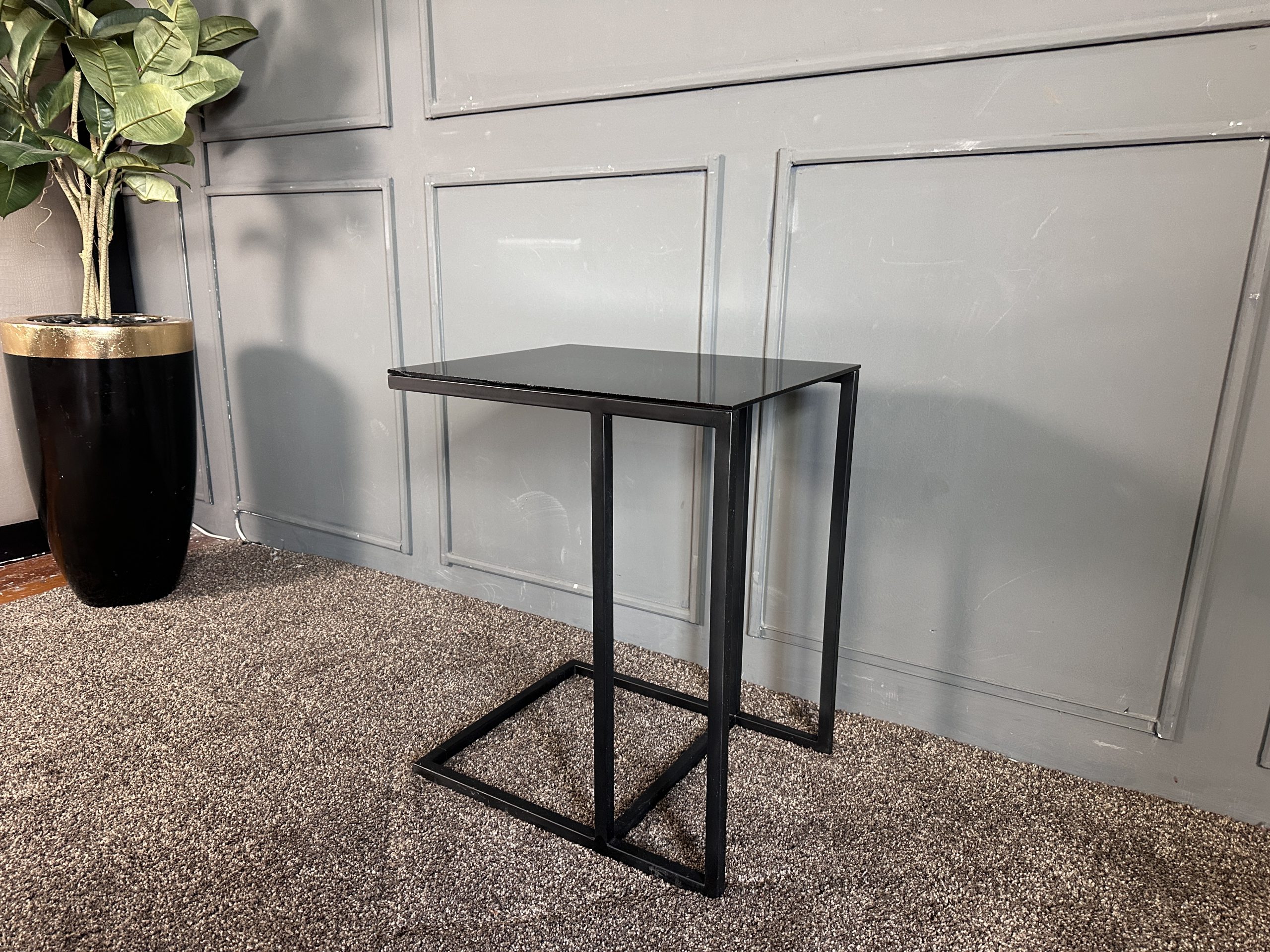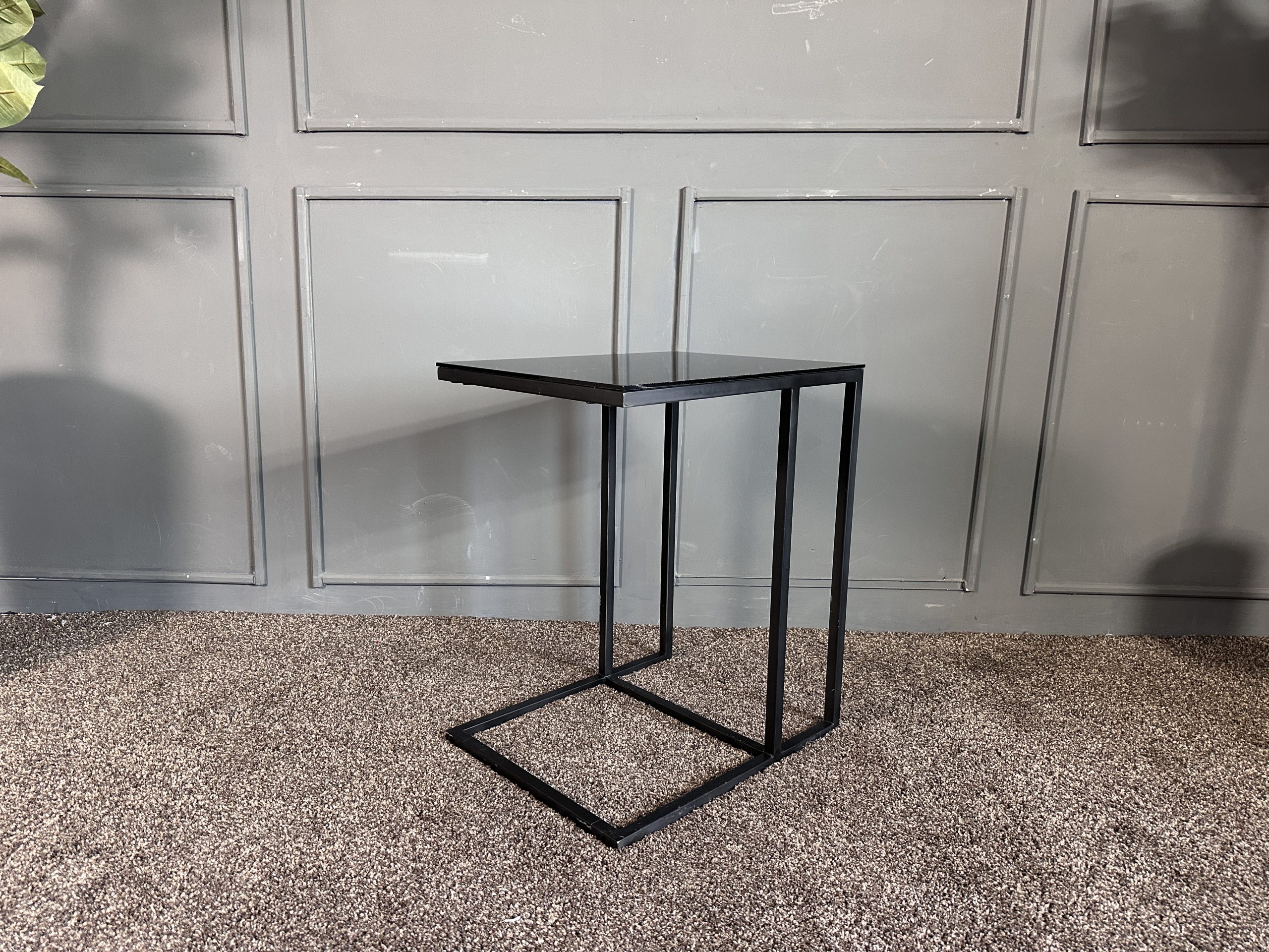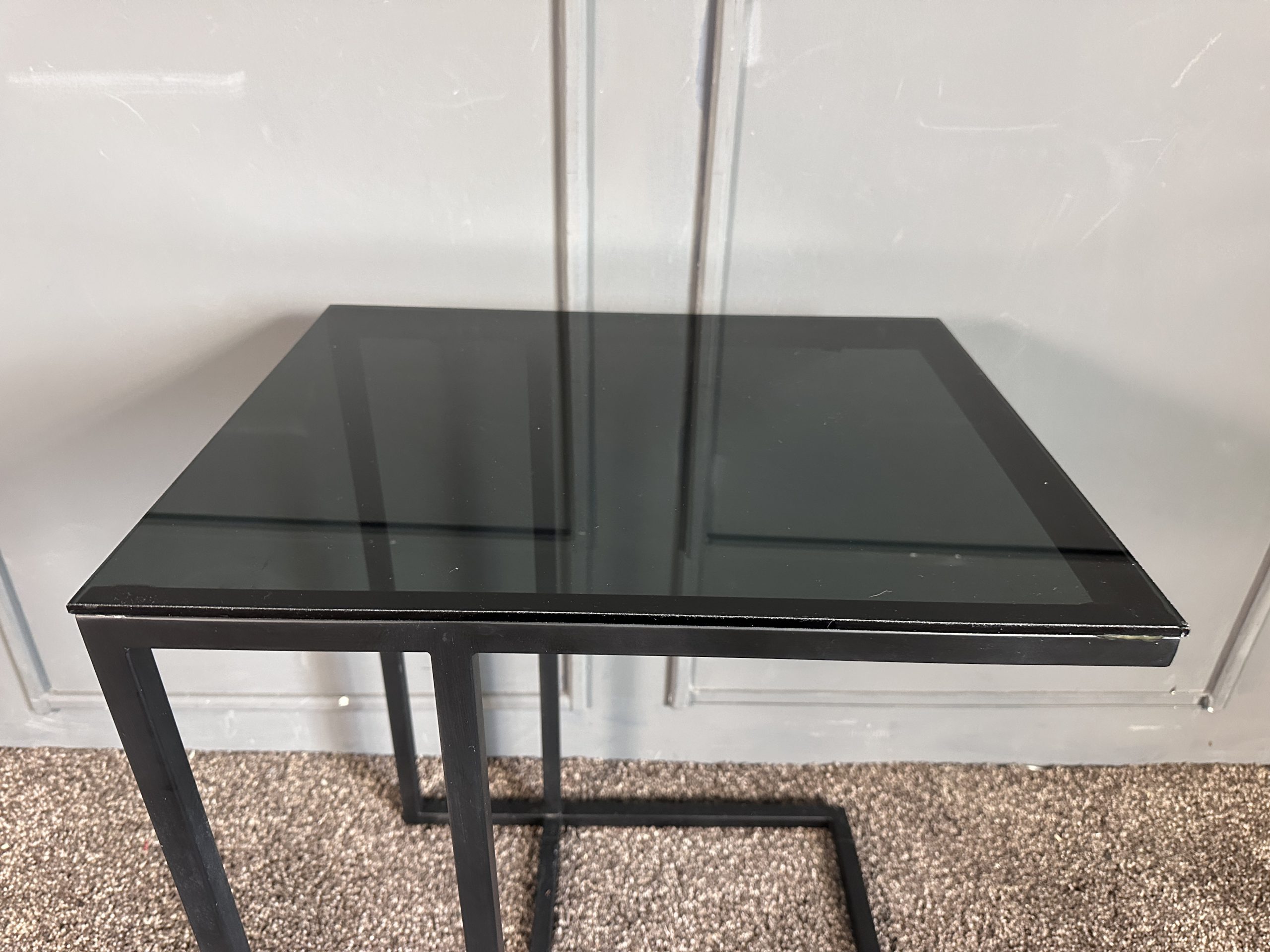 โต๊ะข้างท็อปกระจกสี่เหลี่ยม โครงขาเหล็กสีดำ