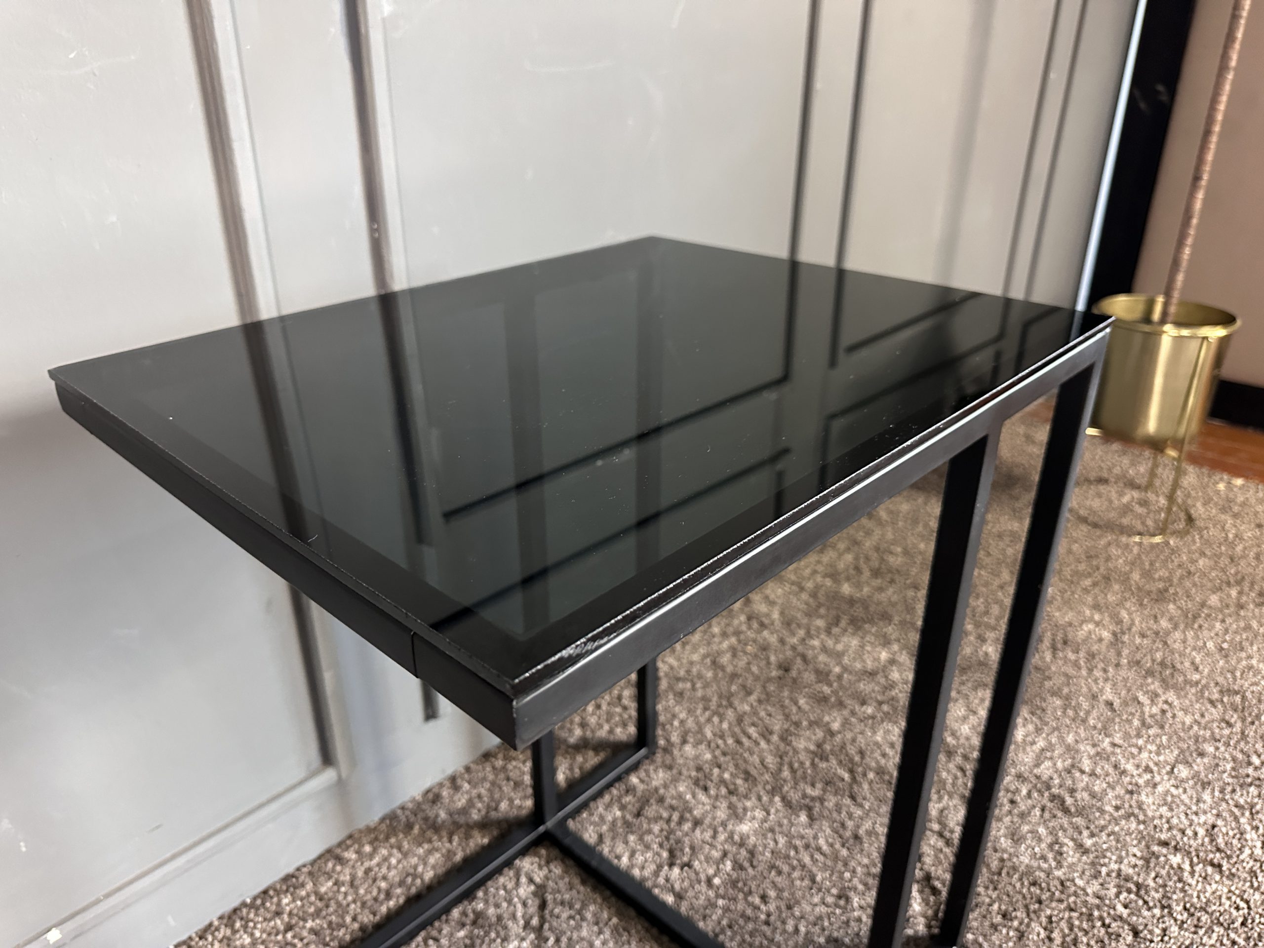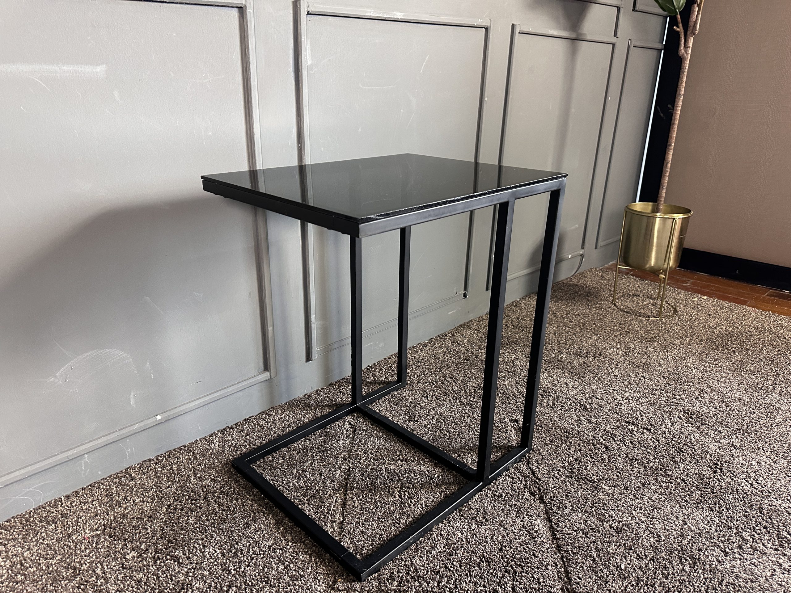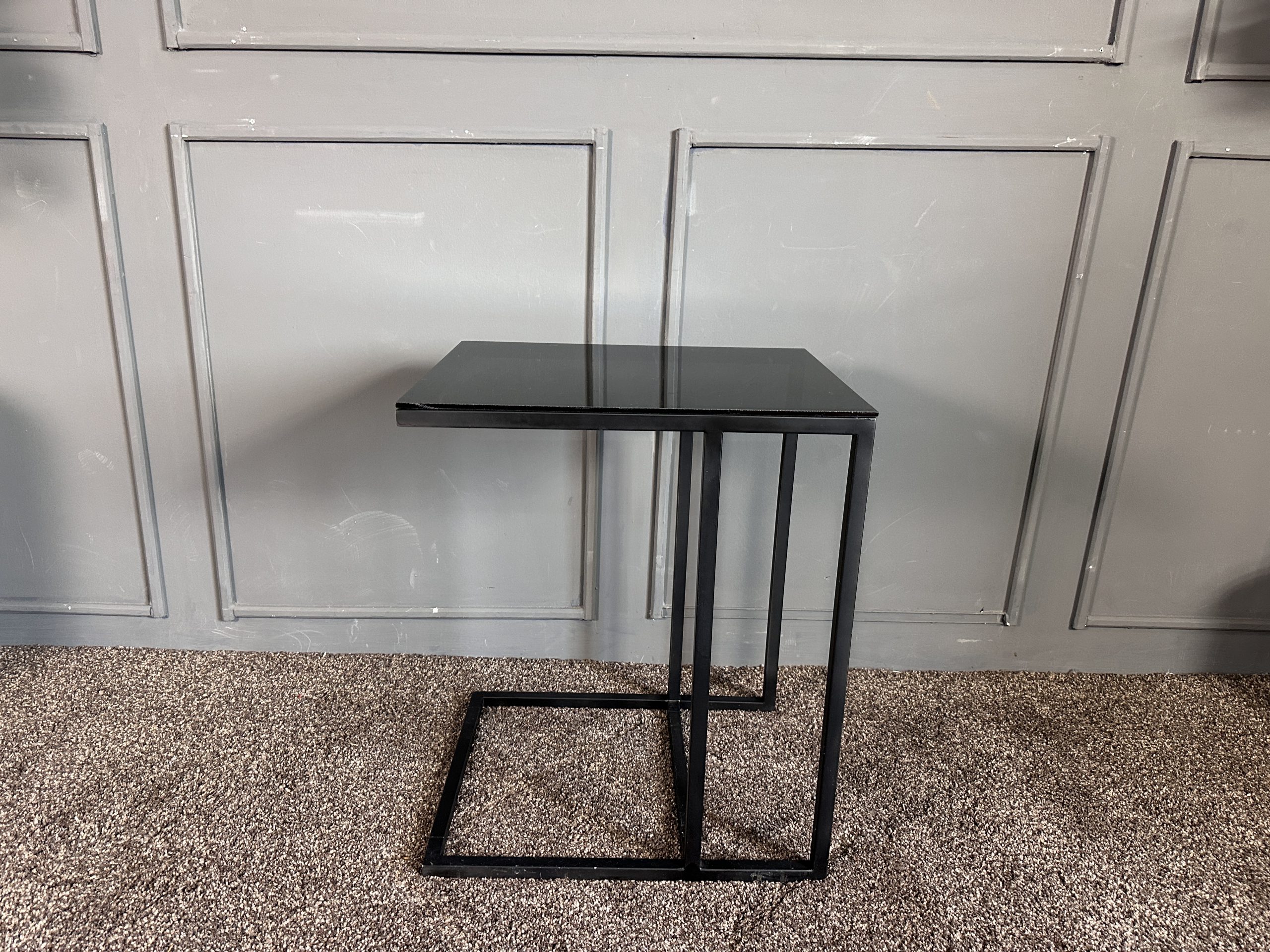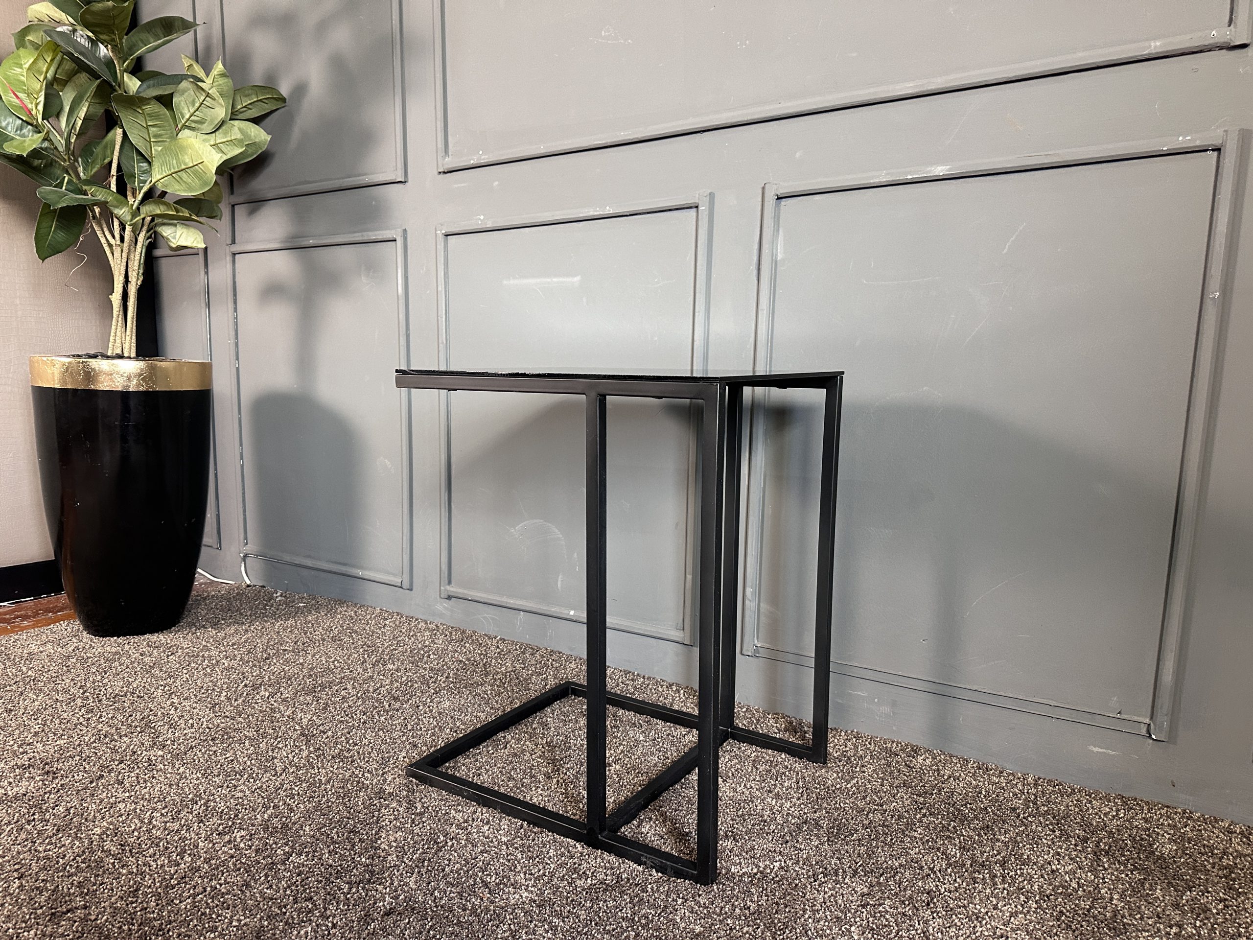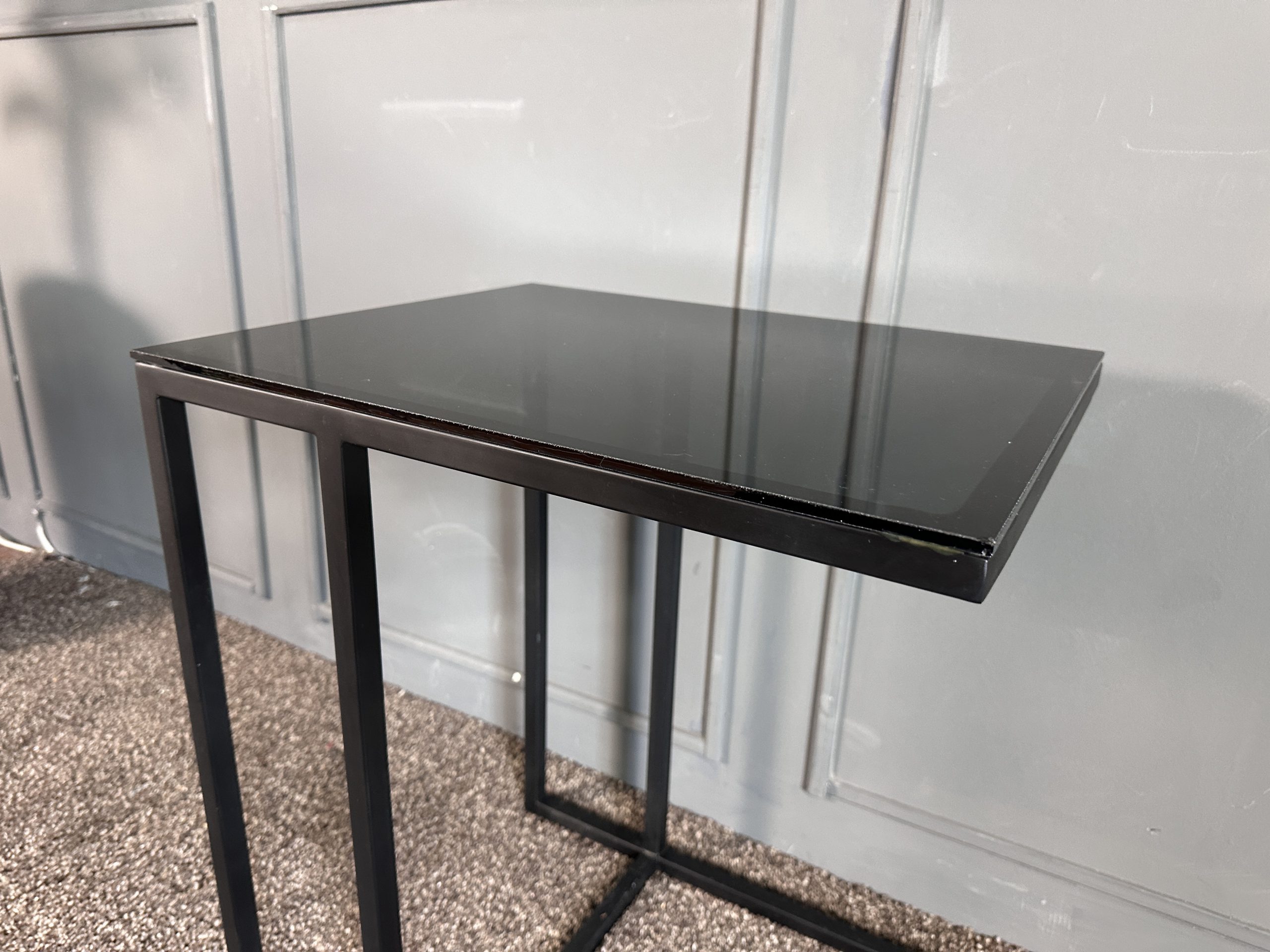 โต๊ะข้างท็อปกระจกสี่เหลี่ยม โครงขาเหล็กสีดำ