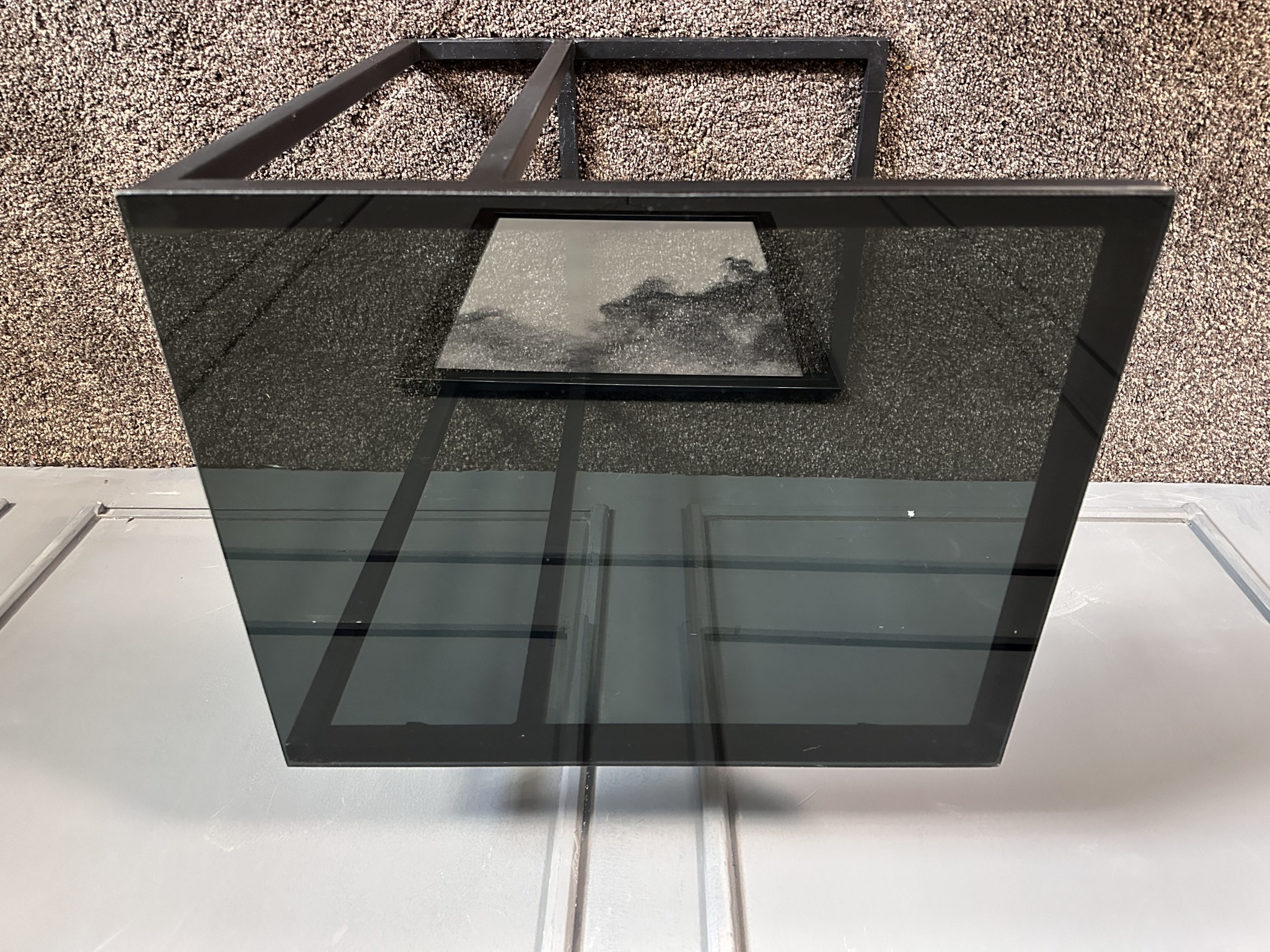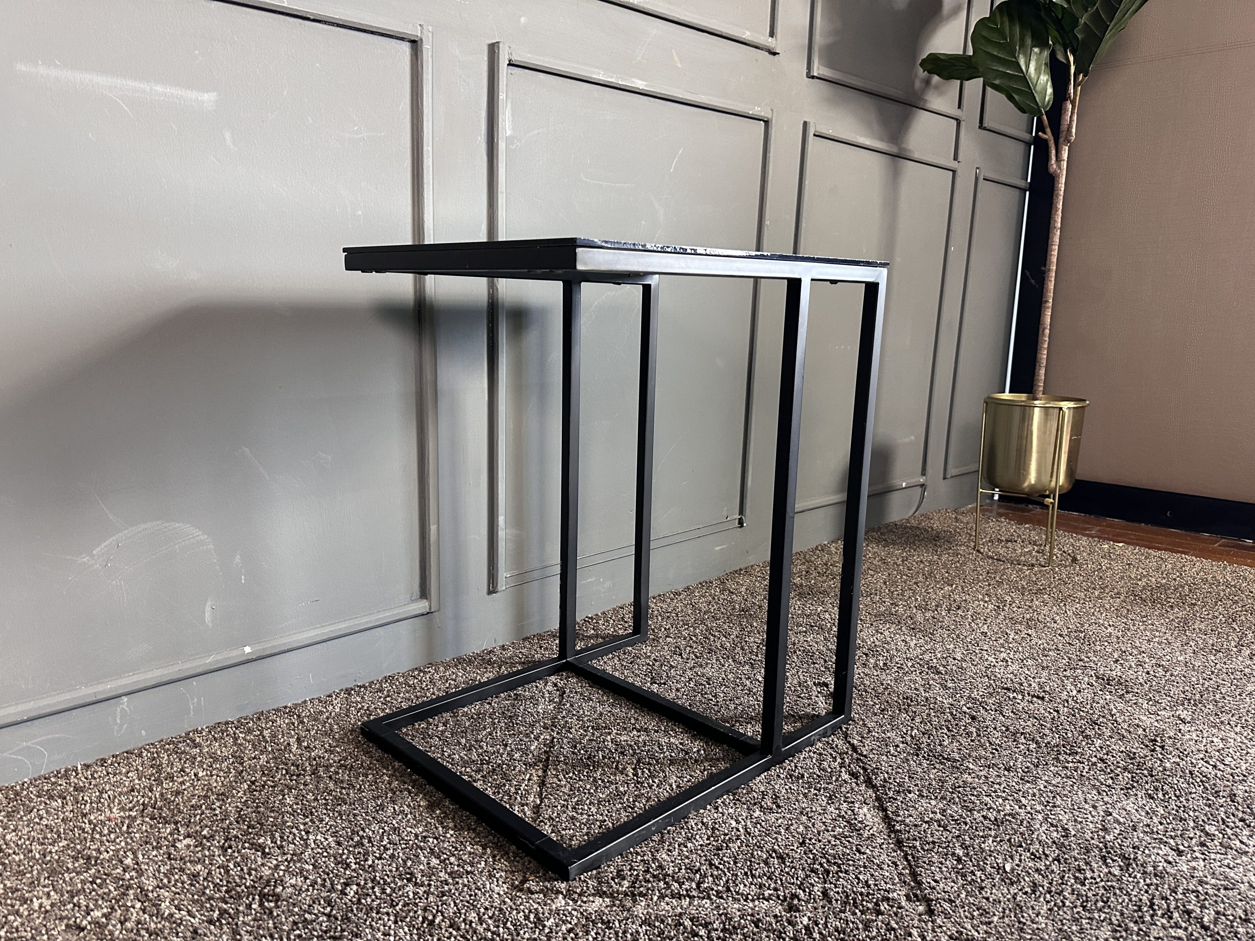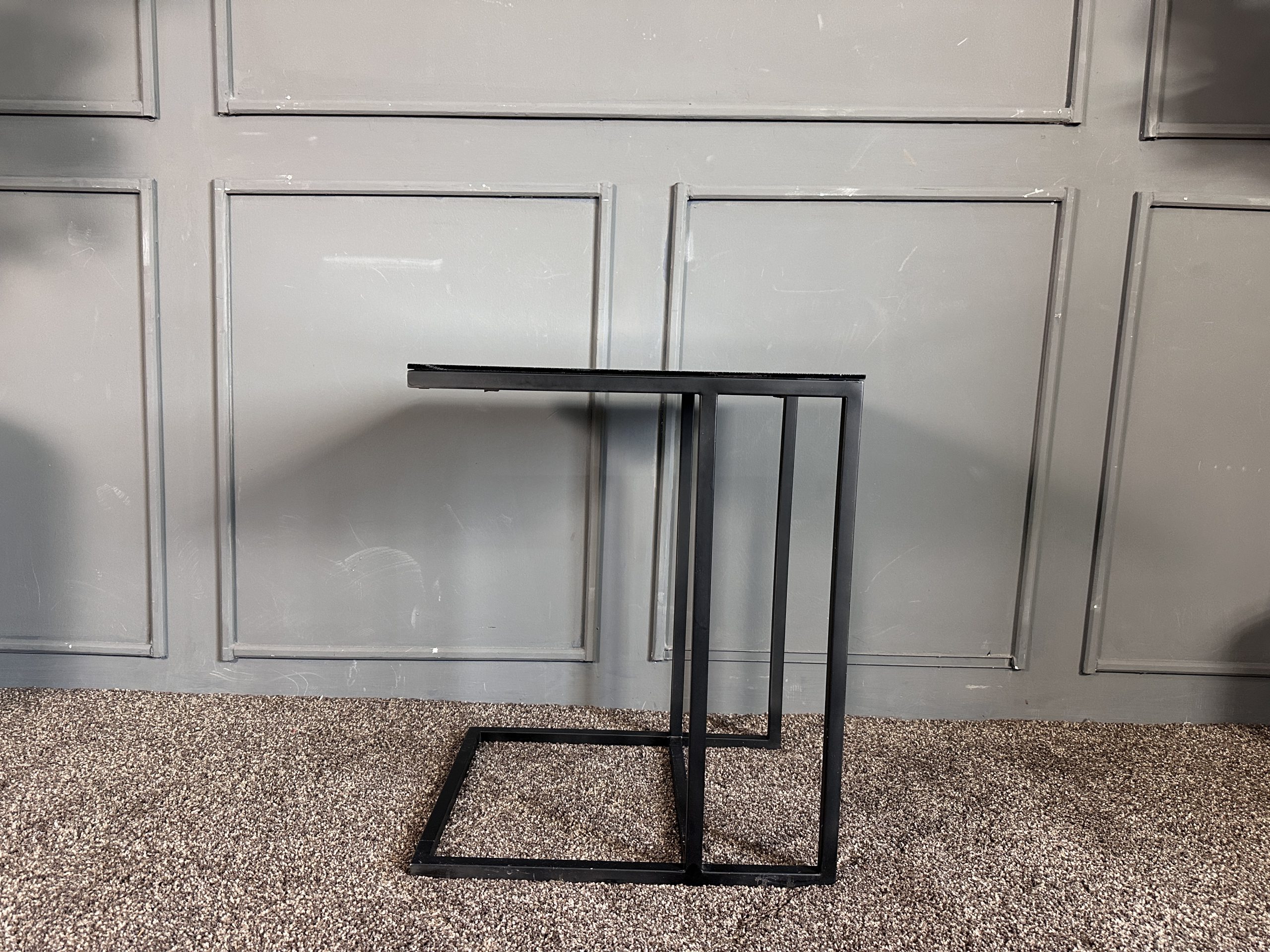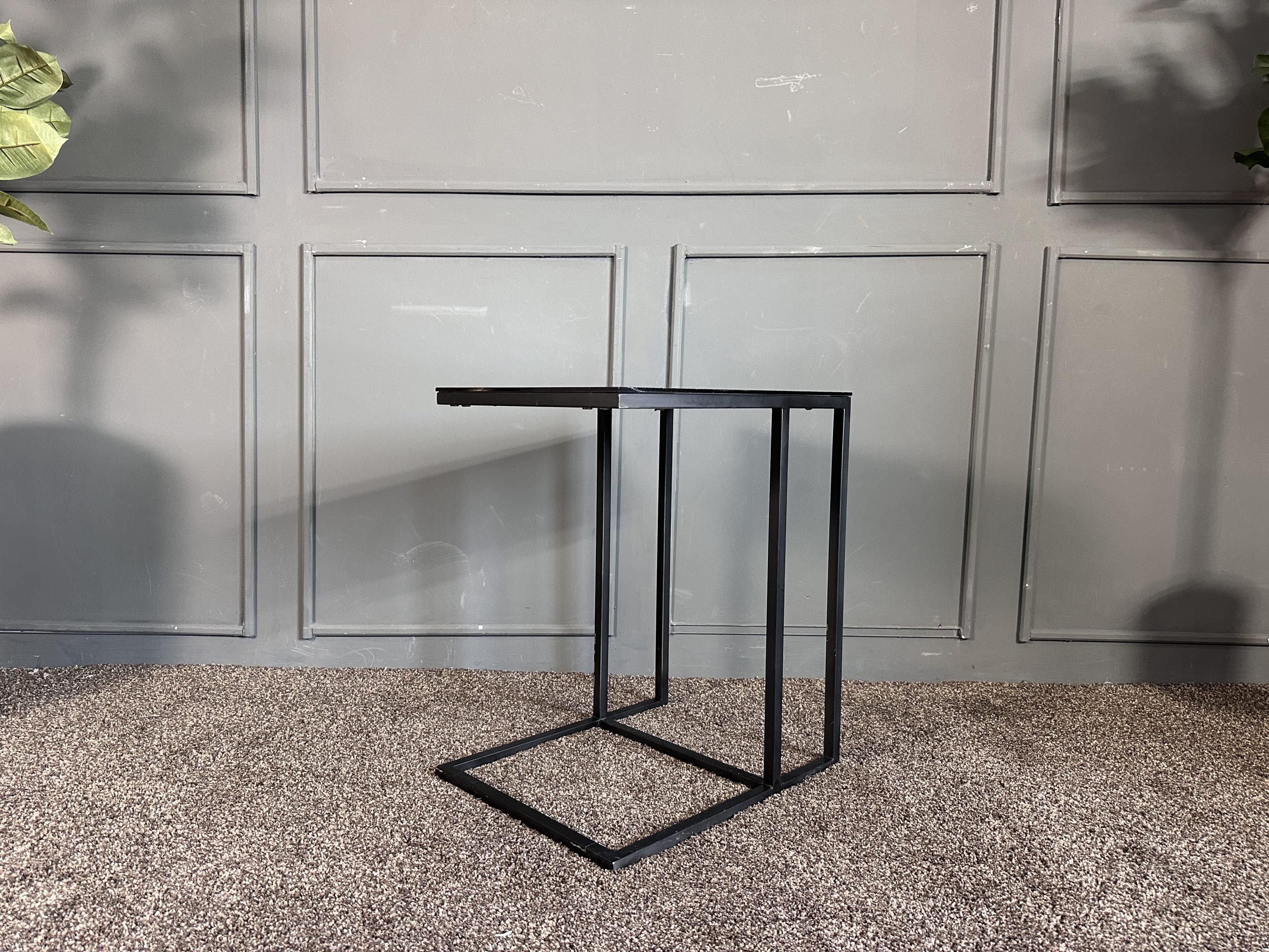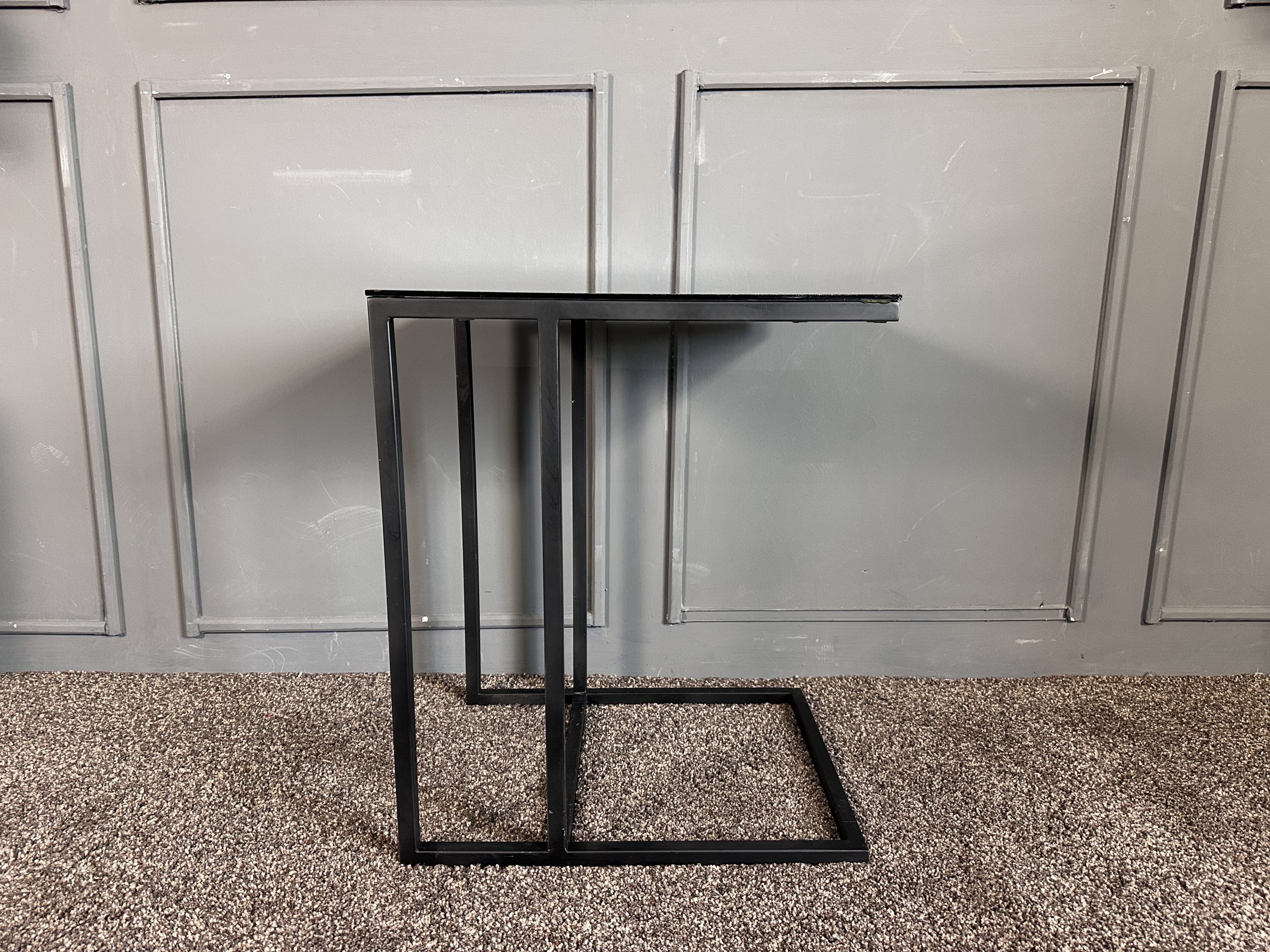โต๊ะข้างท็อปกระจกสี่เหลี่ยม โครงขาเหล็กสีดำ