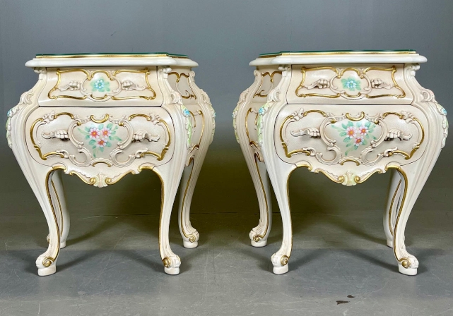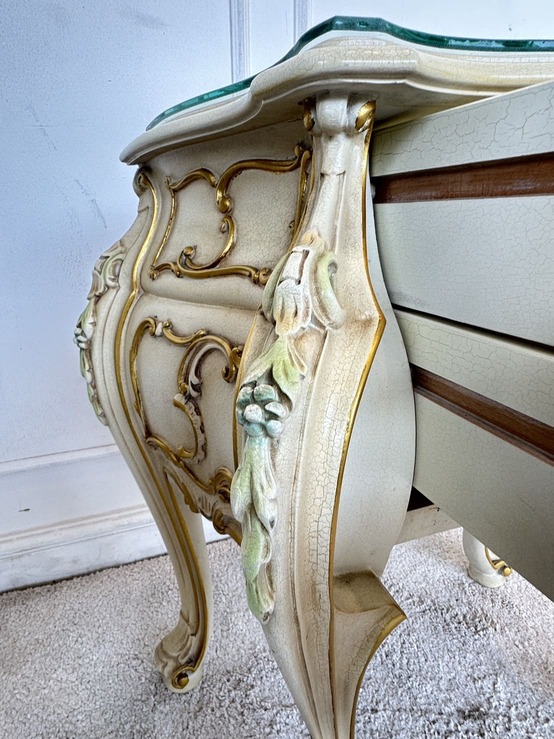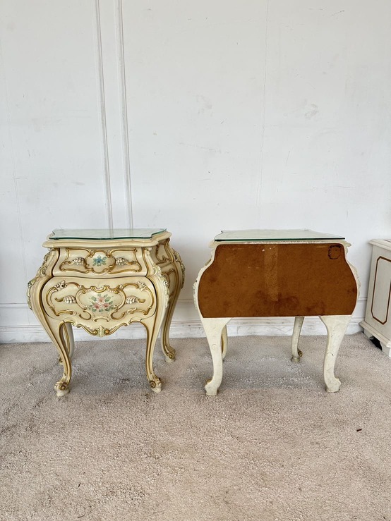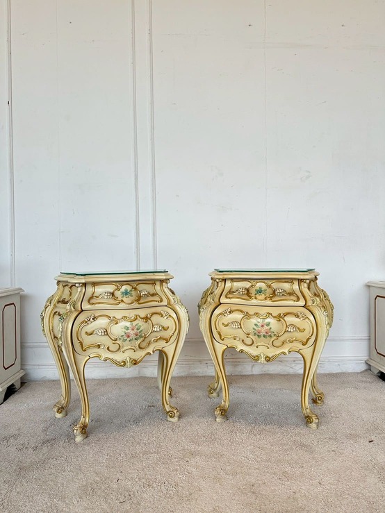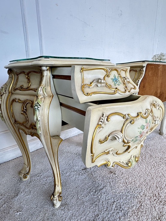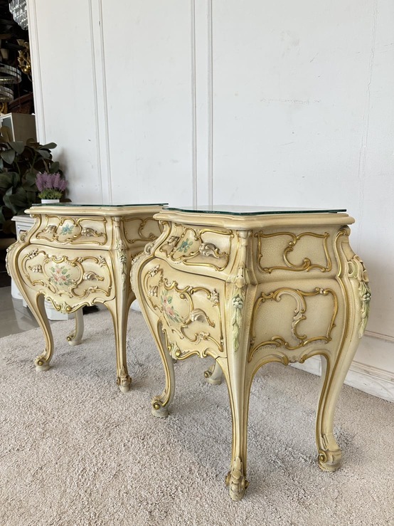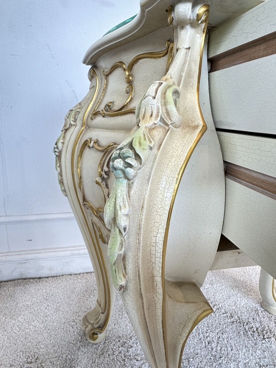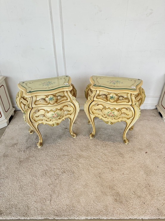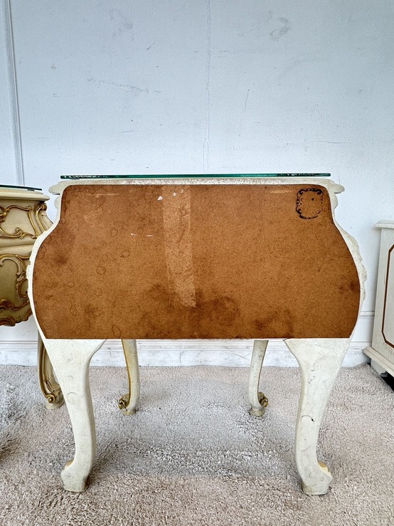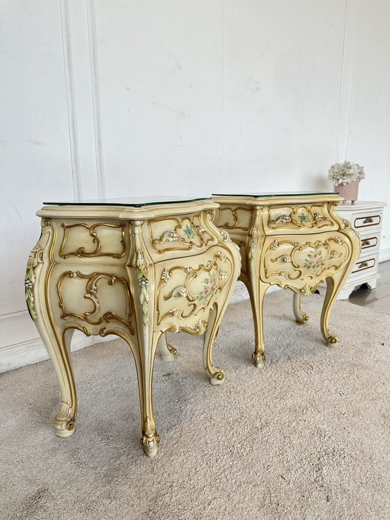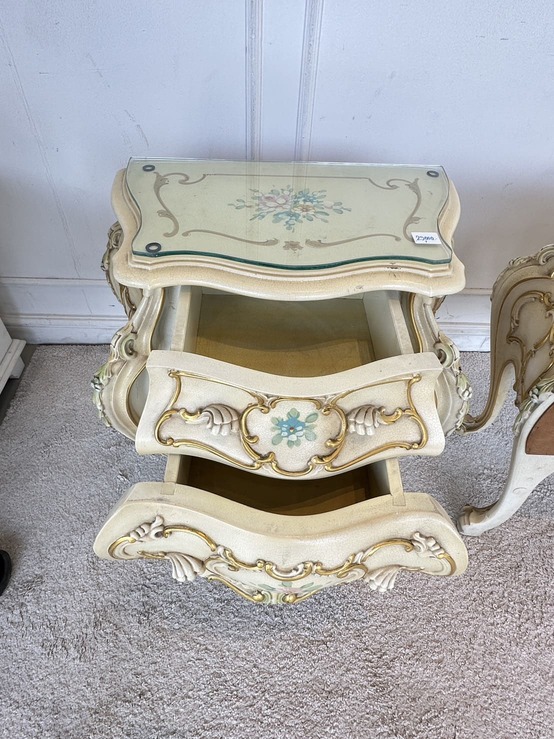 โต๊ะข้างเตียง แบรนด์ SILIK สไตล์หลุยส์ 2 ลิ้นชัก ท็อปกระจก โครงขาไม้จริง แผ่นหลังไม้ MDF