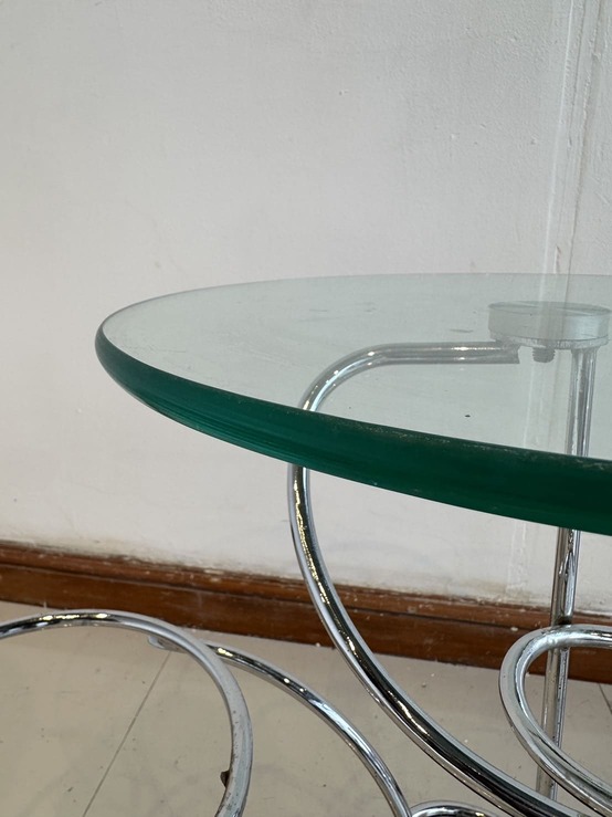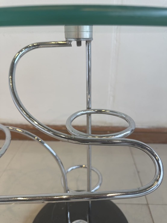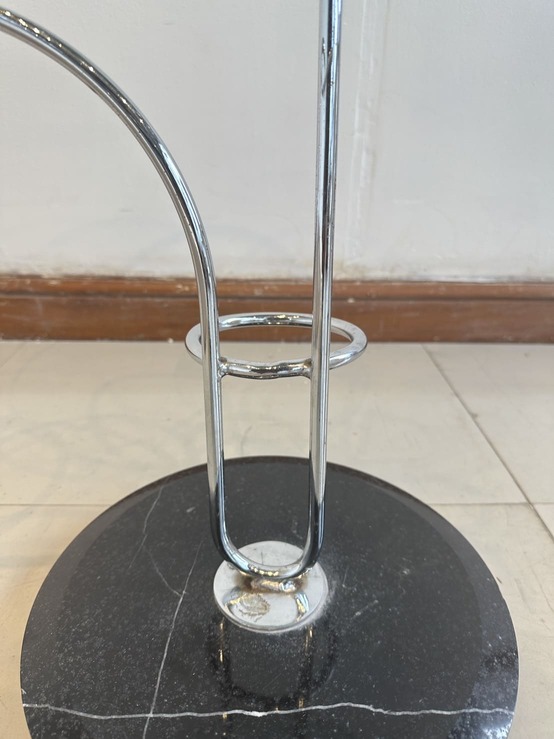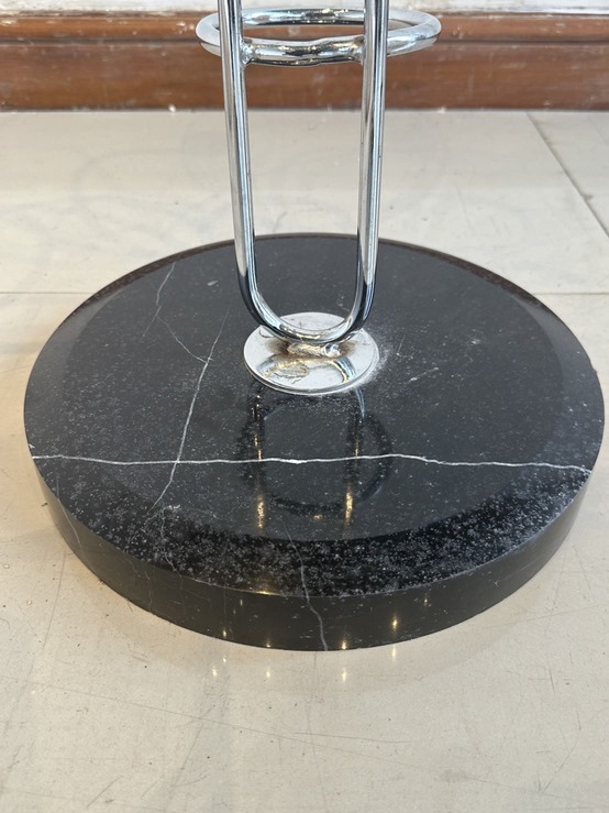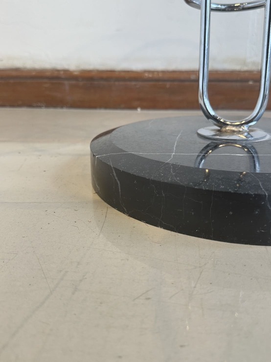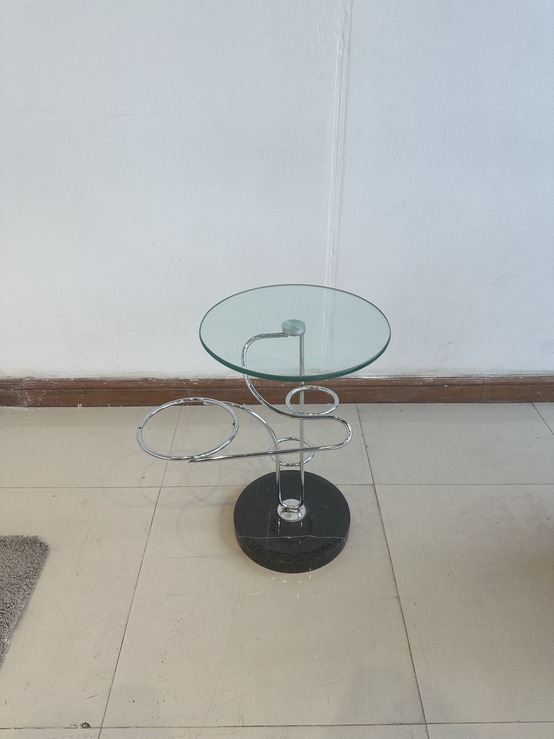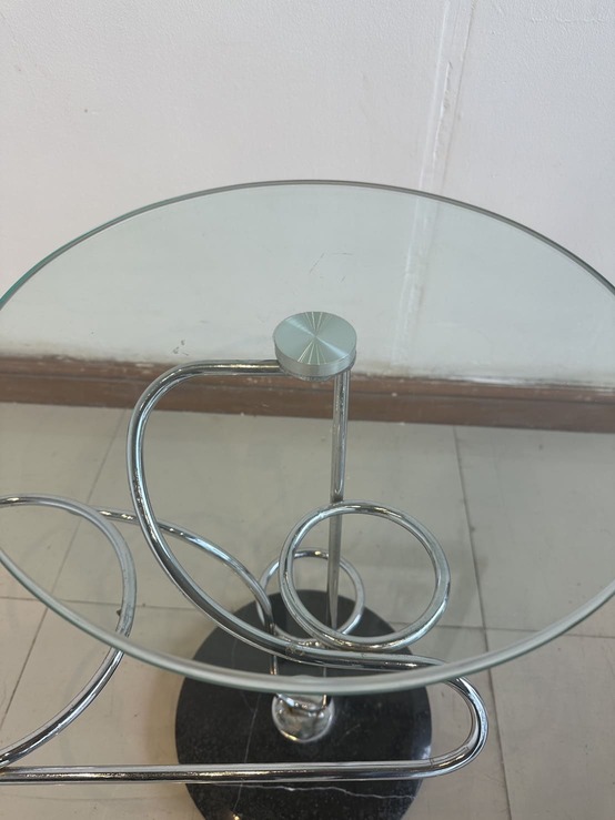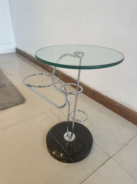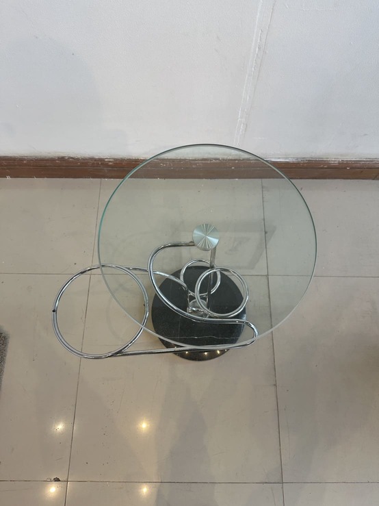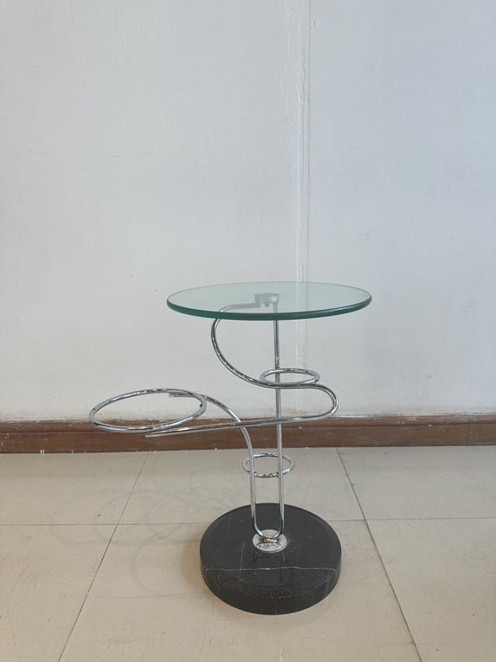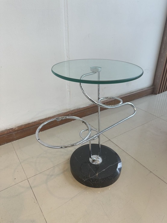 โต๊ะข้าง ท็อปกระจกทรงกลม ฐานหินอ่อนเทียมสีดำ