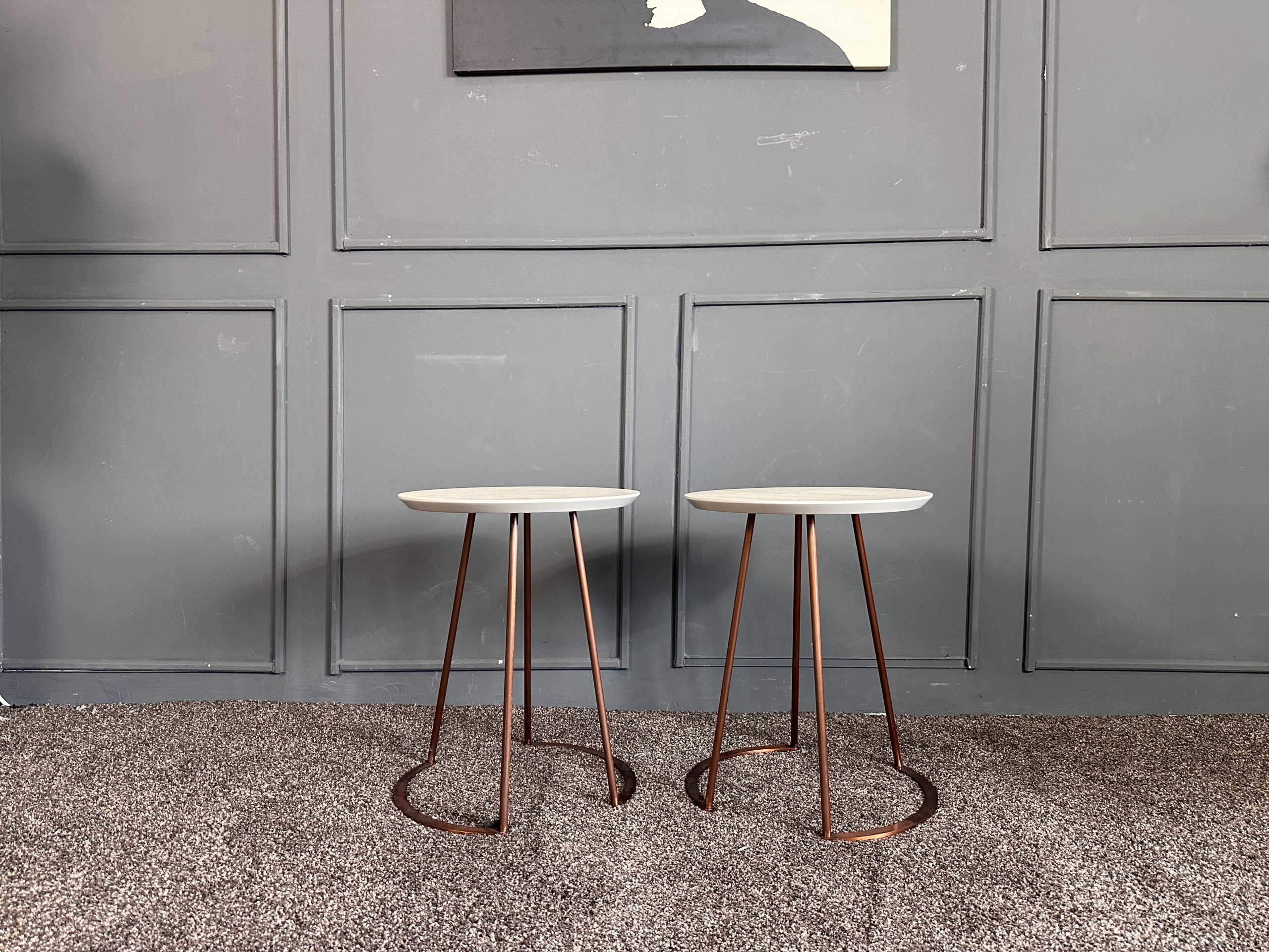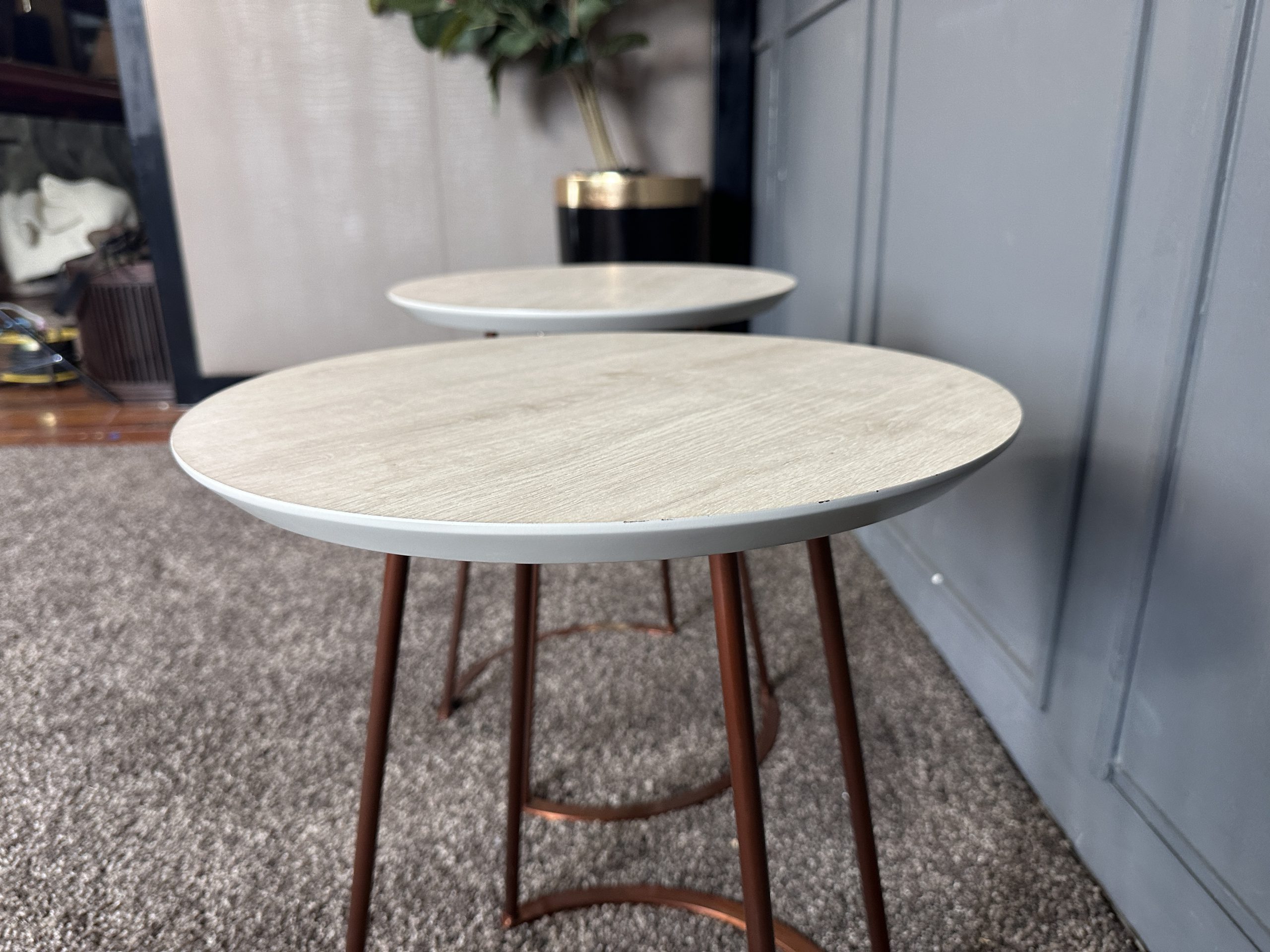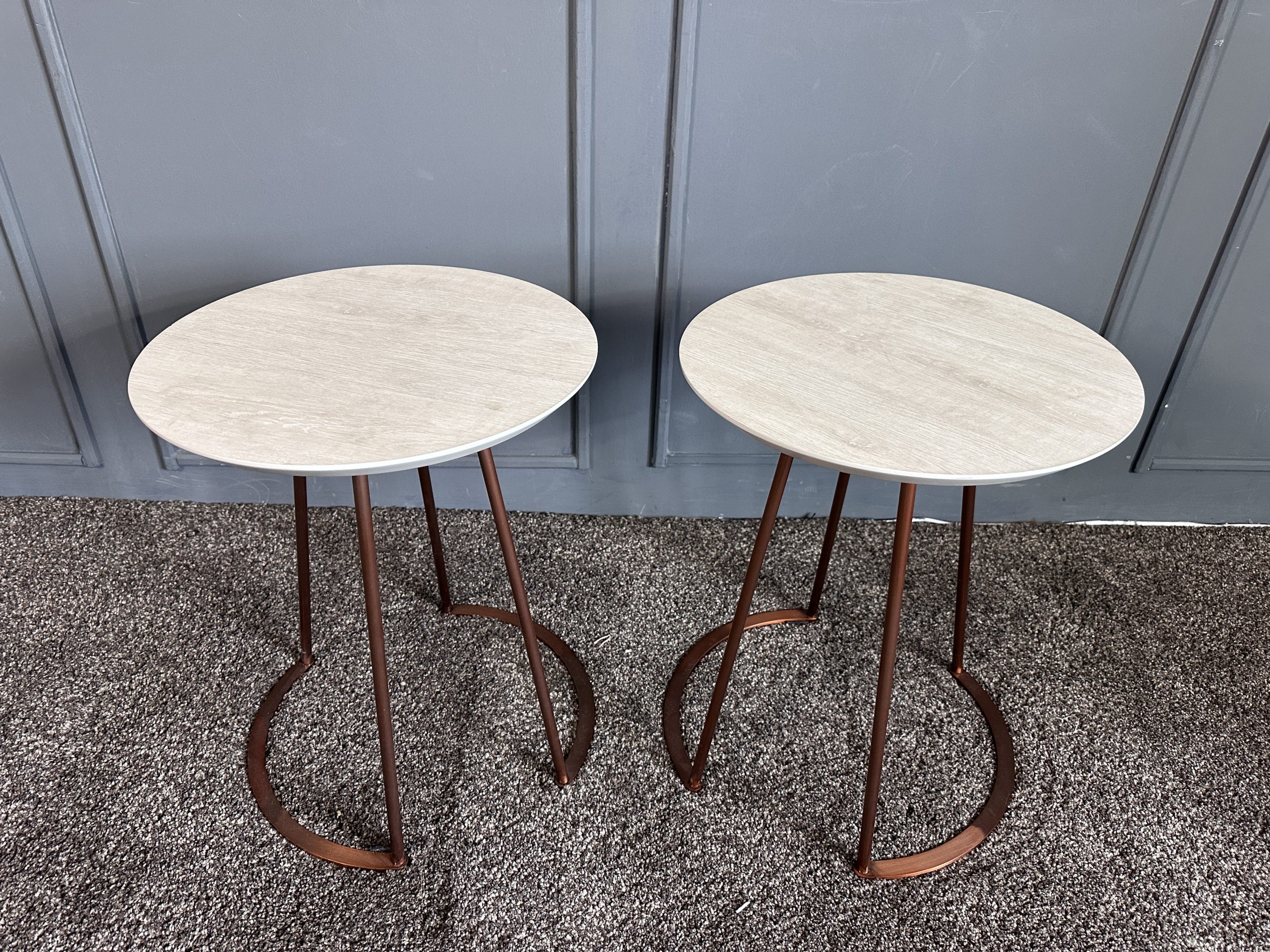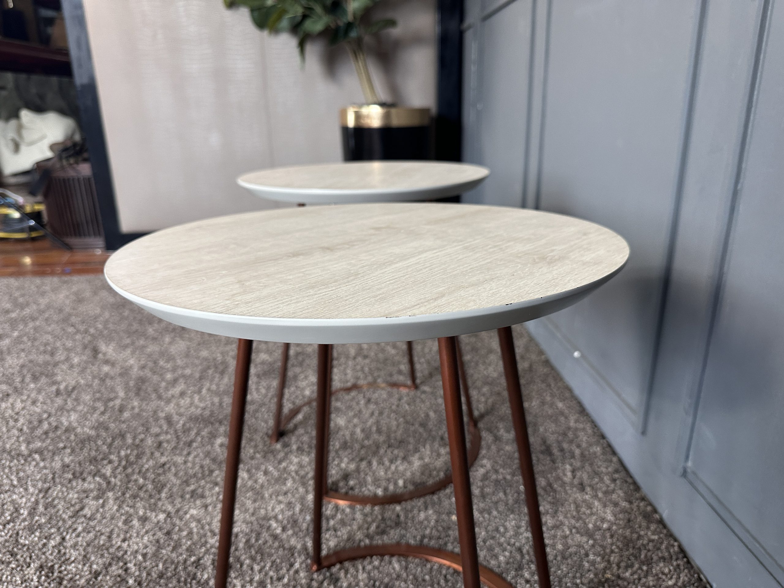 โต๊ะข้าง ท็อปไม้ MDF กลม โครงขาเหล็กสีโรสโกลด์