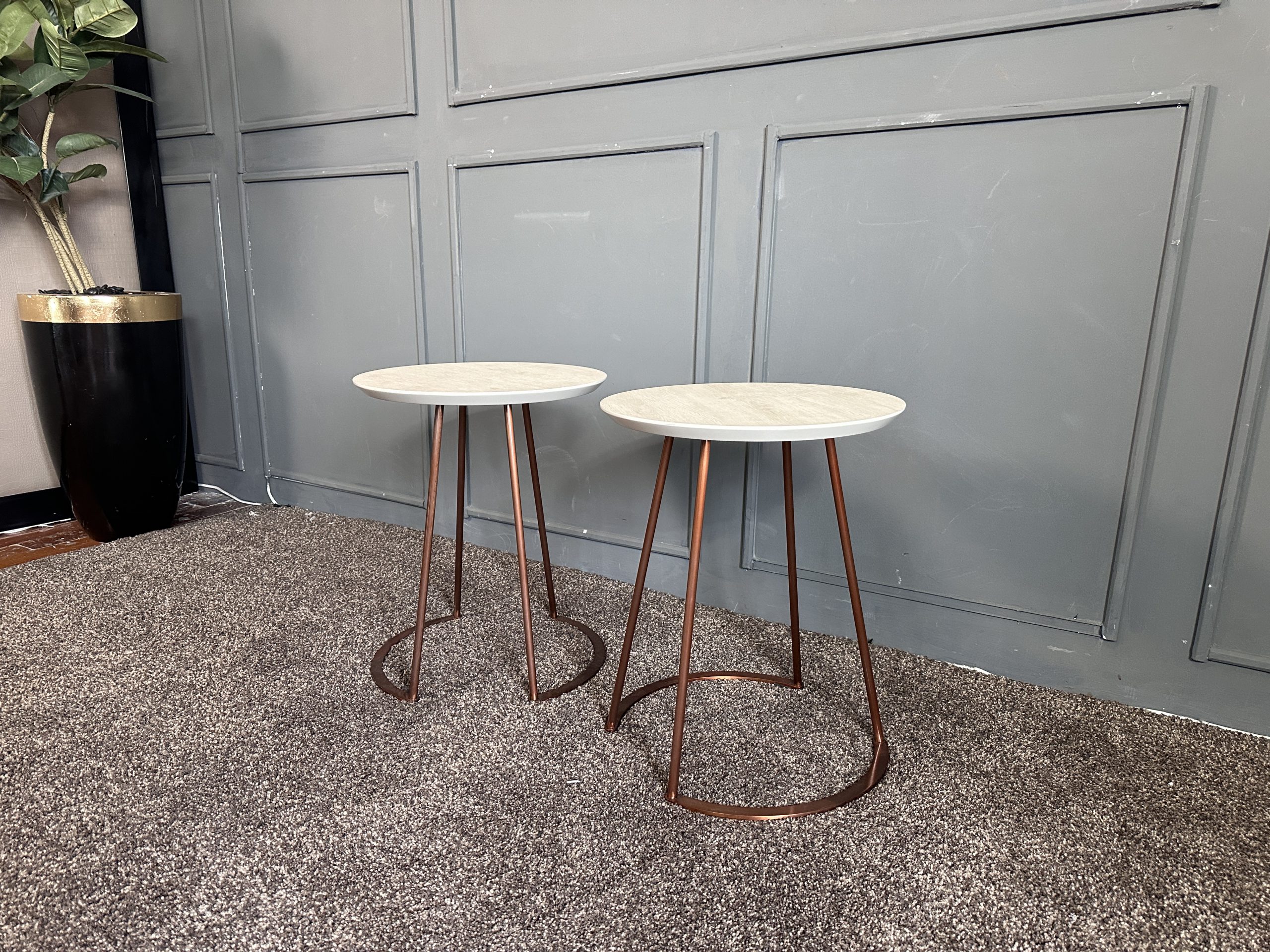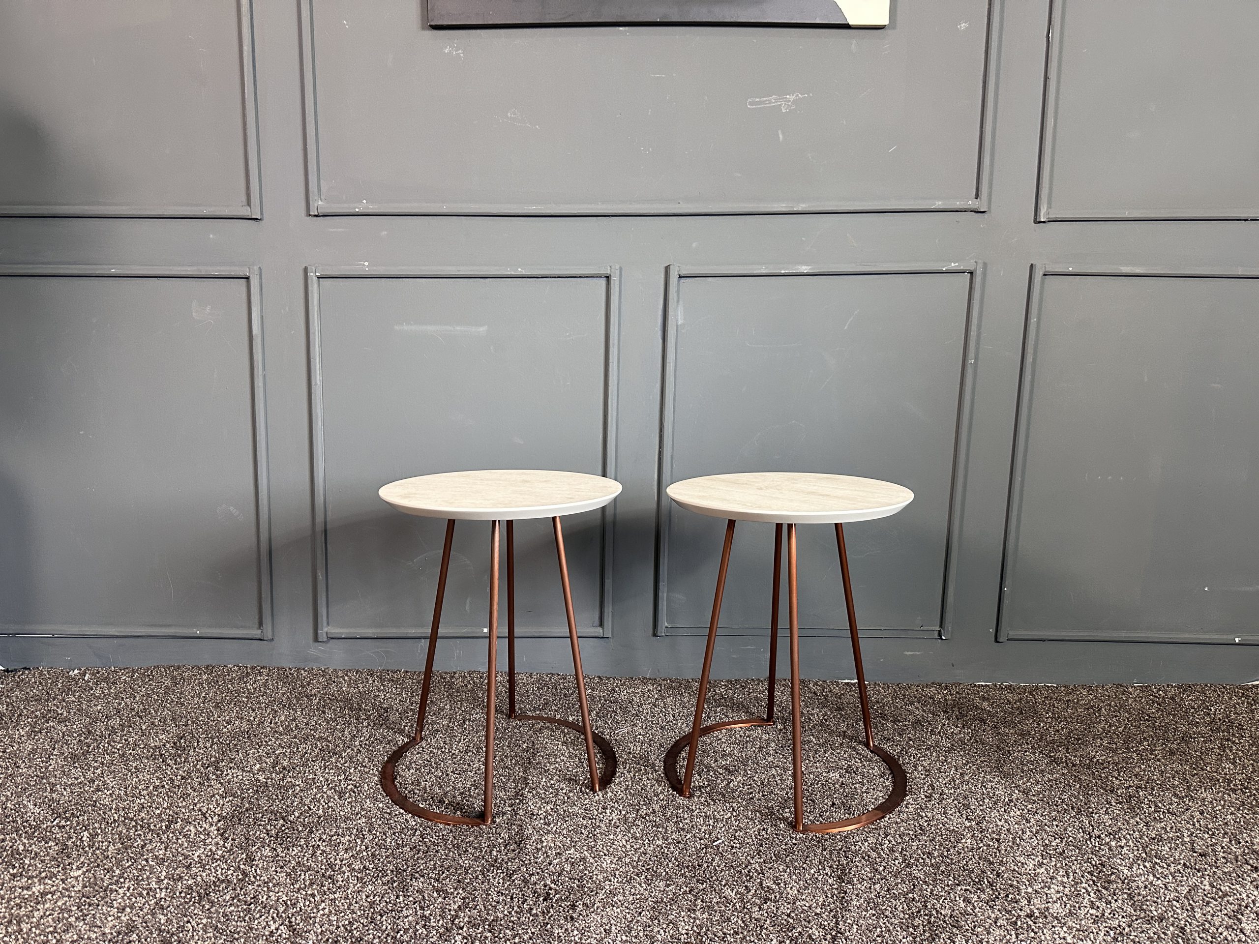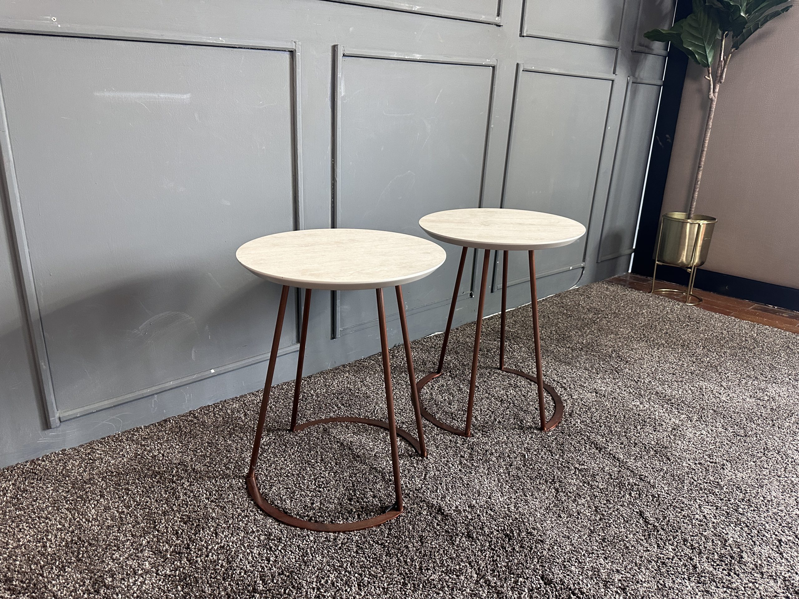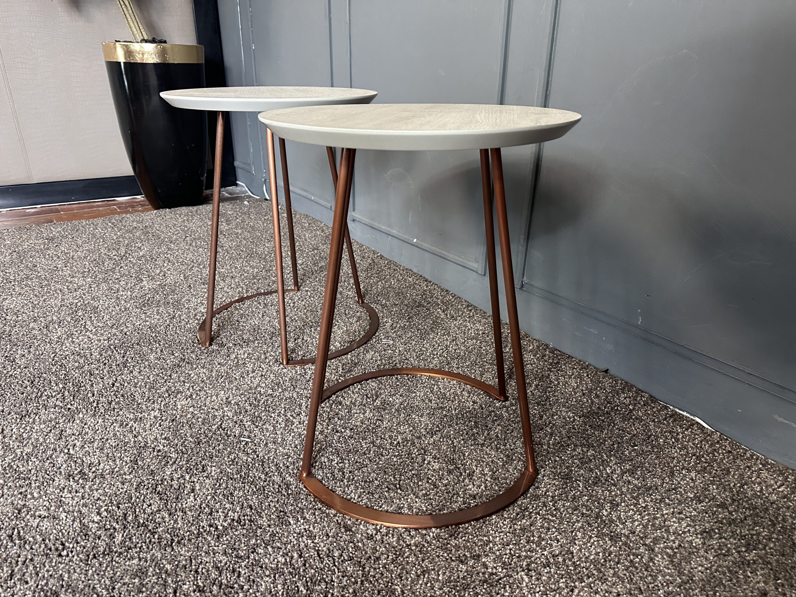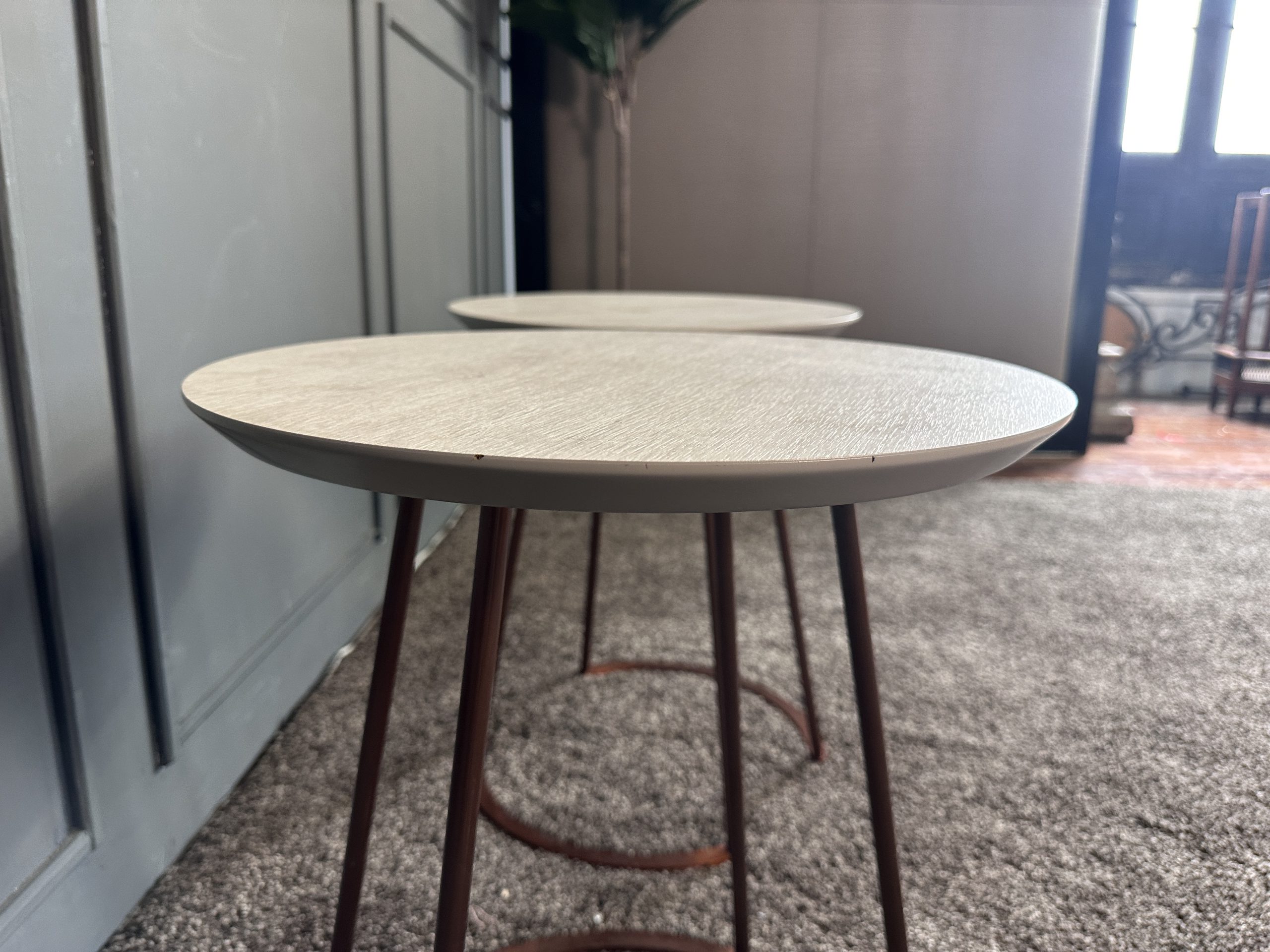 โต๊ะข้าง ท็อปไม้ MDF กลม โครงขาเหล็กสีโรสโกลด์