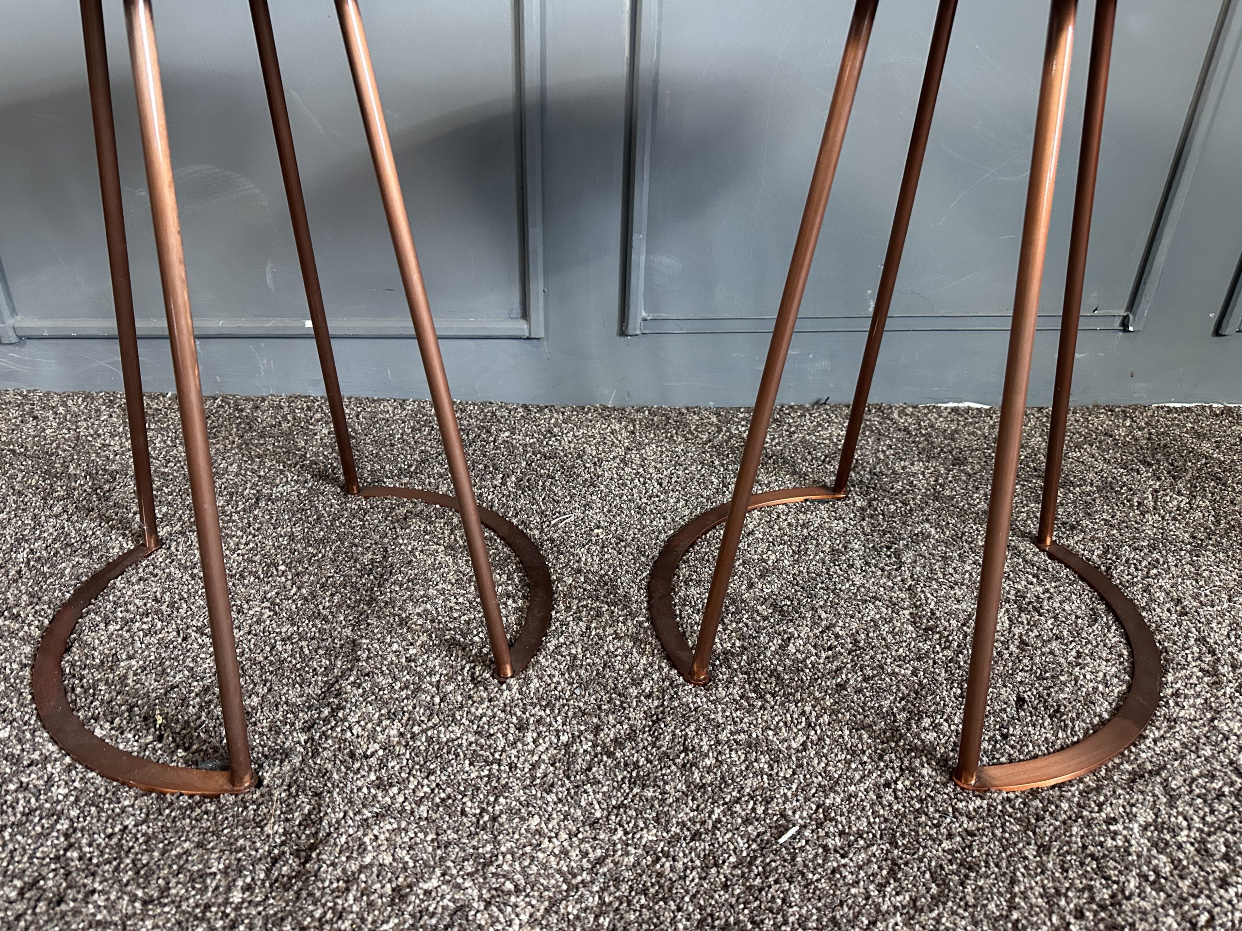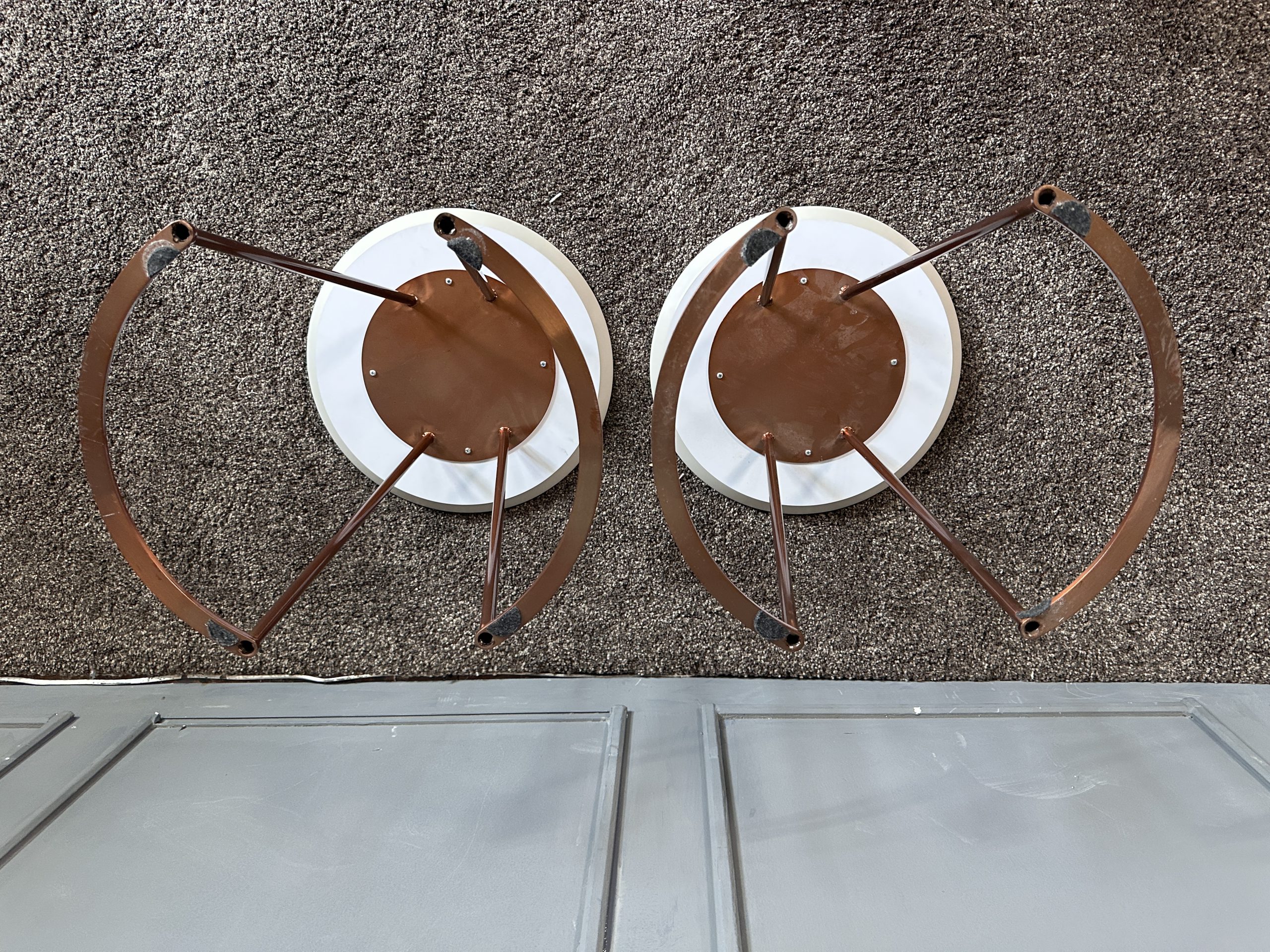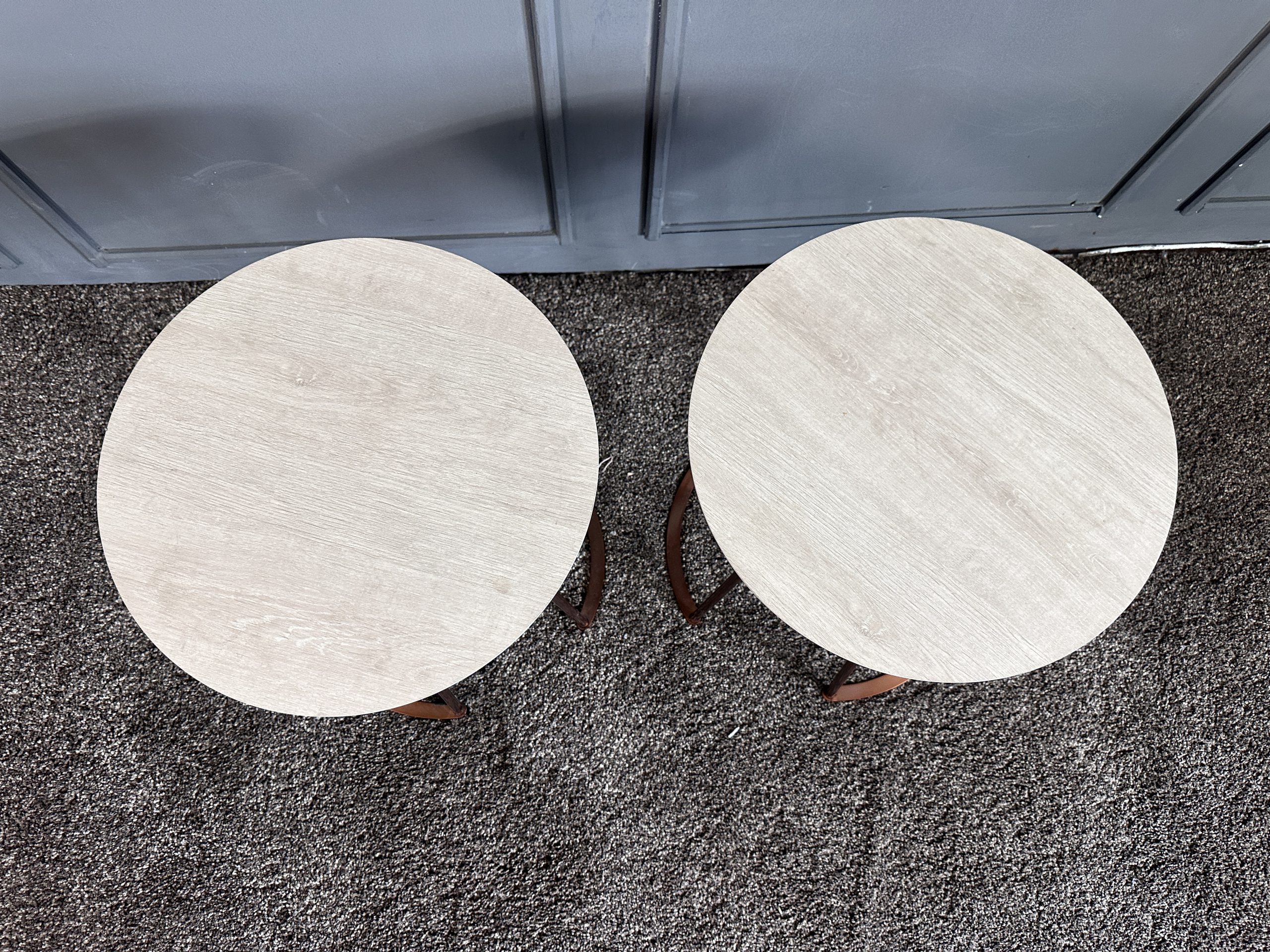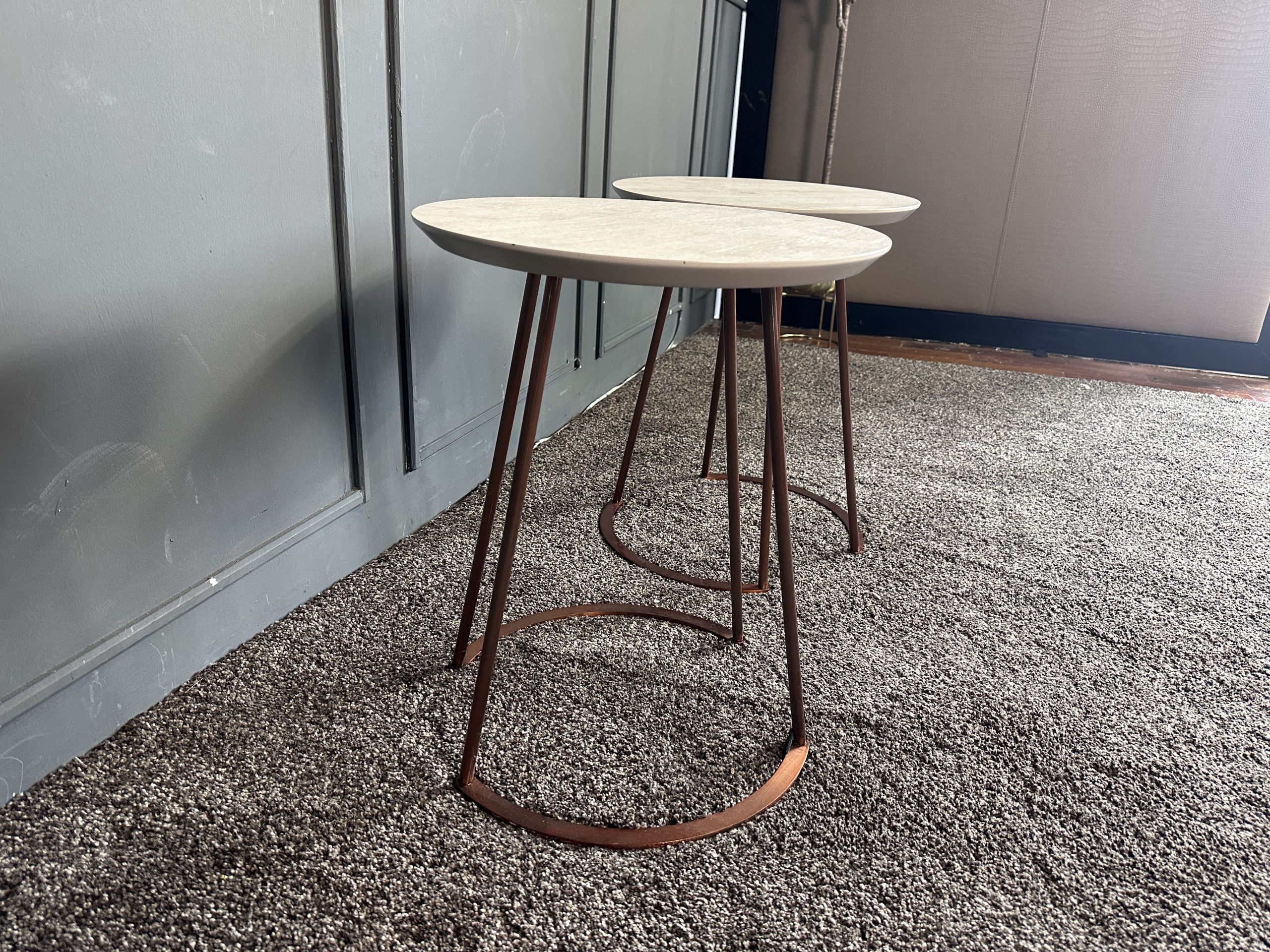โต๊ะข้าง ท็อปไม้ MDF กลม โครงขาเหล็กสีโรสโกลด์