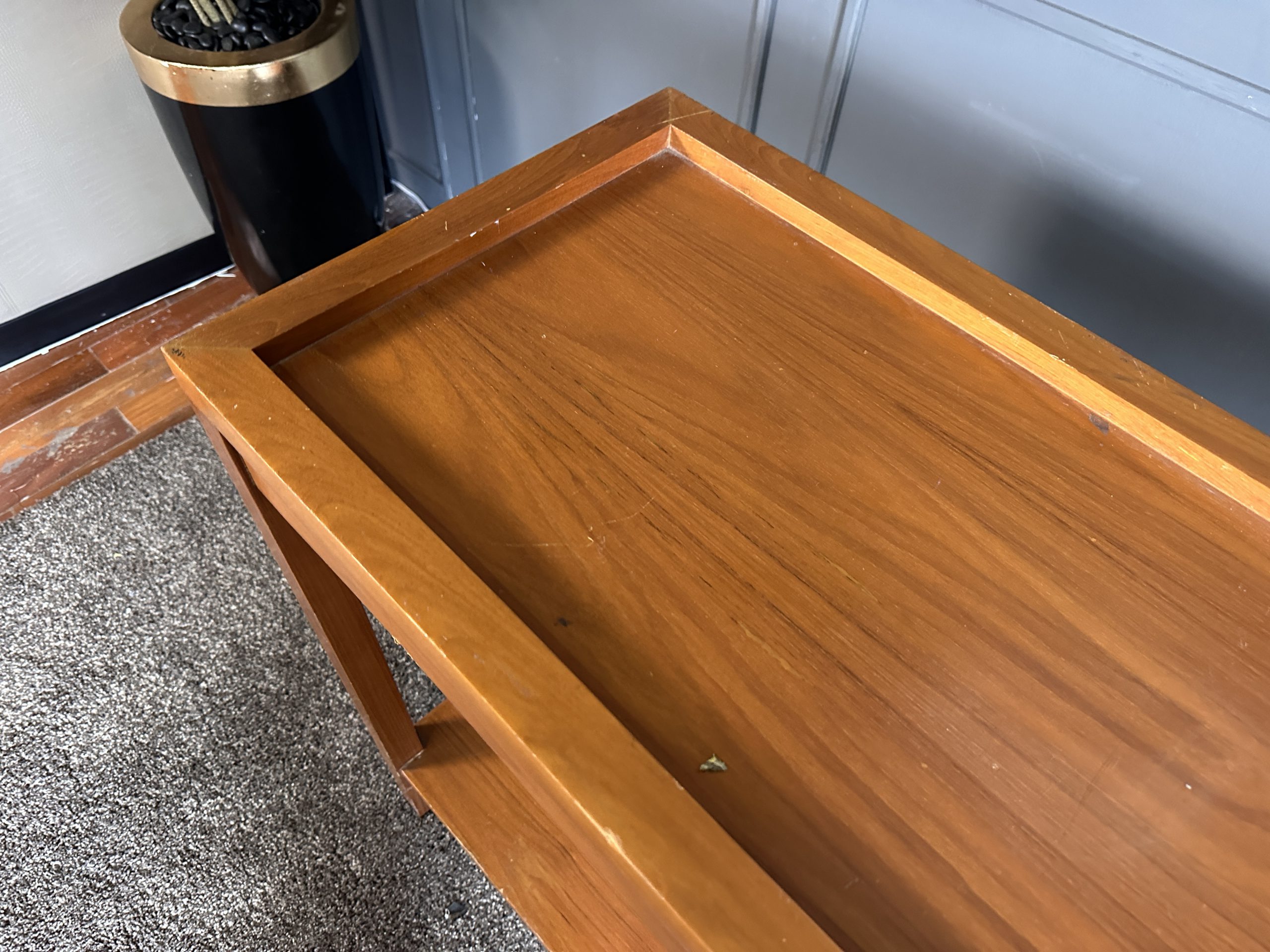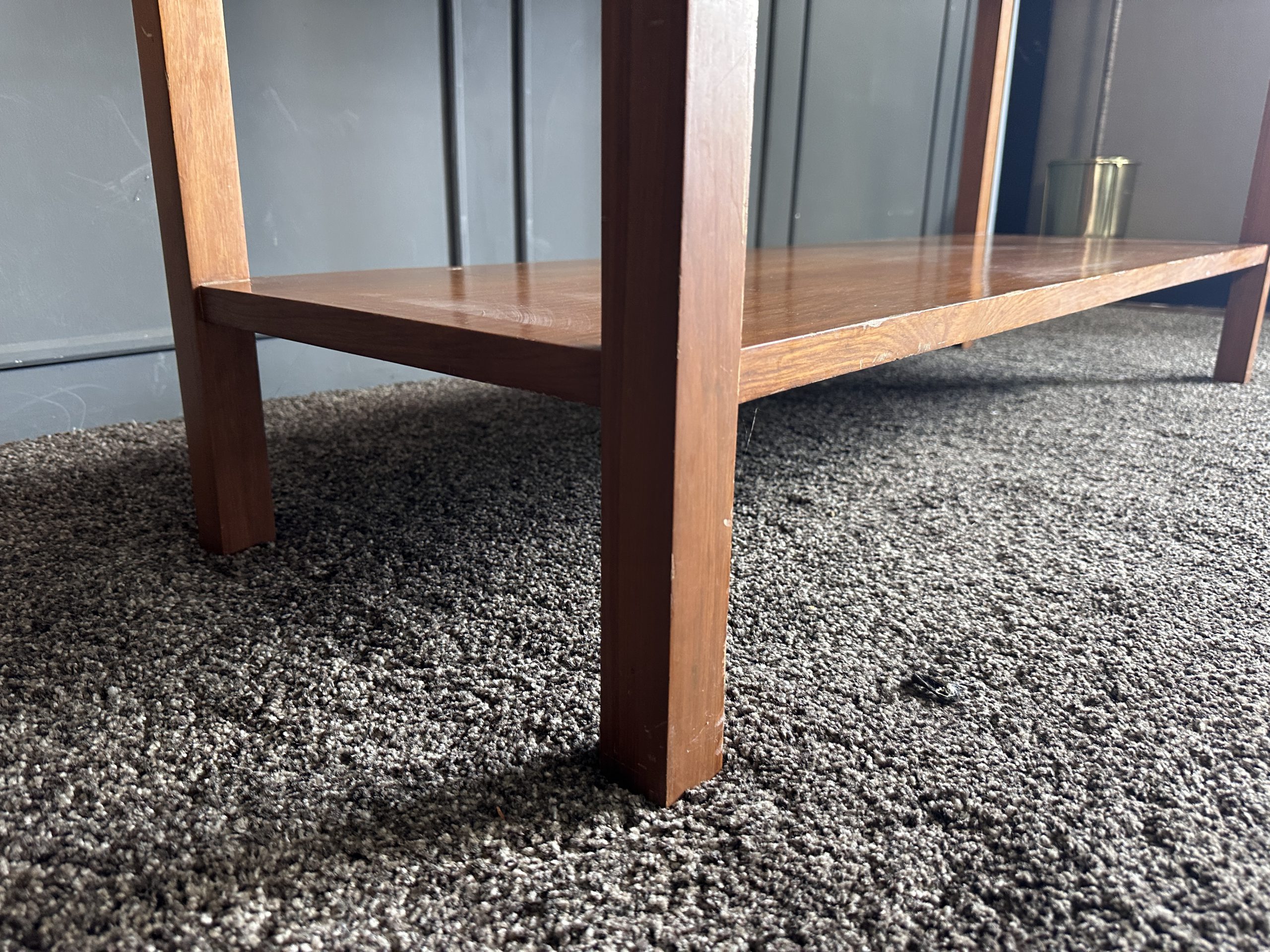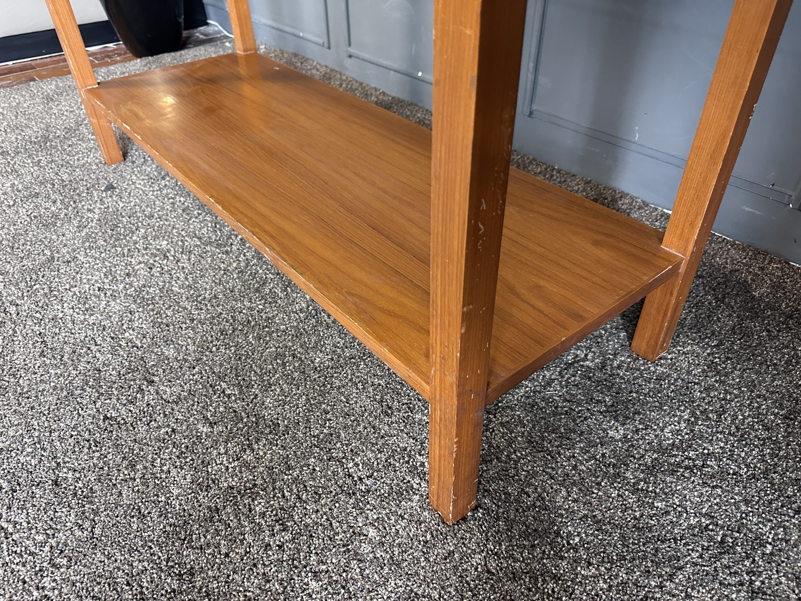 โต๊ะคอนโซล โครงขาไม้สัก 2 ชั้น ท็อปไม้ MDF แปะลายไม้