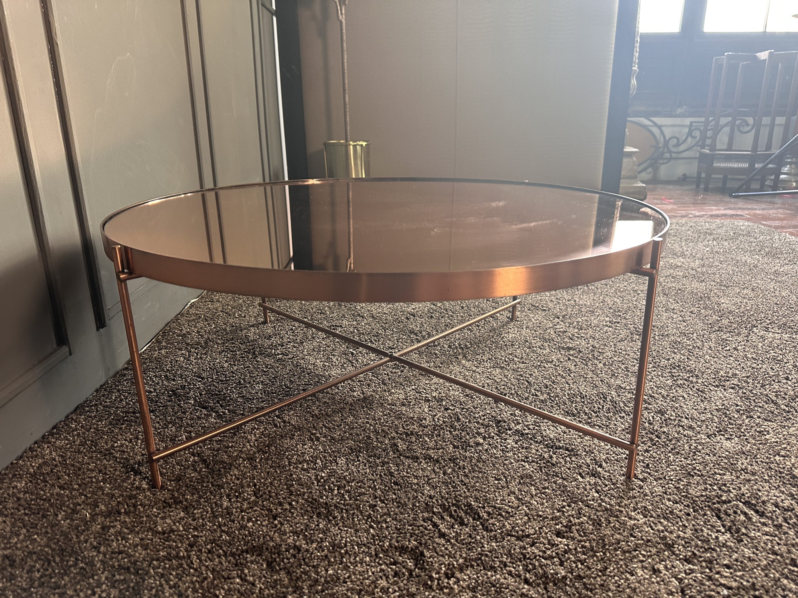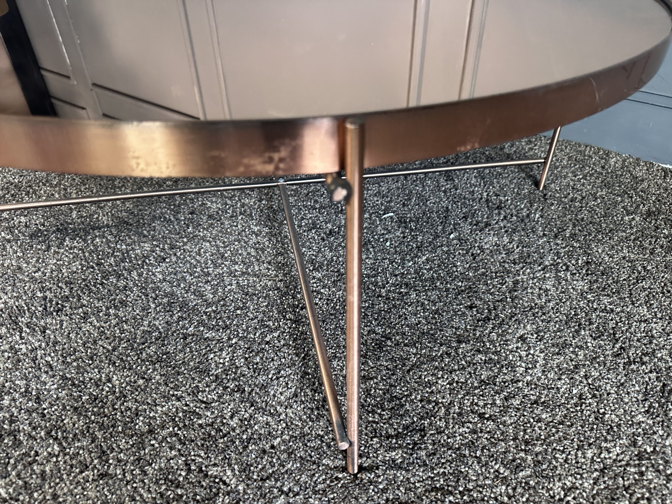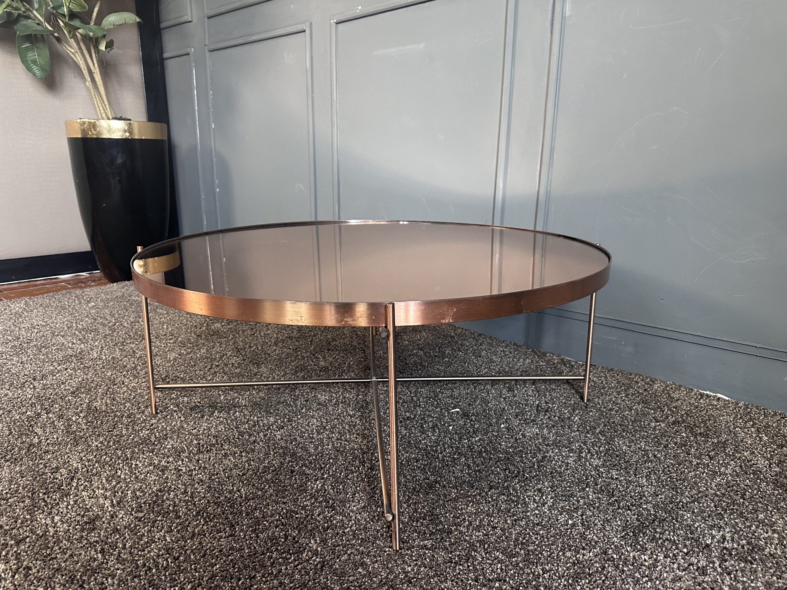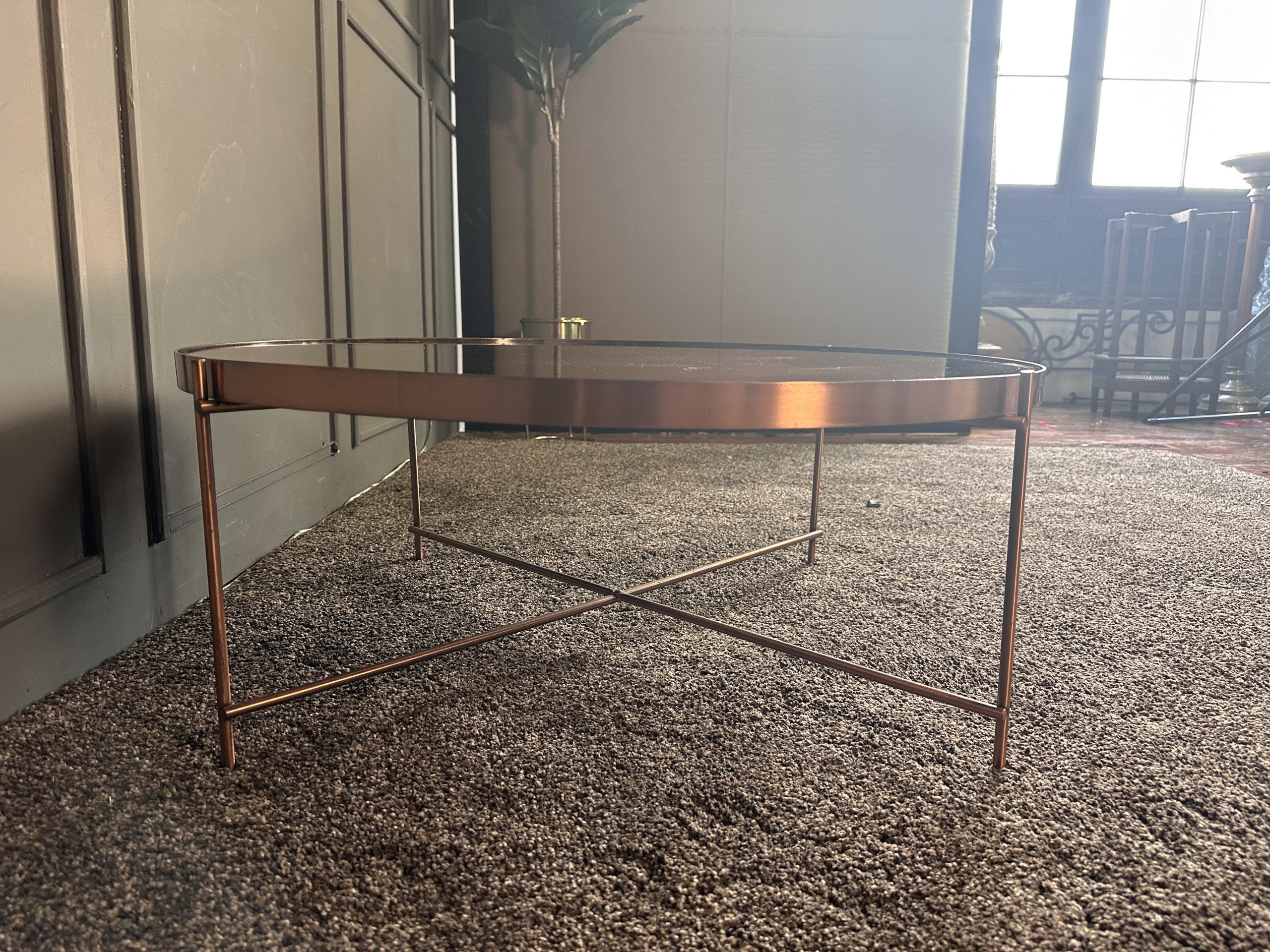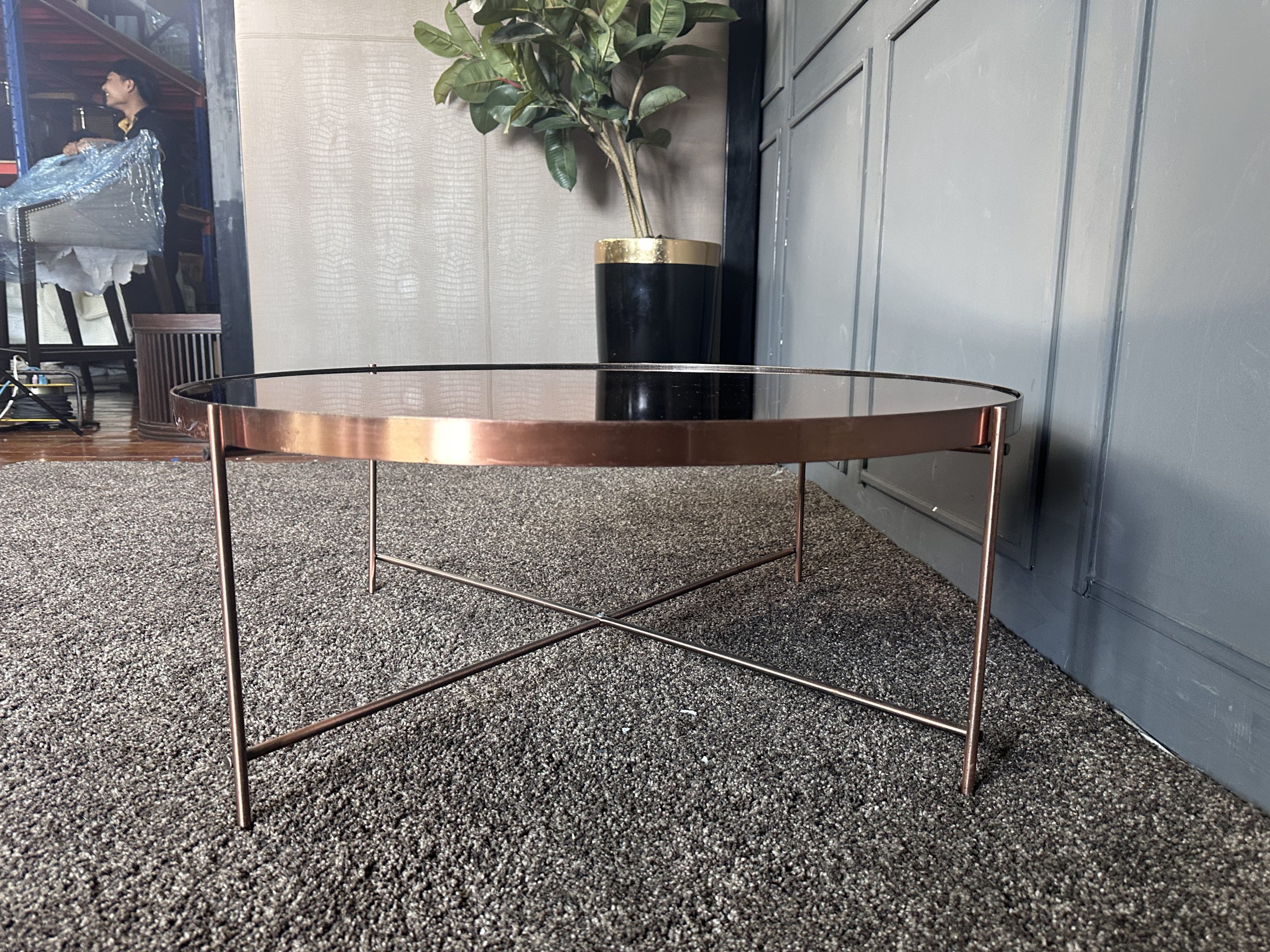 โต๊ะคอฟฟี่เทเบิล ท็อปกระจกกลม โครงขาเหล็ก สีโรสโกลด์ (1141174) . เส้นผ่านศูนย์กลาง 82 สูง 32 เซนติเมตร