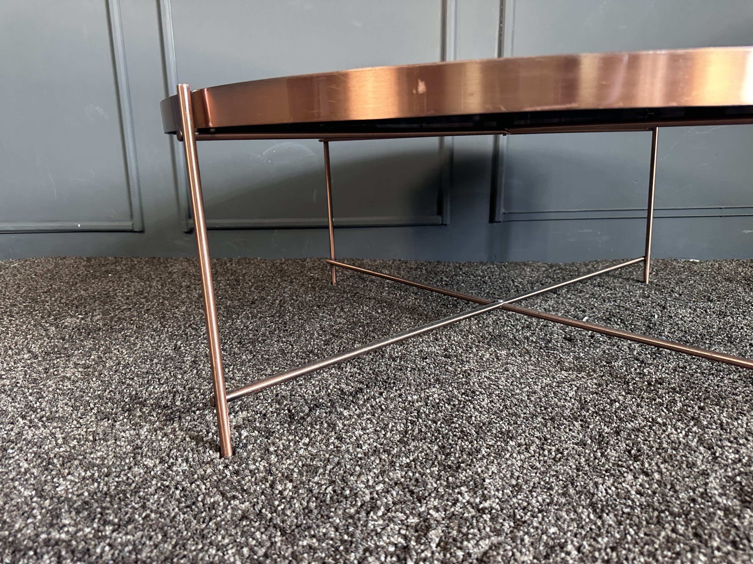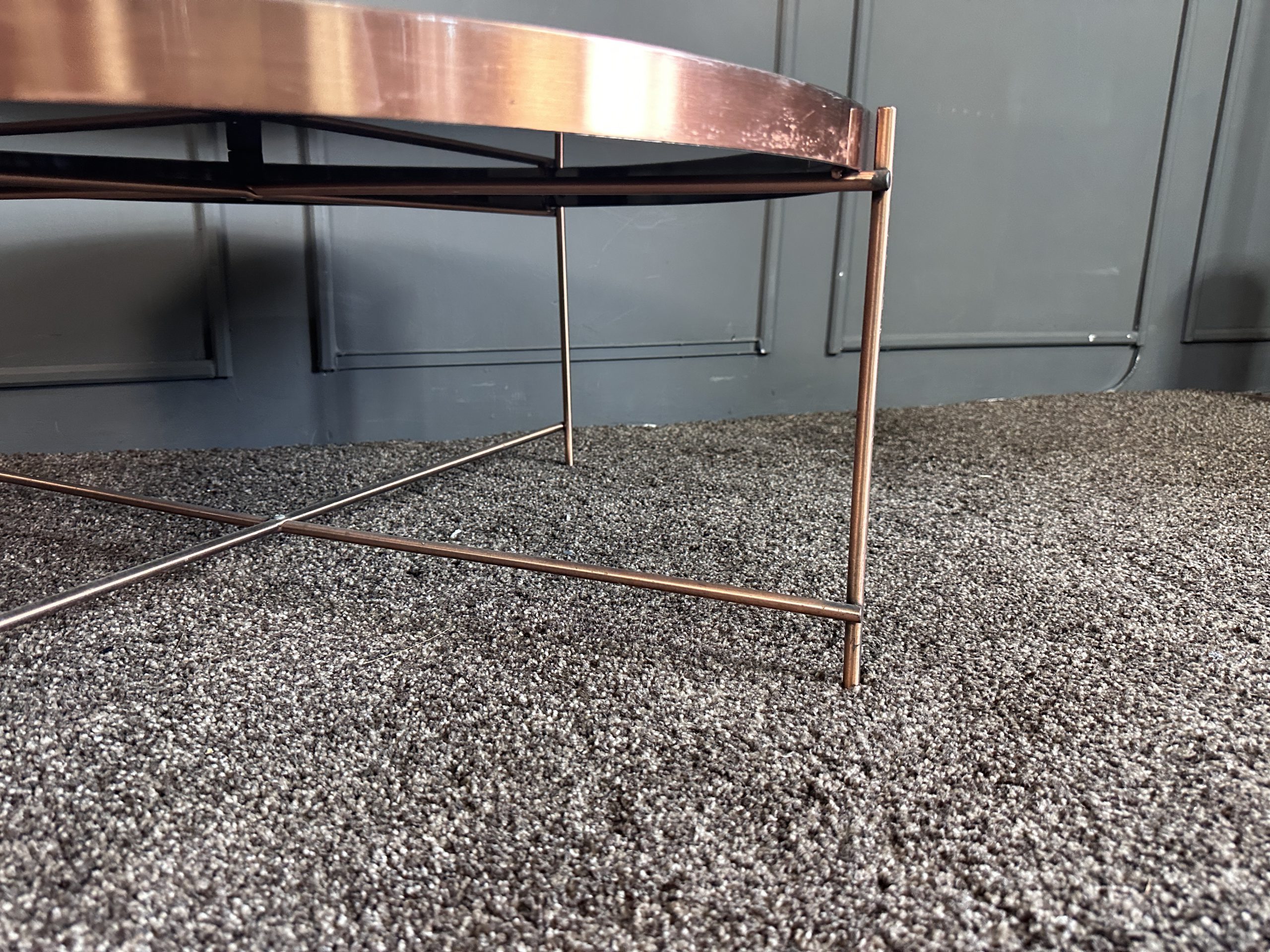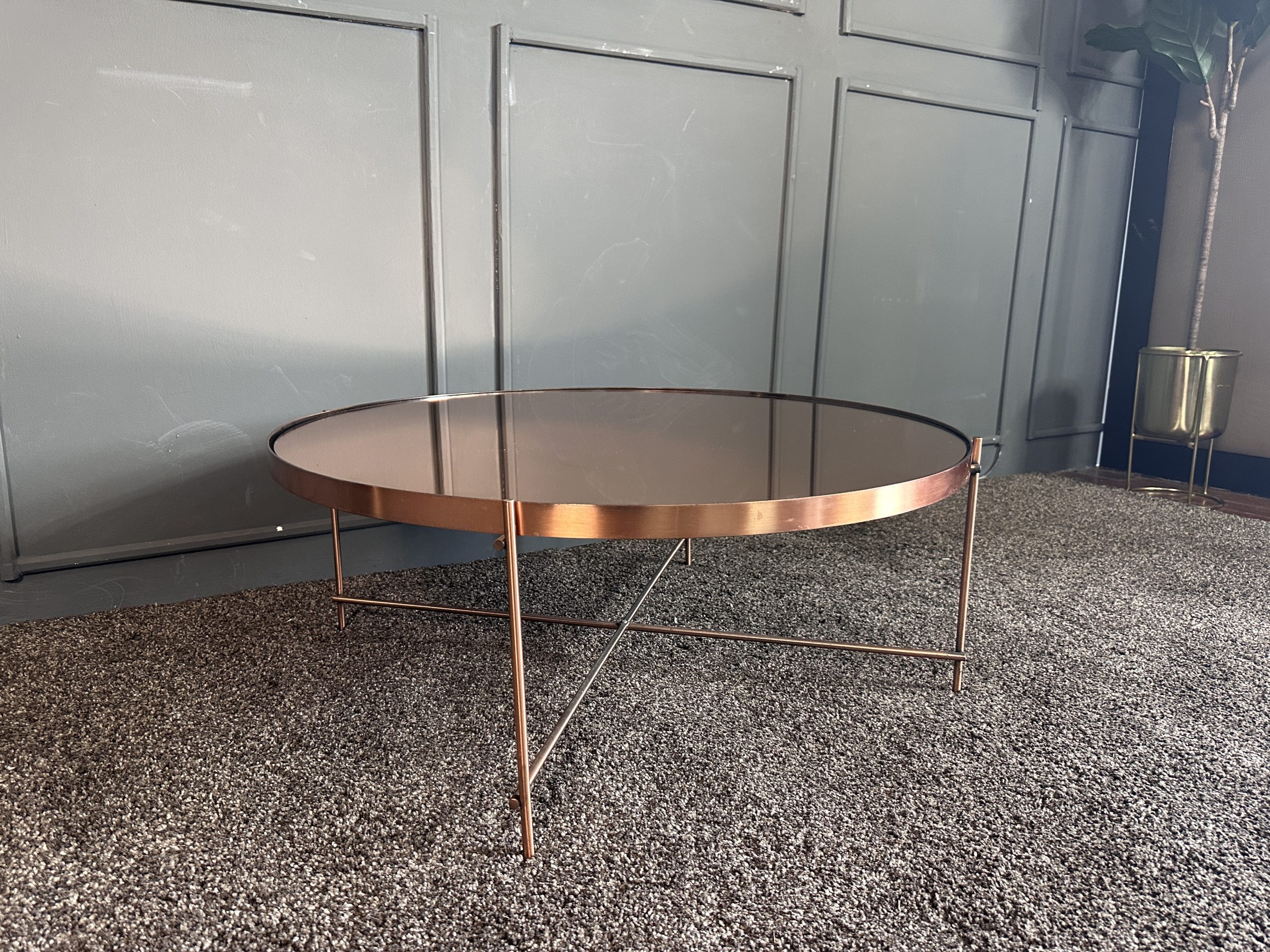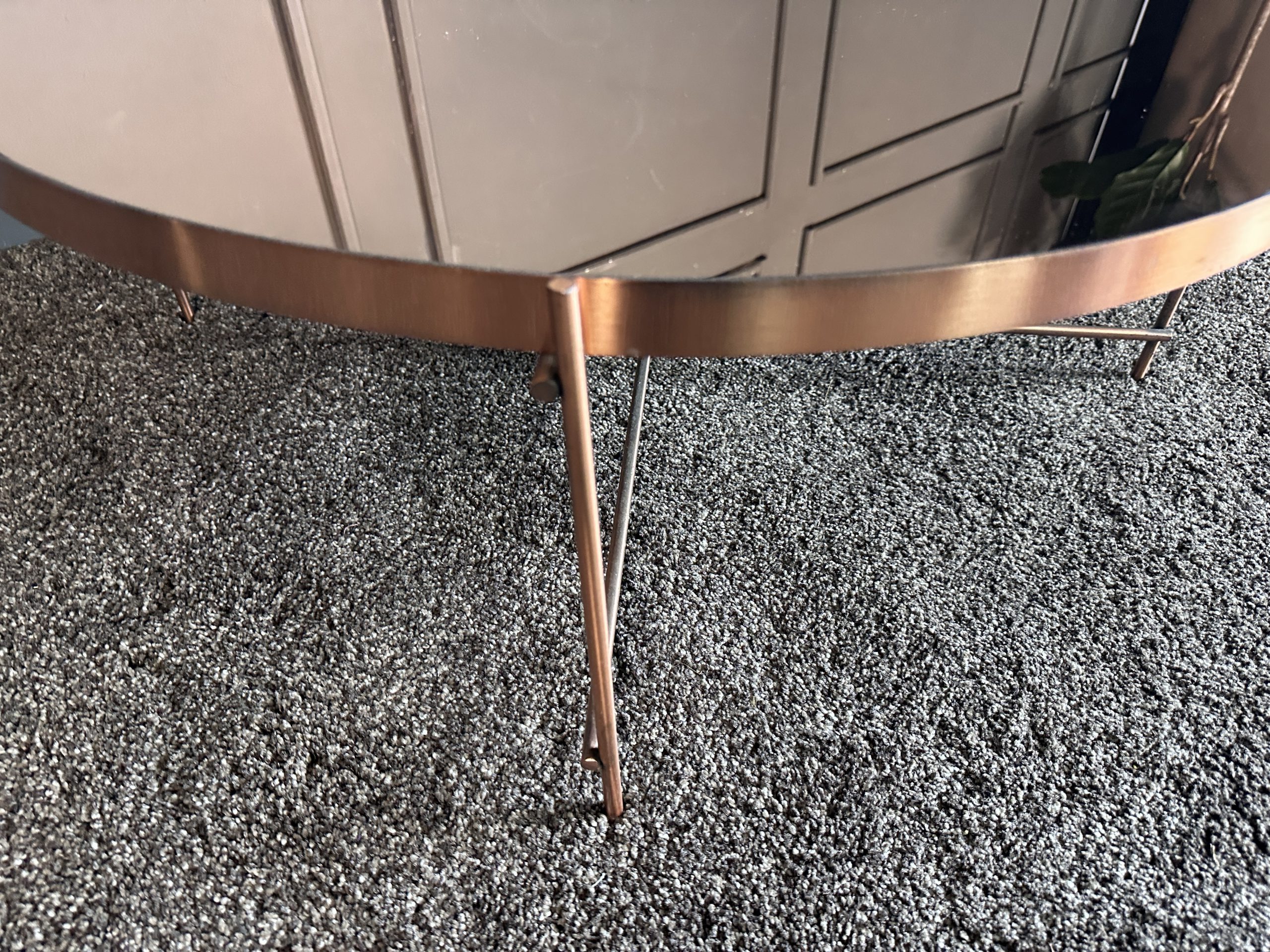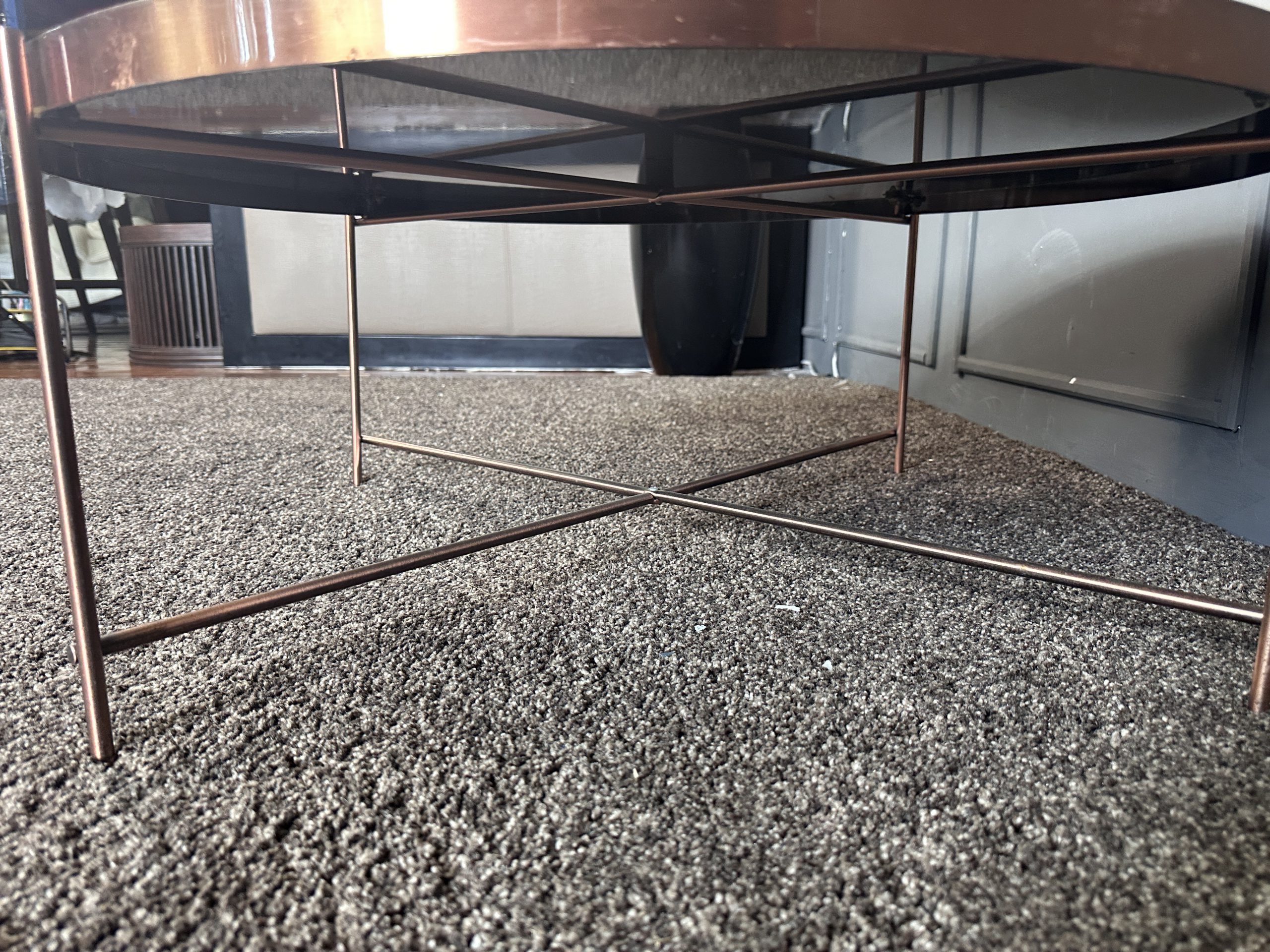โต๊ะคอฟฟี่เทเบิล ท็อปกระจกกลม โครงขาเหล็ก สีโรสโกลด์ (1141174) . เส้นผ่านศูนย์กลาง 82 สูง 32 เซนติเมตร