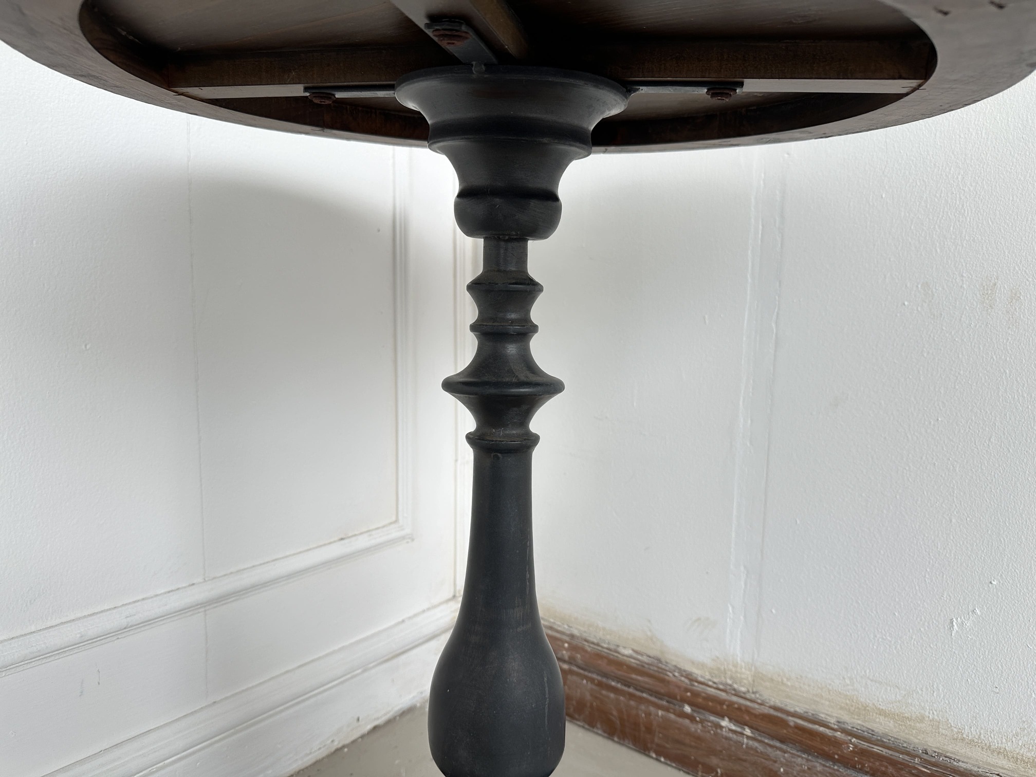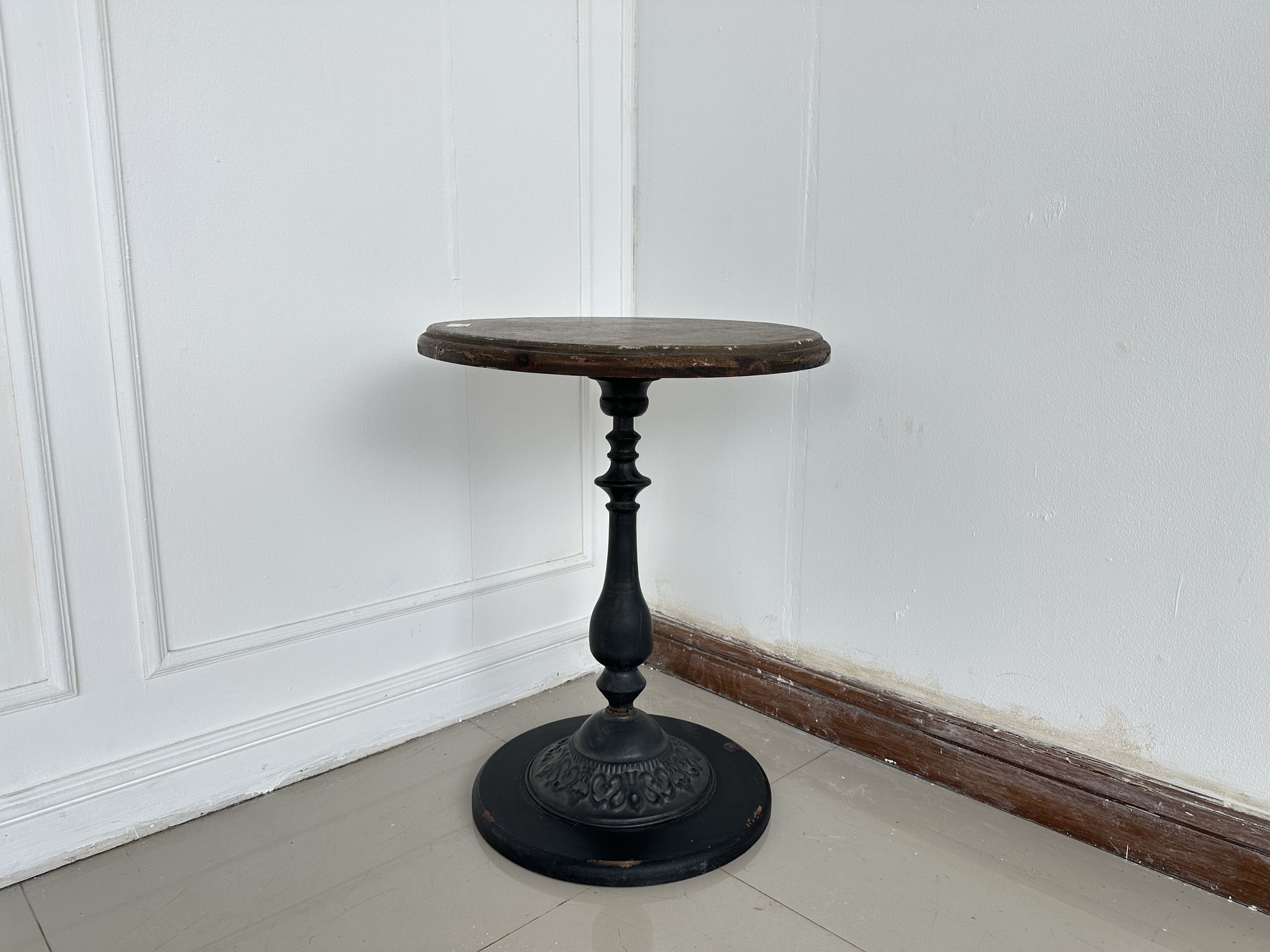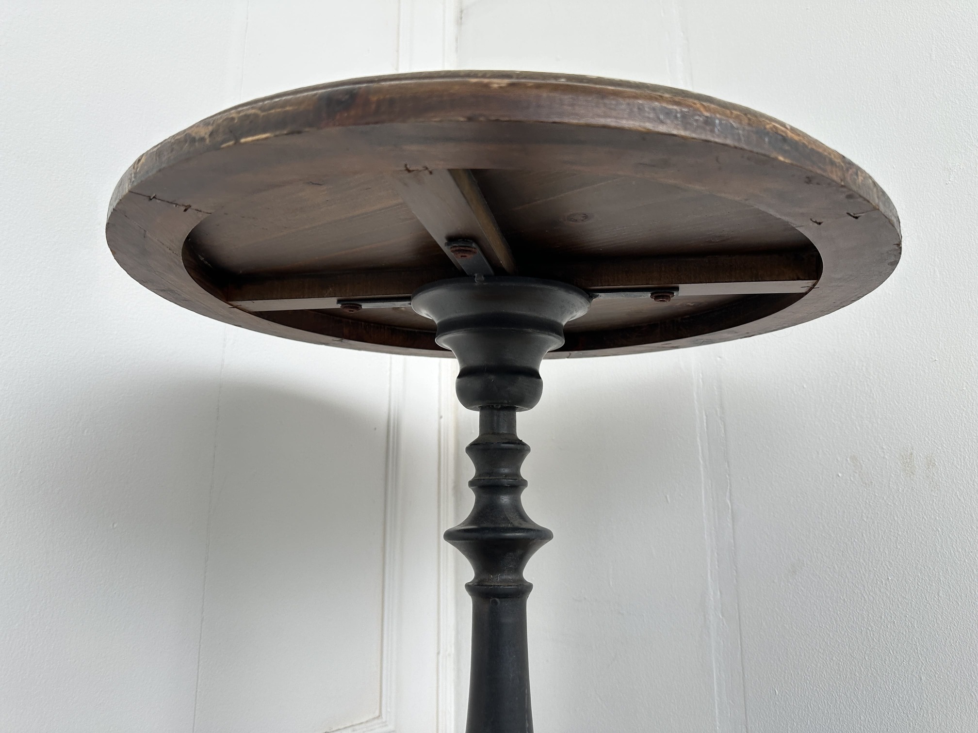 โต๊ะคอฟฟี่เทเบิ้ล ท็อปกลมไม้จริง โครงขาเหล็ก