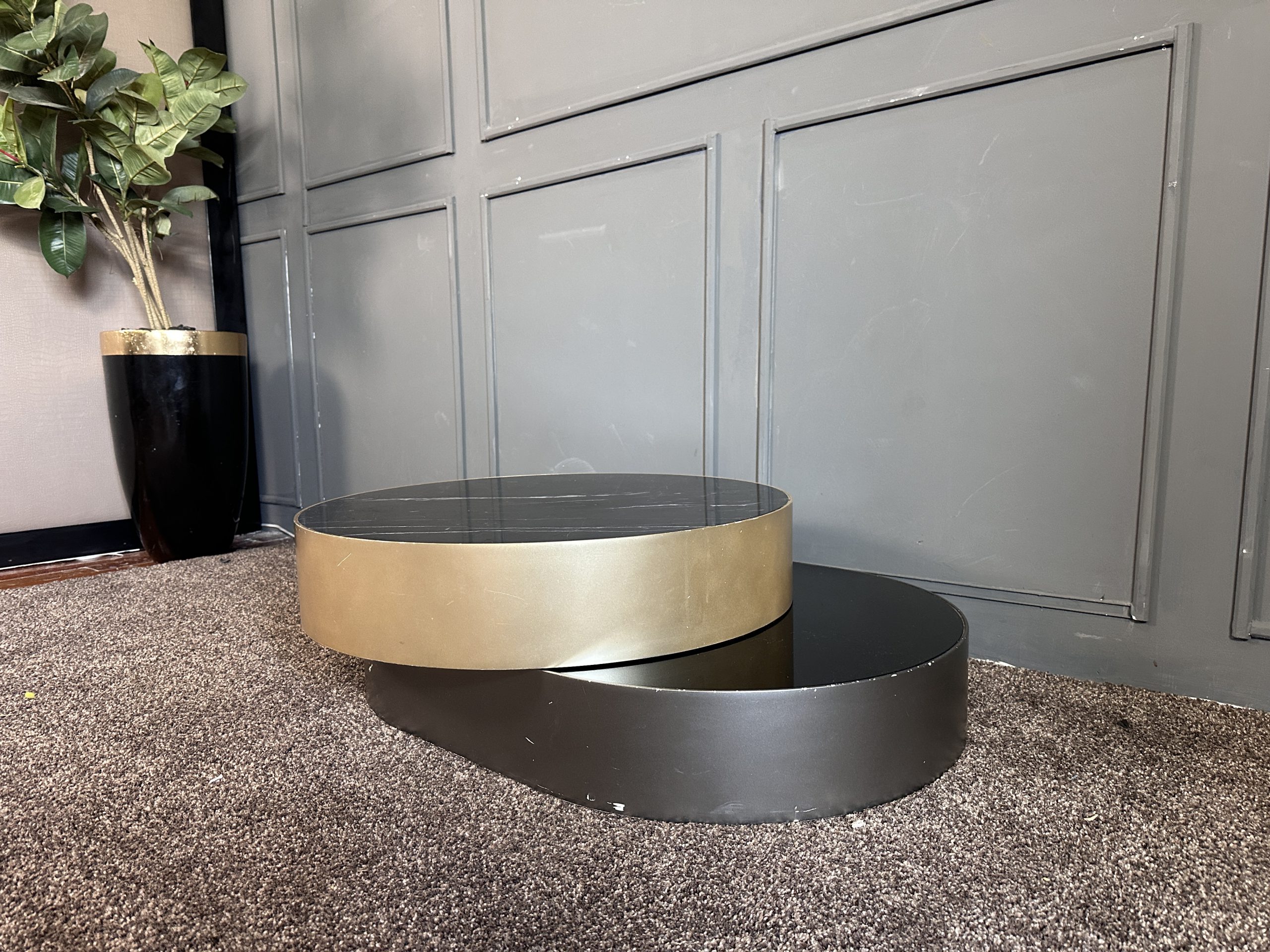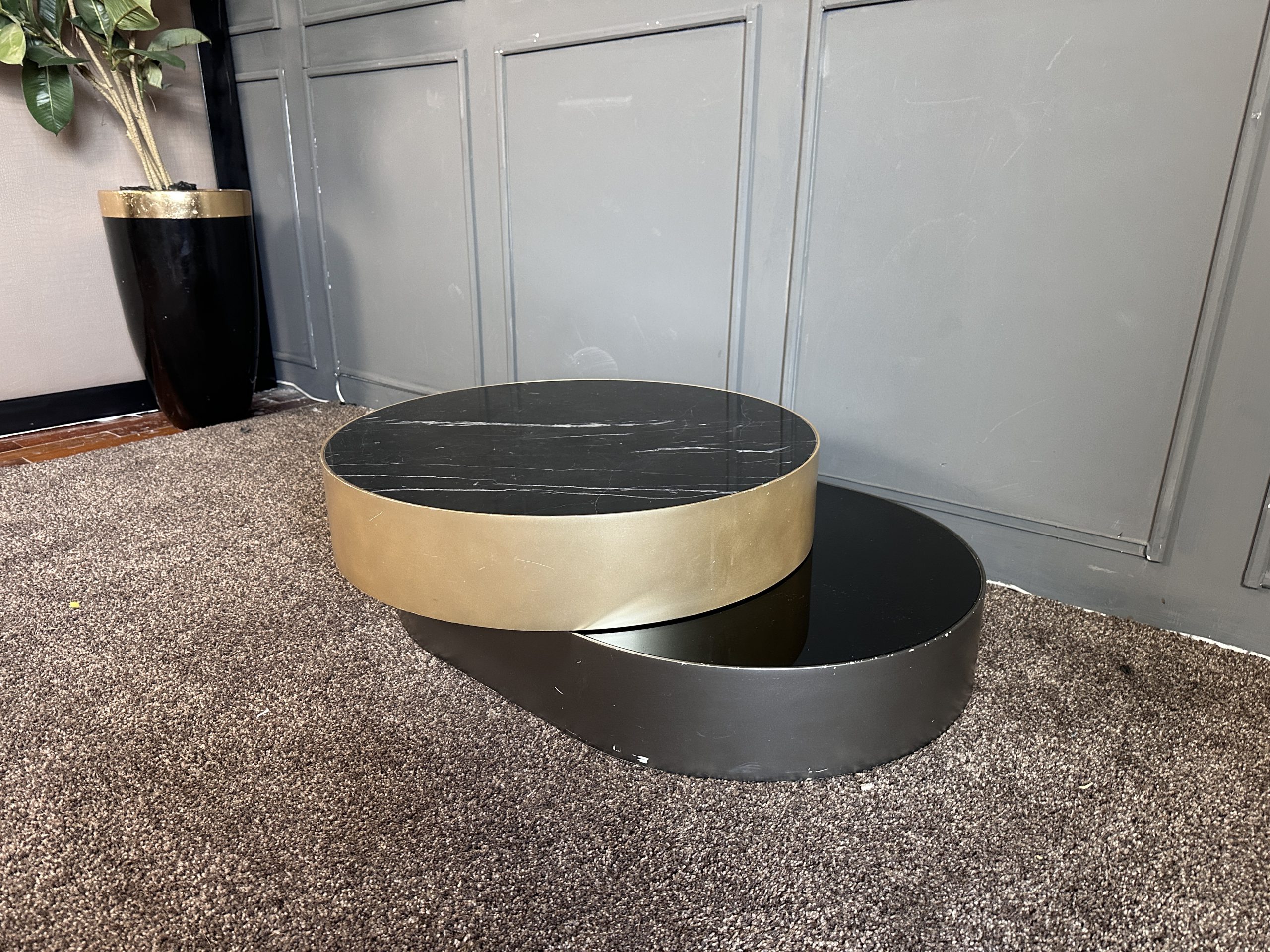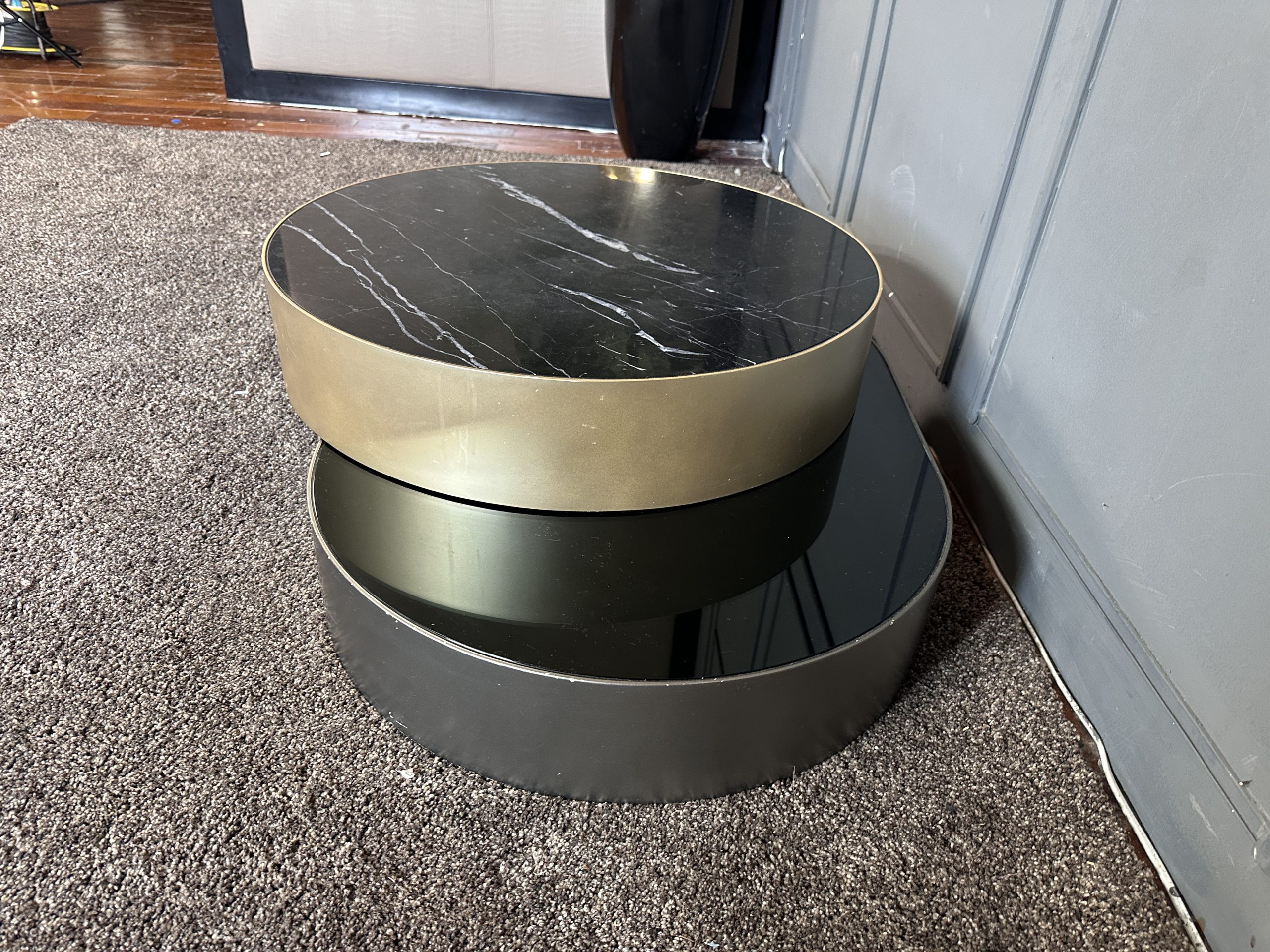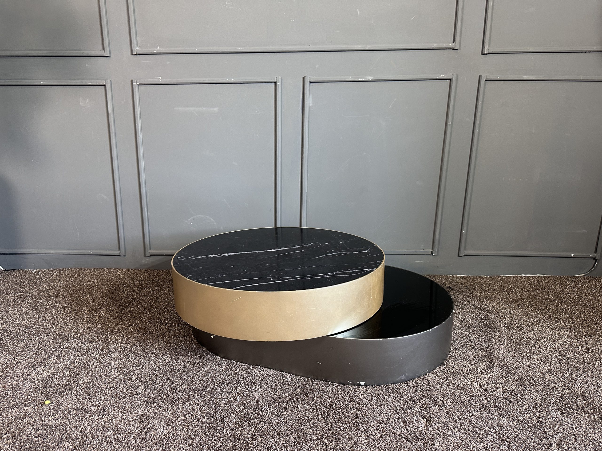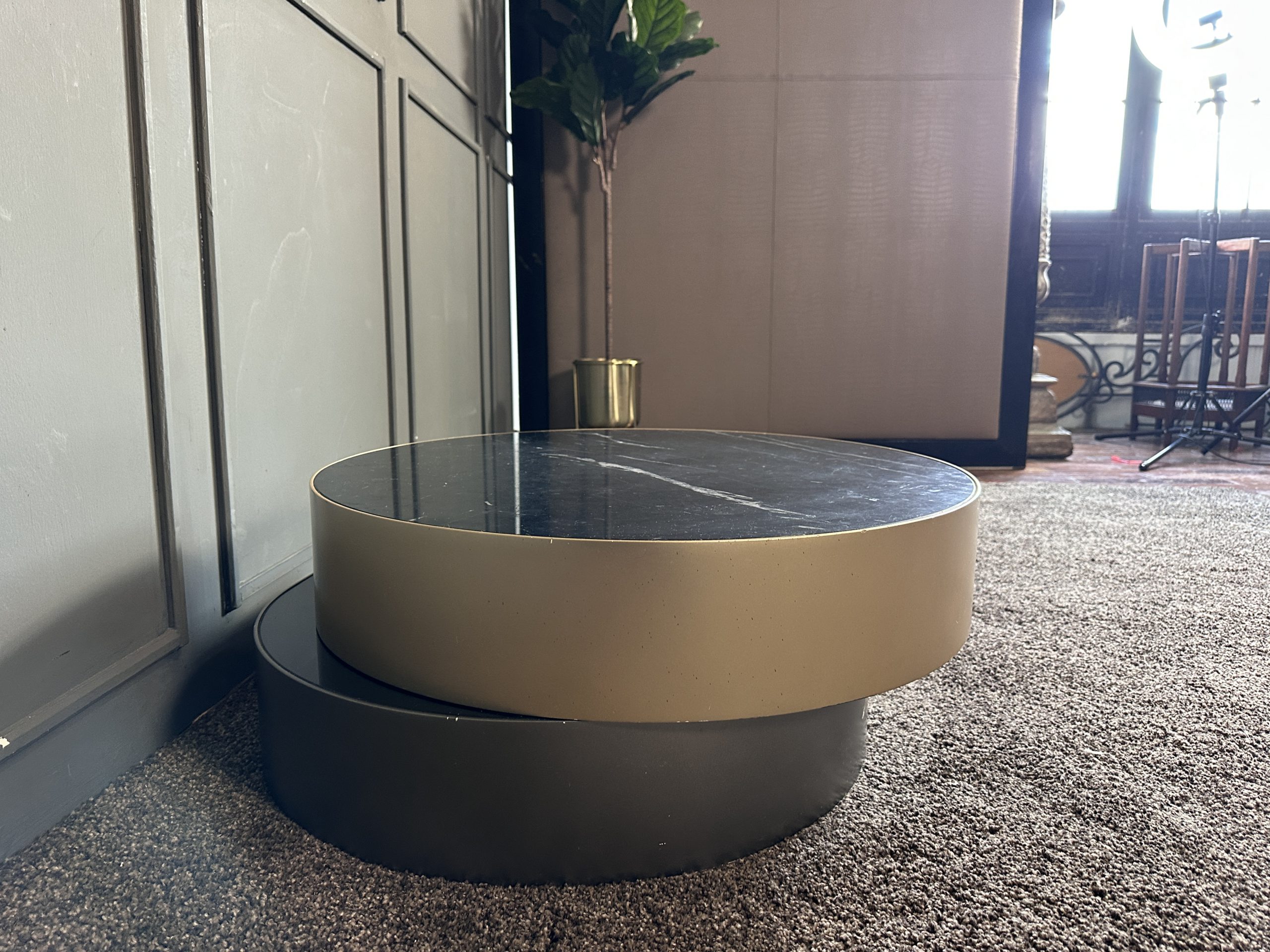 โต๊ะคอฟฟี่เทเบิ้ล ท็อป 2 ชั้น ท็อปล่างกระจก ท็อปบนหินอ่อน หมุนได้ โครงไม้ MDF งานดีไซน์