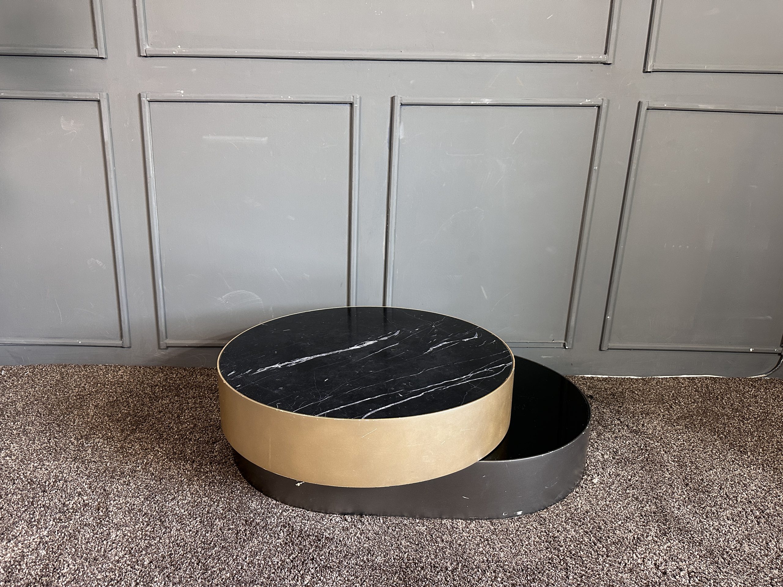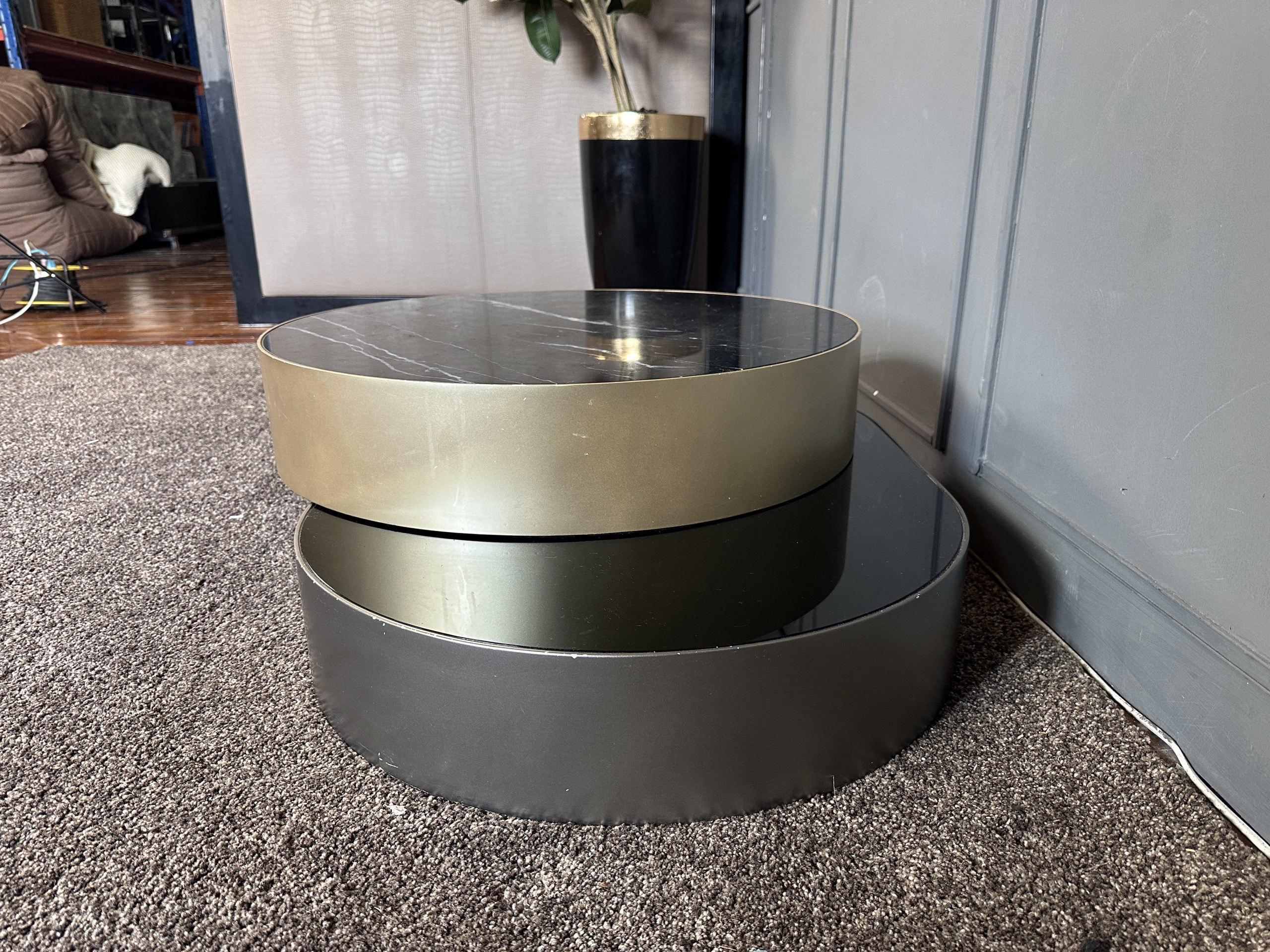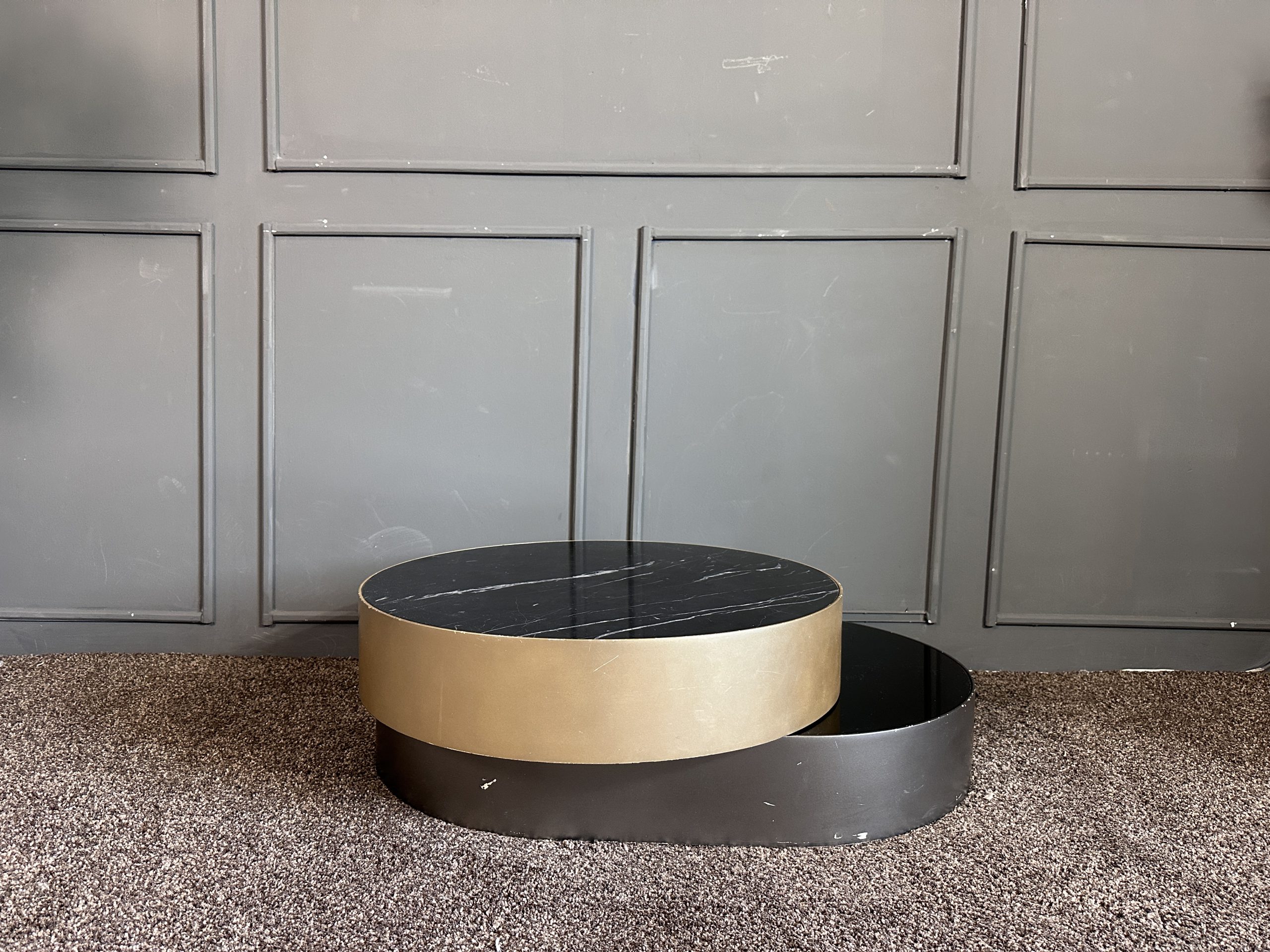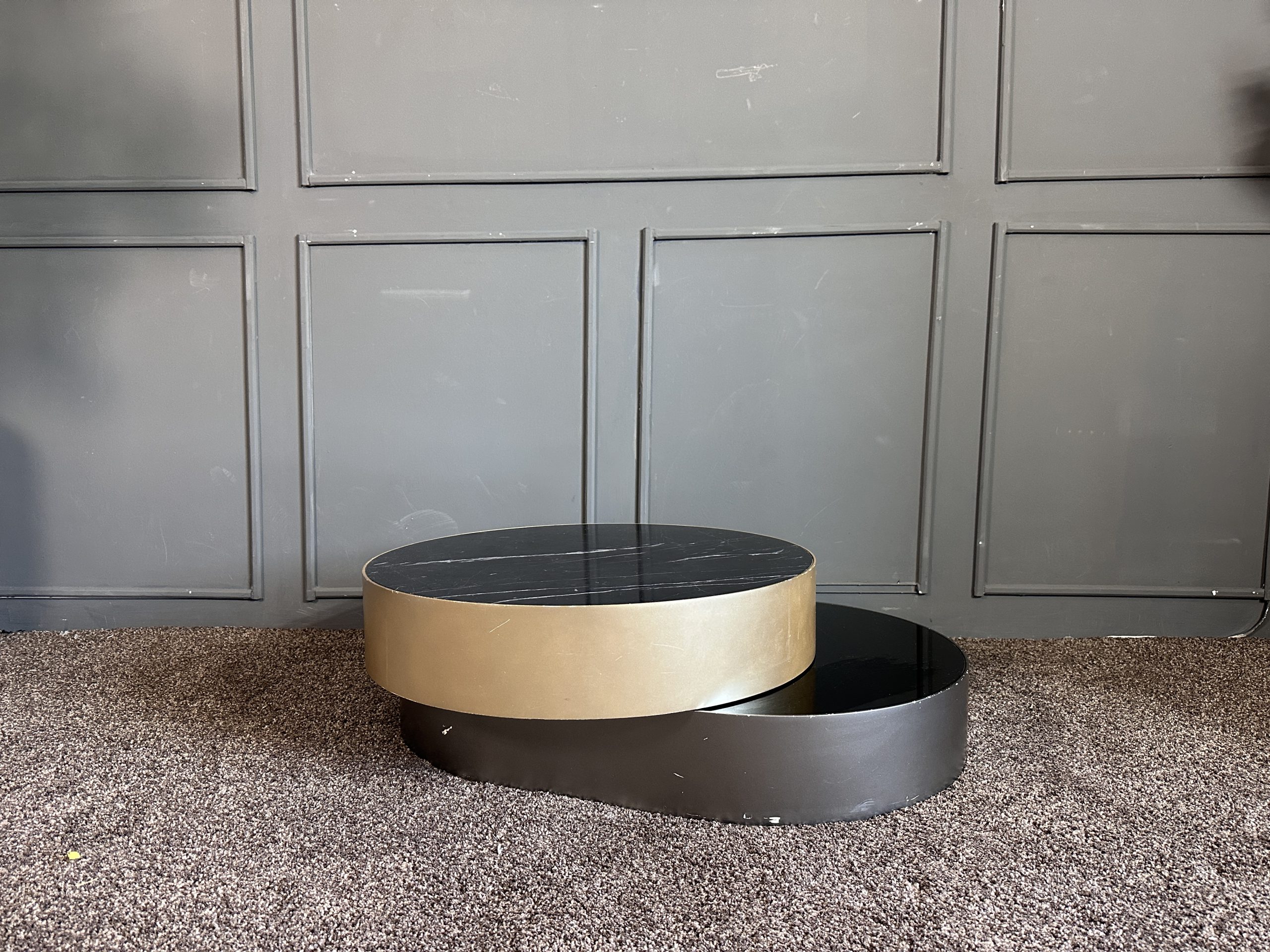 โต๊ะคอฟฟี่เทเบิ้ล ท็อป 2 ชั้น ท็อปล่างกระจก ท็อปบนหินอ่อน หมุนได้ โครงไม้ MDF งานดีไซน์