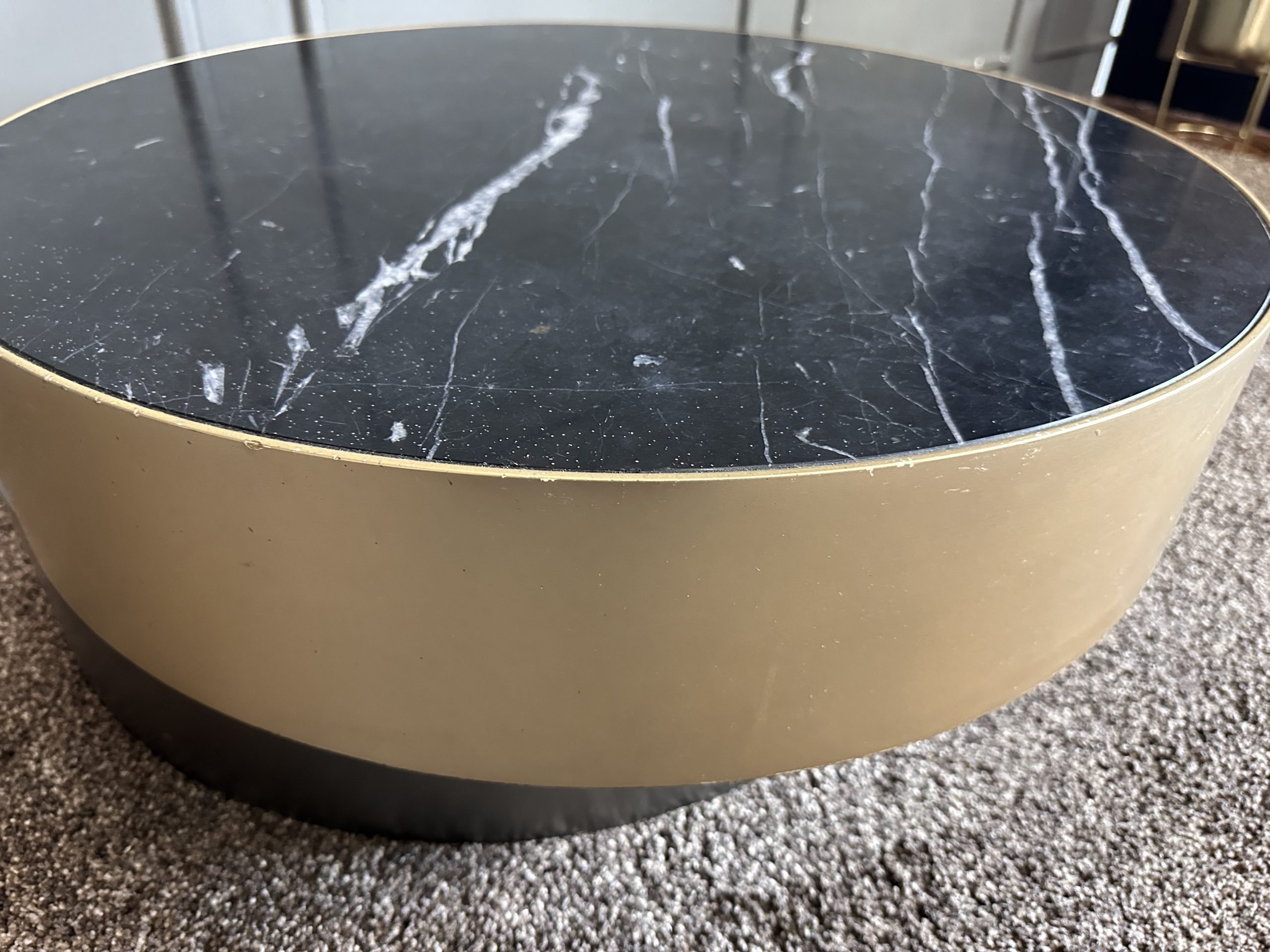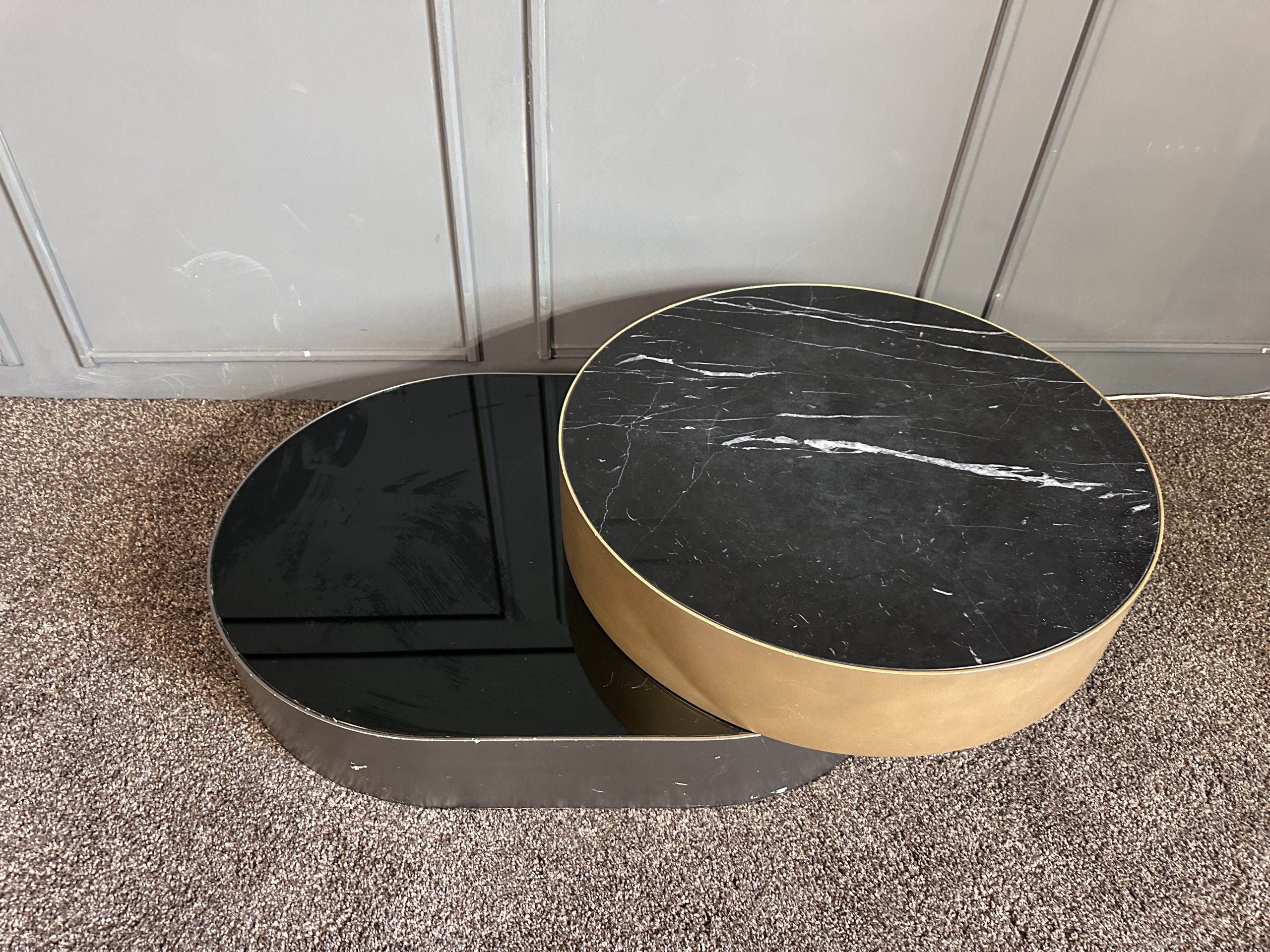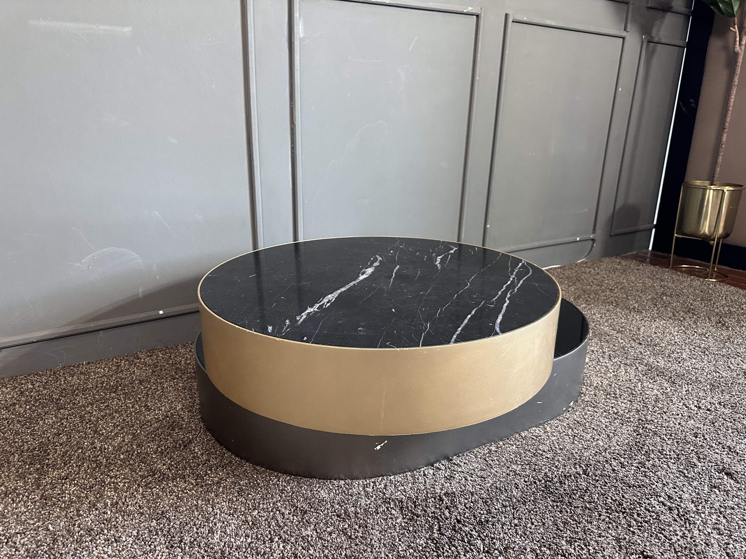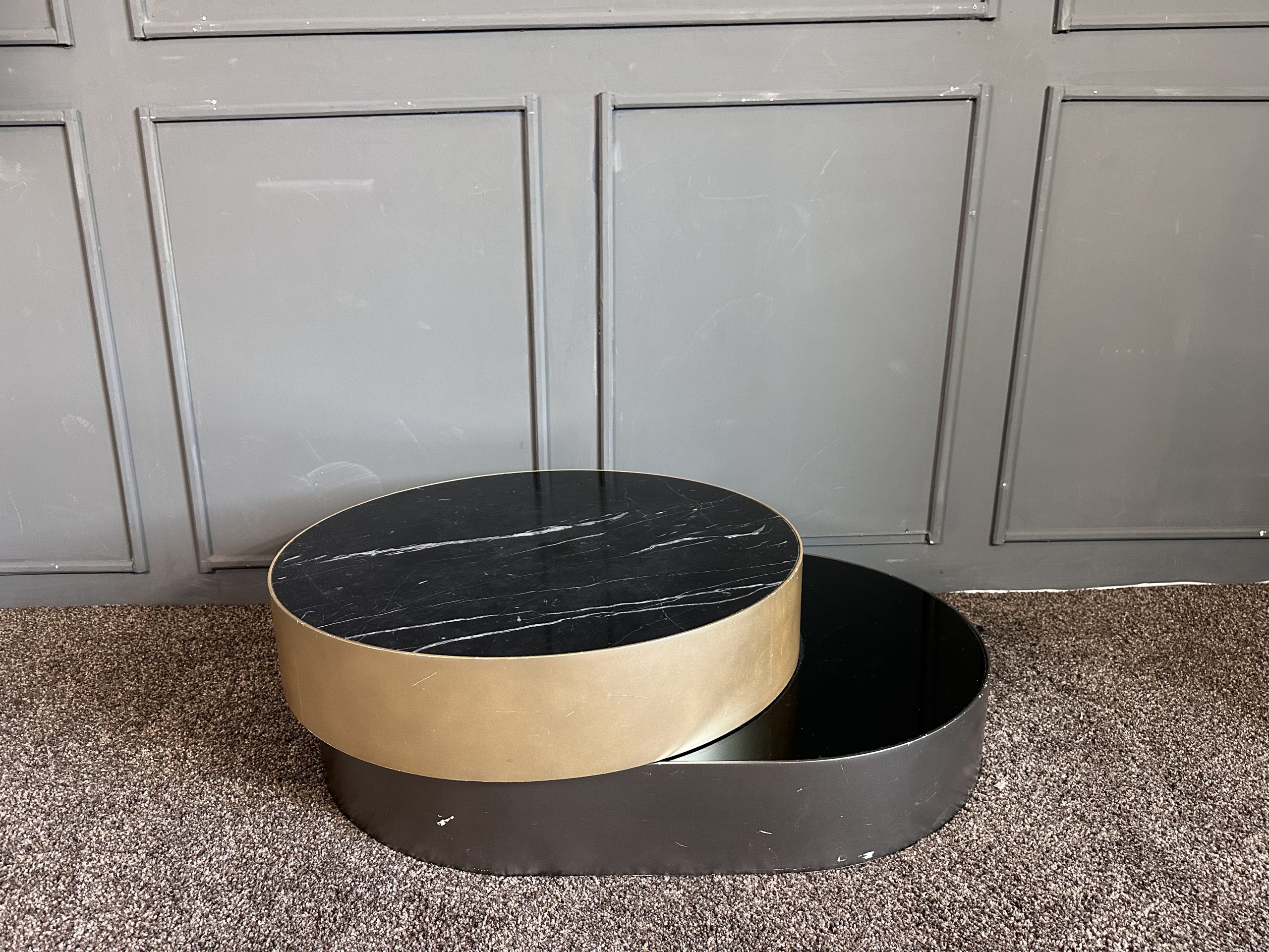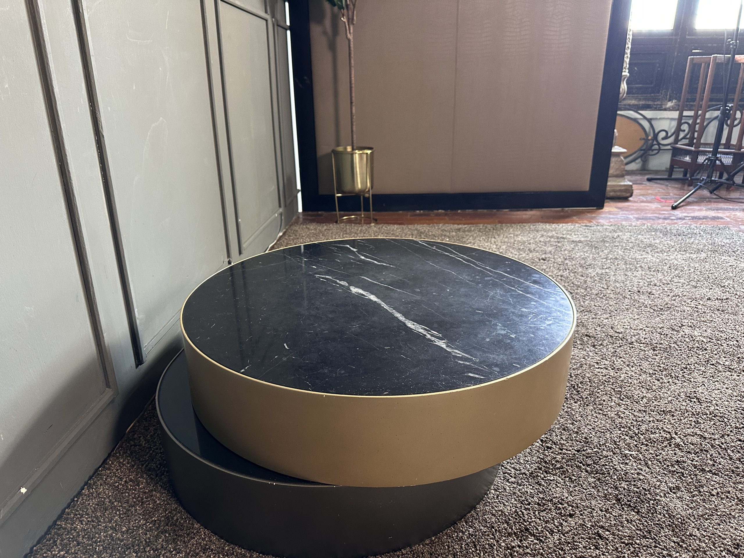 โต๊ะคอฟฟี่เทเบิ้ล ท็อป 2 ชั้น ท็อปล่างกระจก ท็อปบนหินอ่อน หมุนได้ โครงไม้ MDF งานดีไซน์