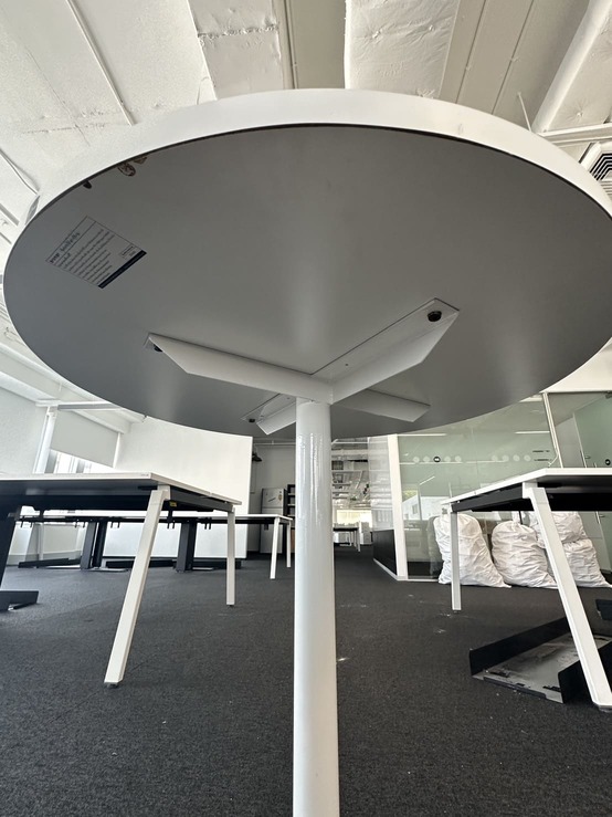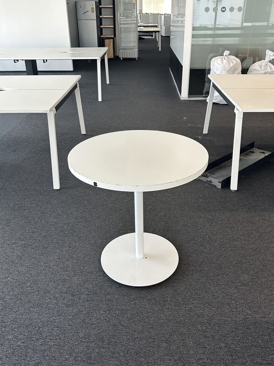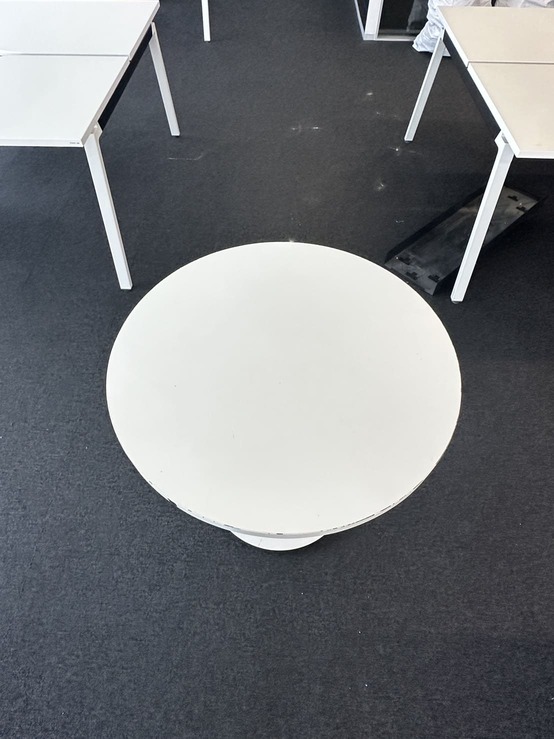 โต๊ะคอฟฟี่เทเบิ้ล แบรนด์ PROMPT ท็อปทรงกลมไม้ยาง โครงขาเหล็กสีขาว