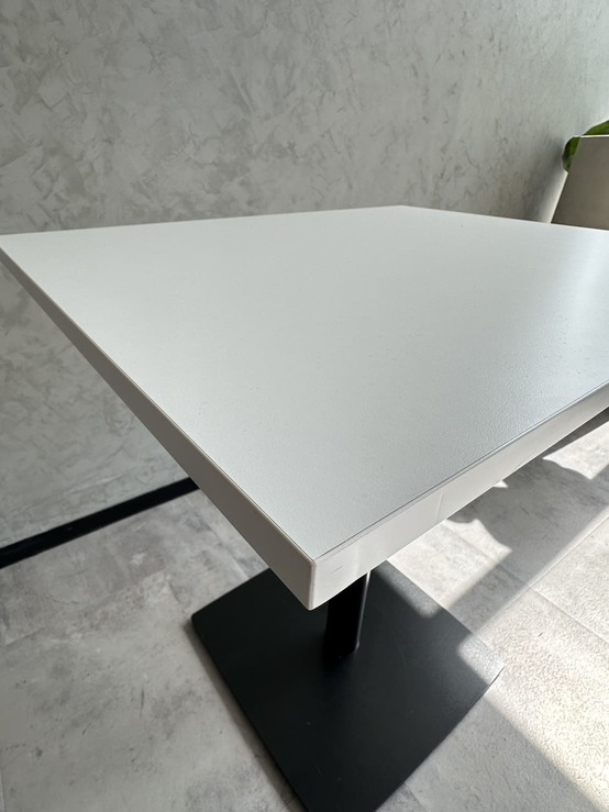โต๊ะทานอาหาร ท็อปไม้ MDF สีขาว โครงขาเหล็กสีดำ ( ท็อปเล็ก )
