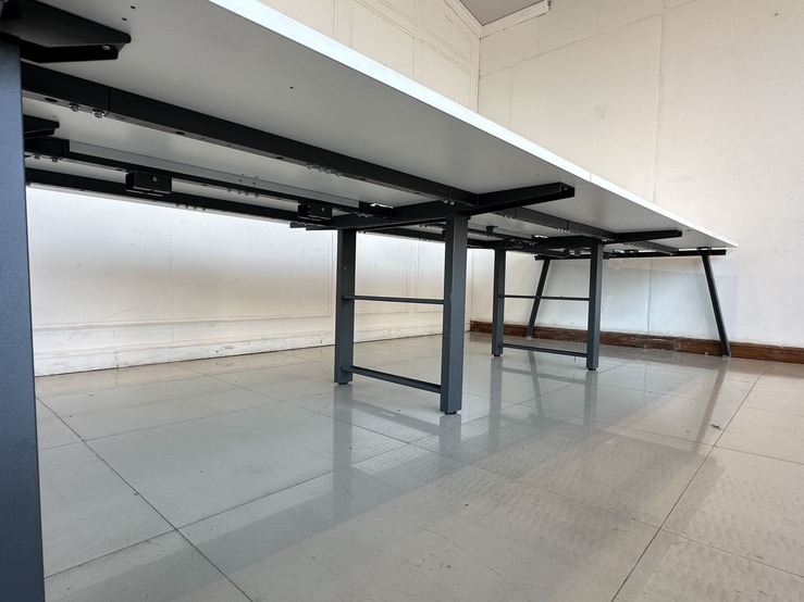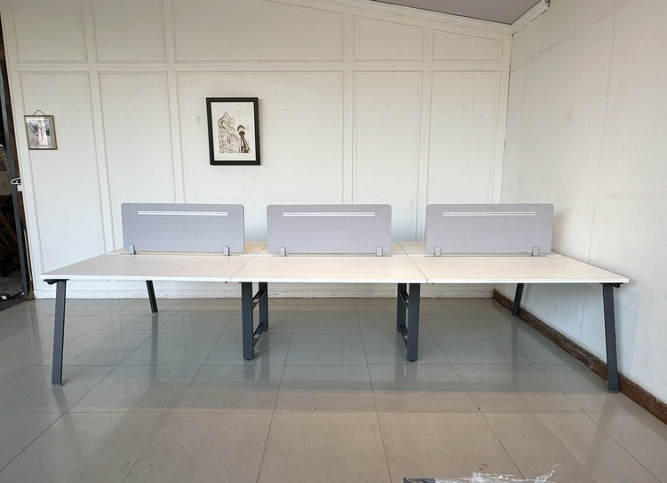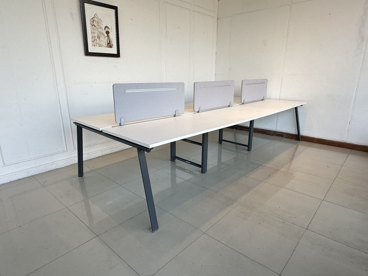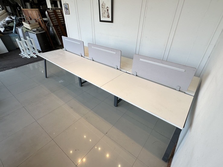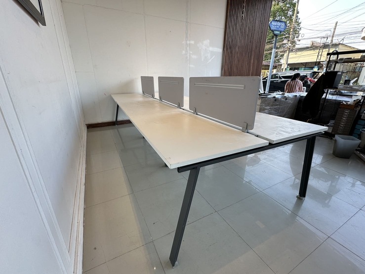 โต๊ะทำงานกลุ่ม 6 ที่นั่ง แบรนด์ ROCKWORTH ท็อปไม้ MDF สีขาว มีรางปลั๊กไฟ โครงขาเหล็กสีเทา (ชุดที่4)