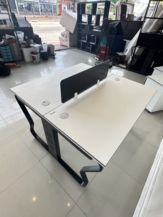 โต๊ะทำงานคู่ (หน้าชนกัน) ท็อปไม้ MDF สีขาว