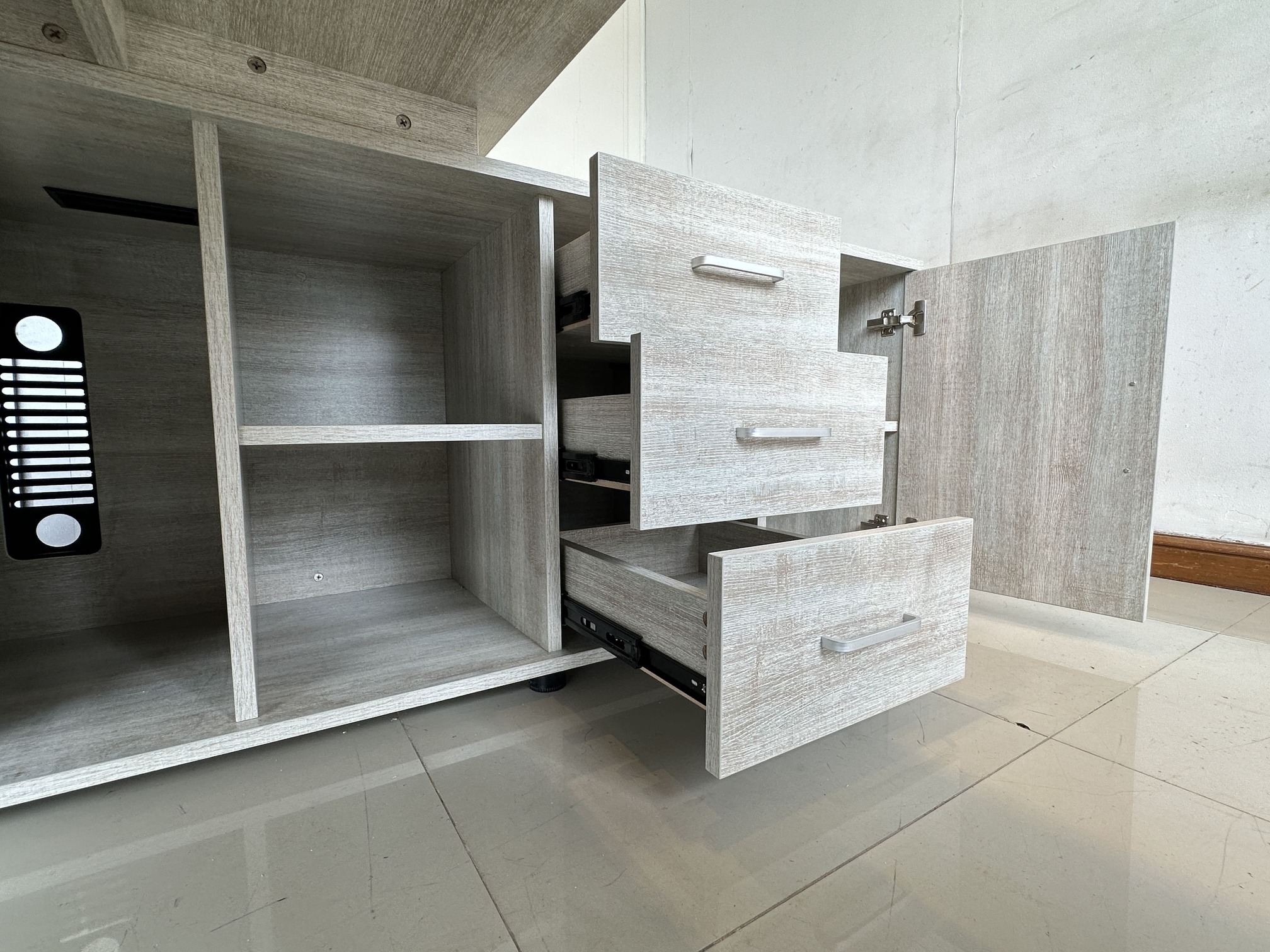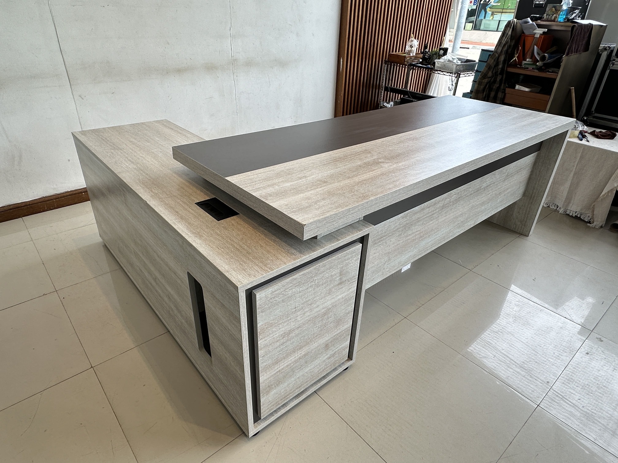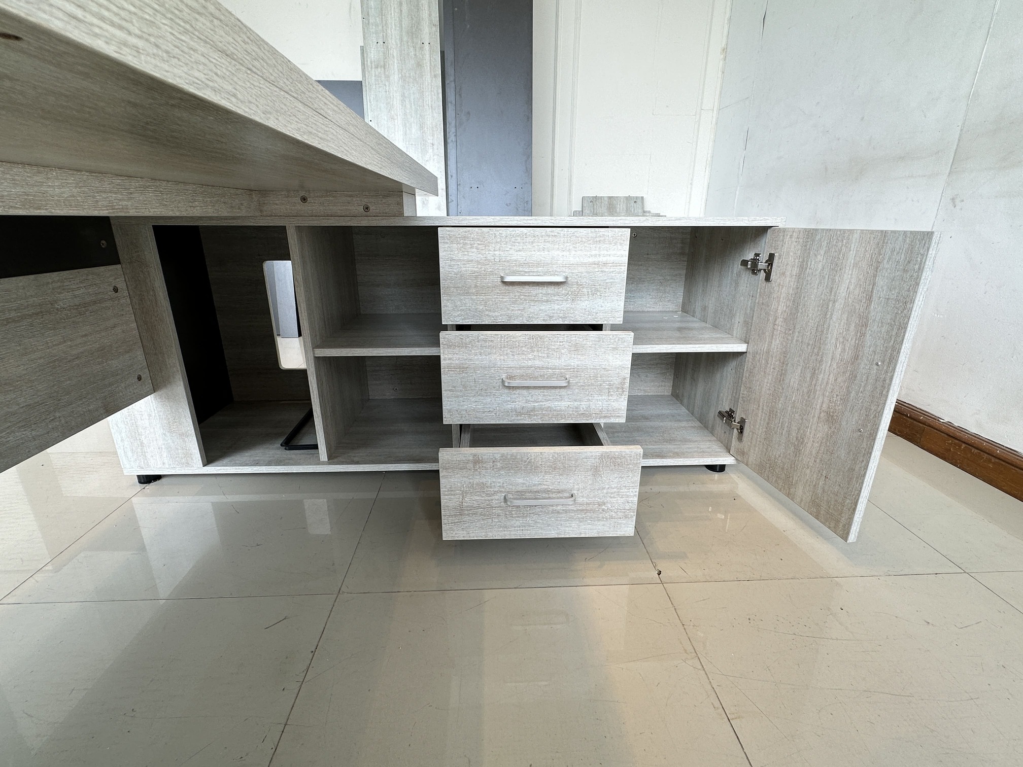 โต๊ะทำงาน ทรงแอล มีตู้เก็บของ 1 บานเปิด 3 ลิ้นชัก