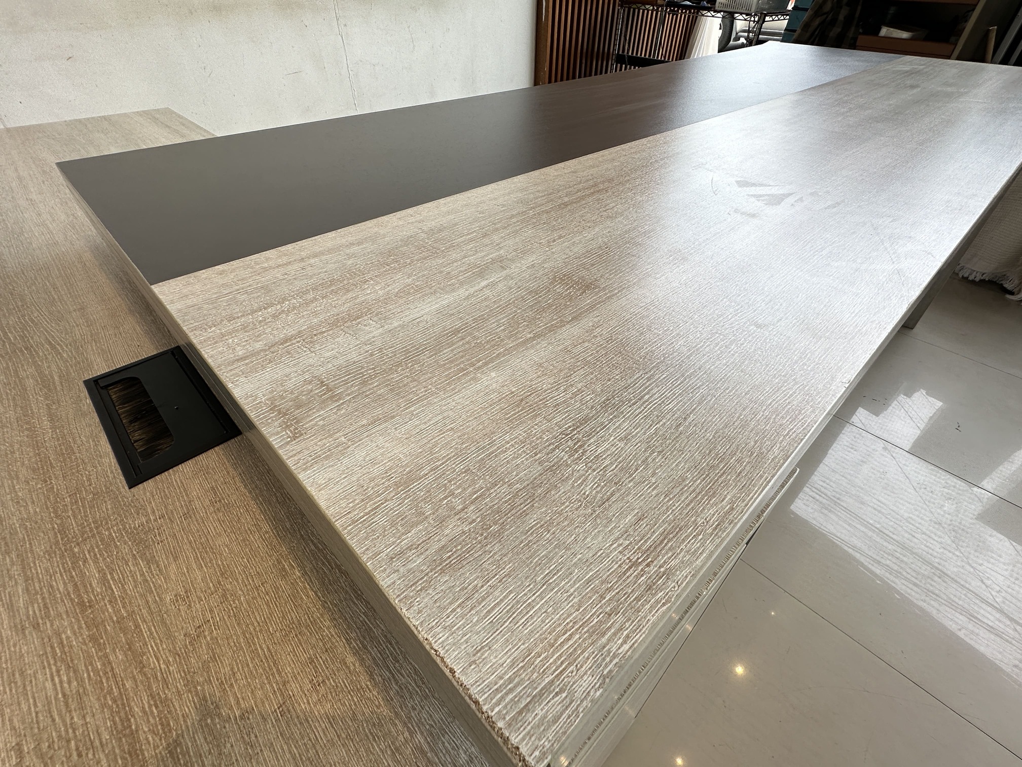 โต๊ะทำงาน ทรงแอล มีตู้เก็บของ 1 บานเปิด 3 ลิ้นชัก โครงไม้ MDF สีบีชลายไม้