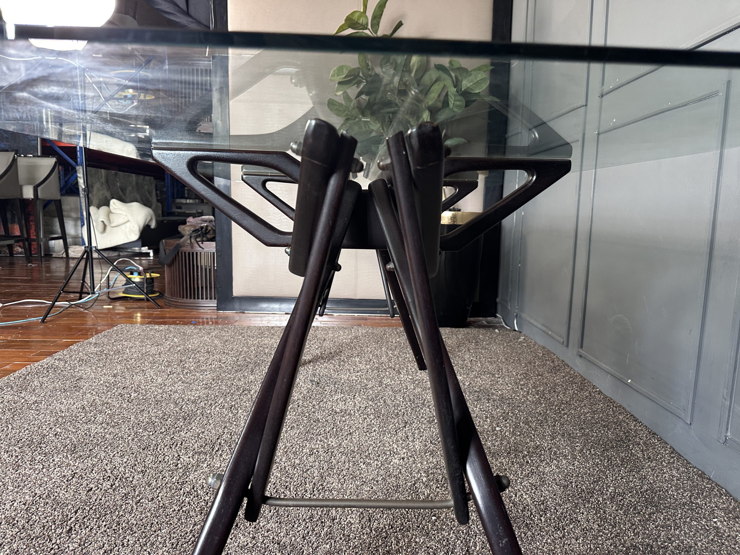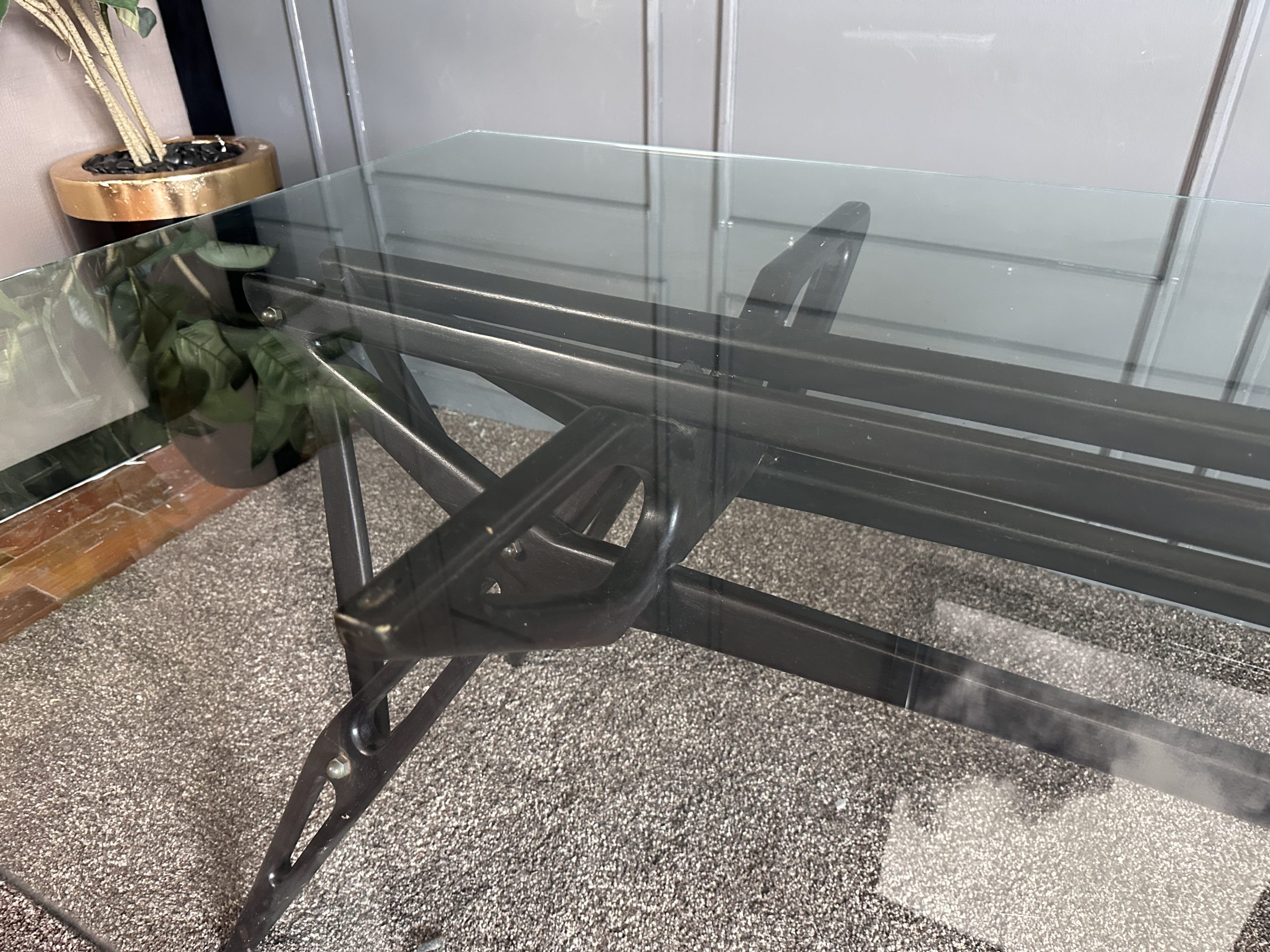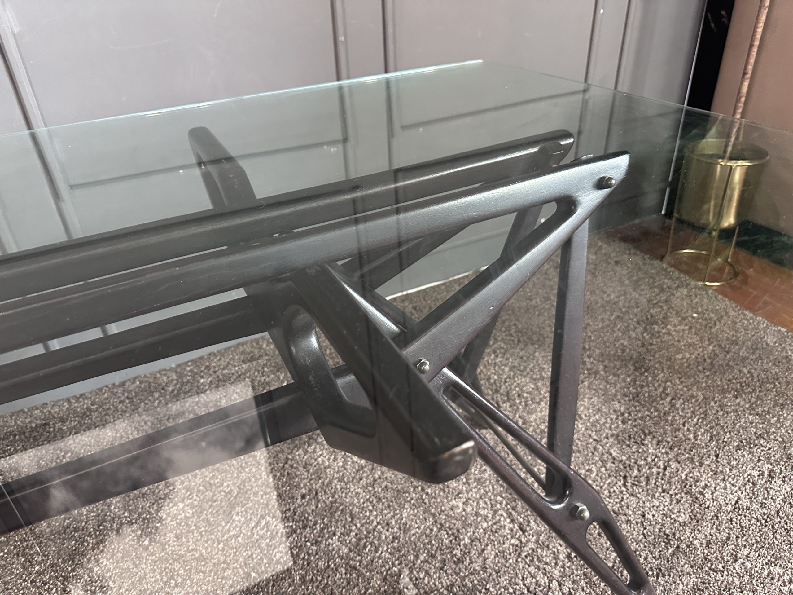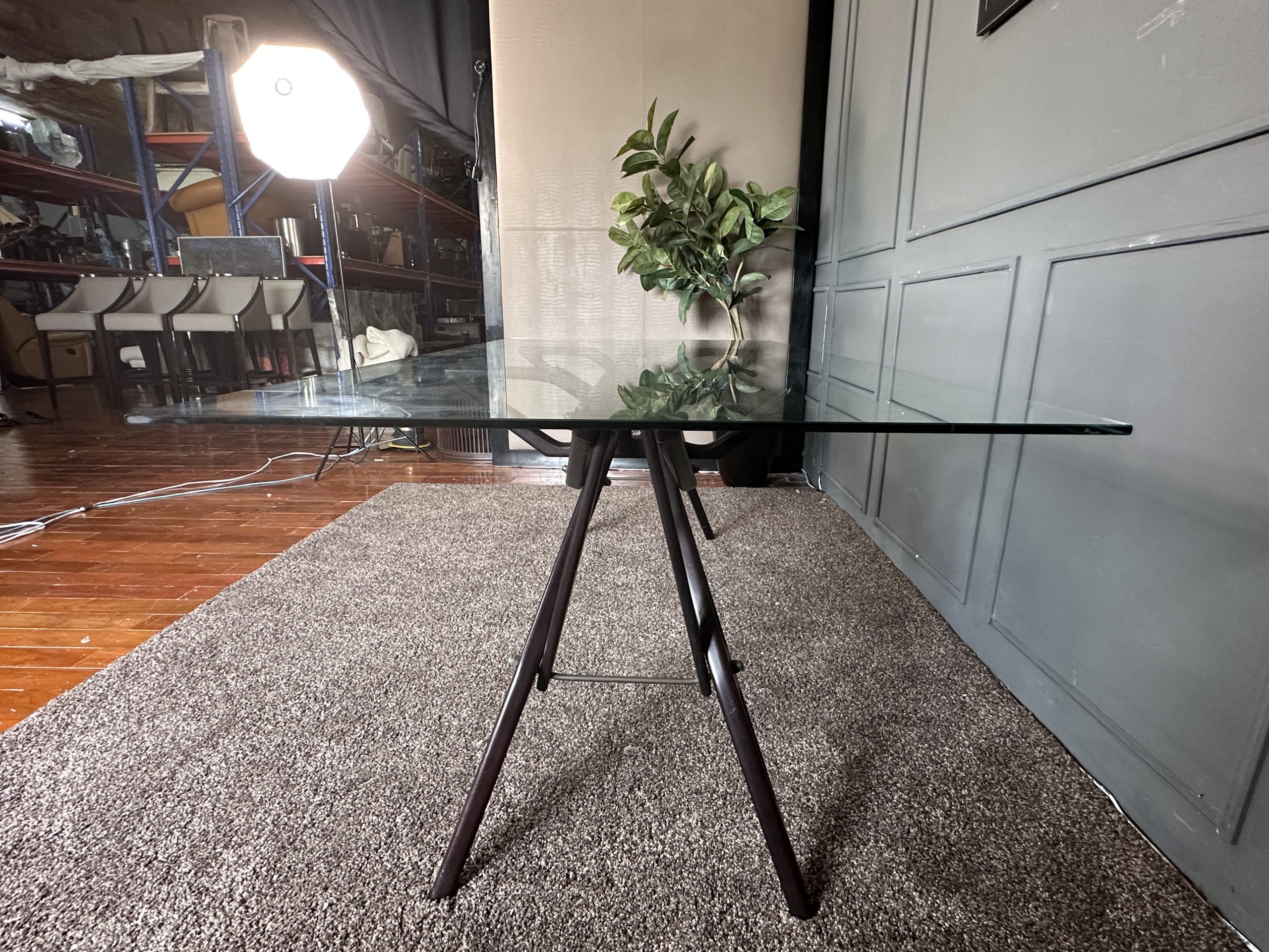โต๊ะทำงาน ท็อปกระจกสี่เหลี่ยม โครงขาไม้จริงงานดีไซน์