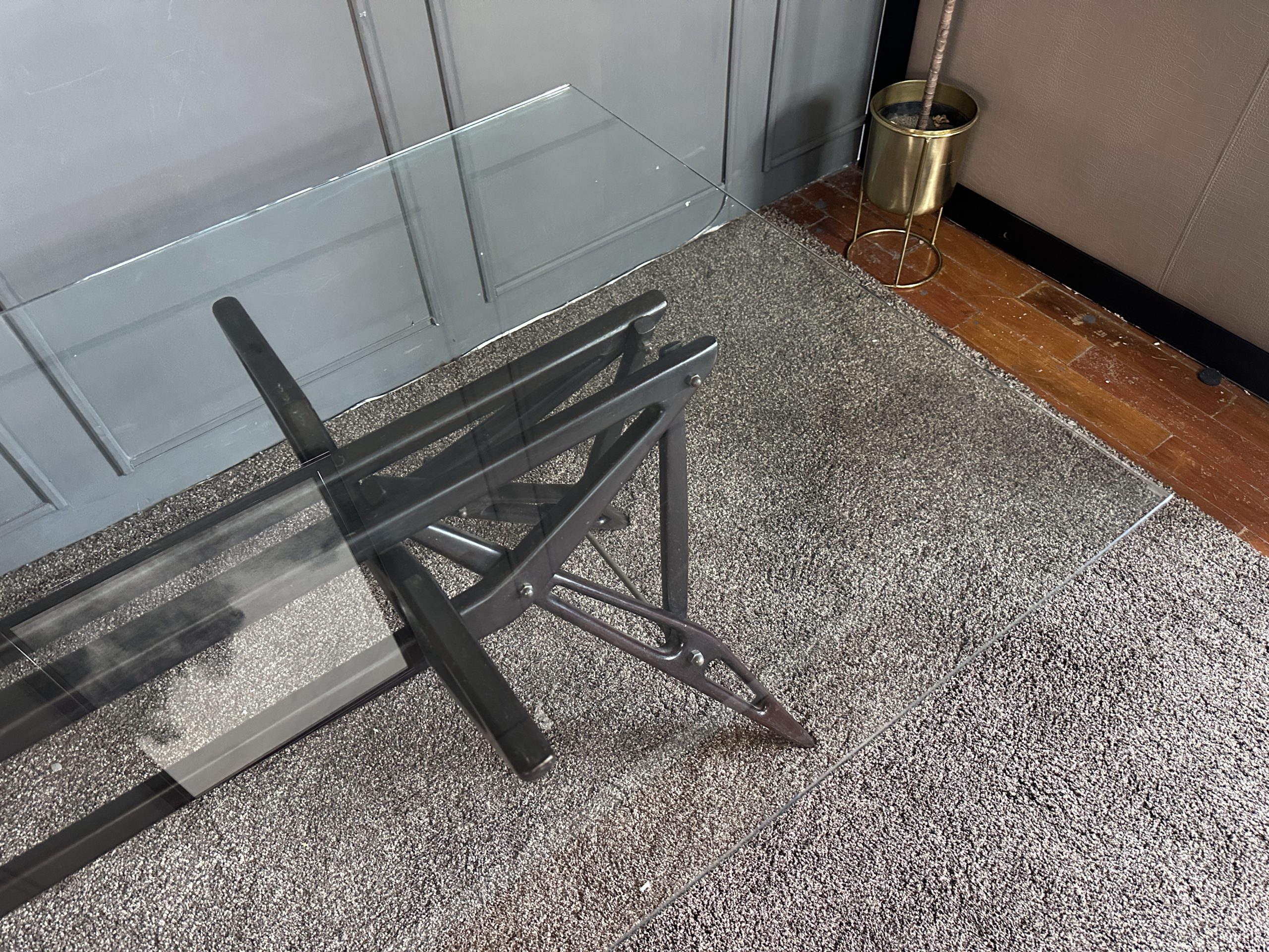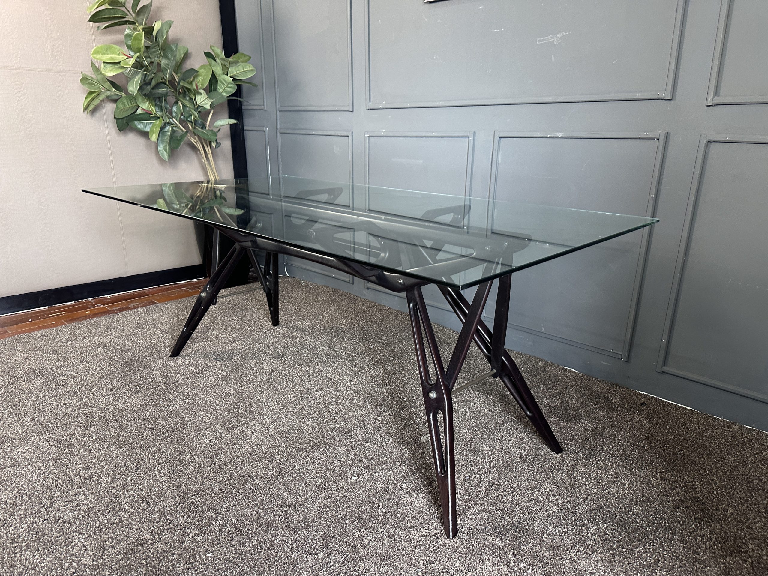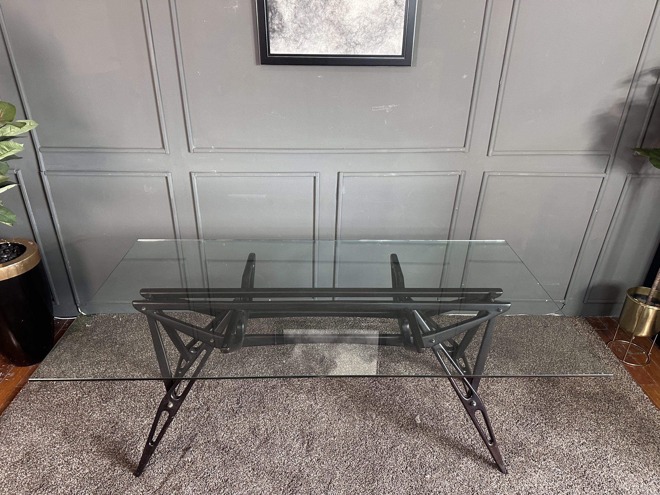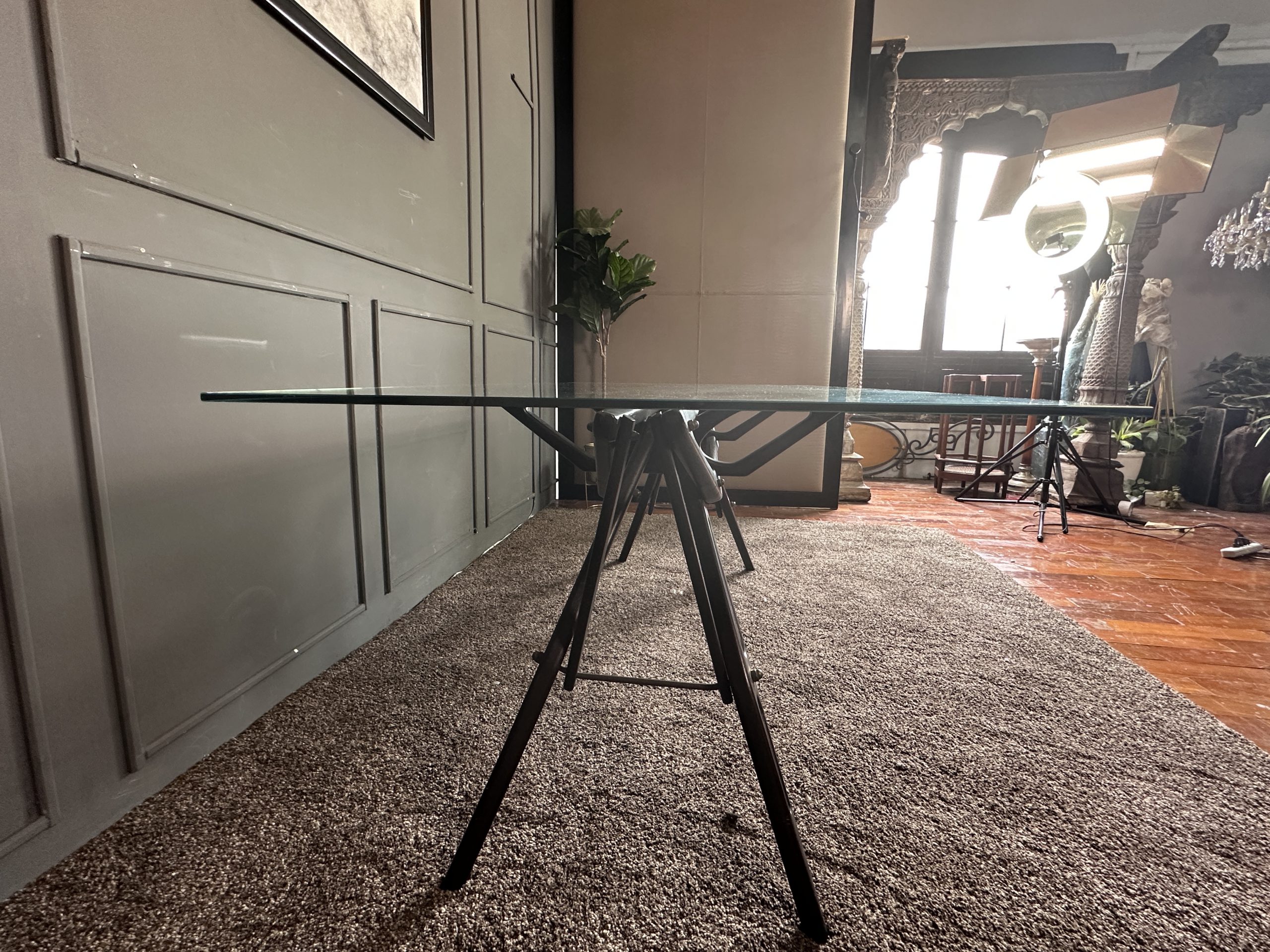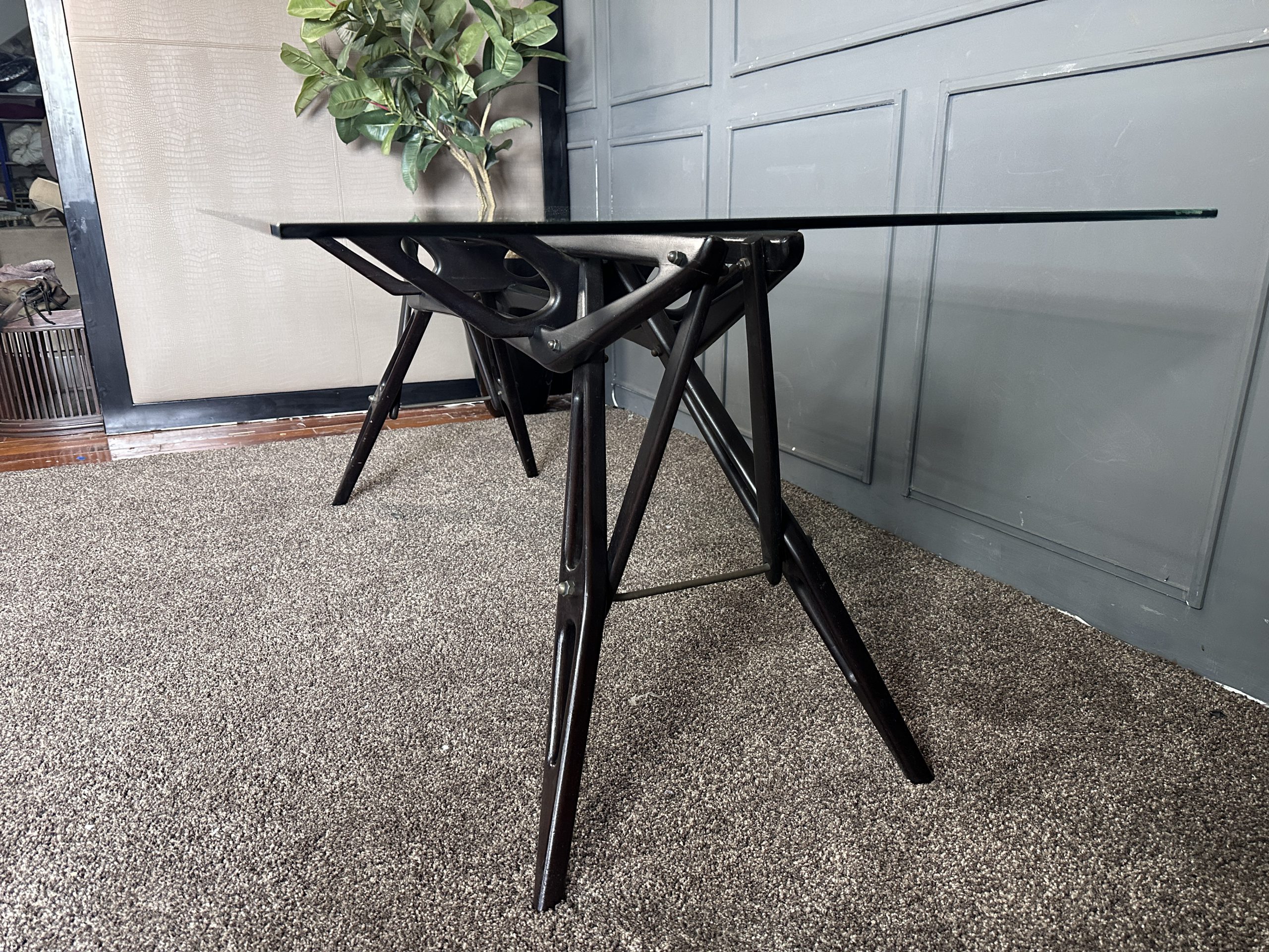 โต๊ะทำงาน ท็อปกระจกสี่เหลี่ยม โครงขาไม้จริงงานดีไซน์