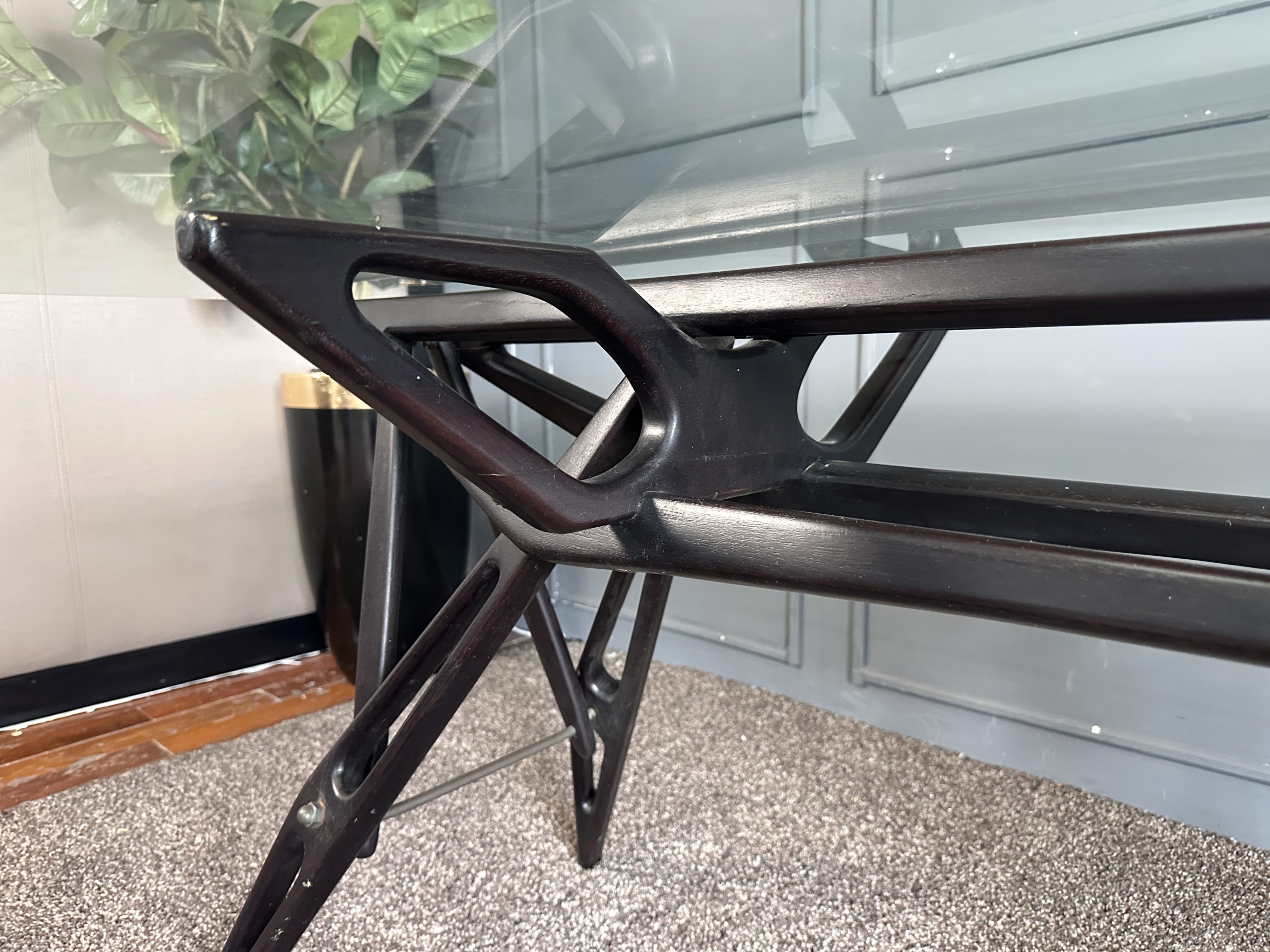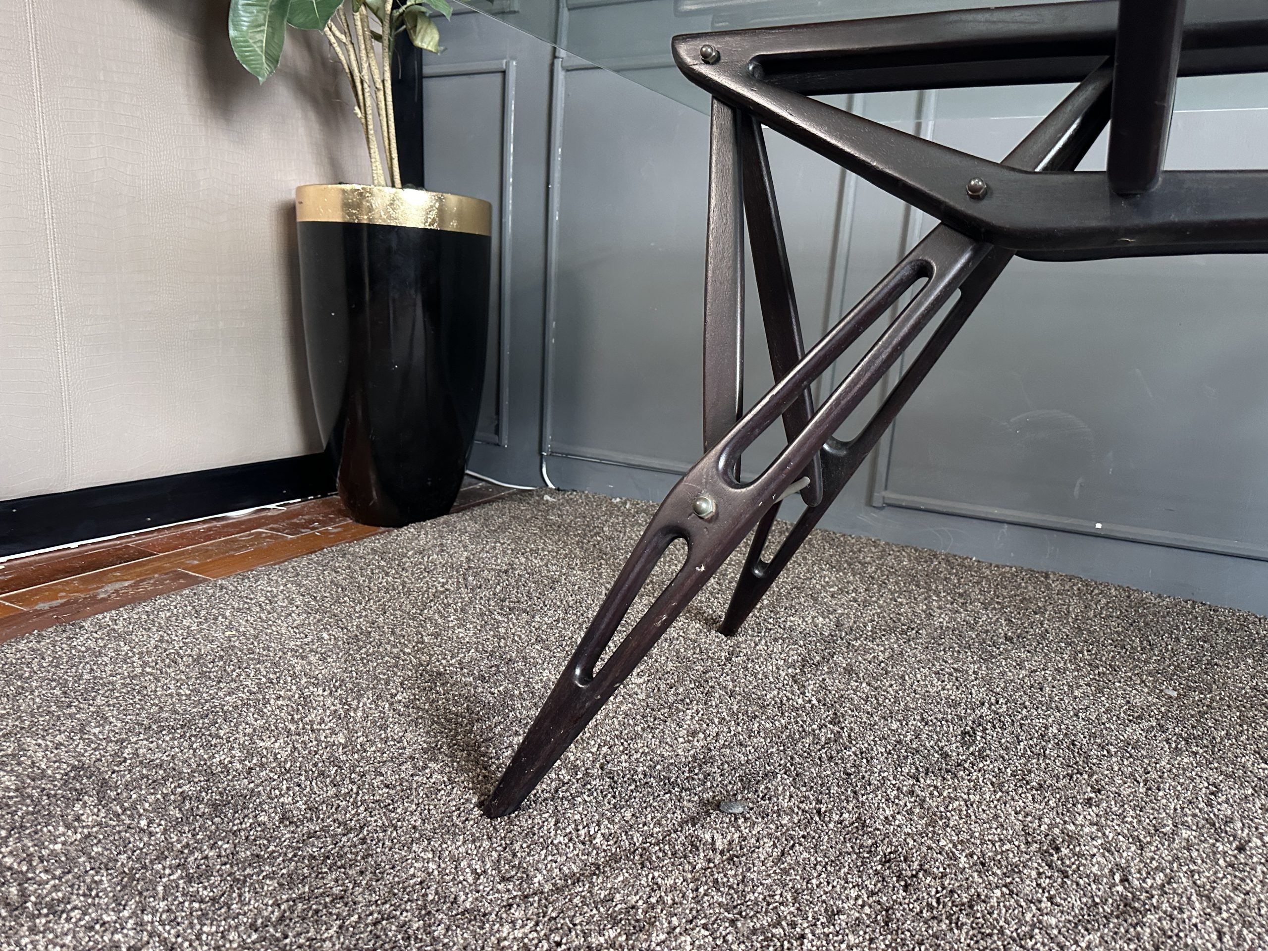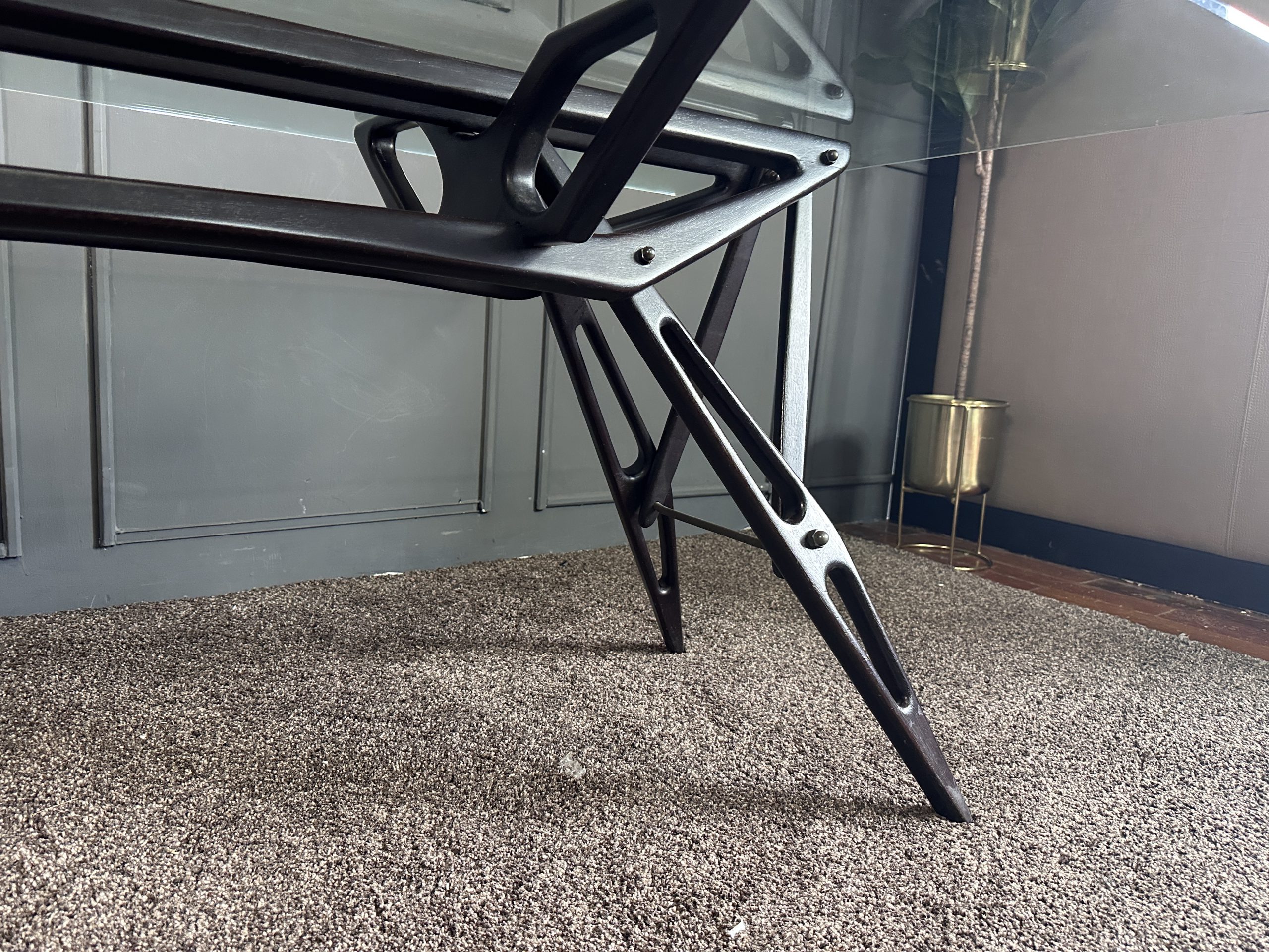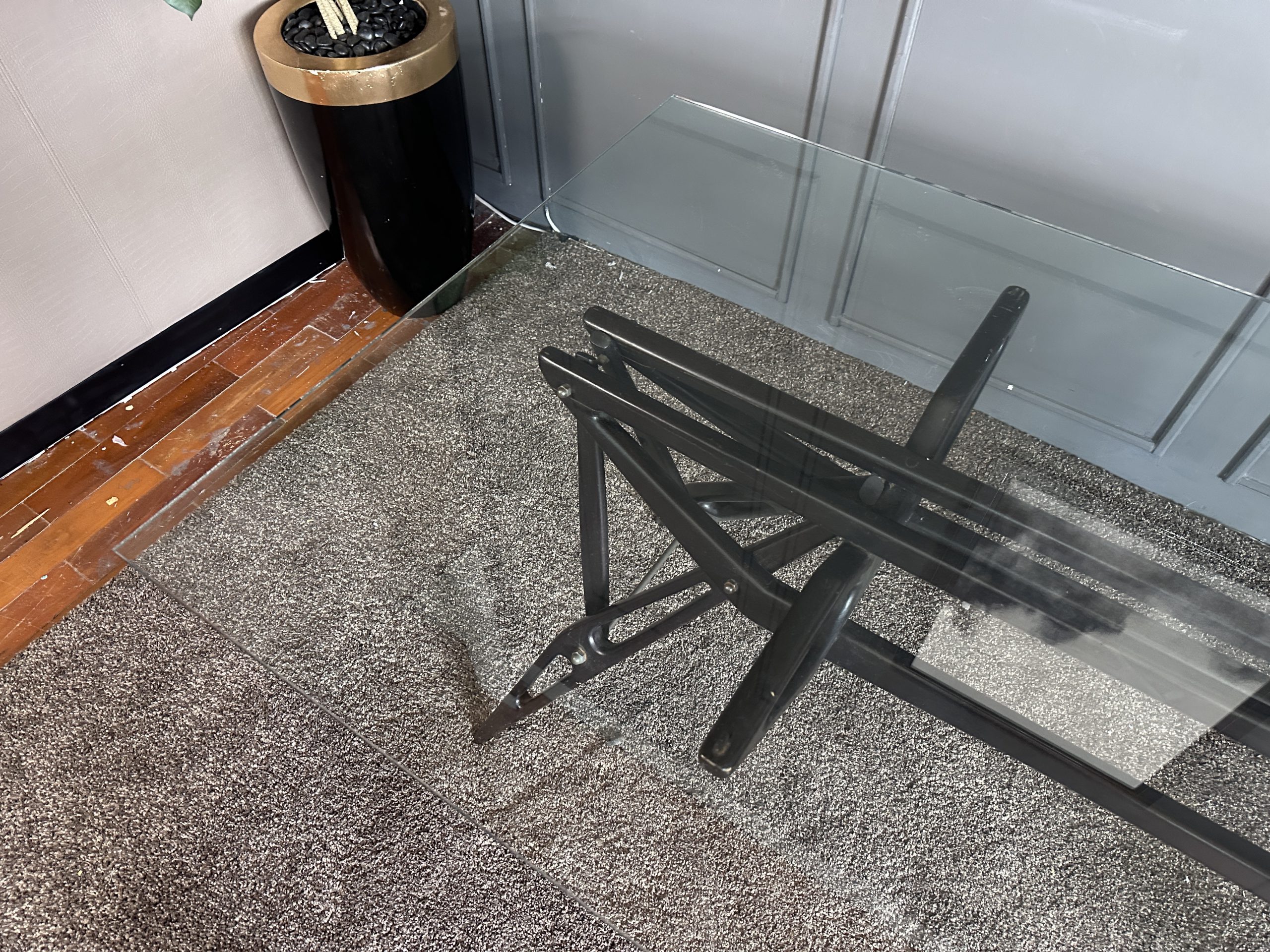 โต๊ะทำงาน ท็อปกระจกสี่เหลี่ยม โครงขาไม้จริงงานดีไซน์