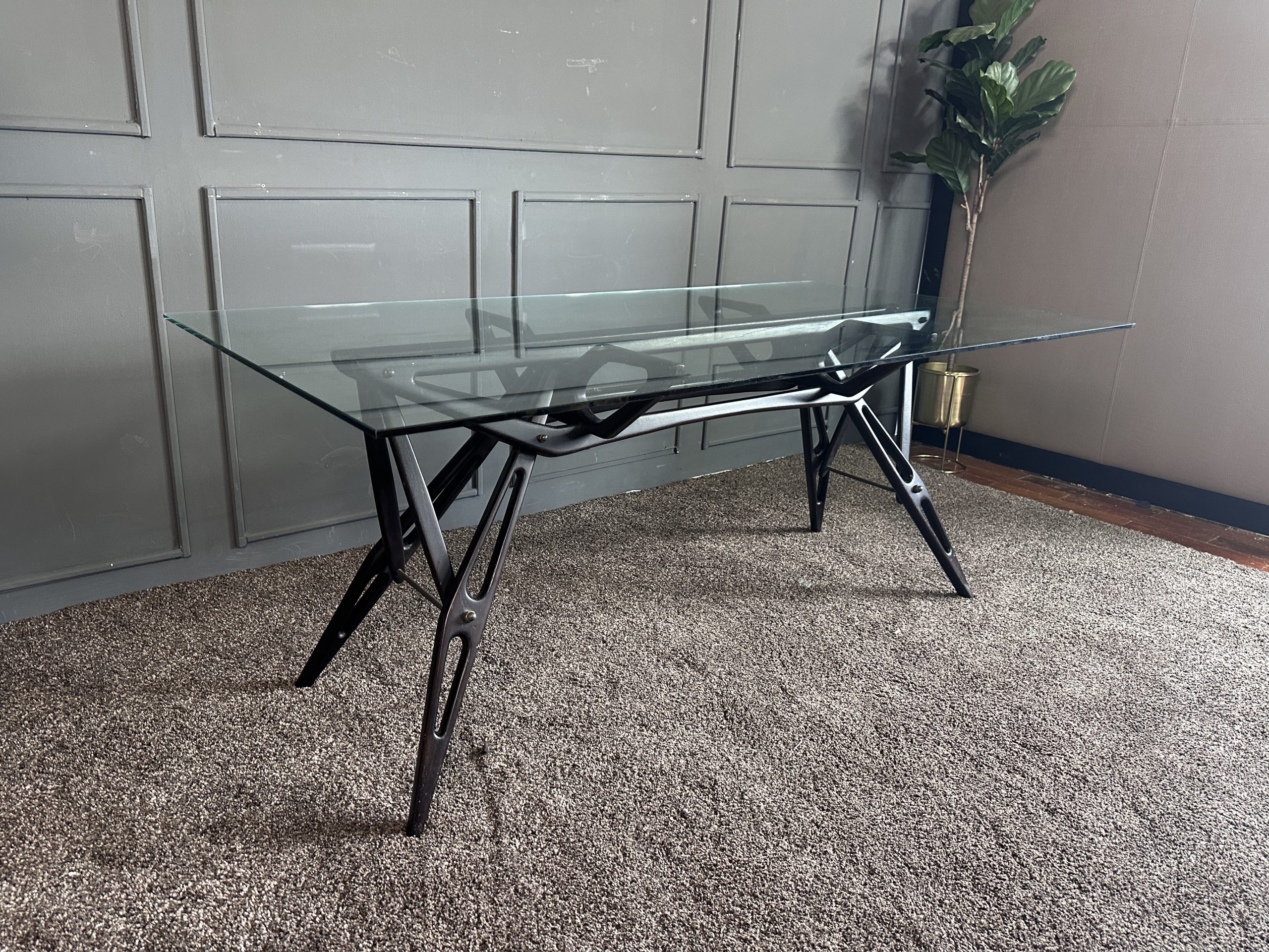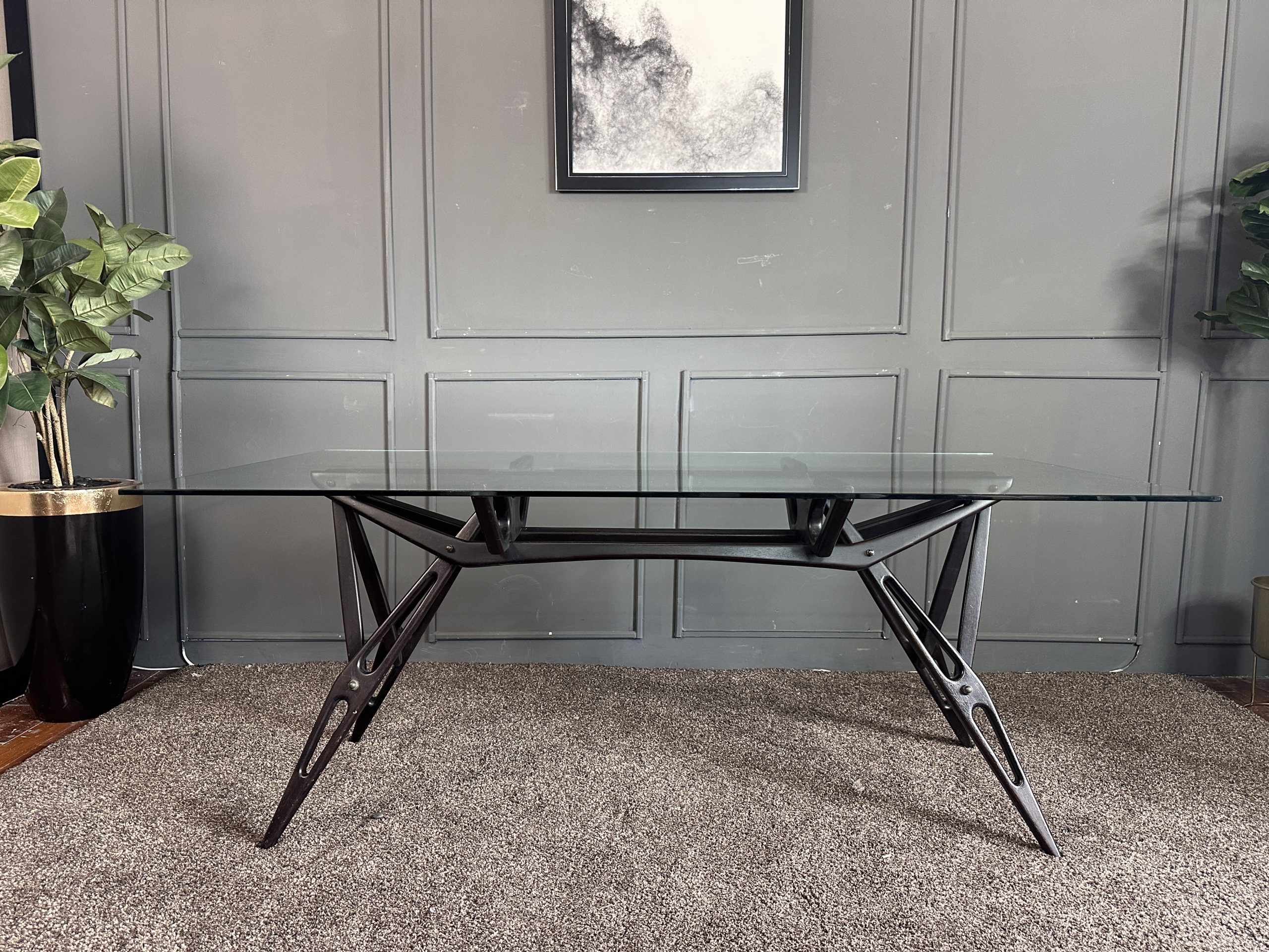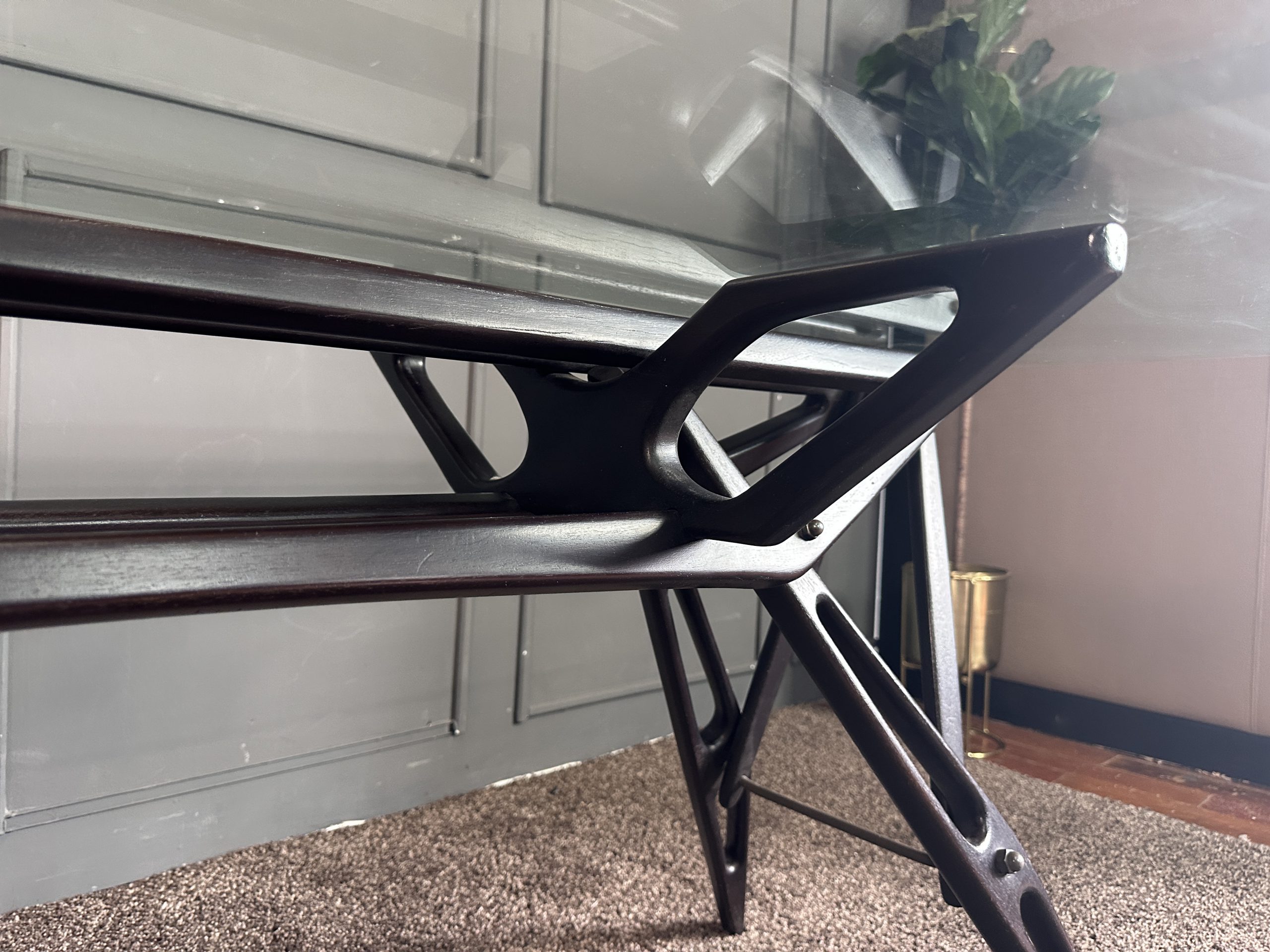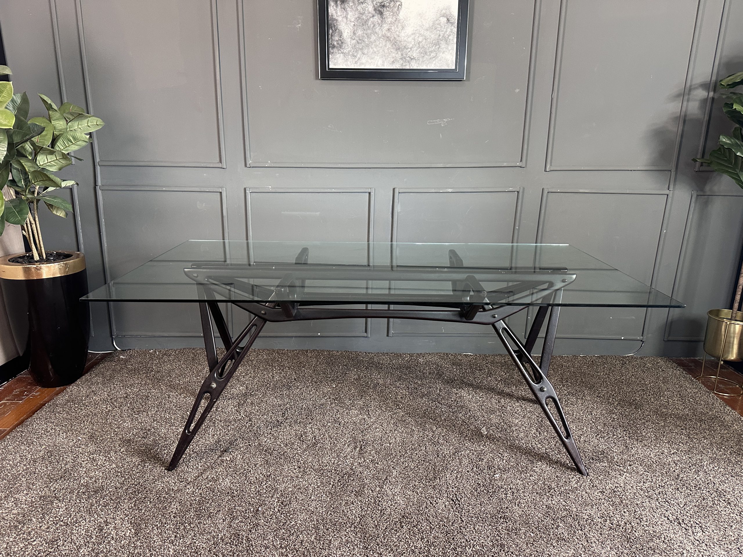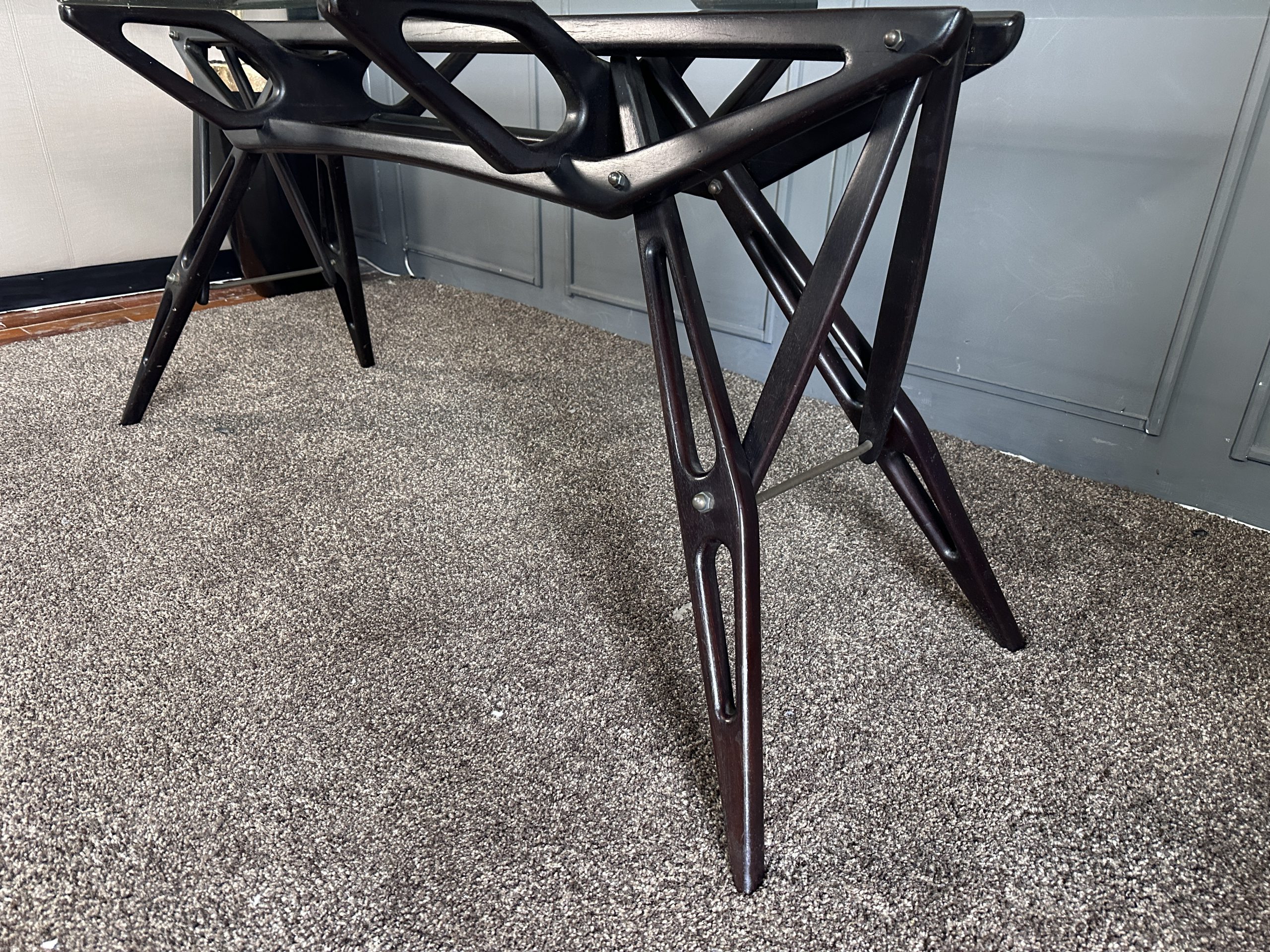 โต๊ะทำงาน ท็อปกระจกสี่เหลี่ยม โครงขาไม้จริงงานดีไซน์